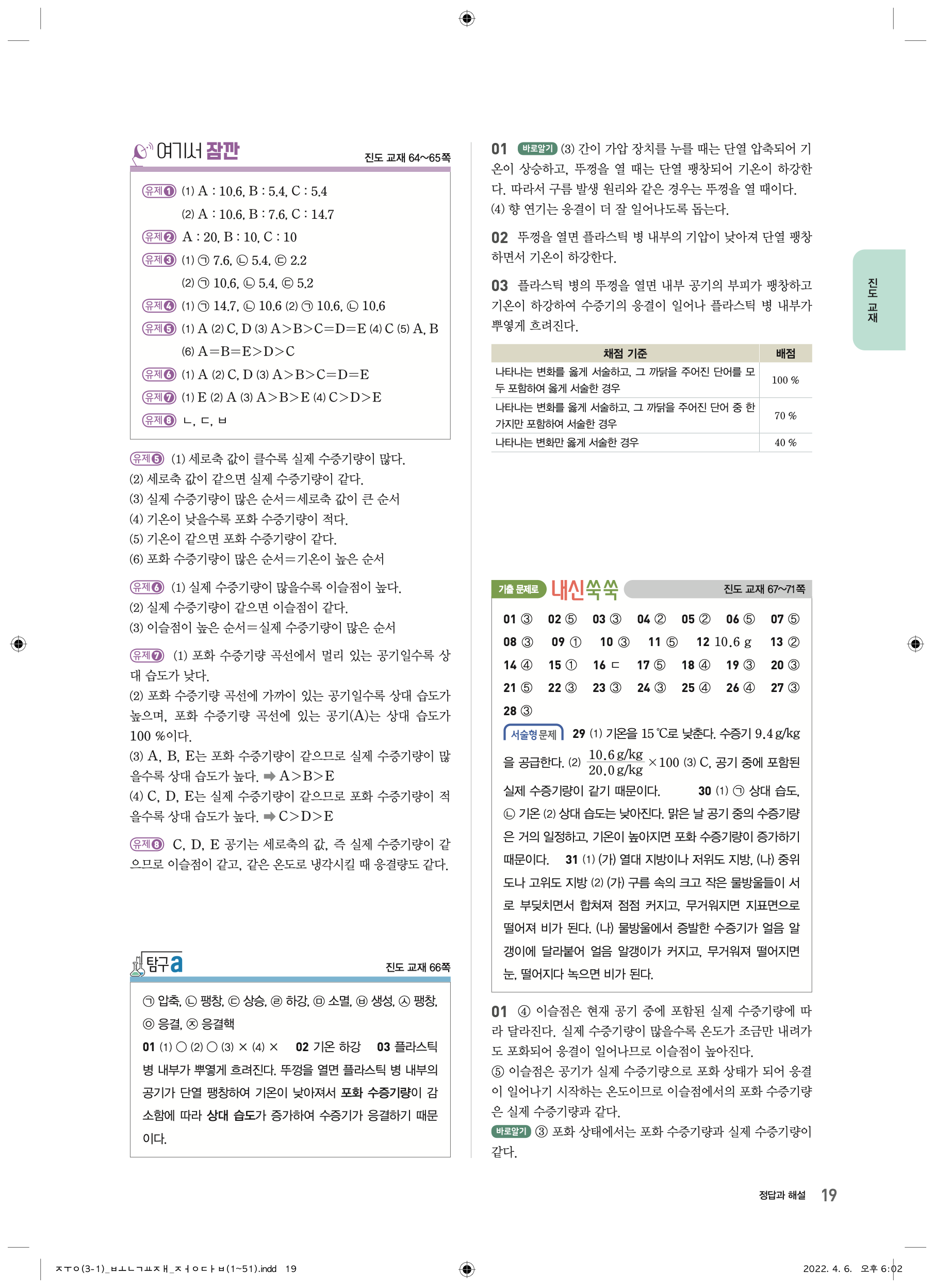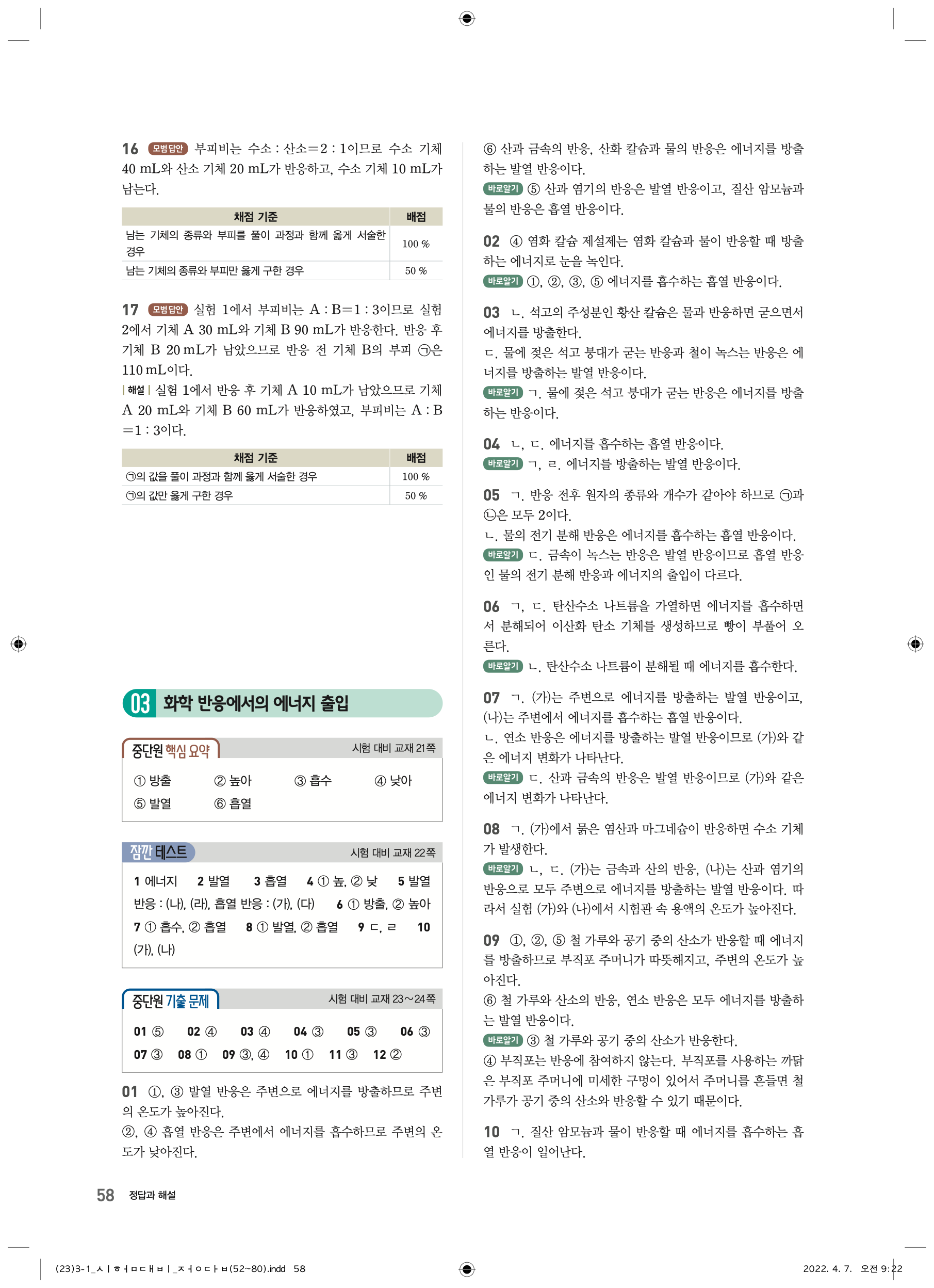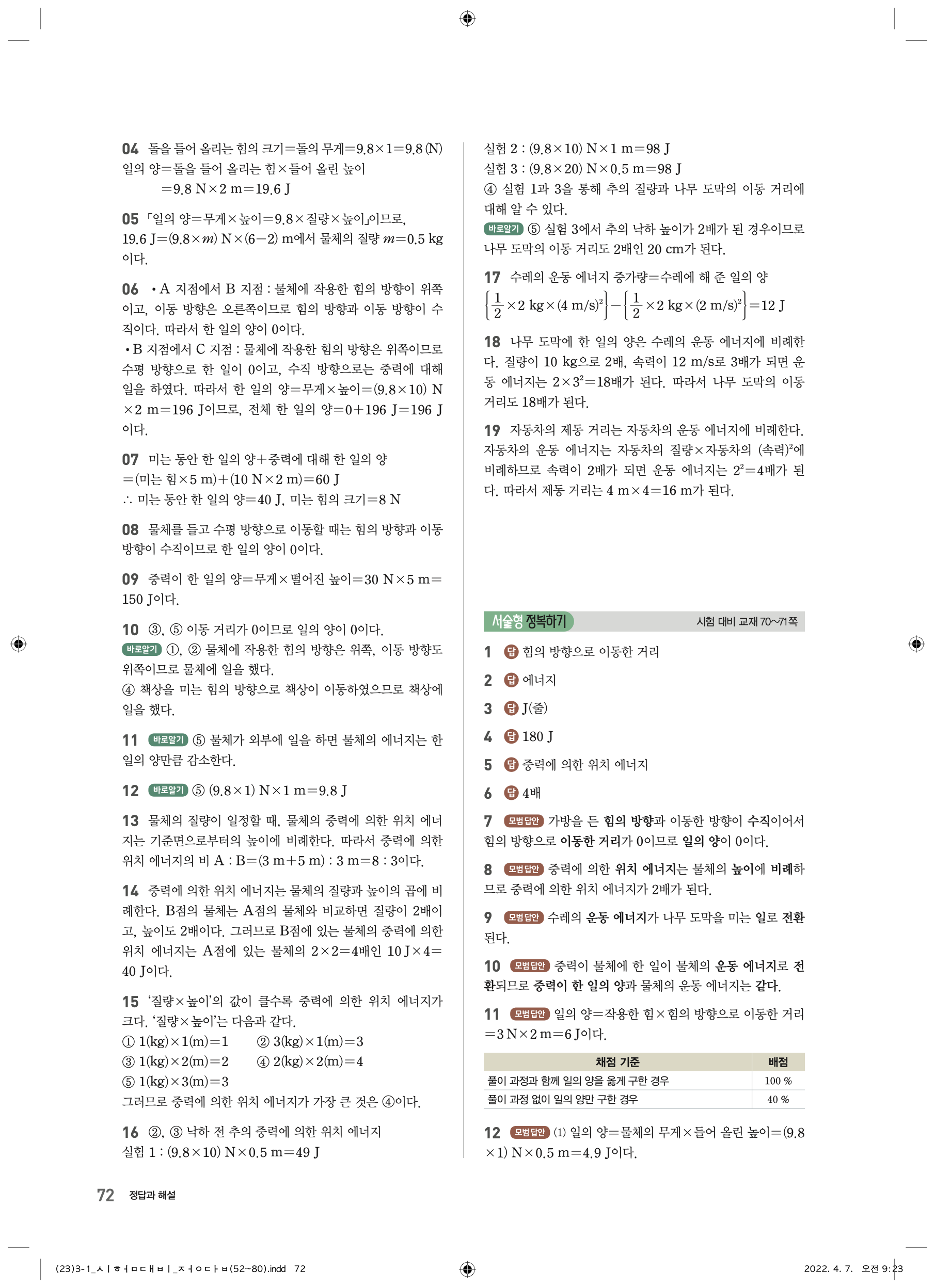 답지를 활용하여 각 문제에 사용된 핵심 개념을 다시 복습하세요. 이를 통해 더 나은 문제 해결 능력과 과학적 사고력을 기를 수 있습니다.
