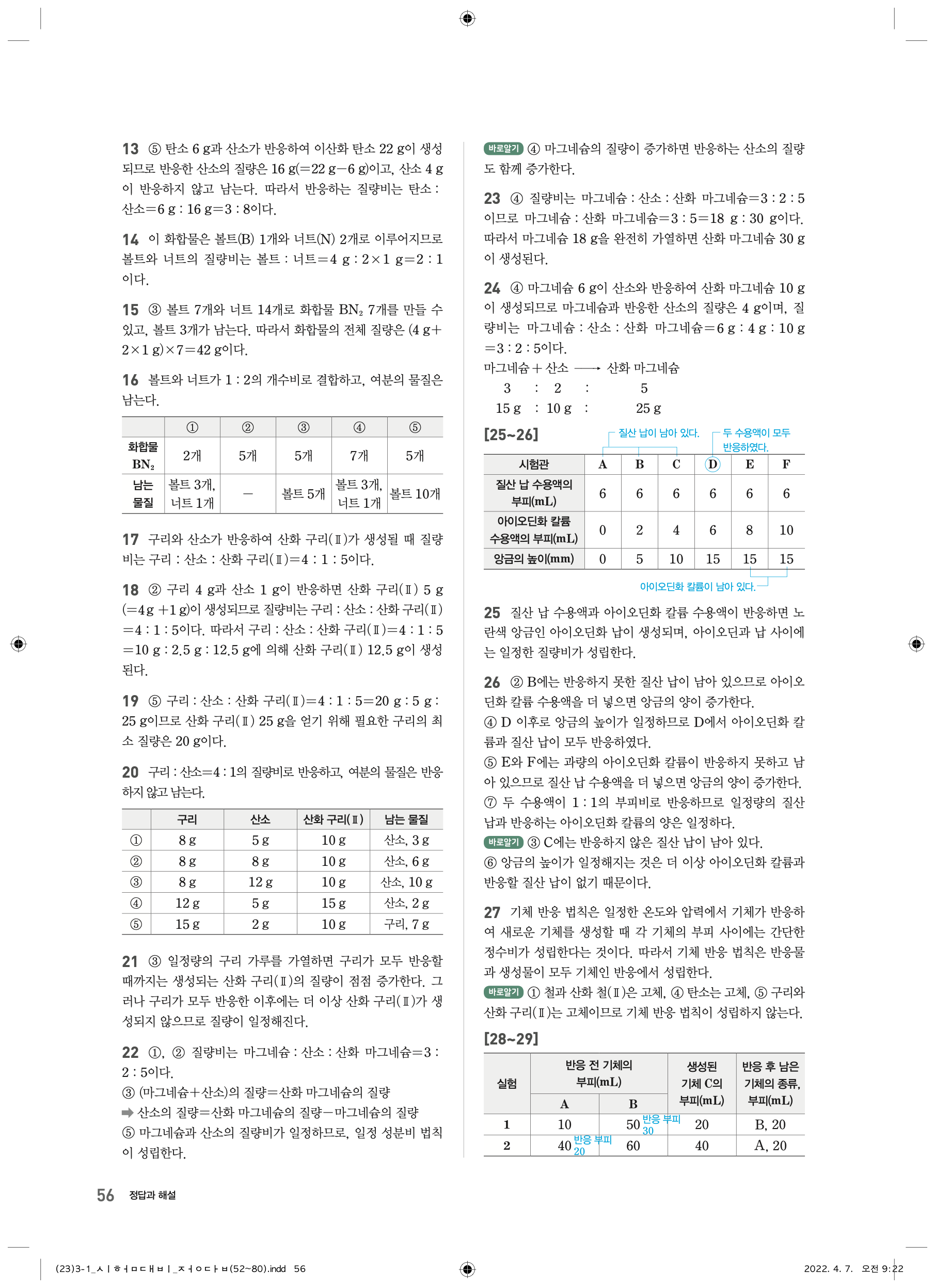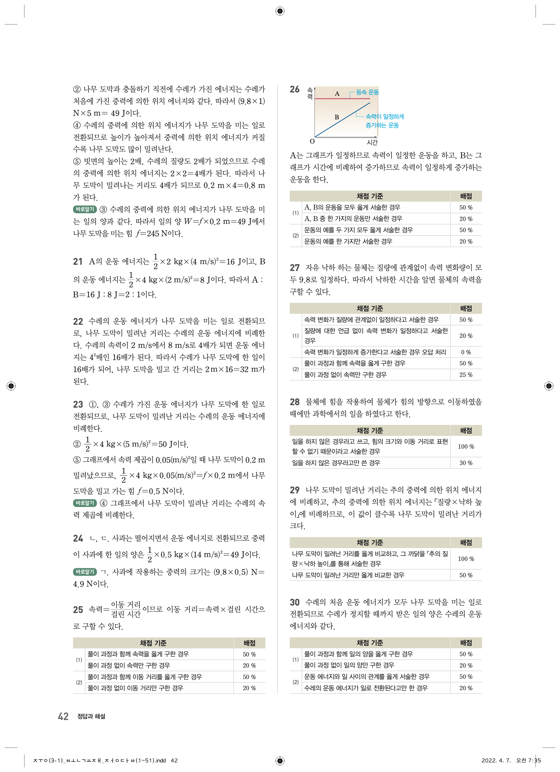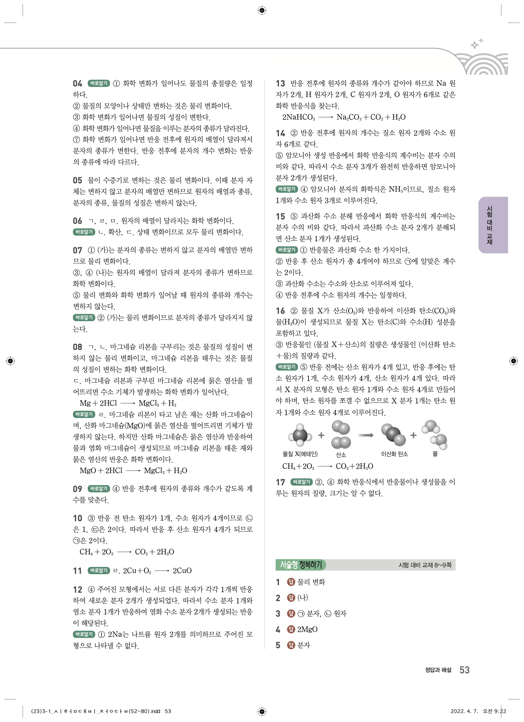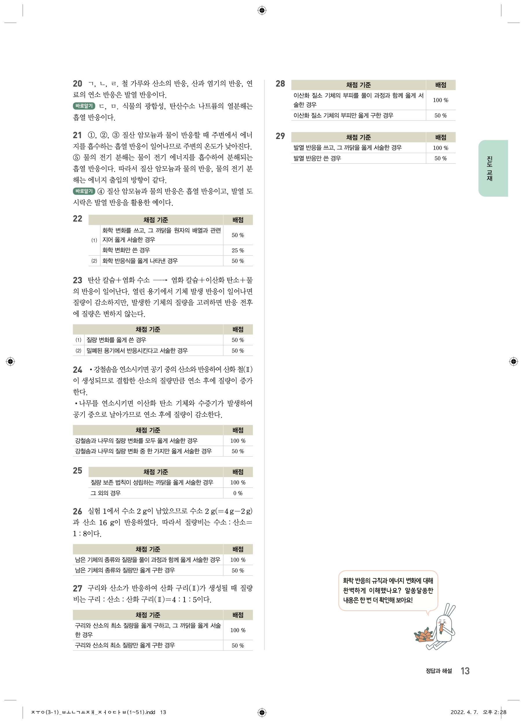 답지를 활용하여 각 문제에 사용된 핵심 개념을 다시 복습하세요. 이를 통해 더 나은 문제 해결 능력과 과학적 사고력을 기를 수 있습니다.