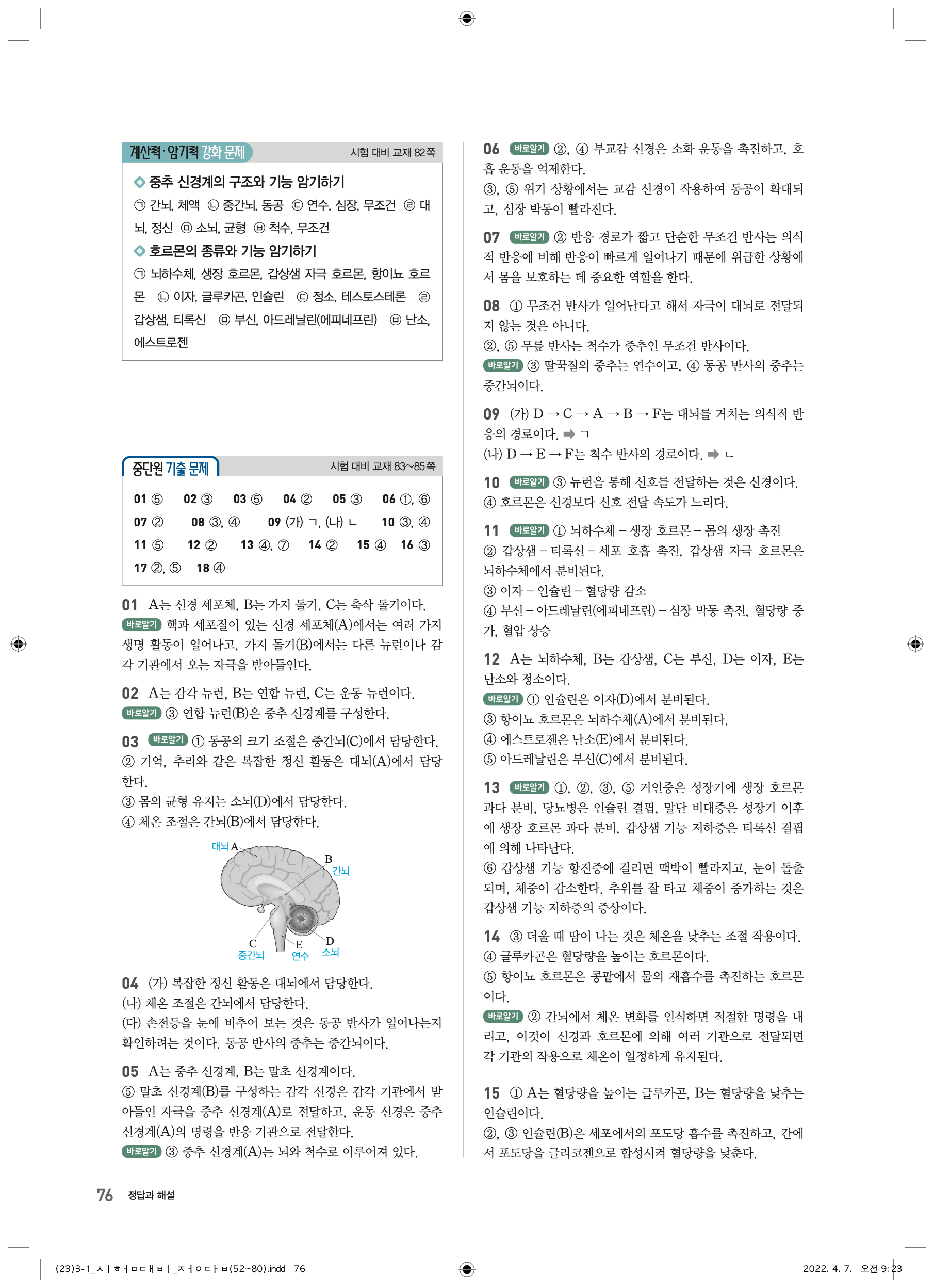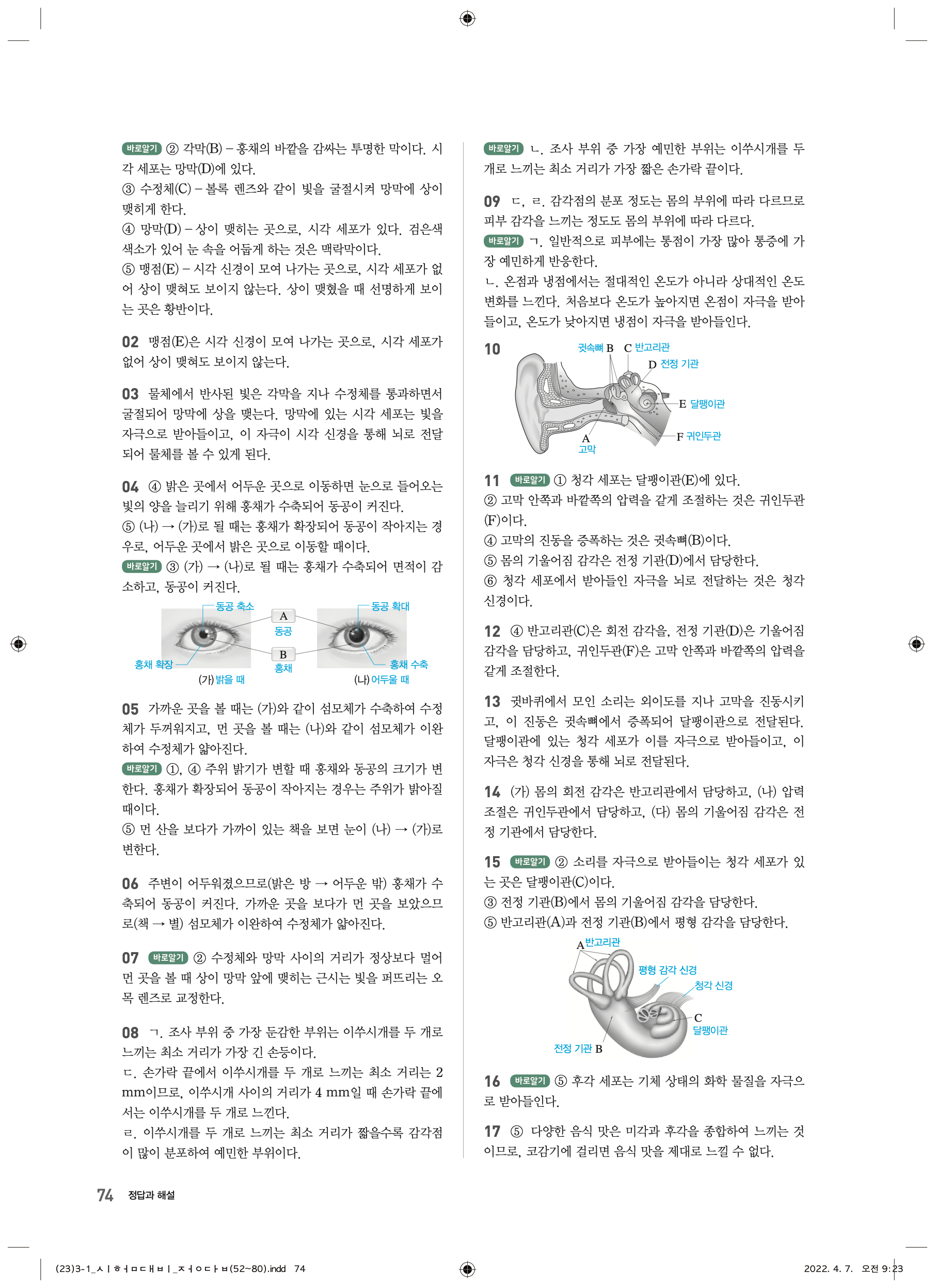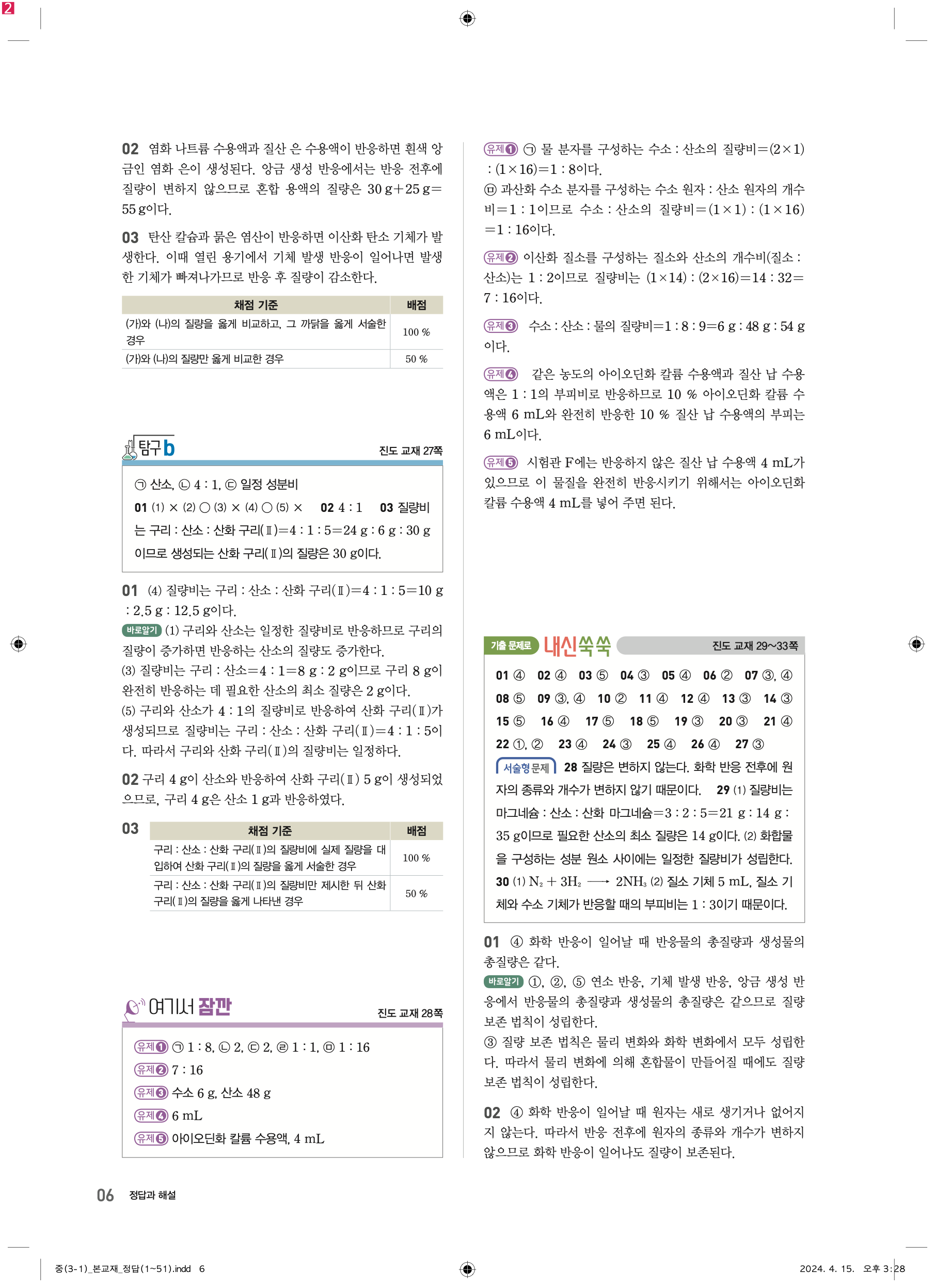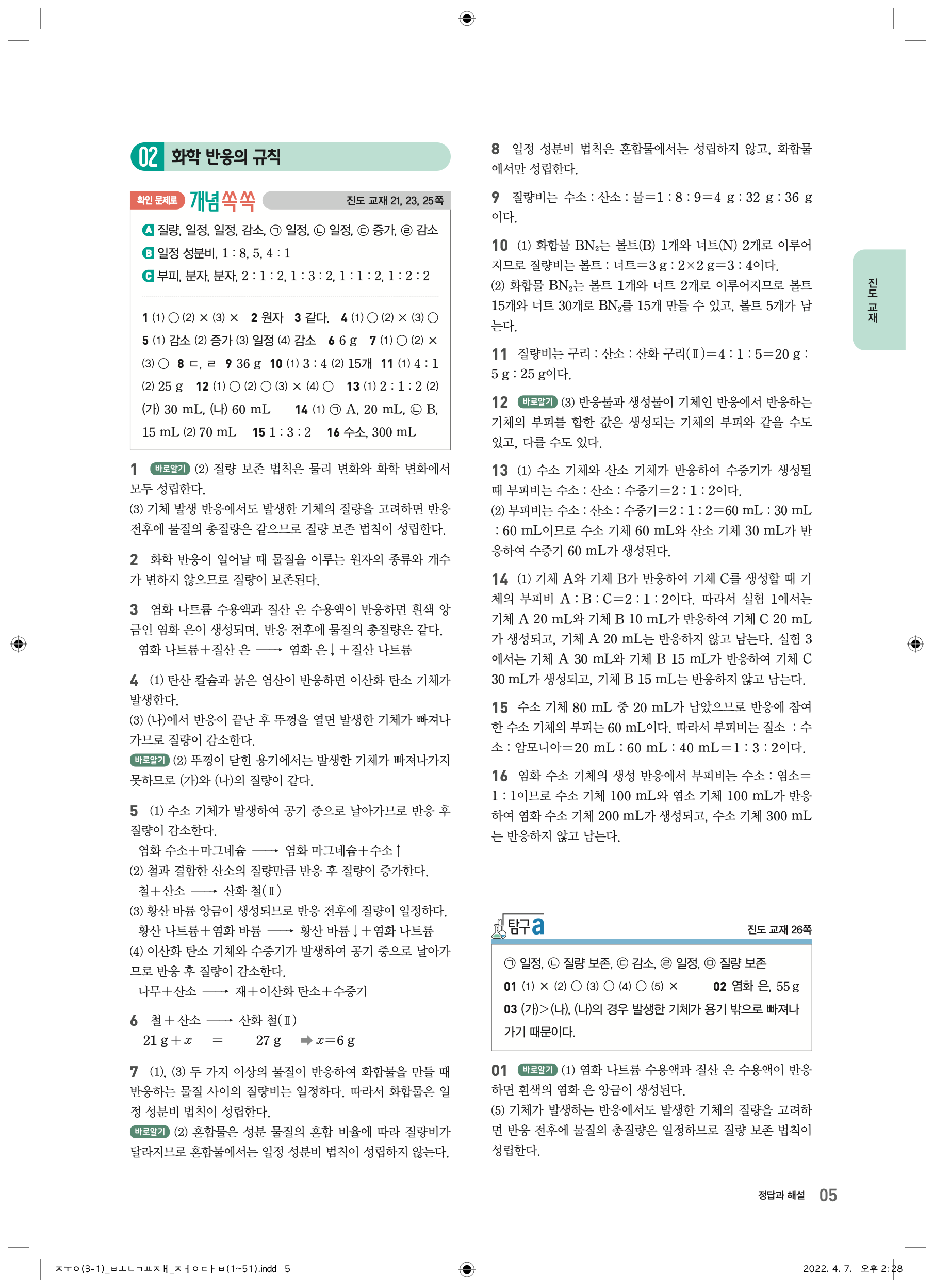 답지에는 문제별로 풀이 과정이 단계별로 제공되어 있어, 학생들이 논리적으로 문제를 해결할 수 있도록 돕습니다. 각 문제의 해설을 통해 학생들은 개념을 명확하게 정리할 수 있습니다. - 오답 정리 및 복습