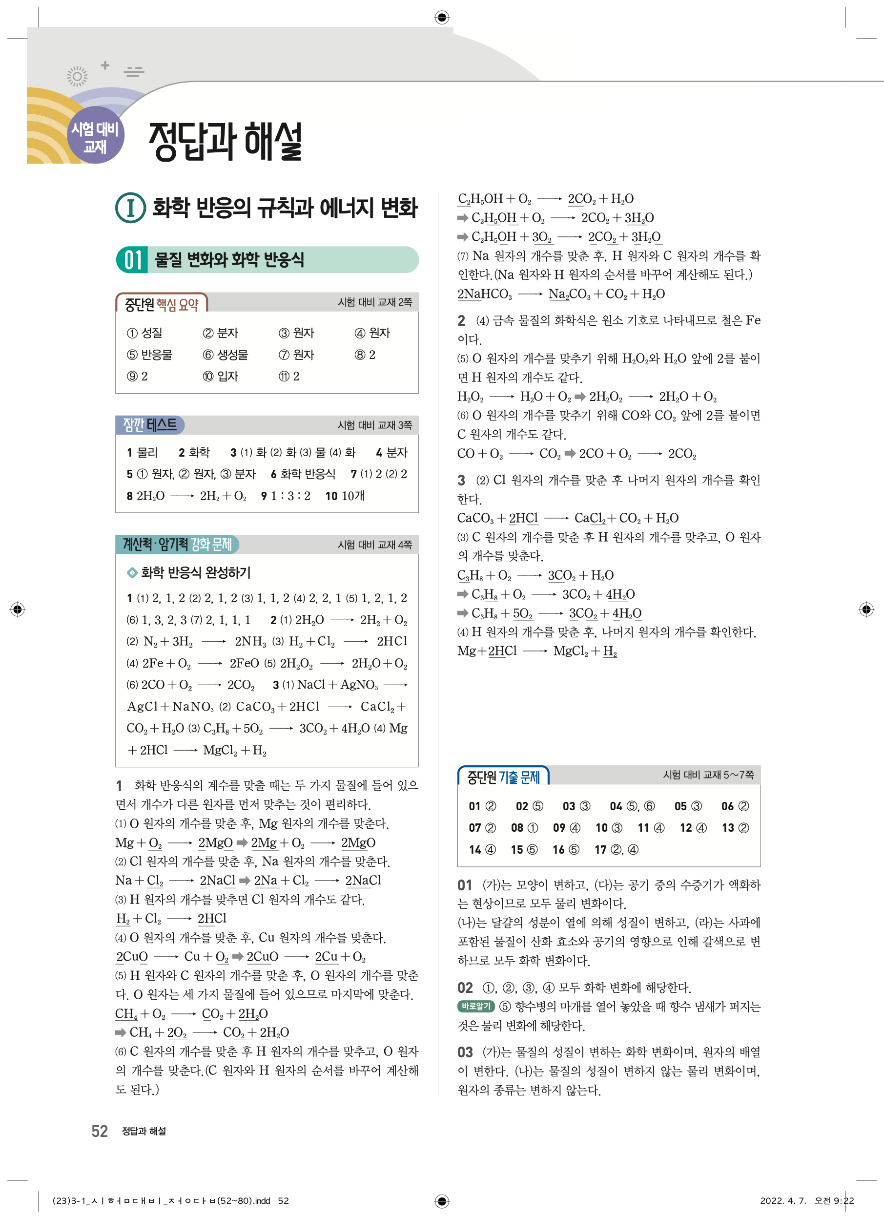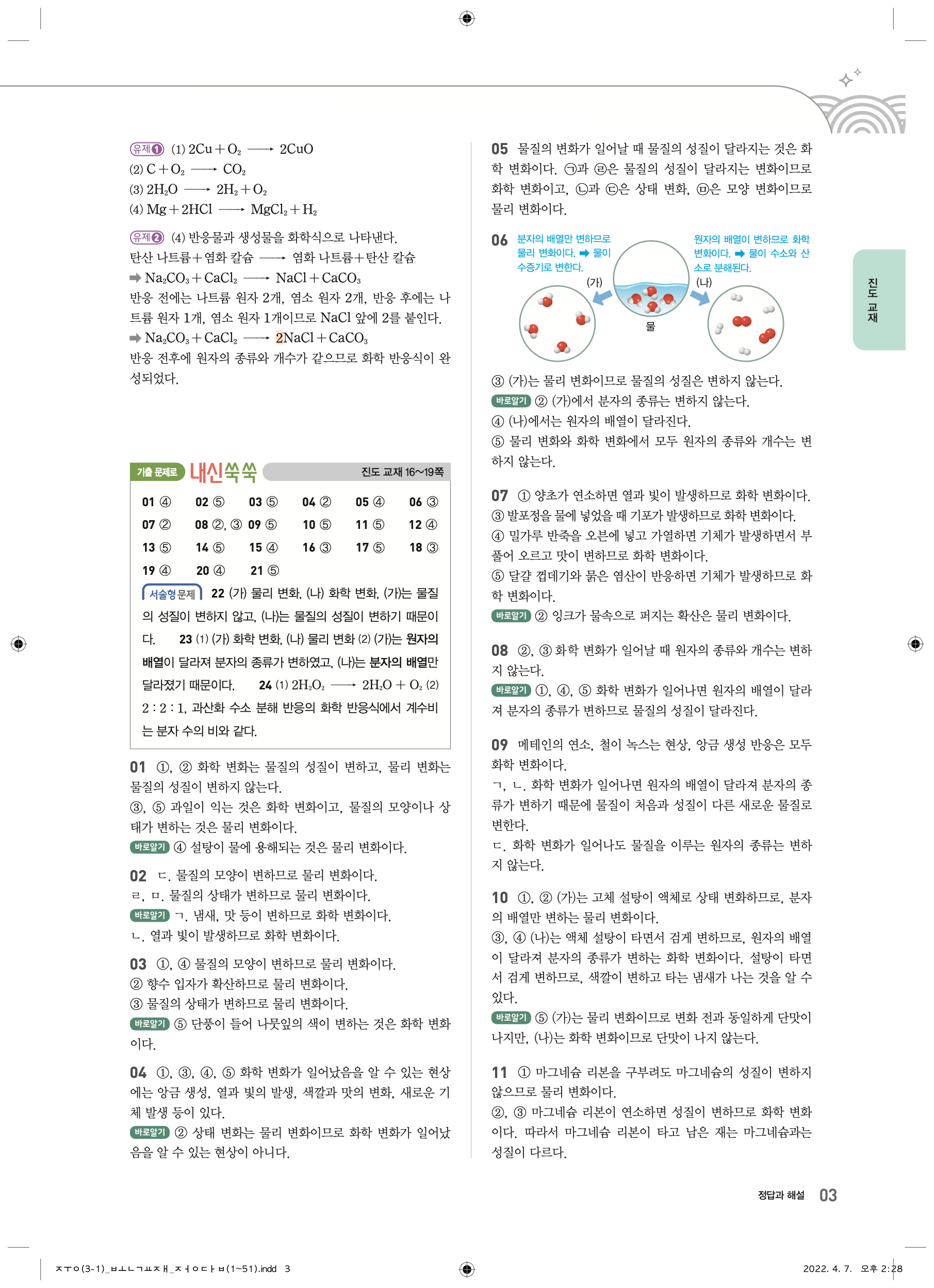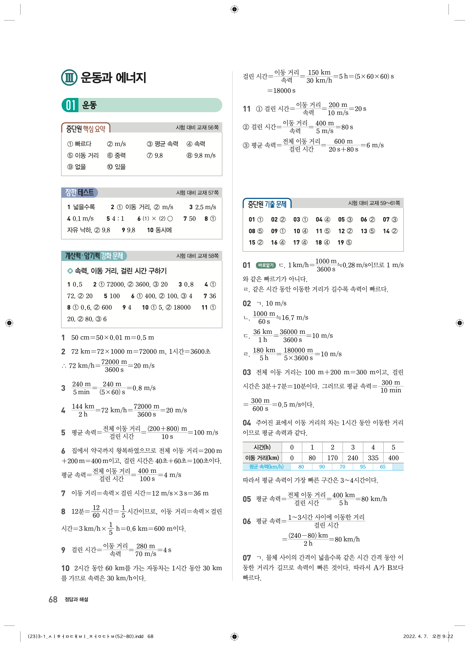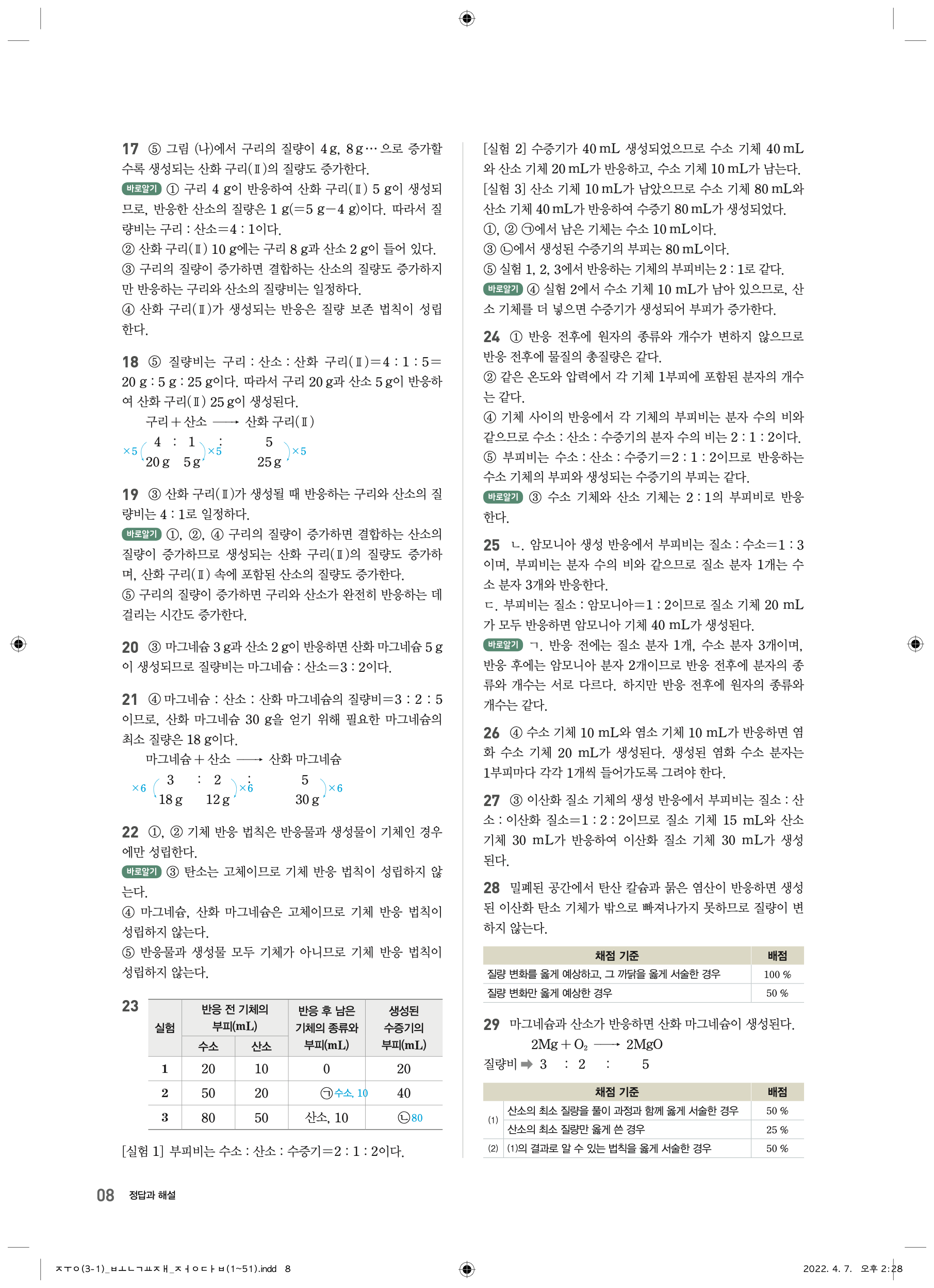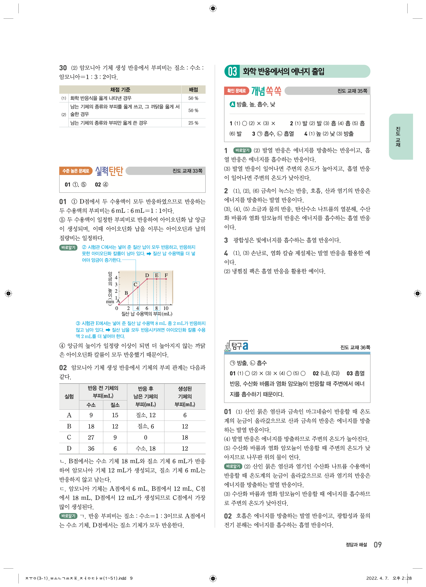오투과학 중3-1 답지 – 중학교 과학 학습을 위한 필수 자료