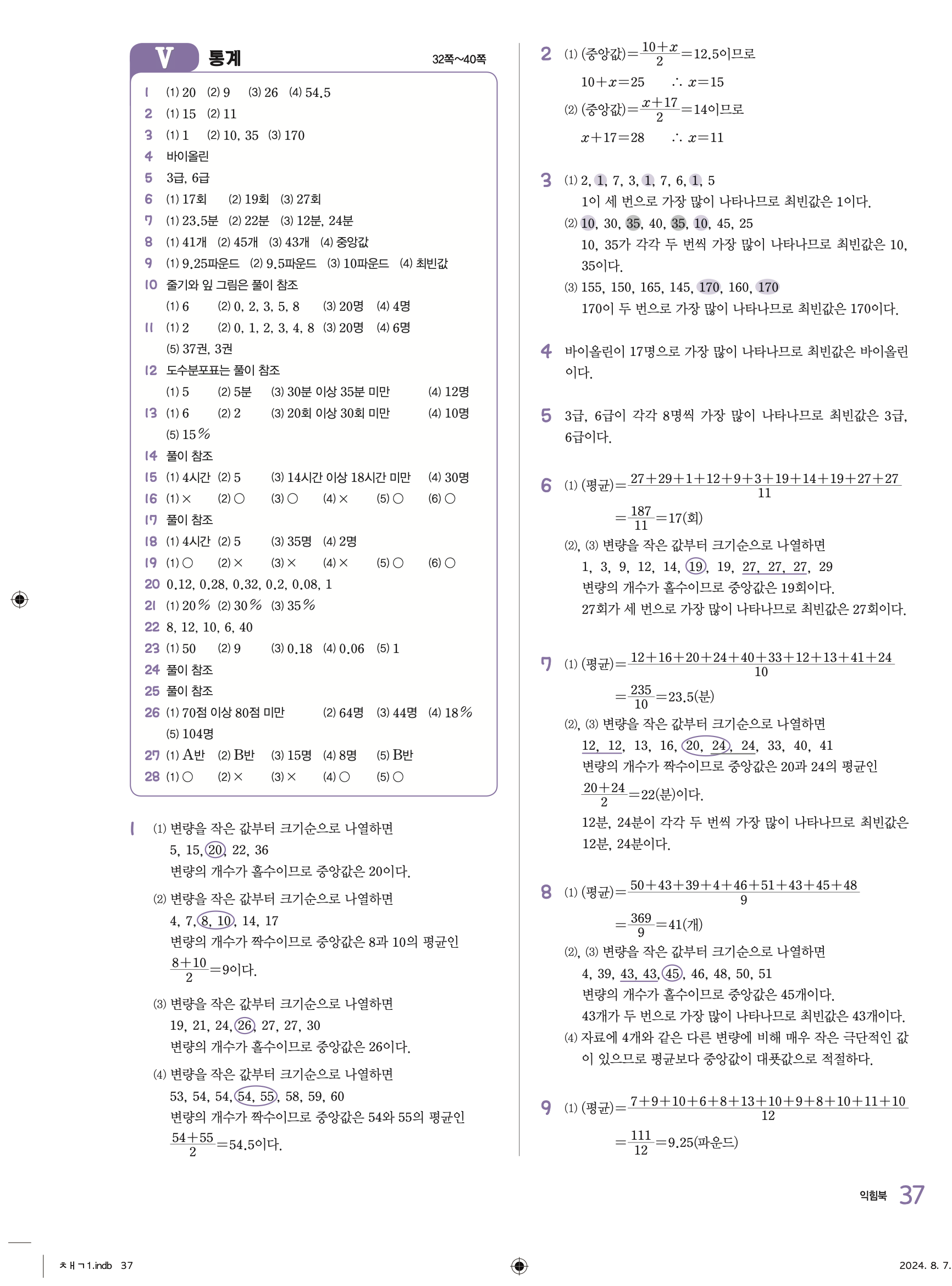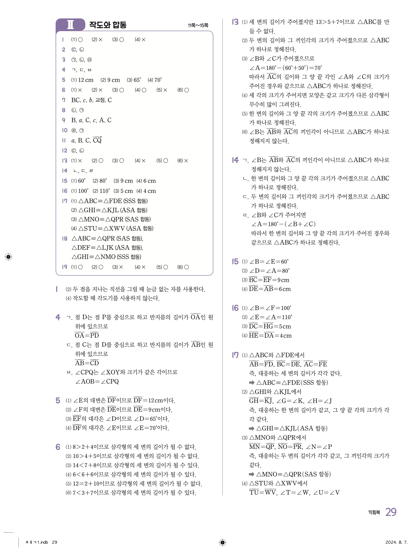 답지에는 각 문제의 자세한 풀이 과정이 단계별로 제공되어, 학생들이 논리적으로 문제를 해결할 수 있도록 돕습니다. - 오답 정리 및 복습