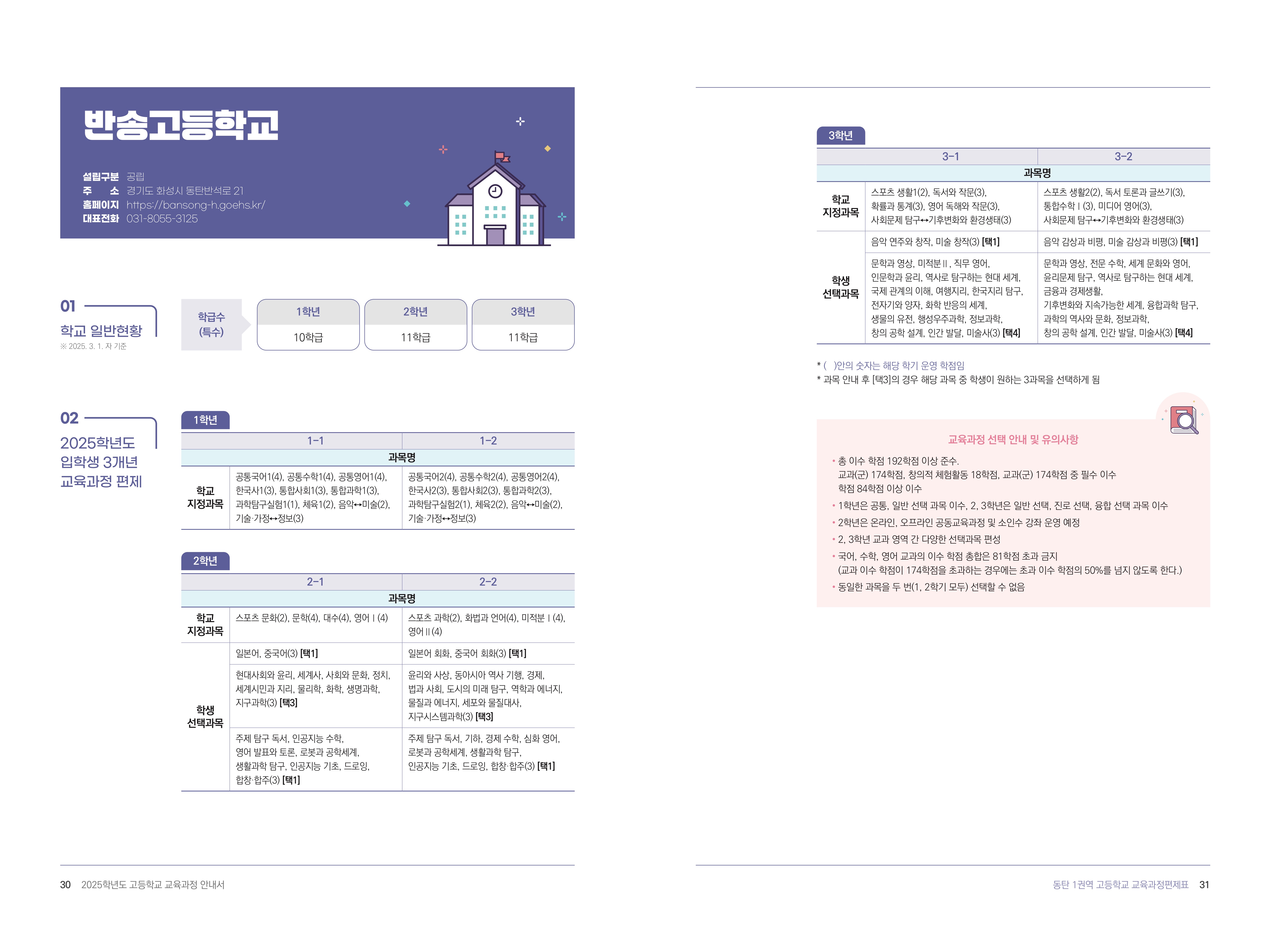 화성 지역 모든 고등학교 교육과정 편제 - 고교학점제