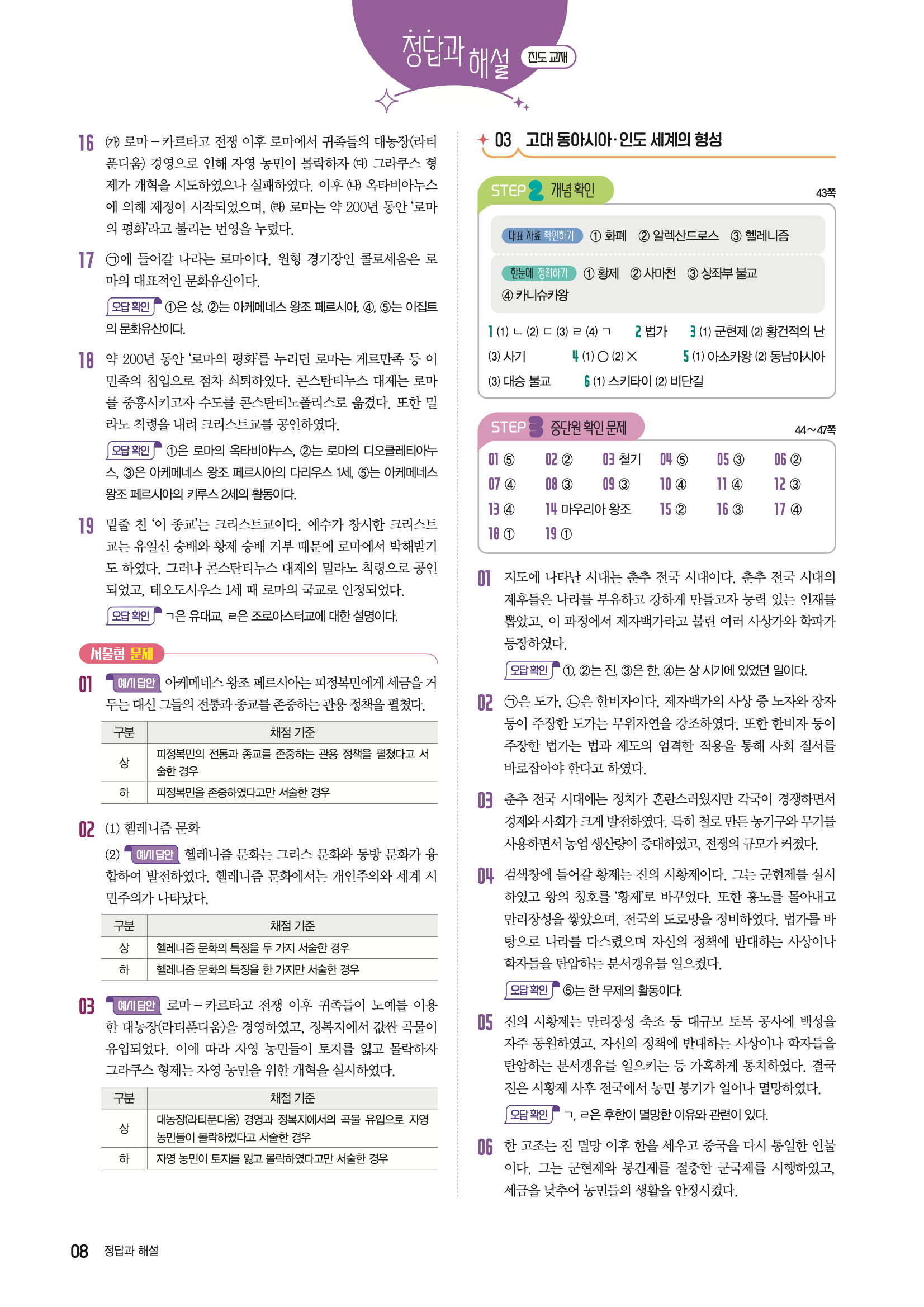 📌 한끝 중등 역사 1-1 정답 및 해설 다운로드