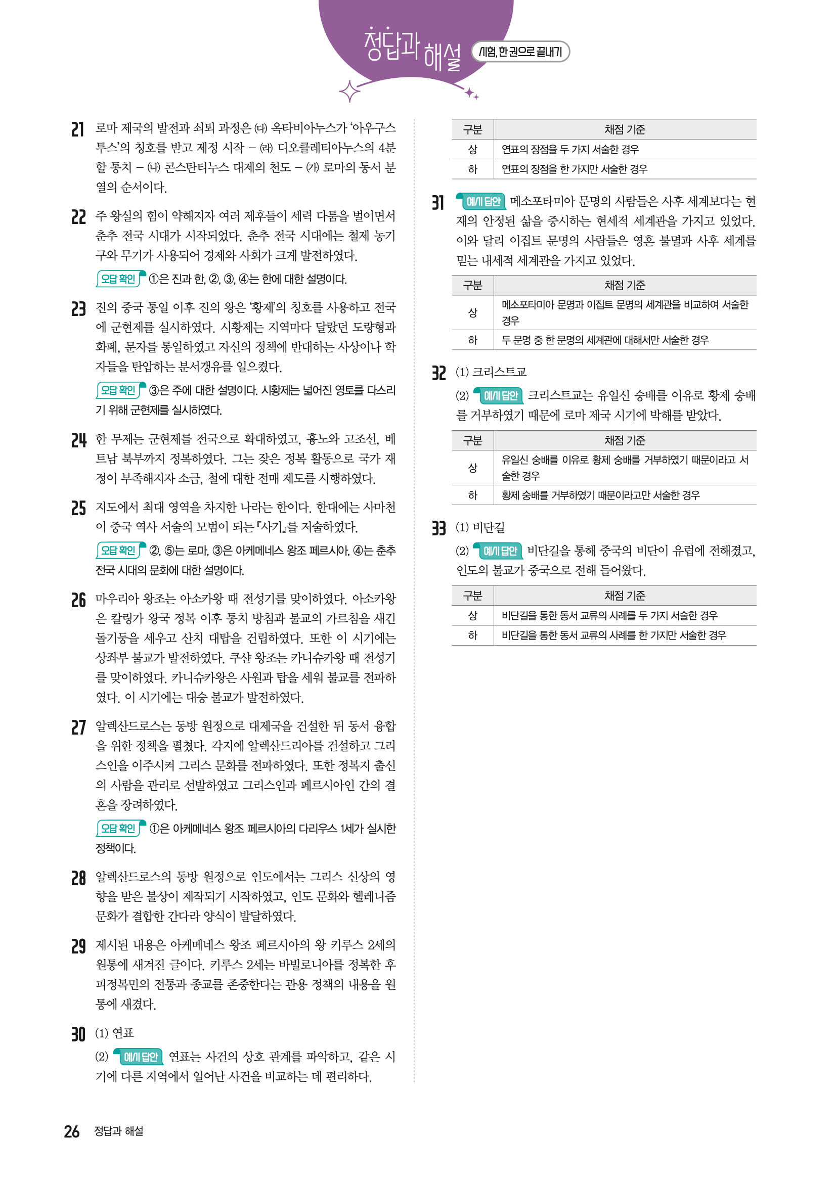 🔗 한끝 중등 역사 1-1 정답 해설 PDF