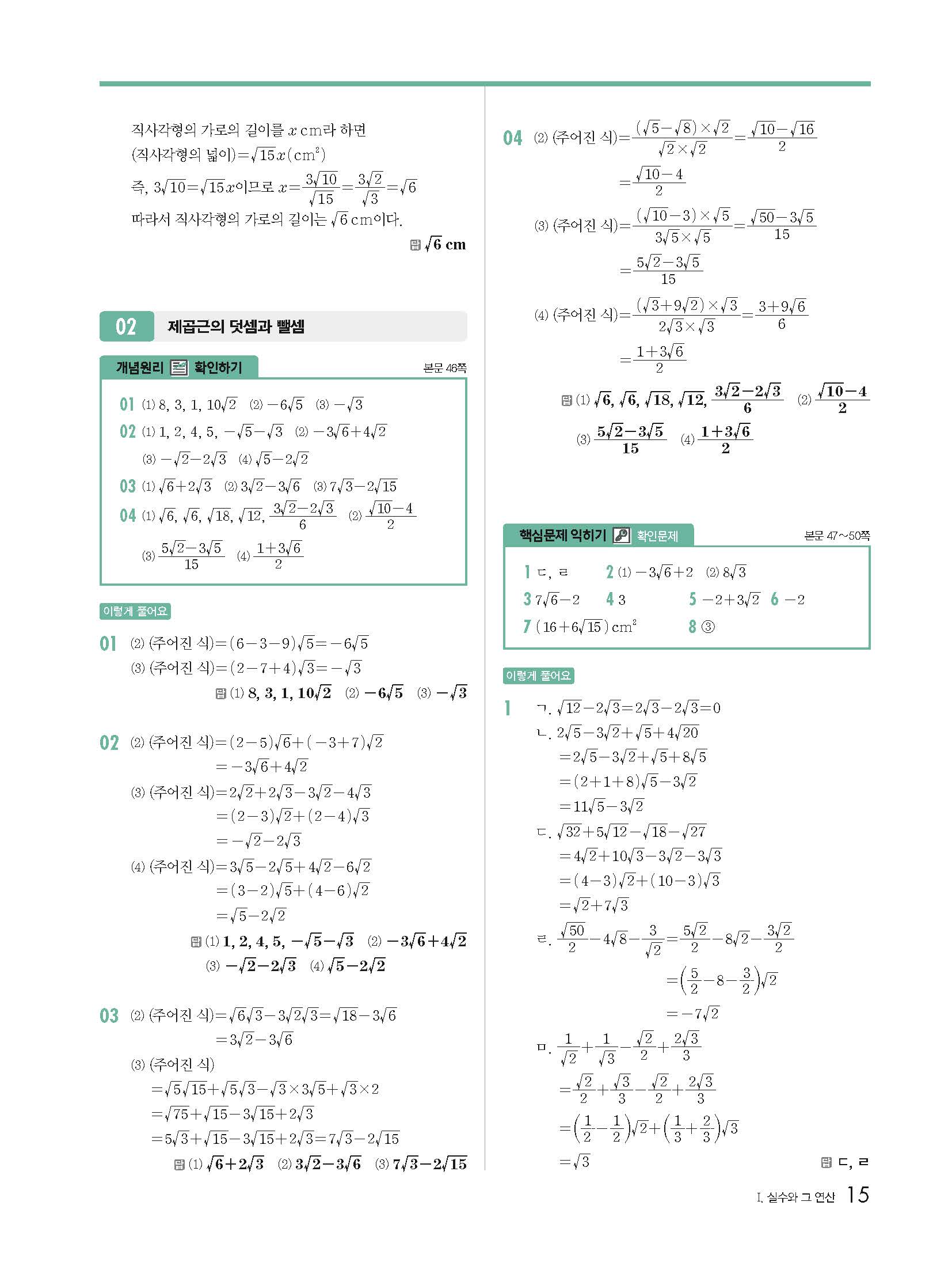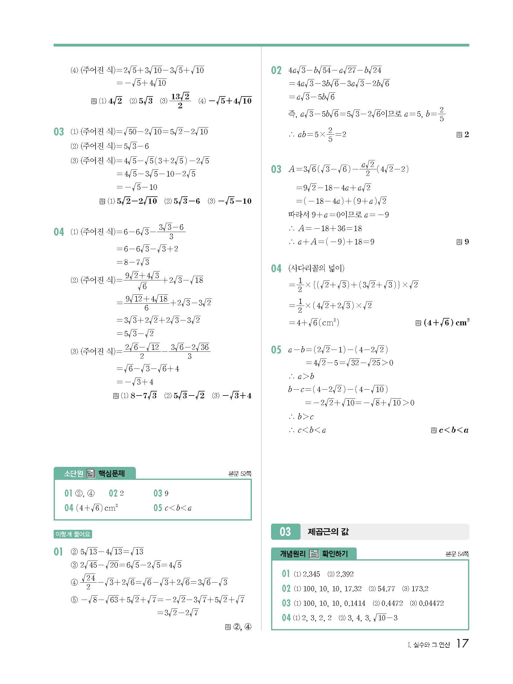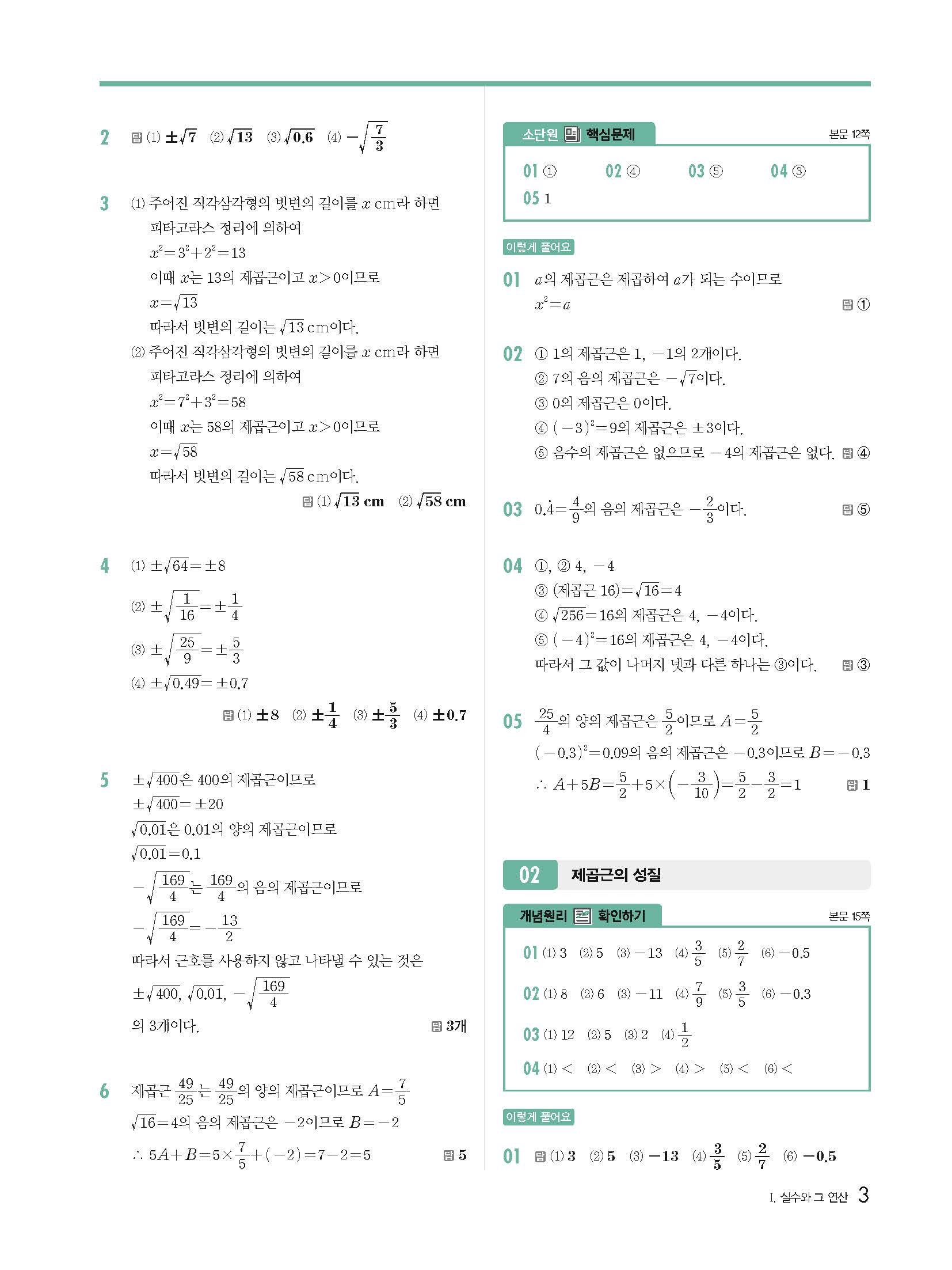 개념원리 중3상 3-1 빠른답지 해설지