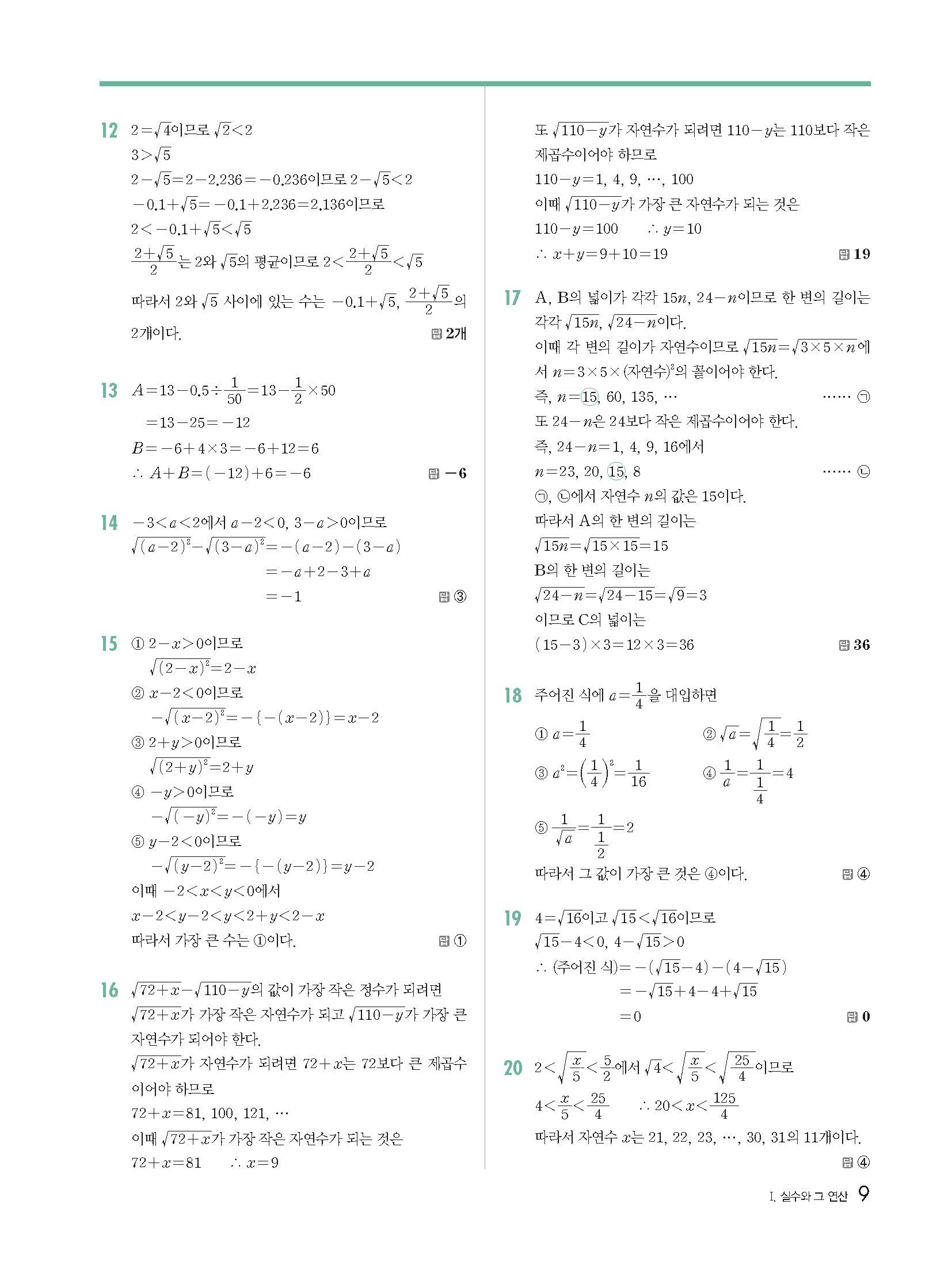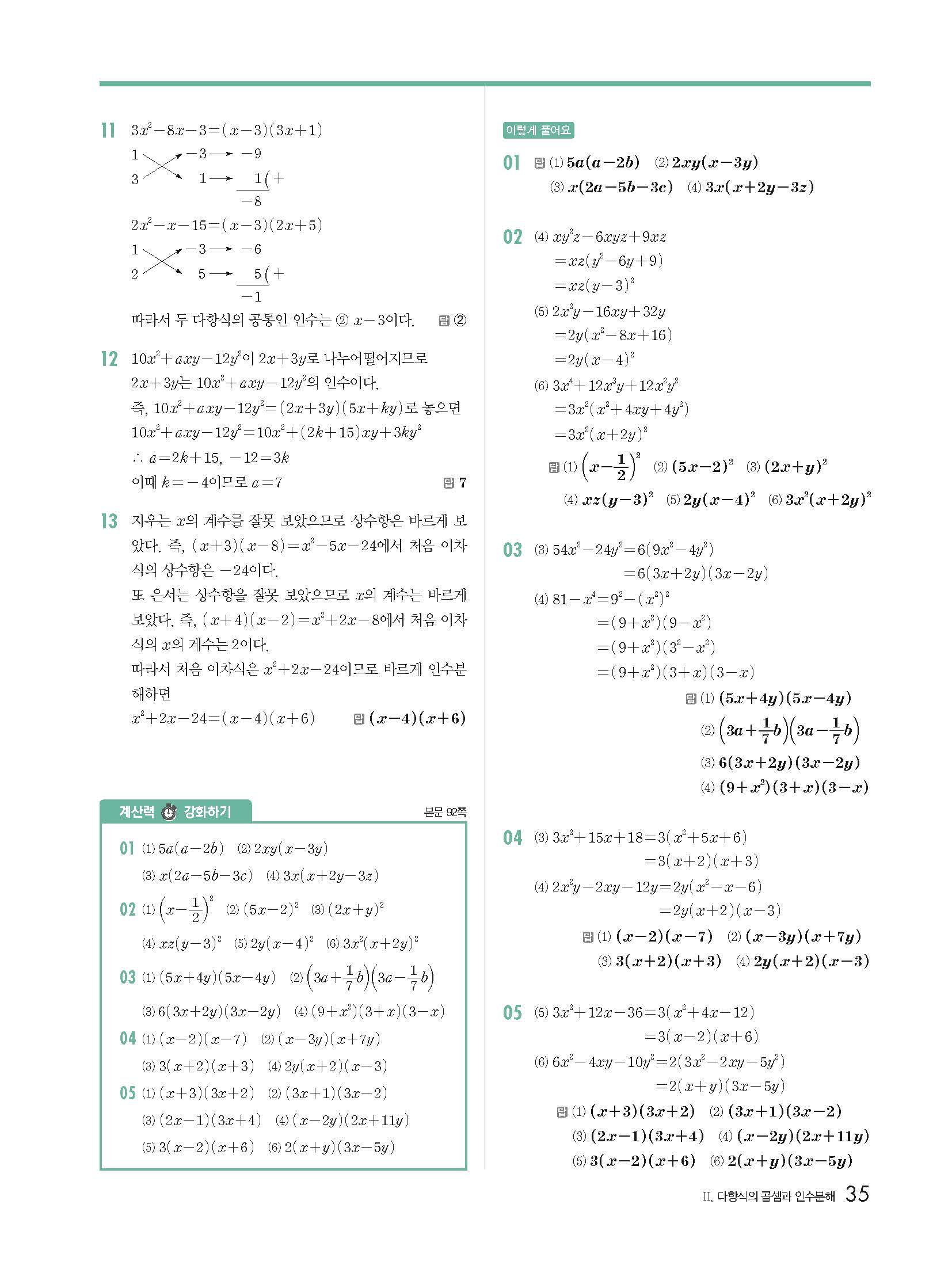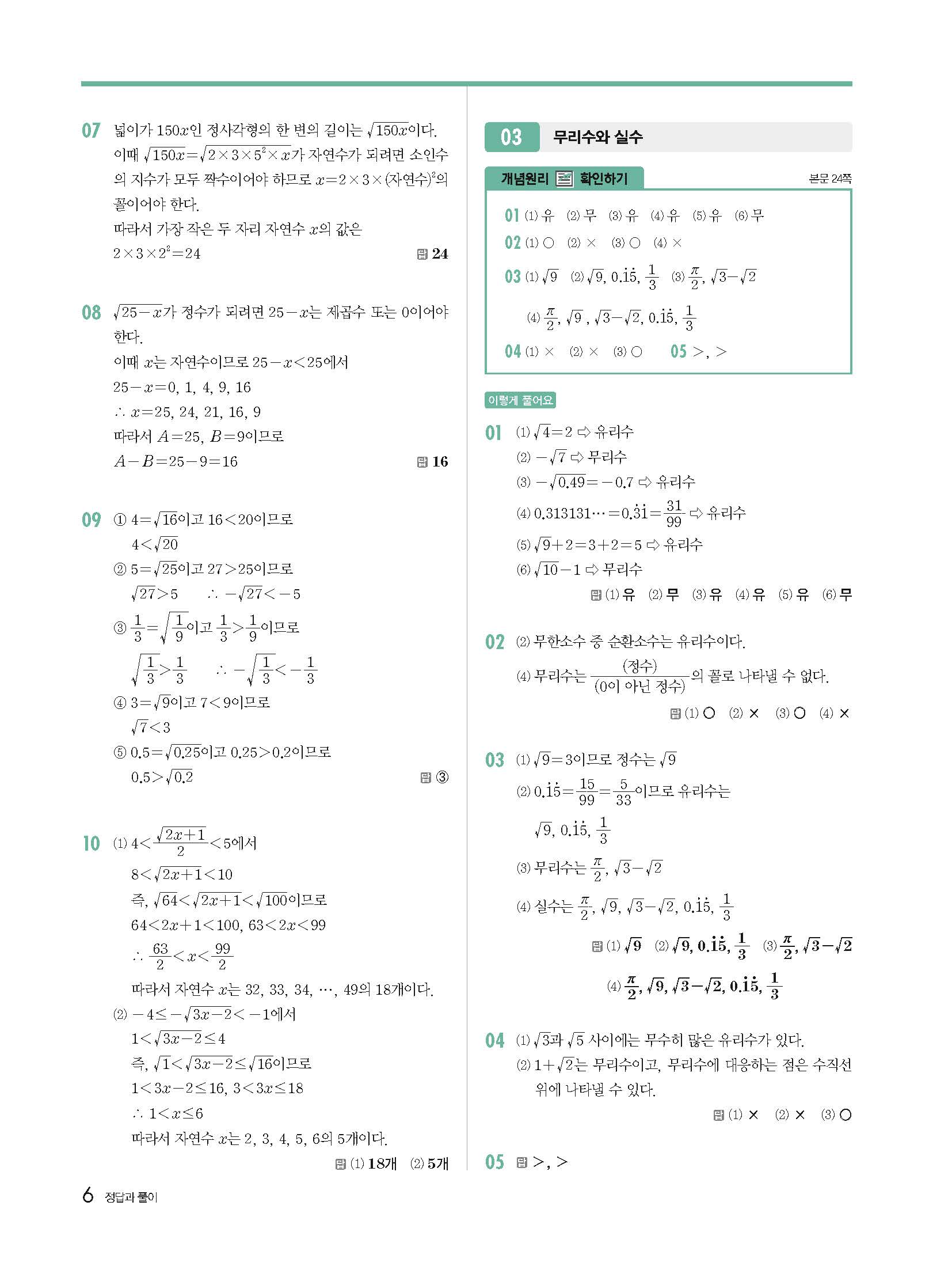 개념원리 중3상 3-1 빠른답지 해설지