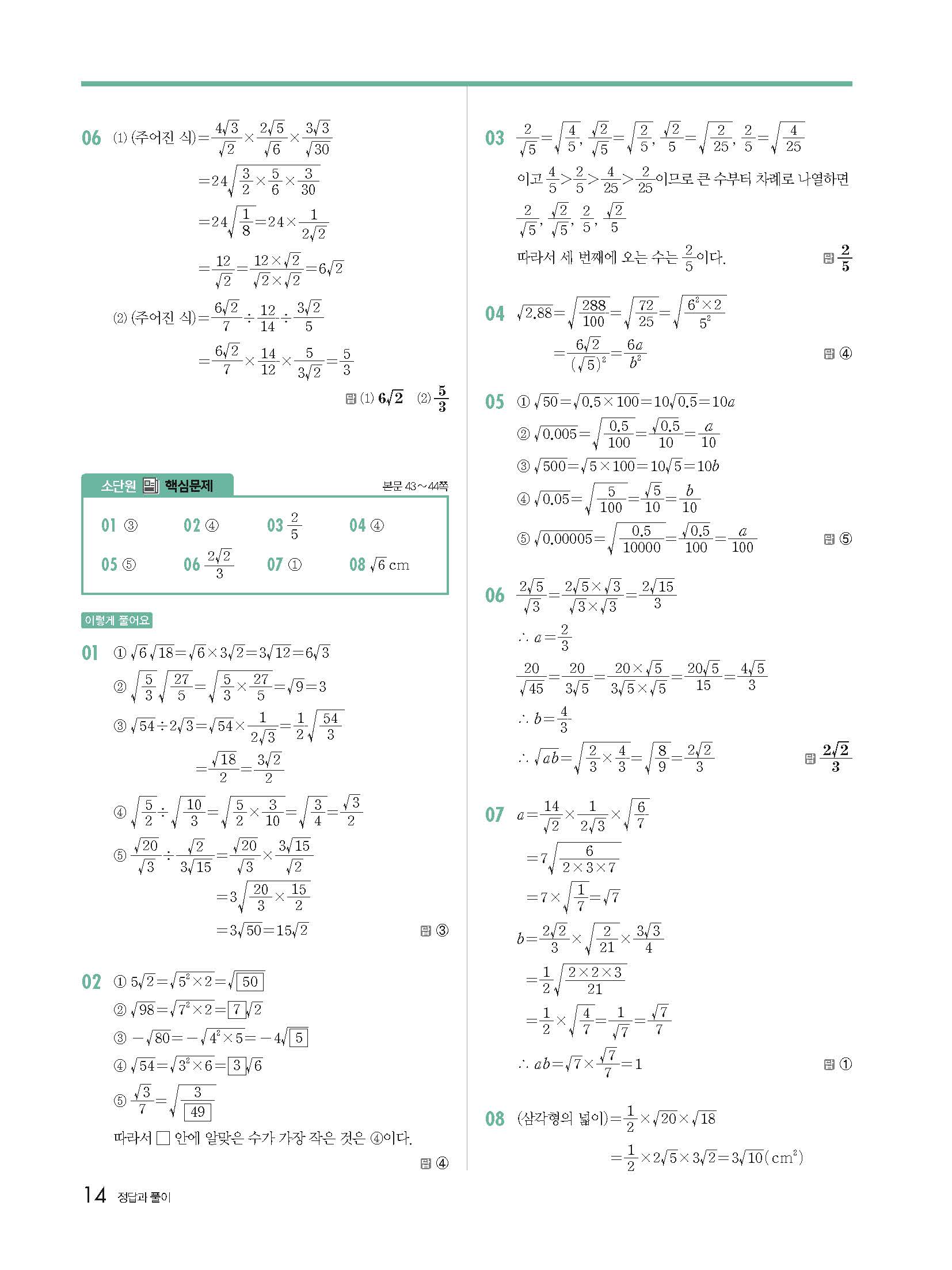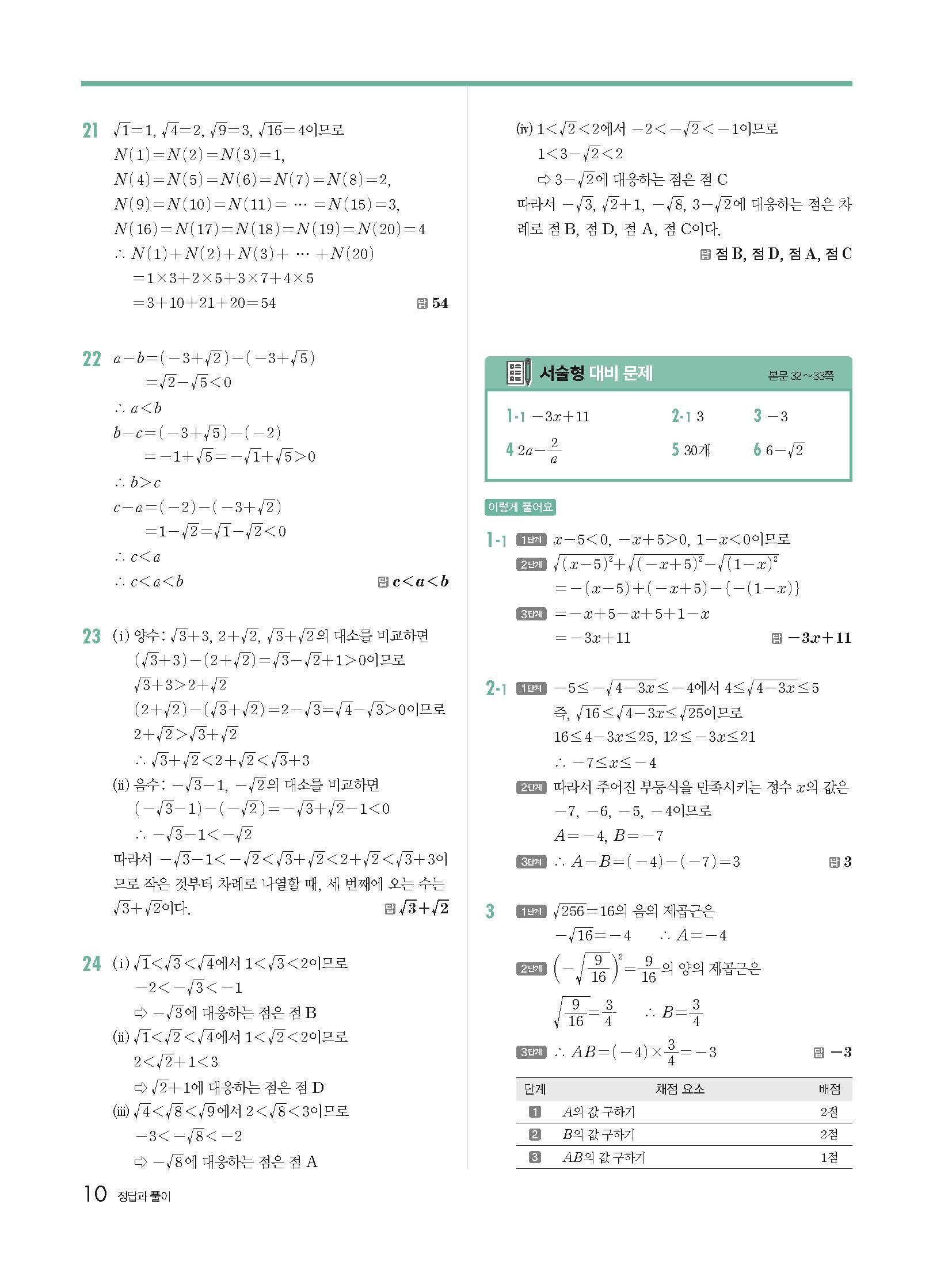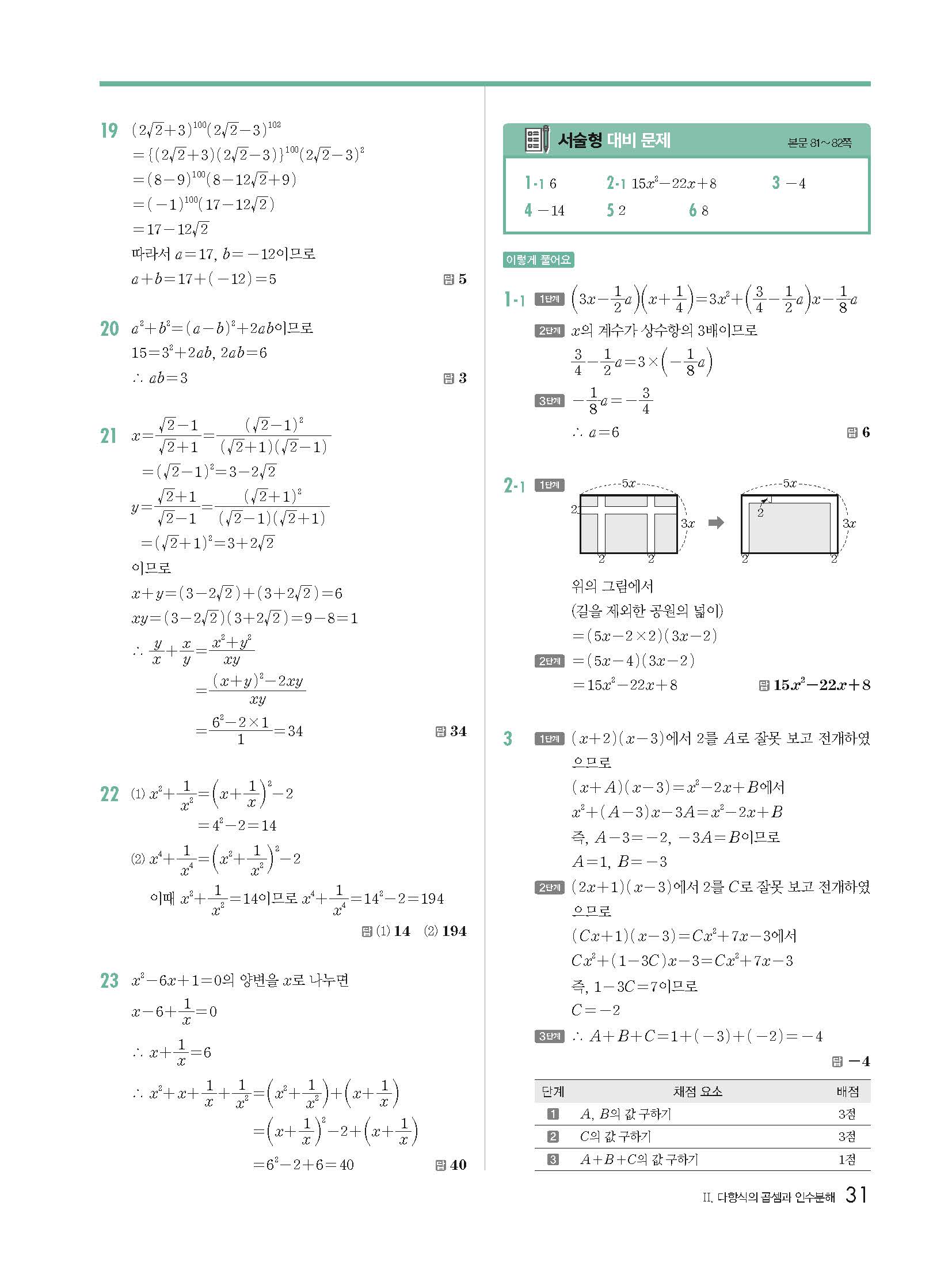 개념원리 중3하 3-1 빠른답지 해설지