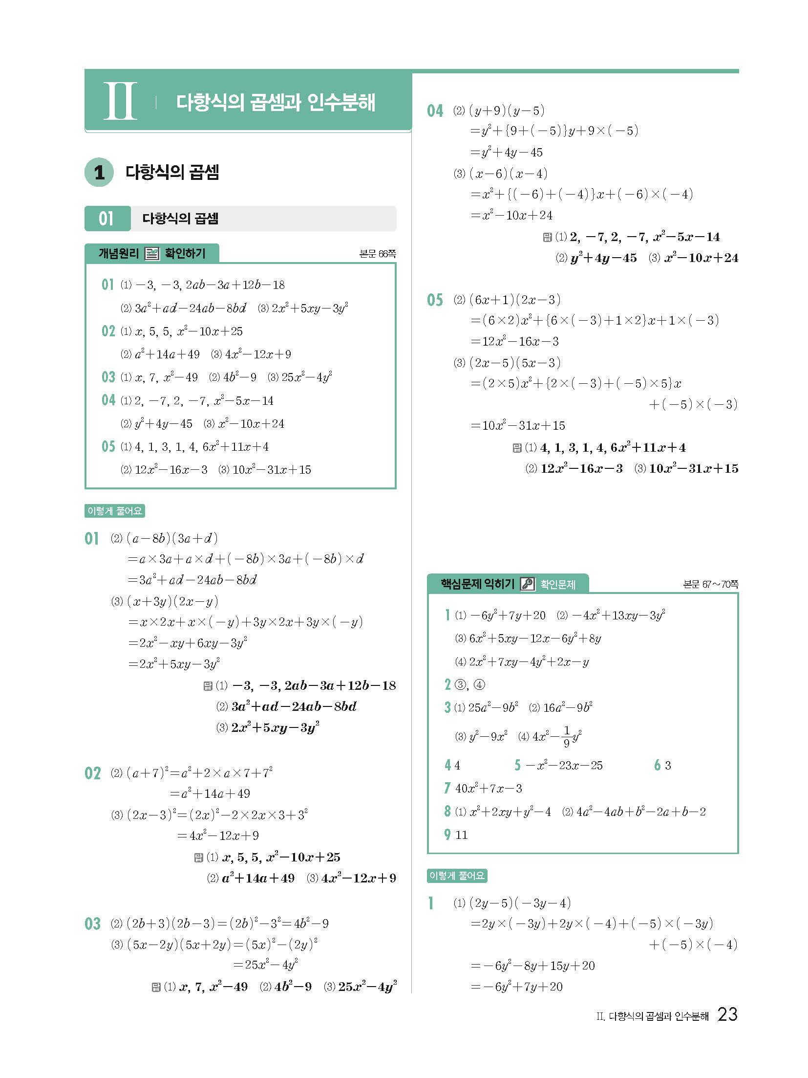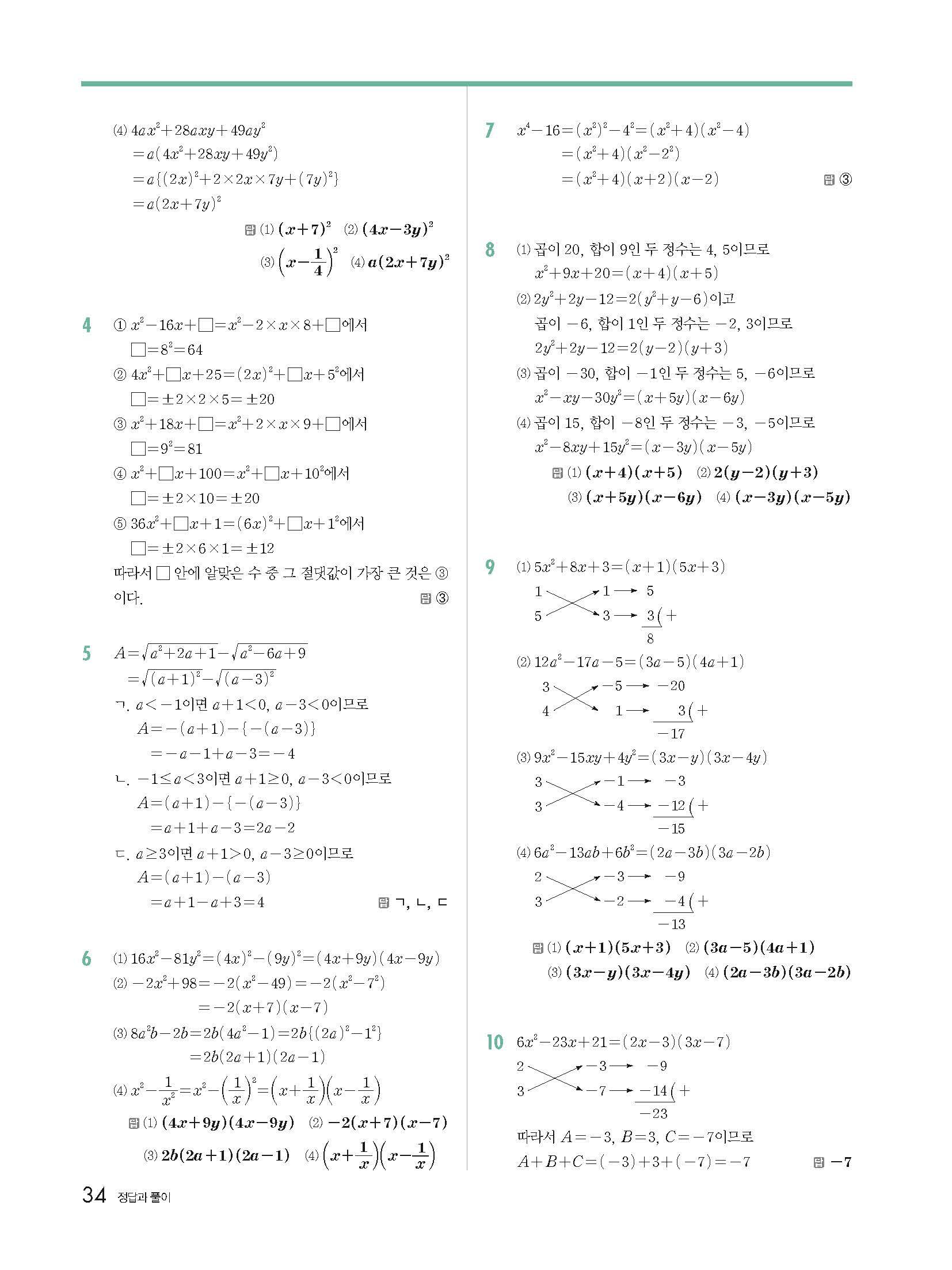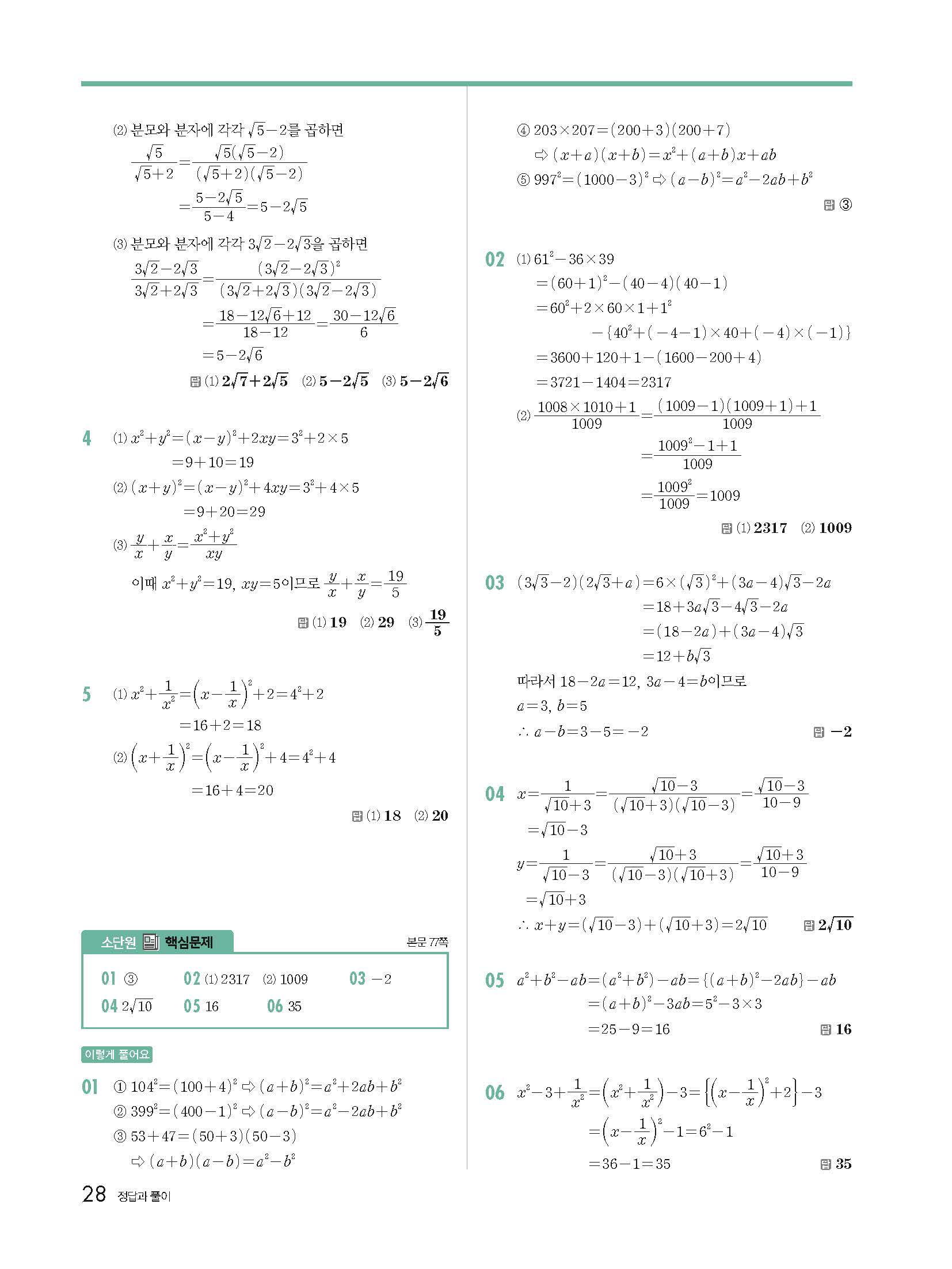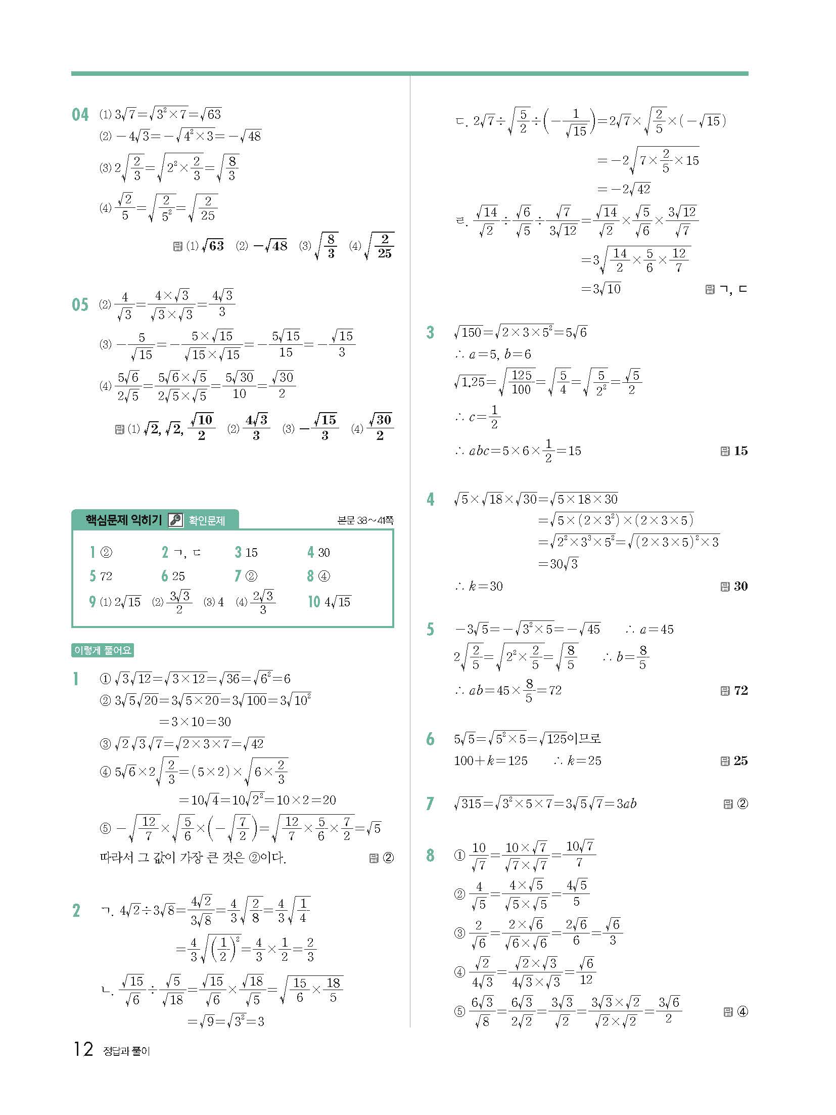 개념원리 중3하 3-1 빠른답지 해설지