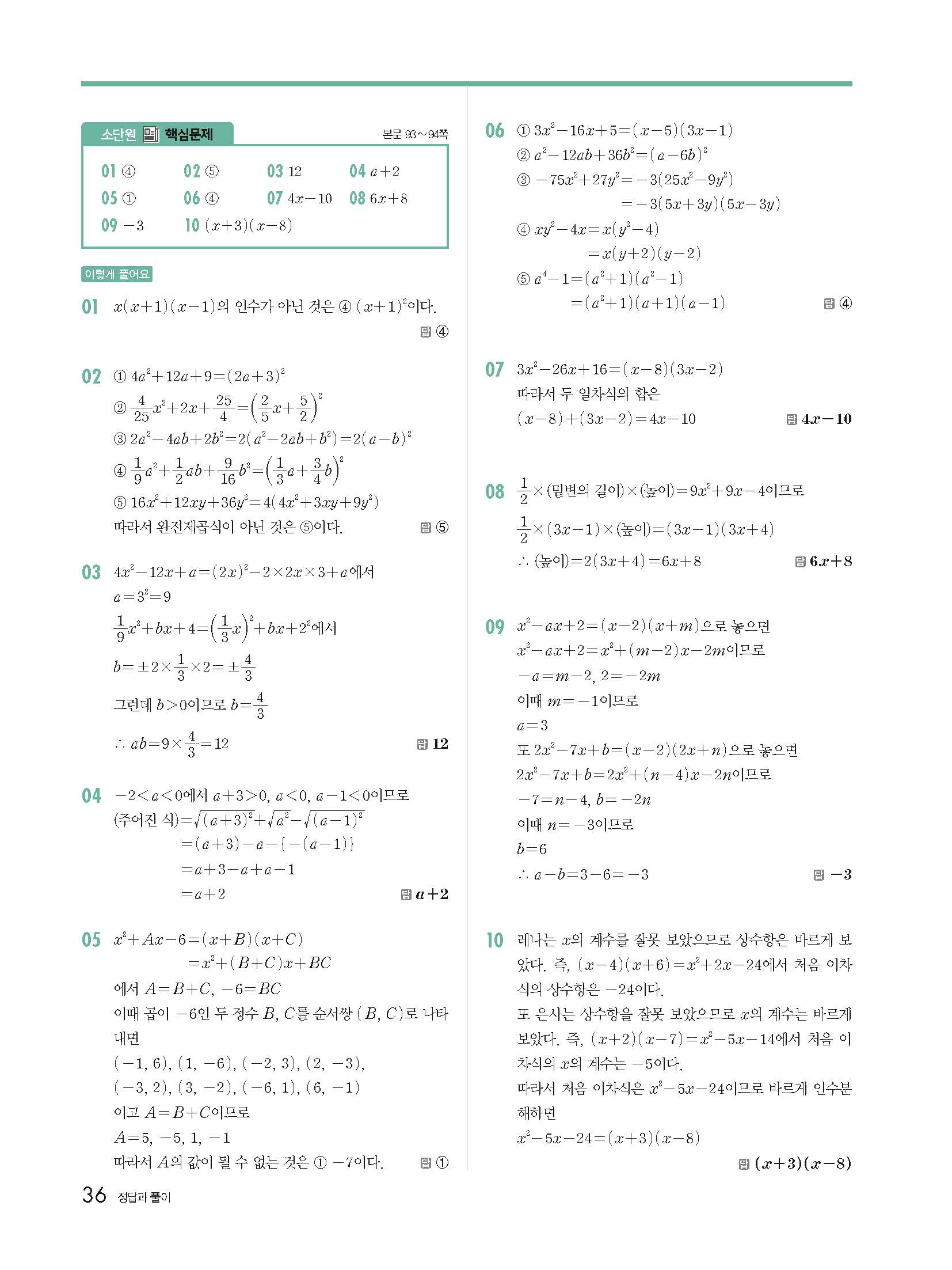 중등쎈 답지