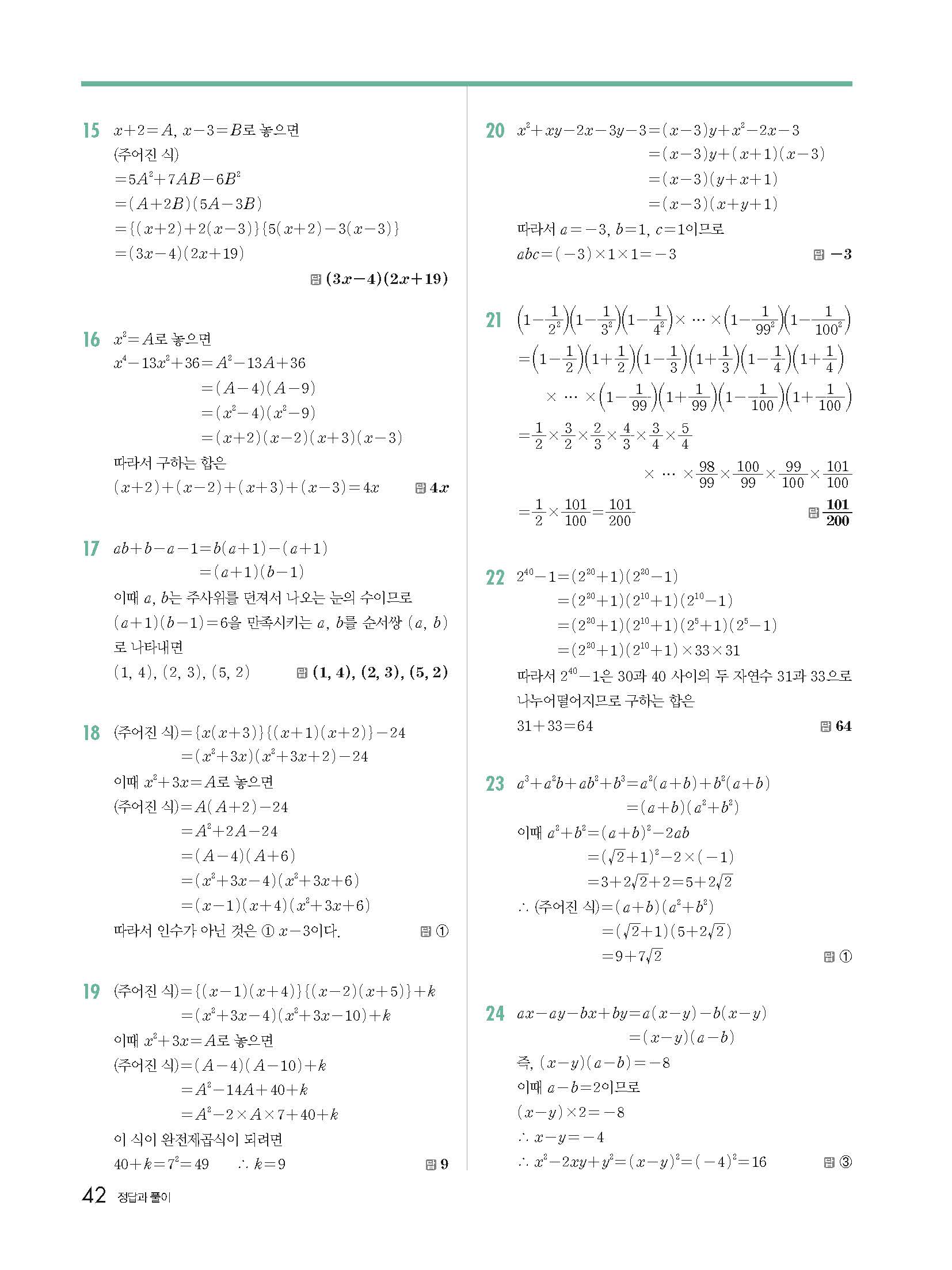 다운로드 받을필요 없이 바로 볼수 있는 모바일에 최적화된 답지 입니다