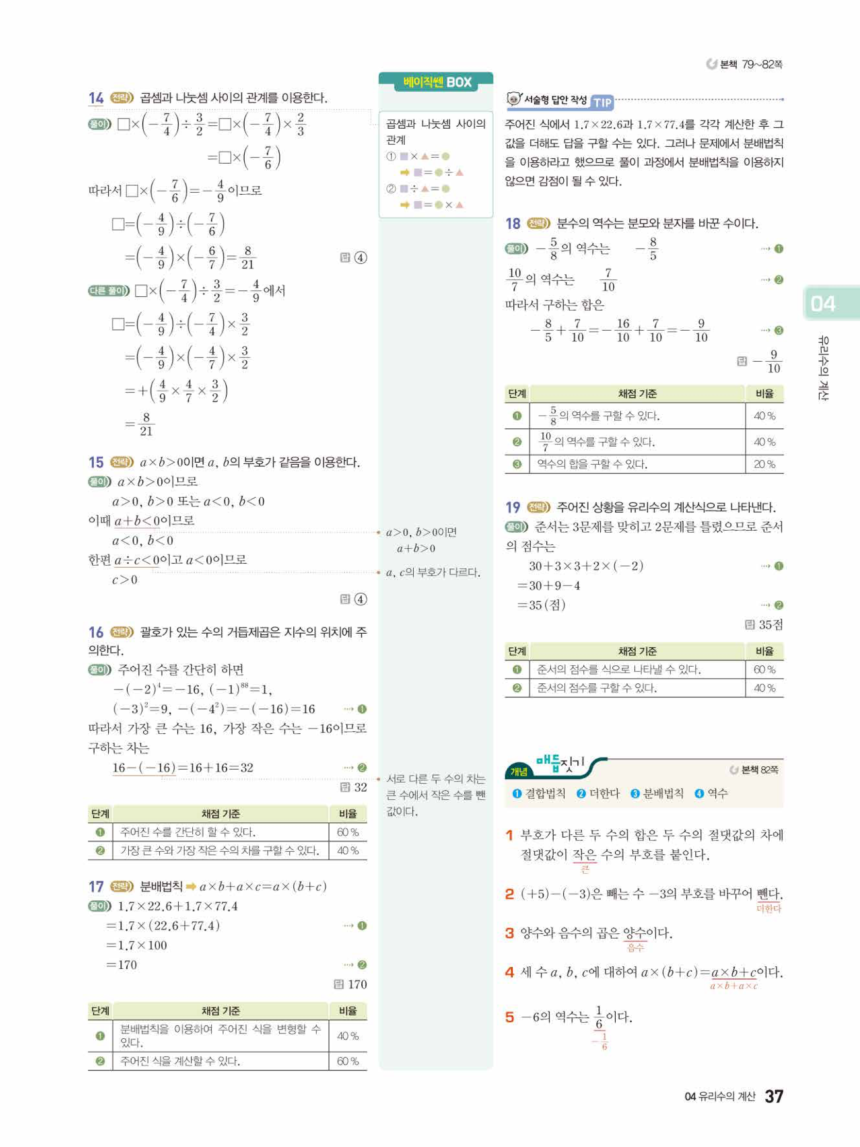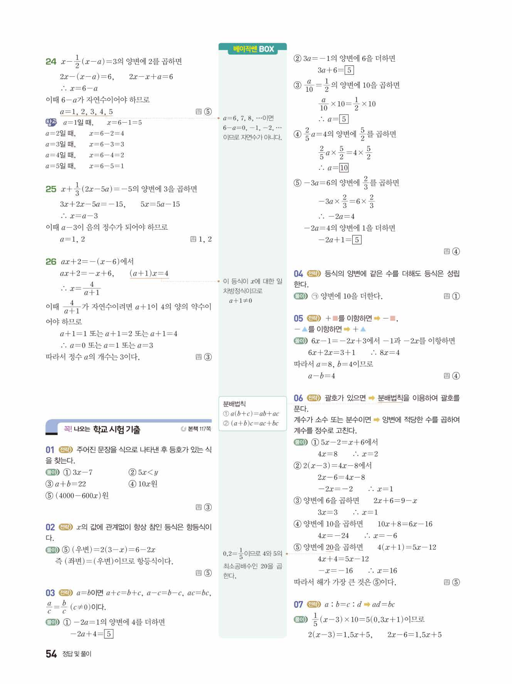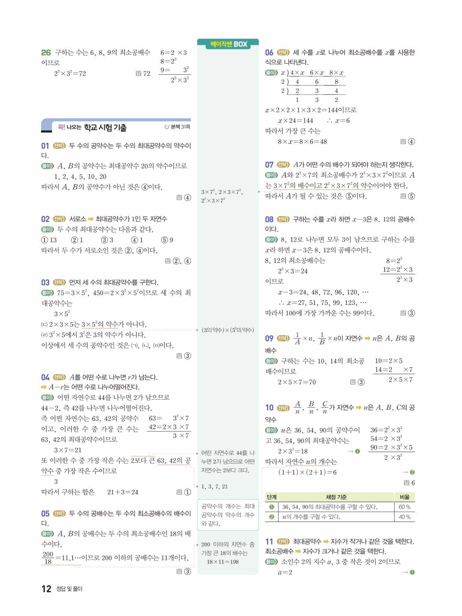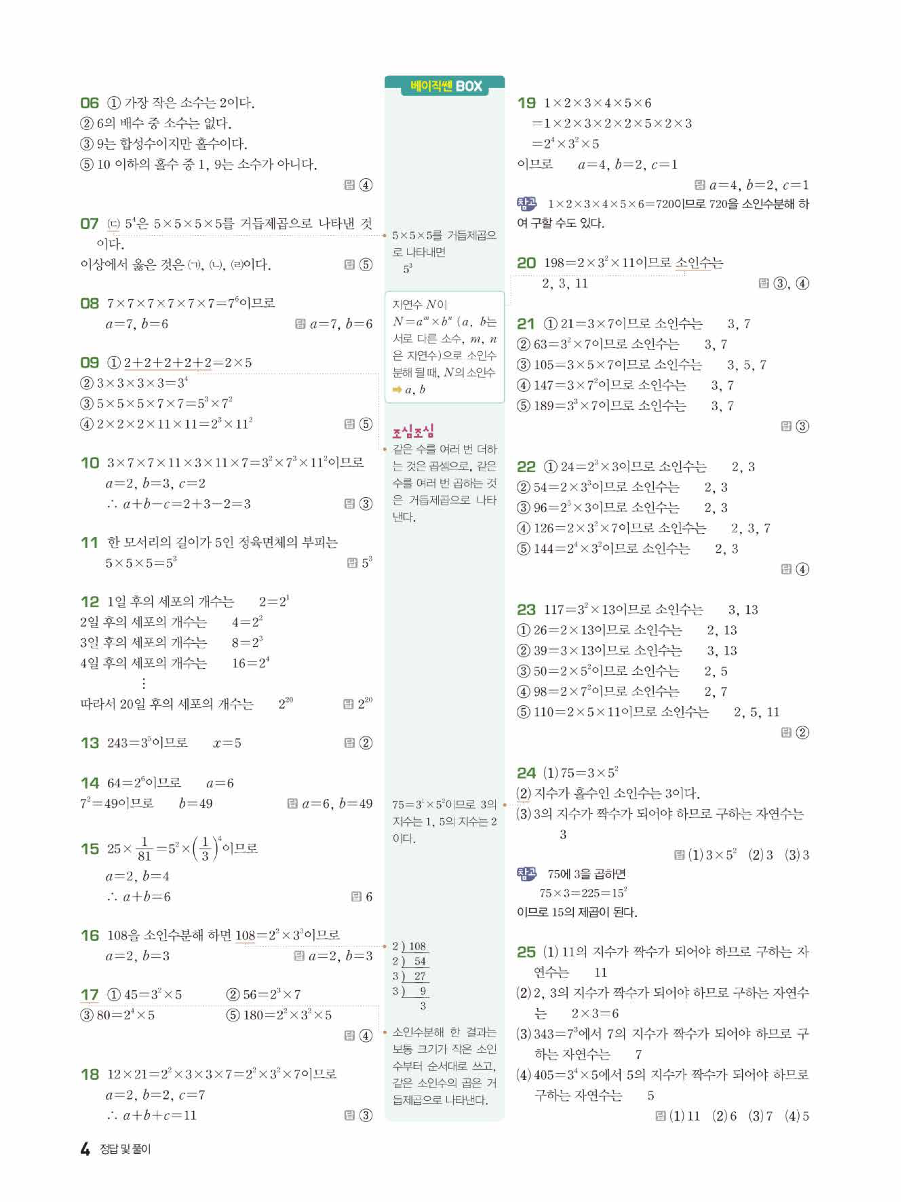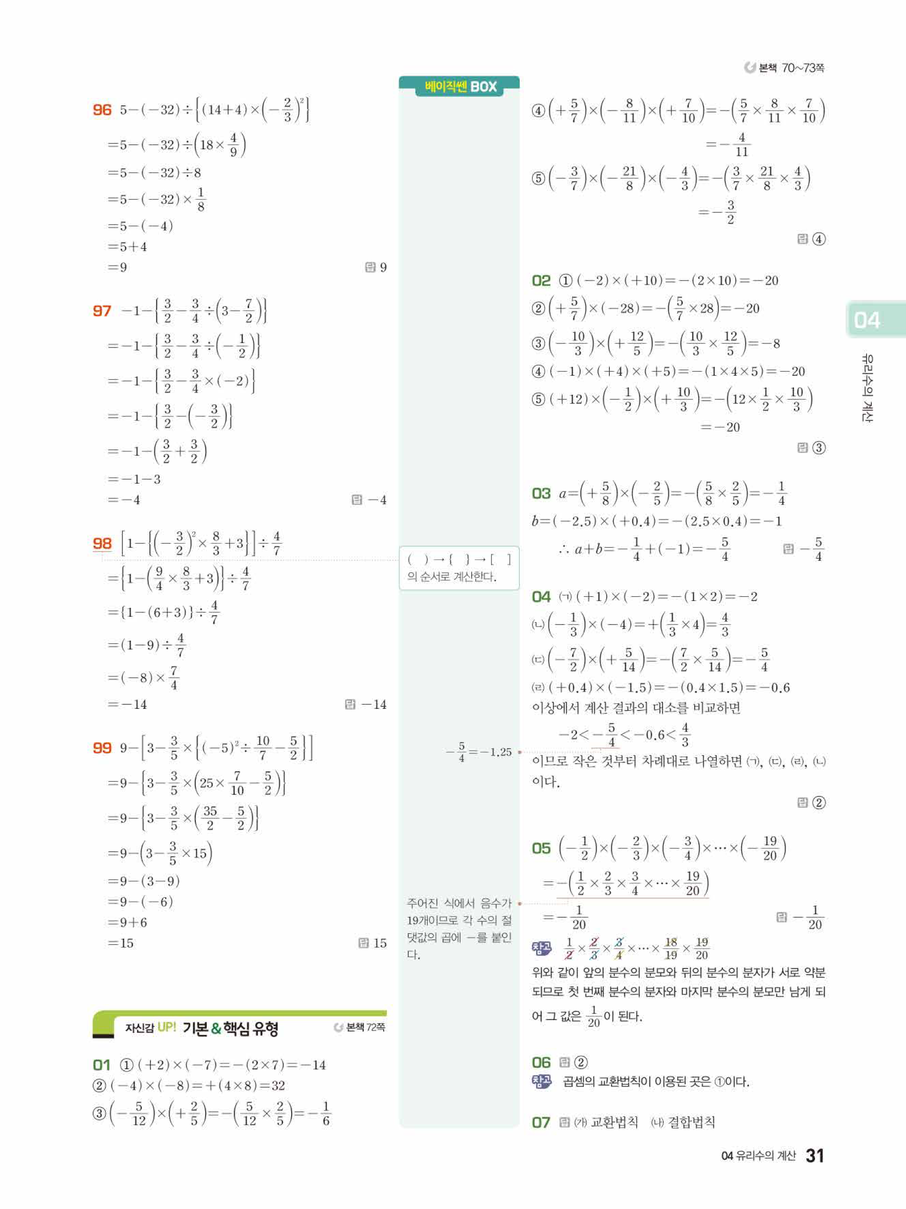 2. 베이직쎈 중등 1학년 1학기(1-1) 답지와 해설 자료