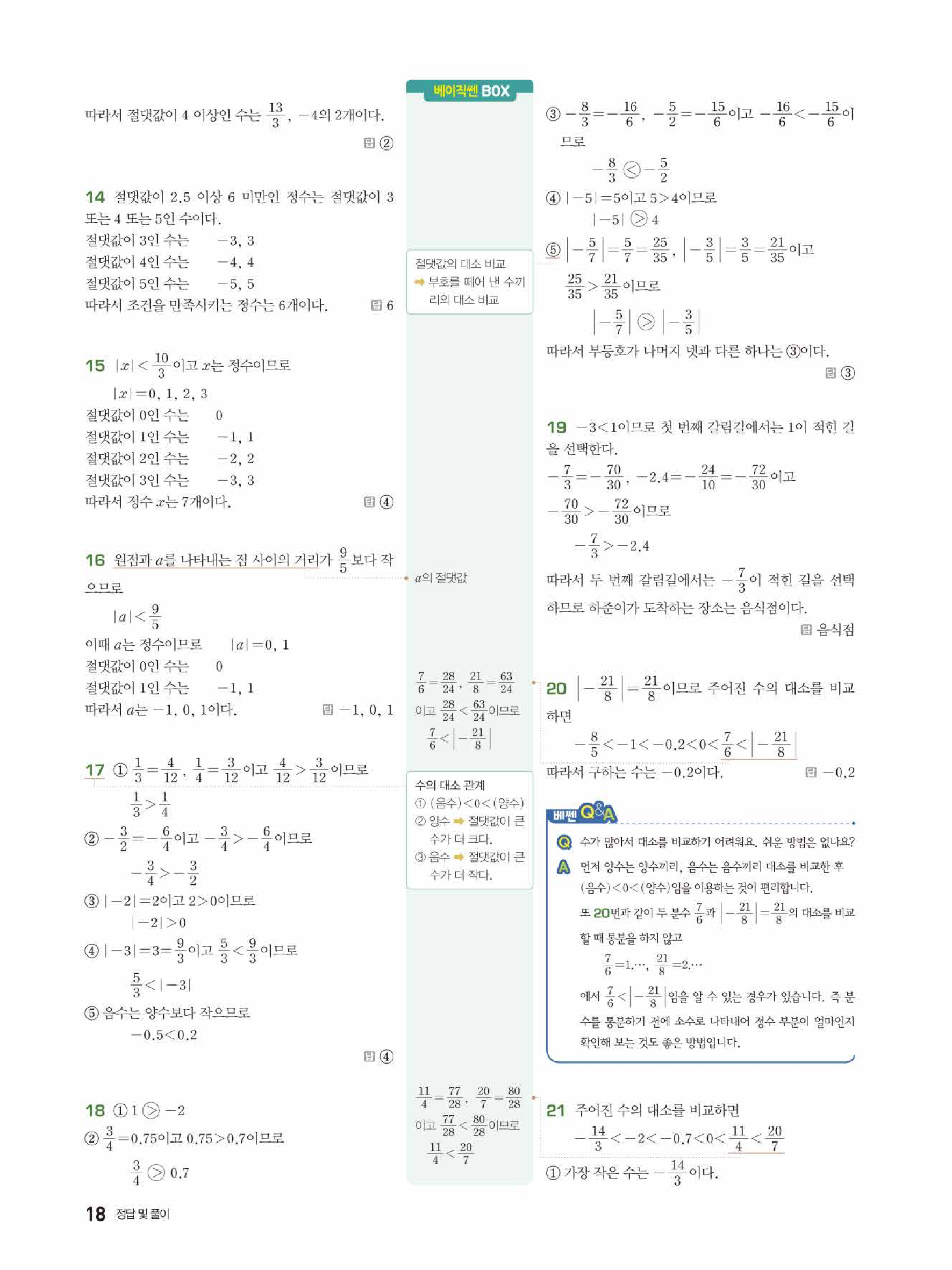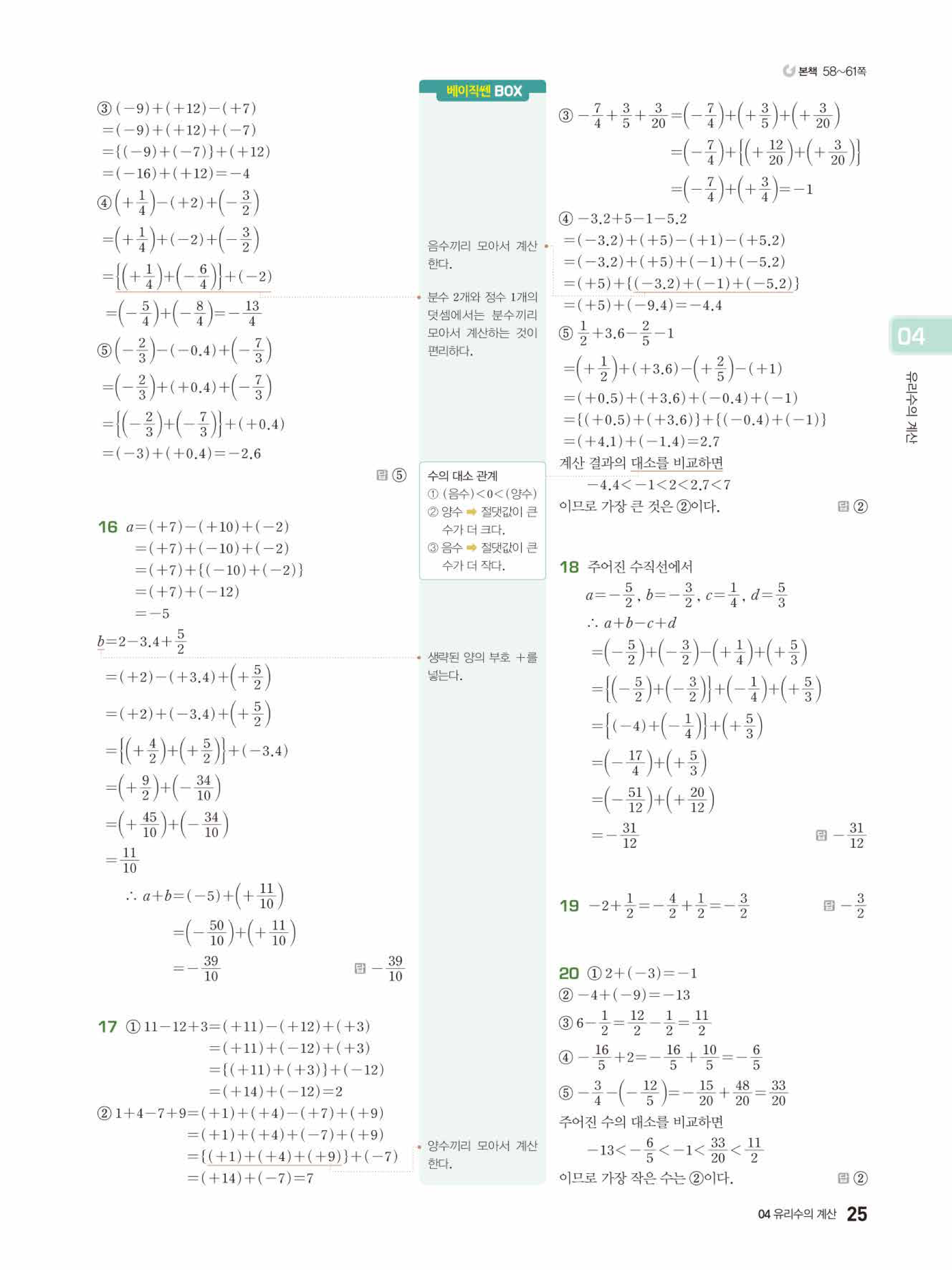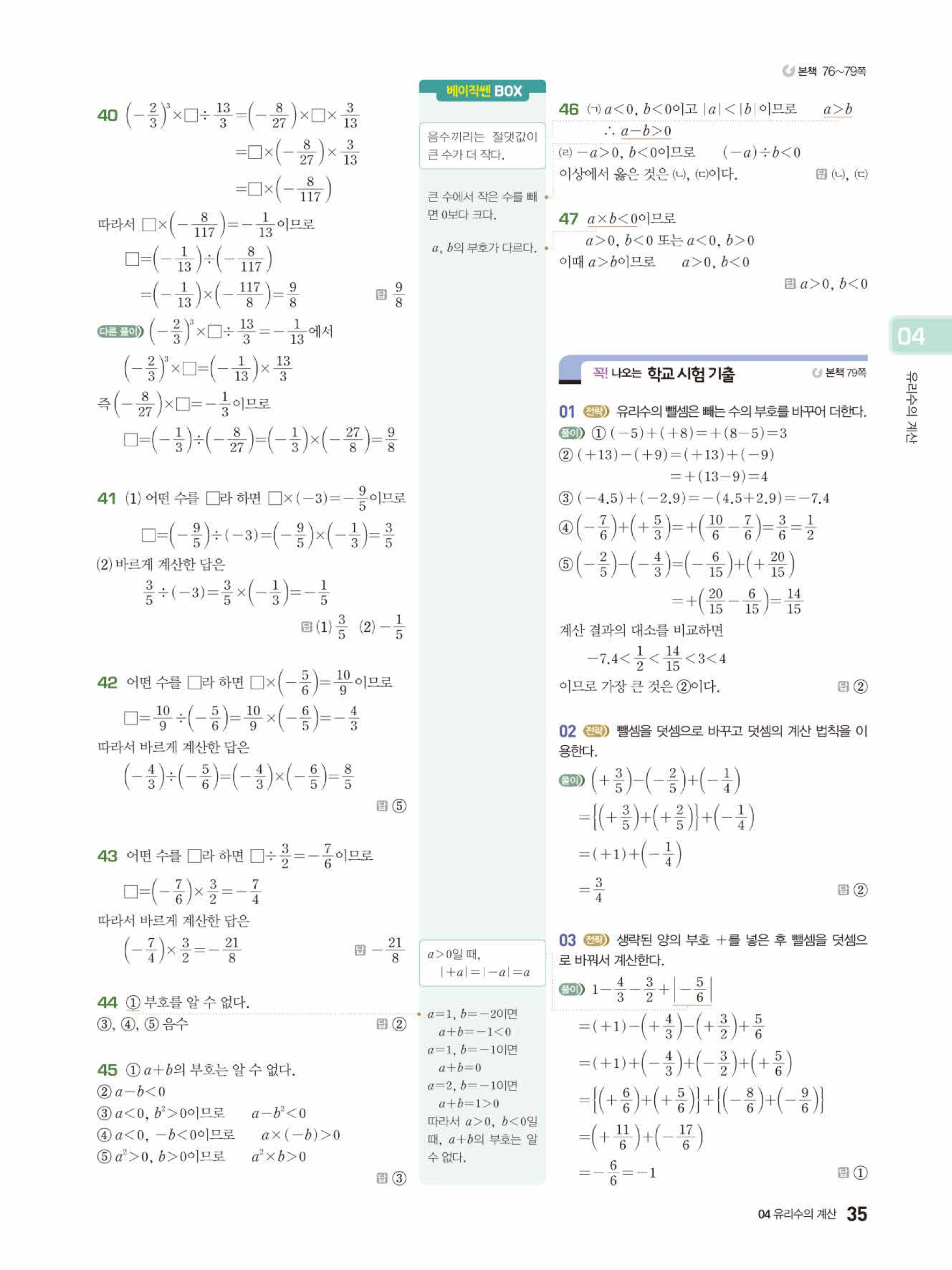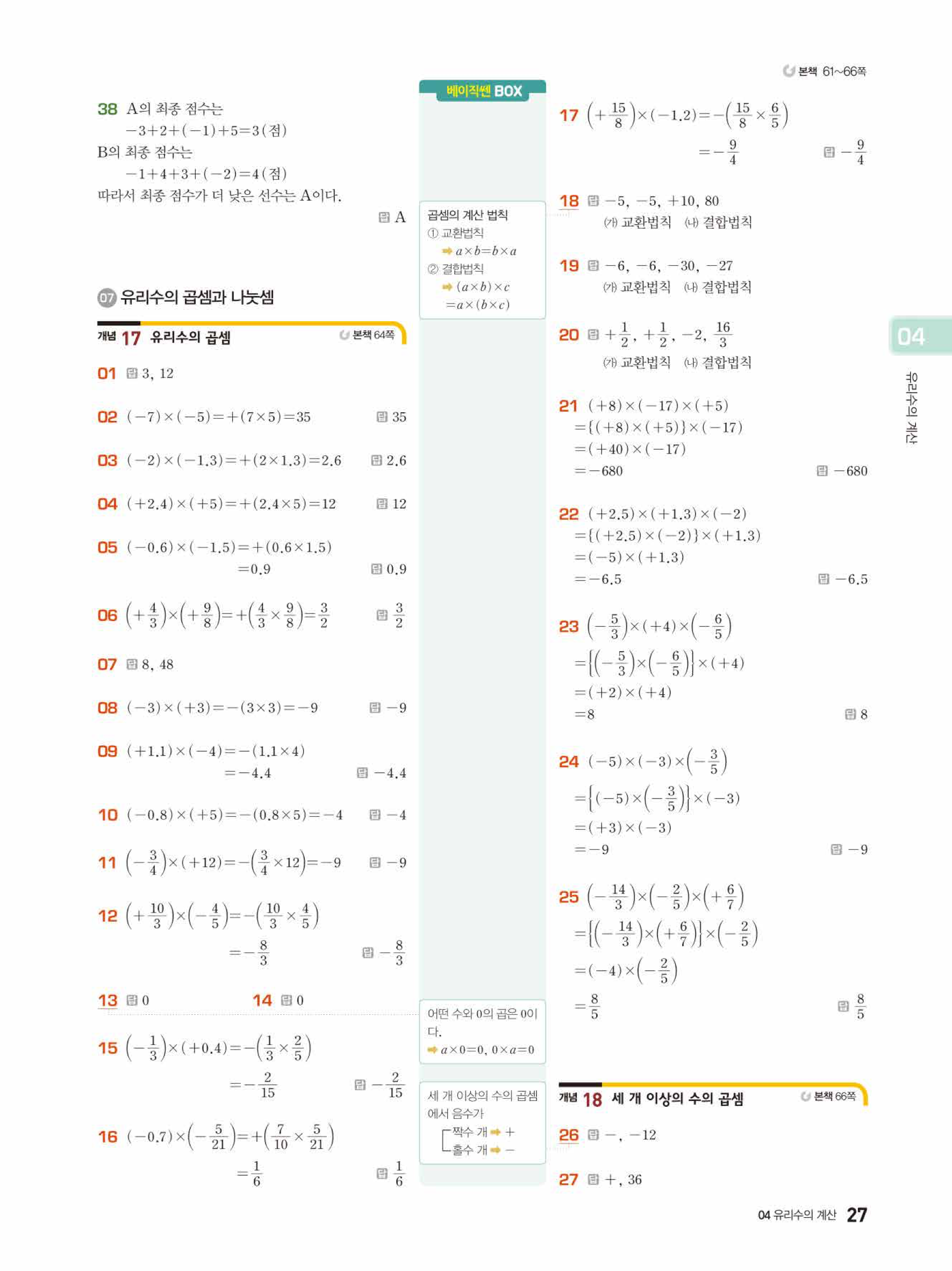 2. 베이직쎈 중등 1학년 1학기(1-1) 답지와 해설 자료