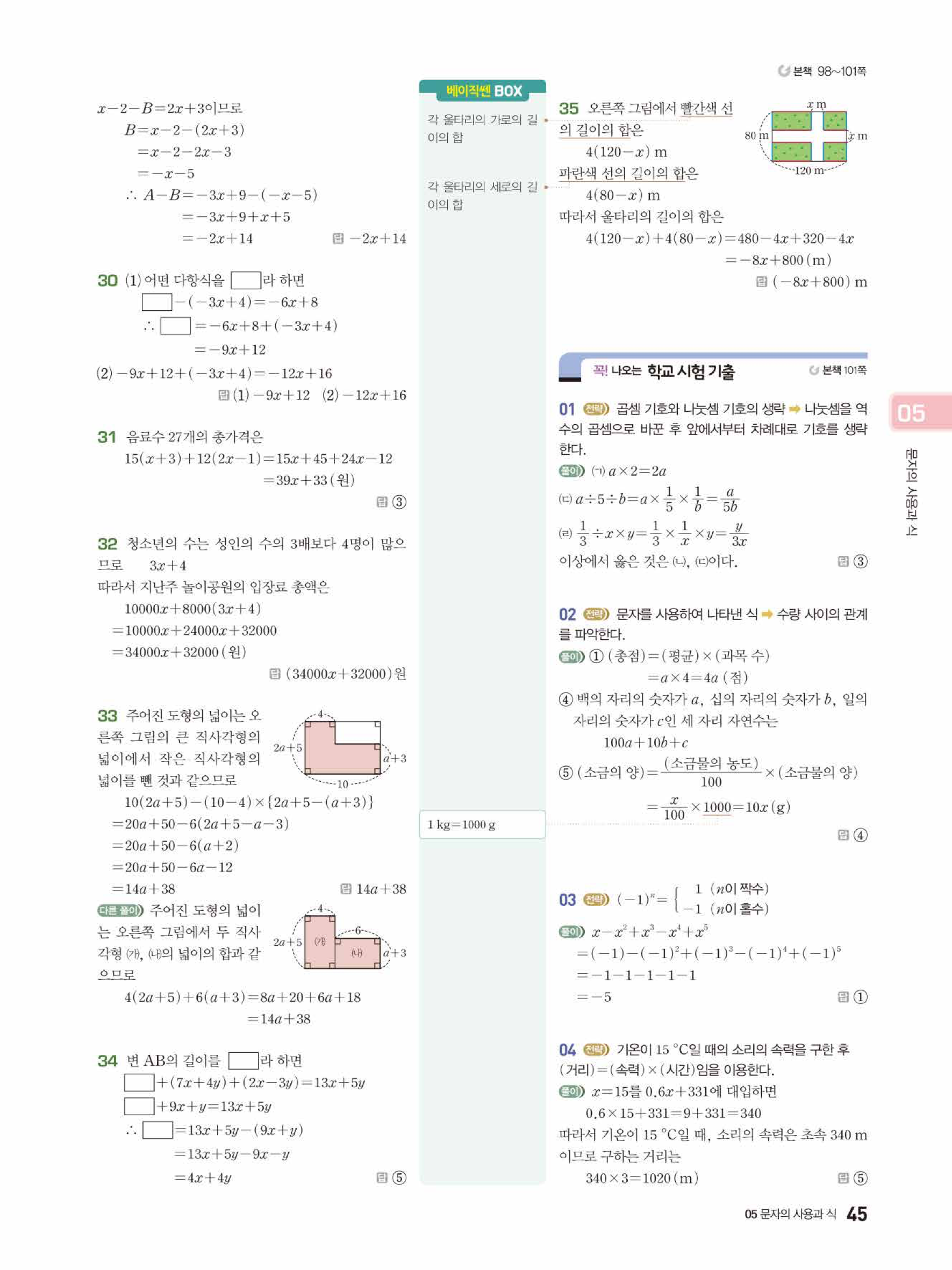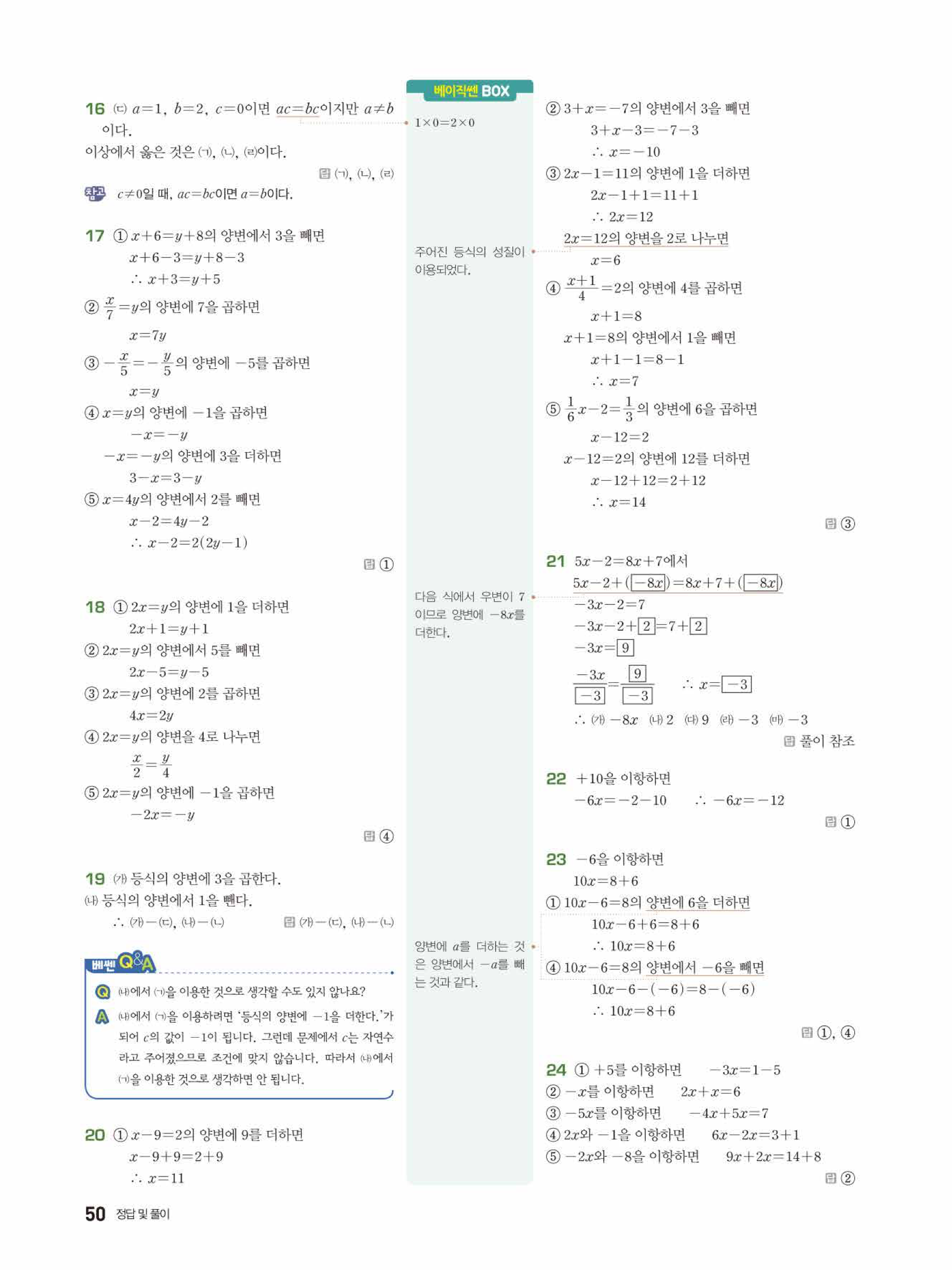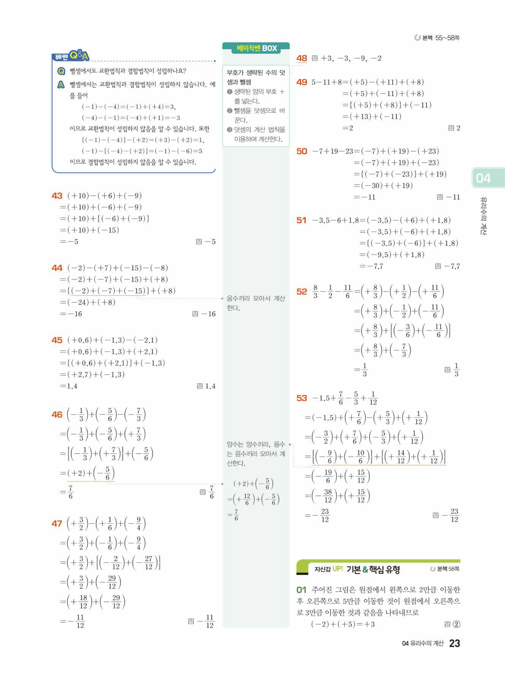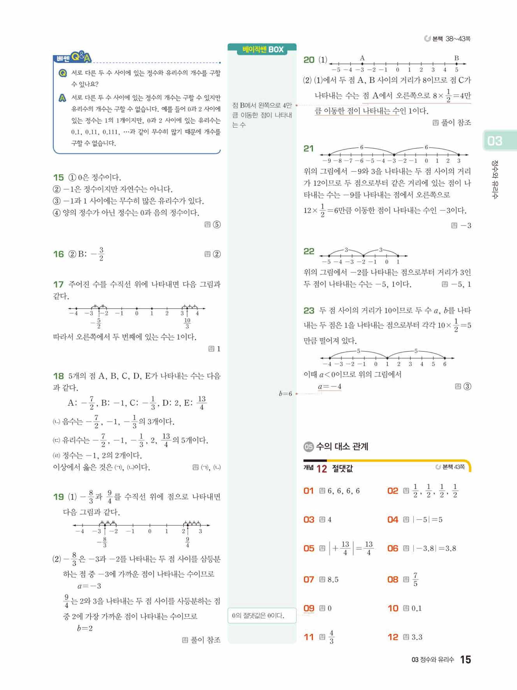 2. 베이직쎈 중등 1학년 1학기(1-1) 답지와 해설 자료