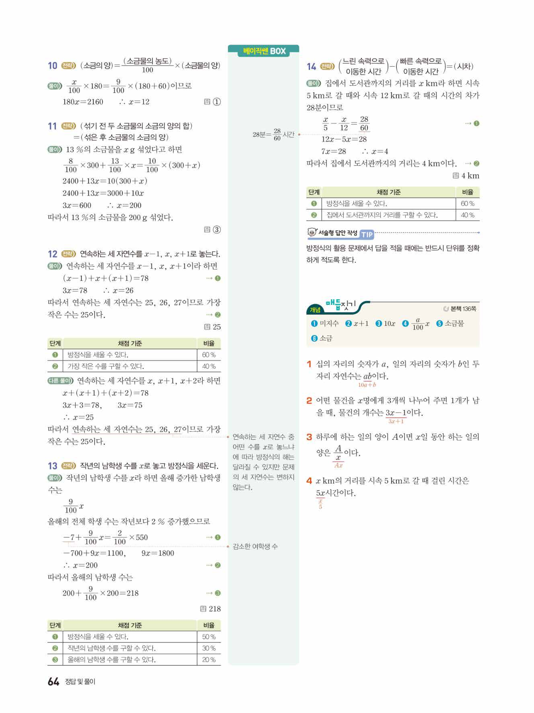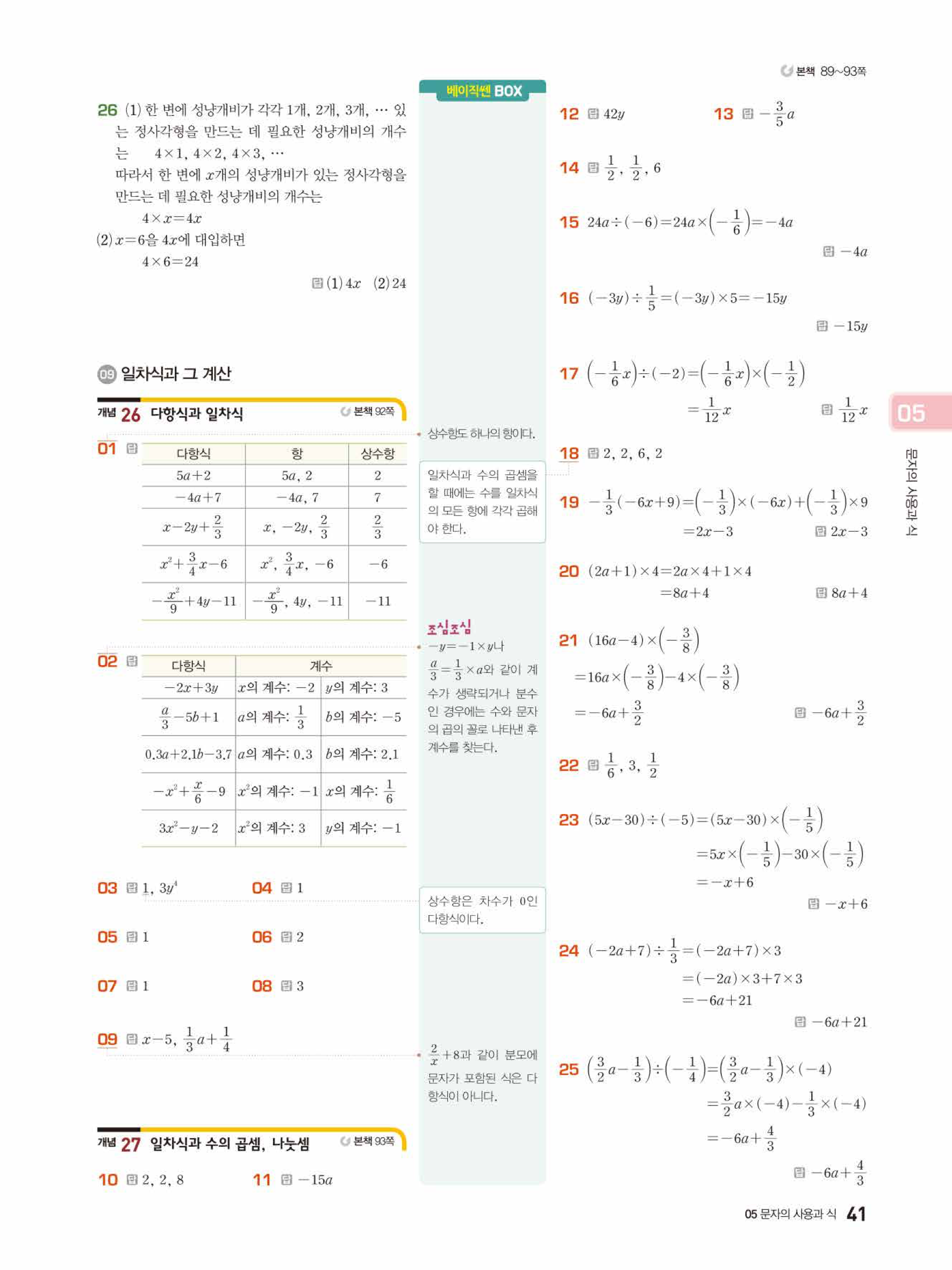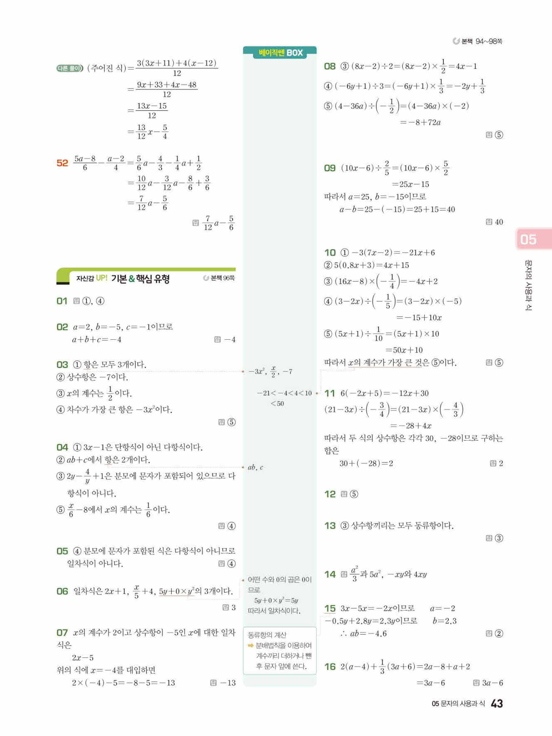 학습 후 자신의 풀이를 점검하려면 베이직쎈 1학년 1학기(1-1) 답지를 활용하세요.