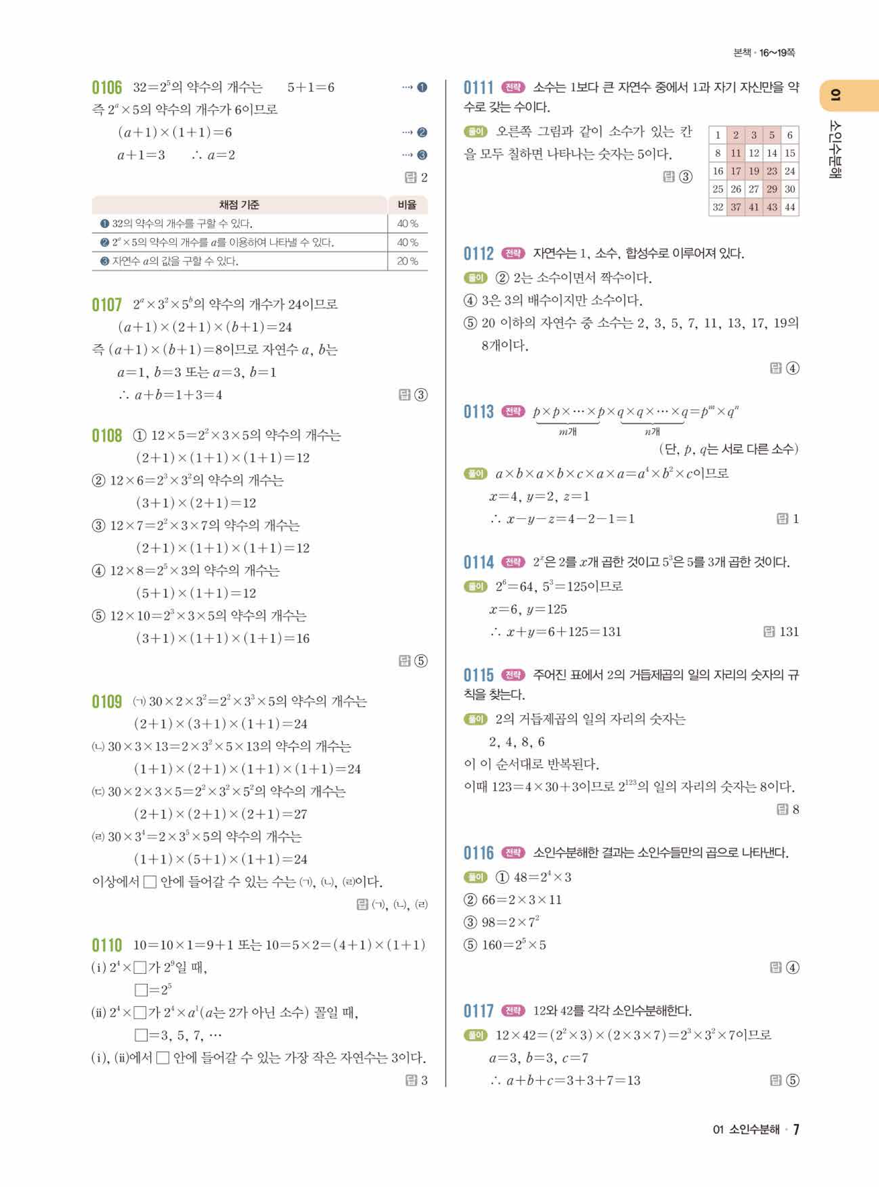2. 라이트쎈 중등 1학년 1학기(1-1) 답지와 해설 자료
