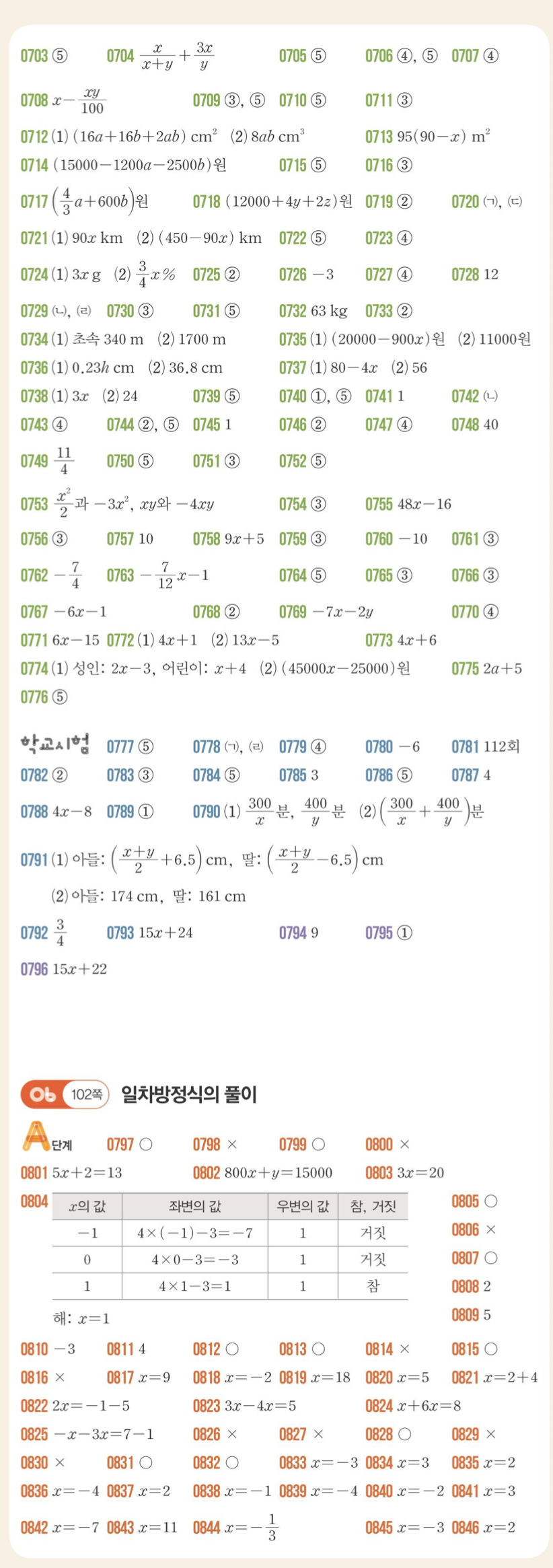 문제를 푼 후 풀이 과정을 검토하려면 라이트쎈 1학년 1학기(1-1) 답지를 활용하세요.
