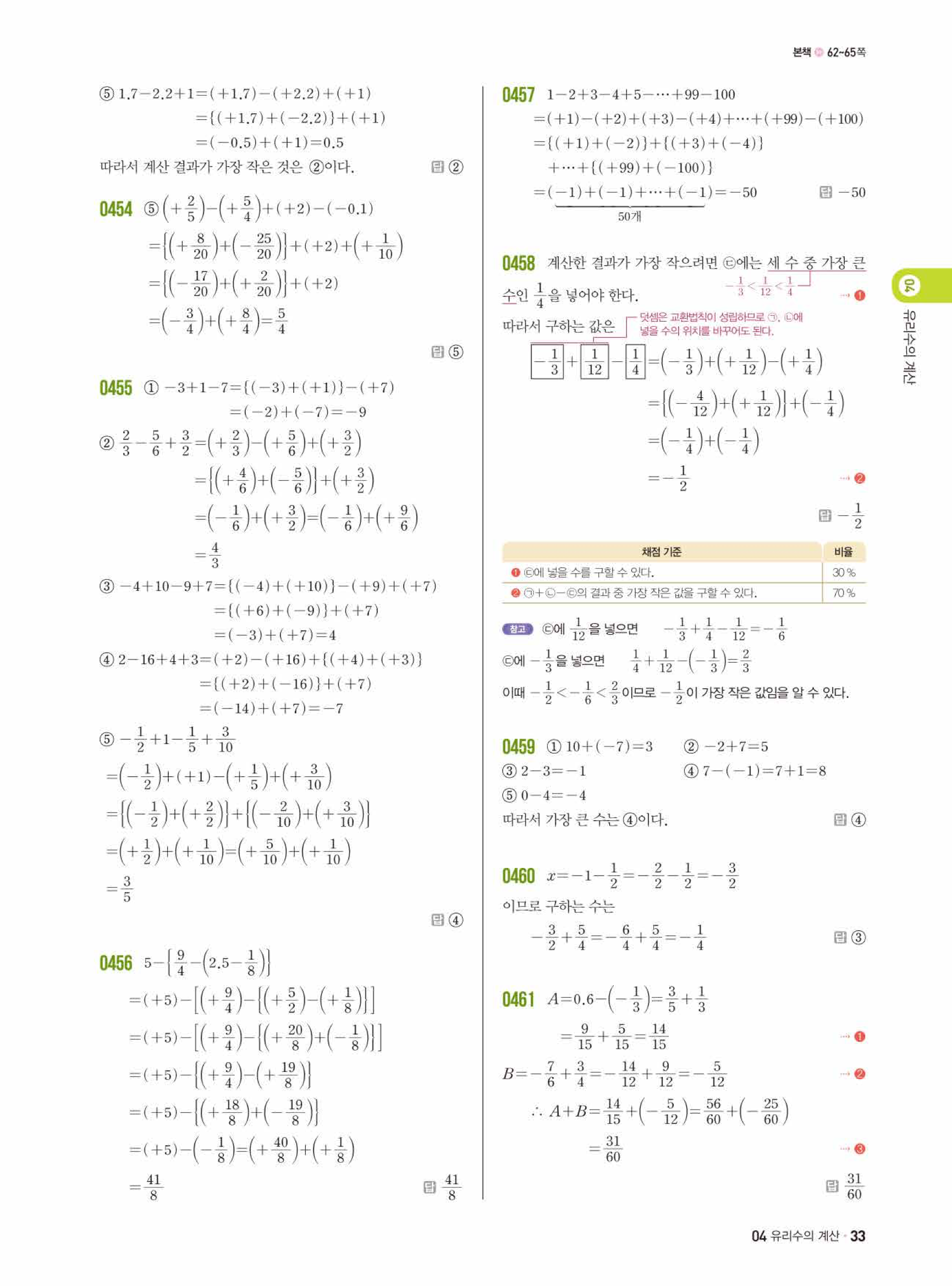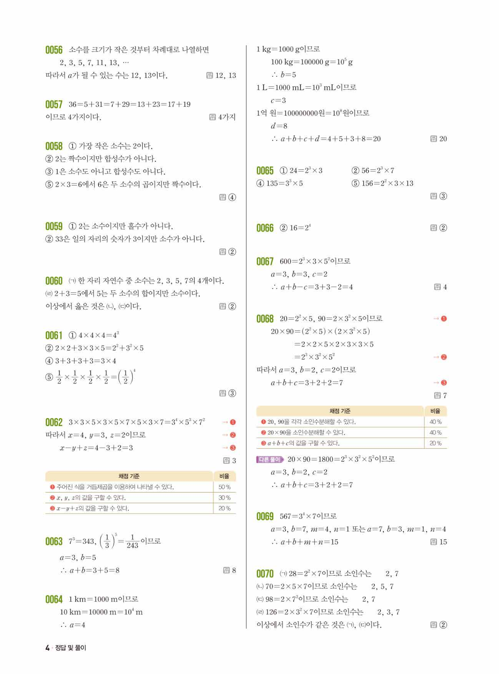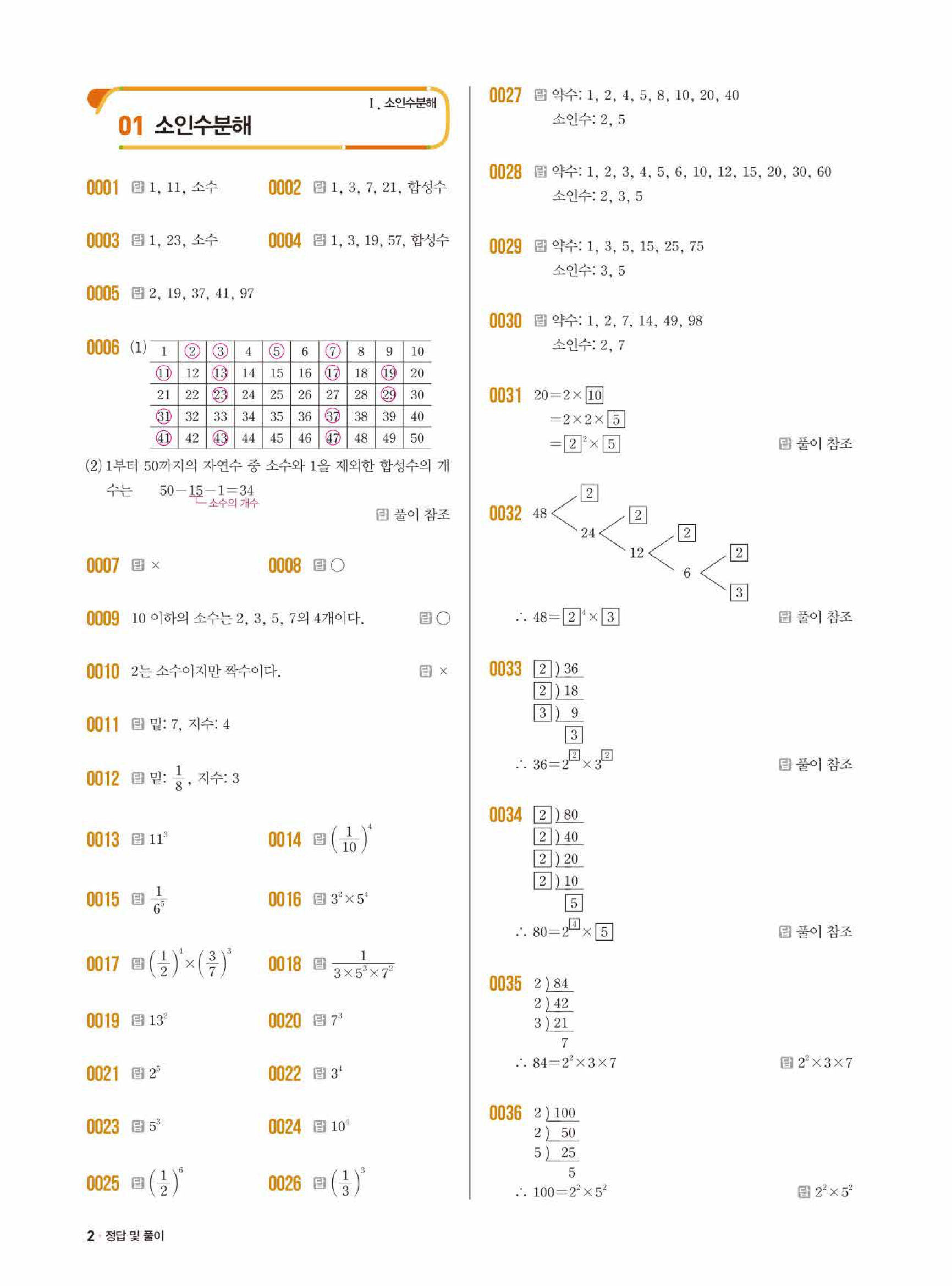 2. 쎈수학 중등 1학년 1학기(1-1) 답지와 해설 자료