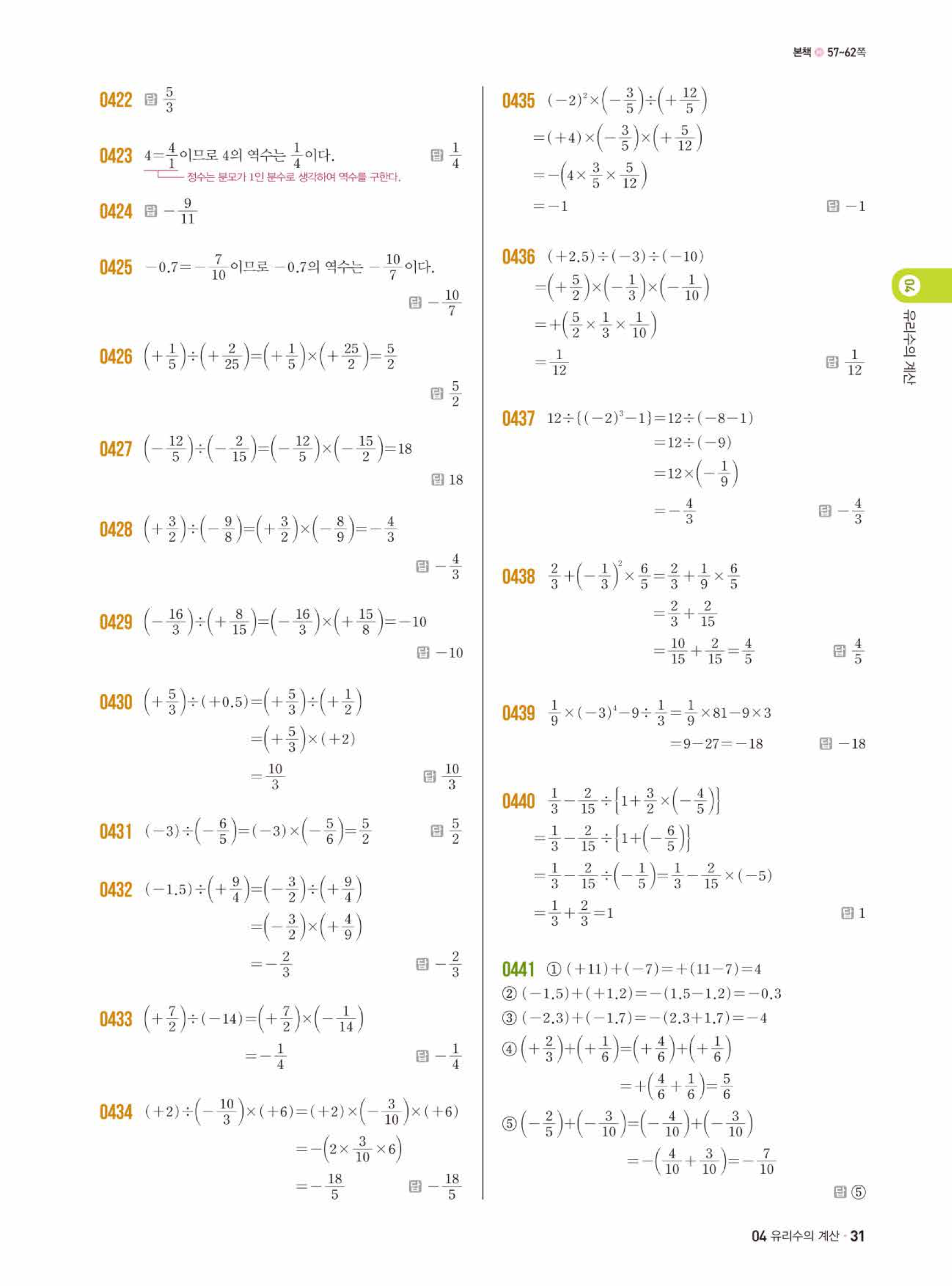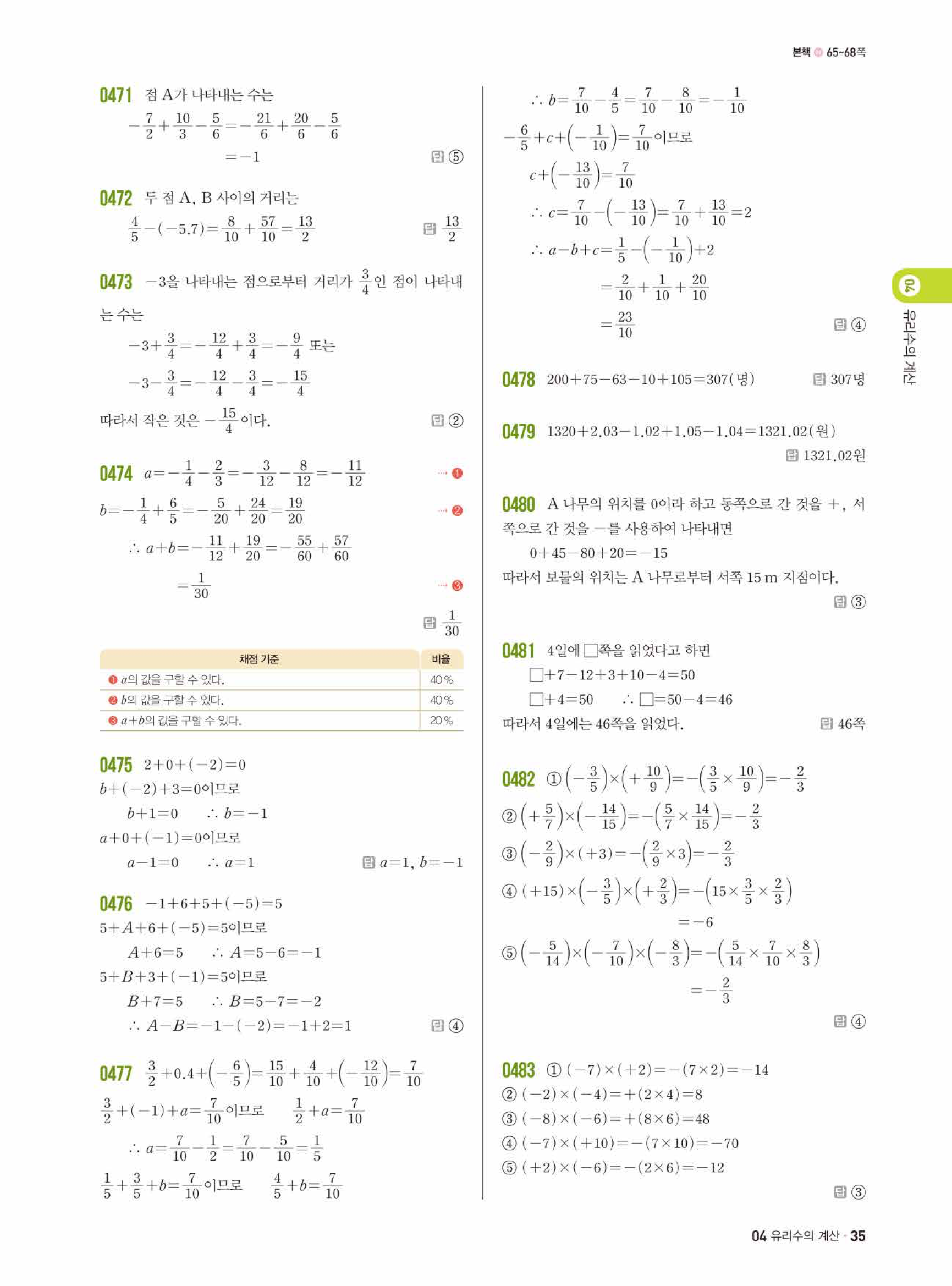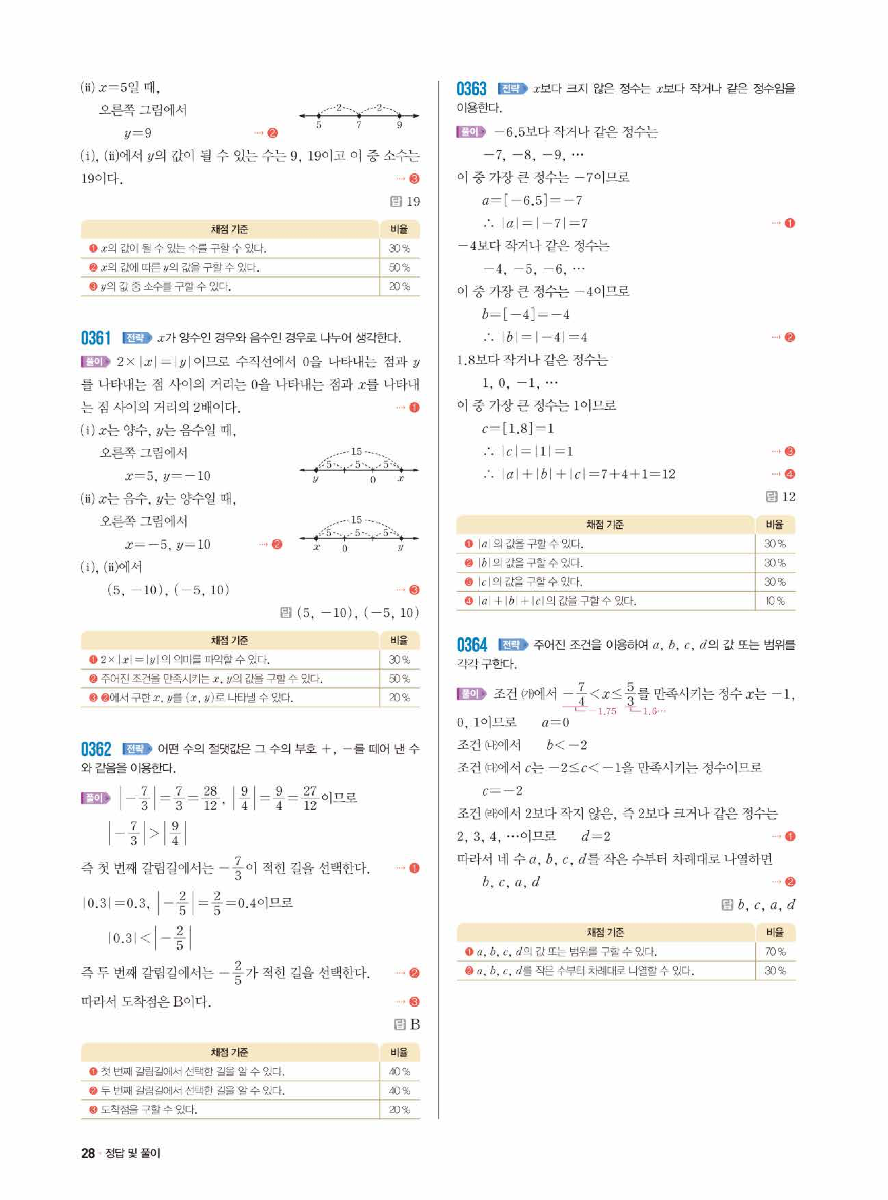 2. 쎈수학 중등 1학년 1학기(1-1) 답지와 해설 자료