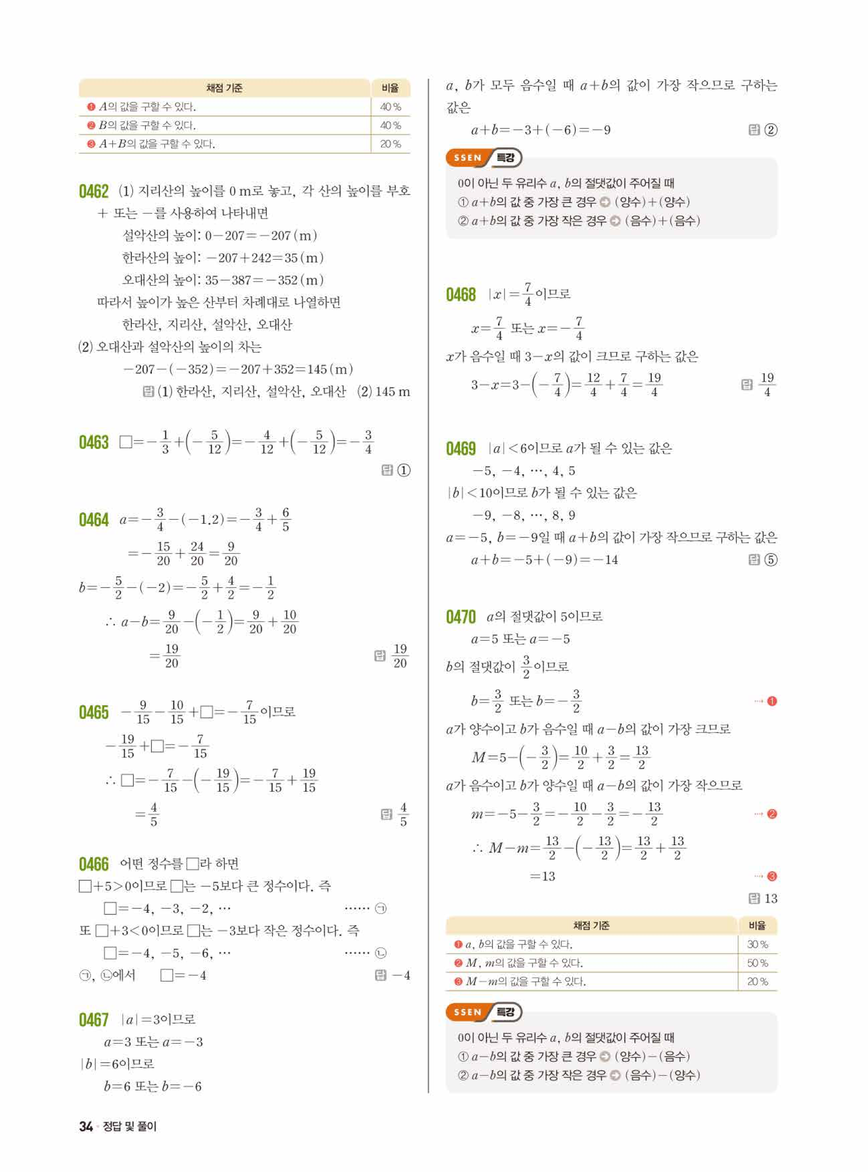 📥 쎈중등수학 1-1 답지, 해설, 빠른답지 PDF 다운로드