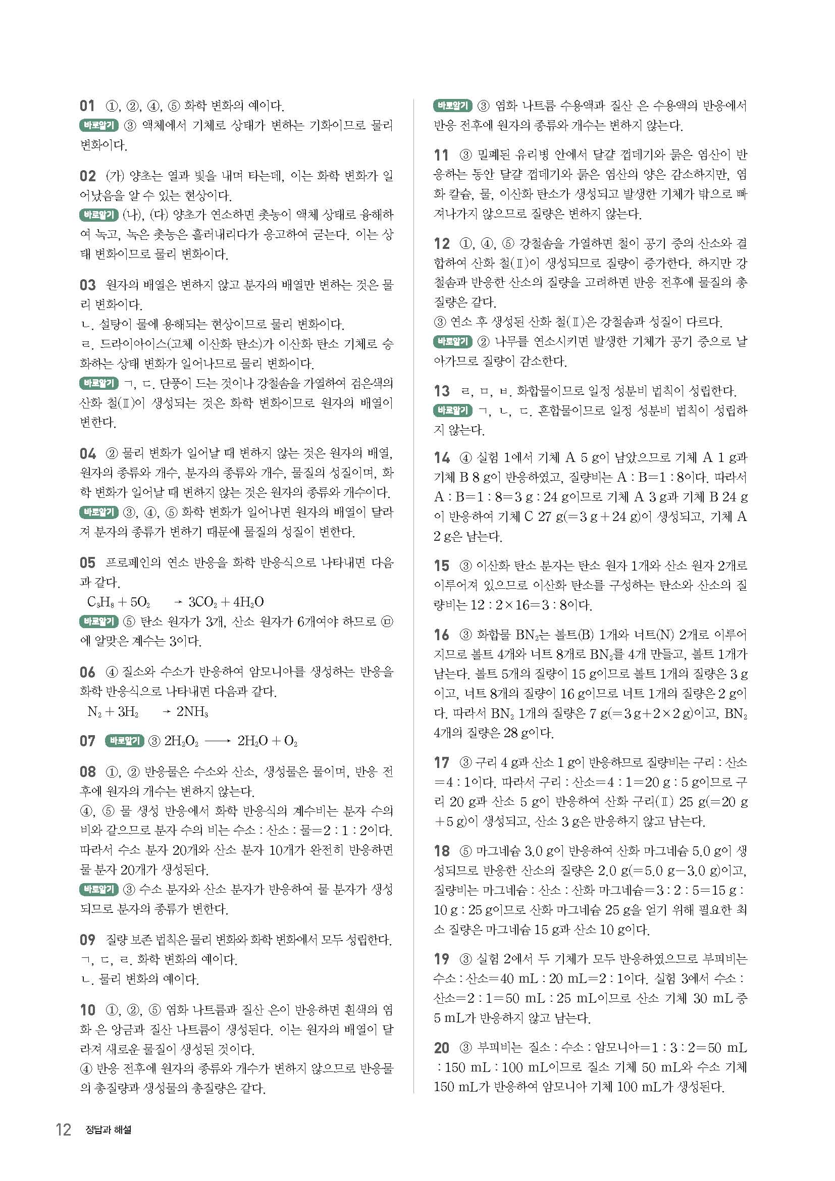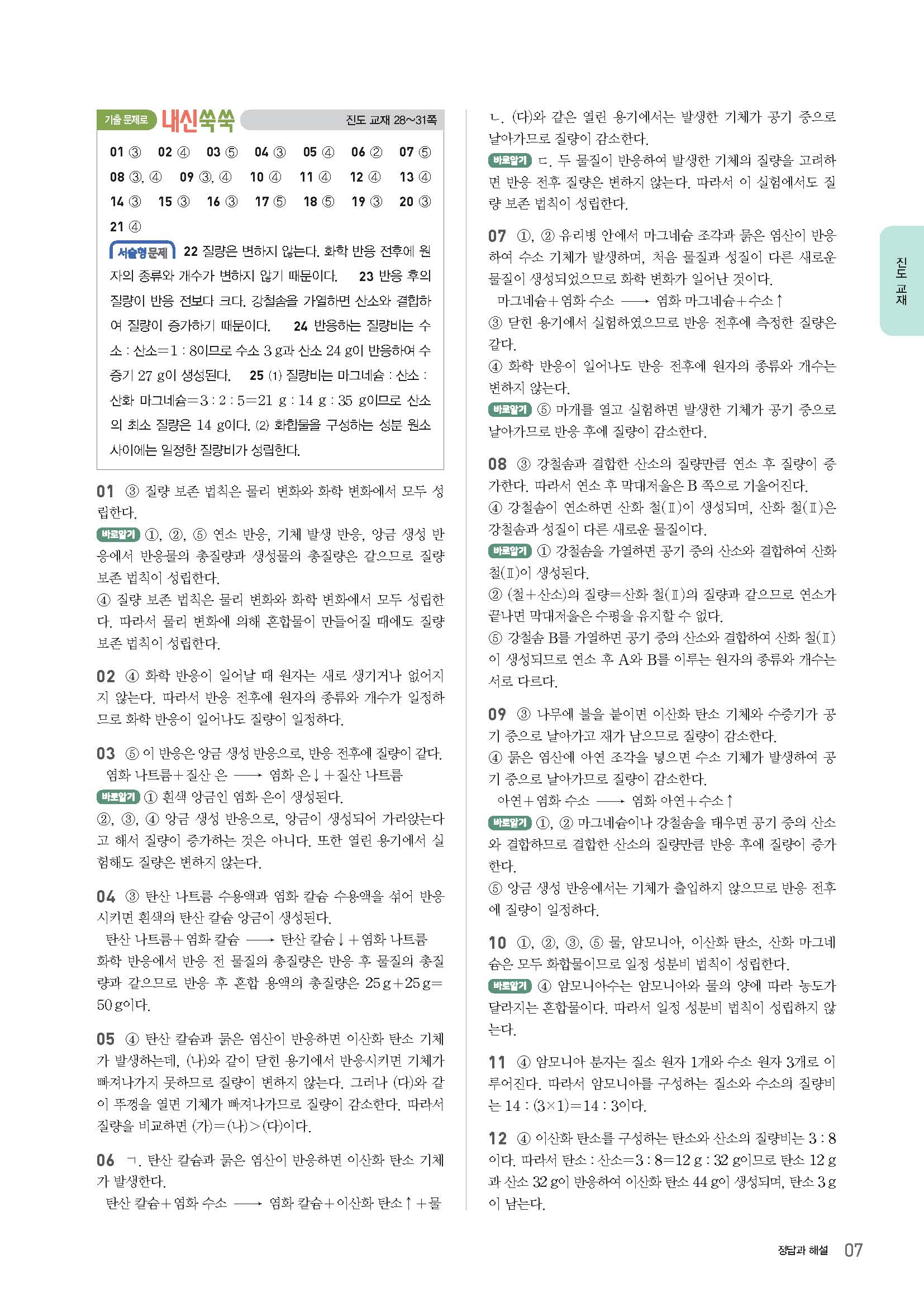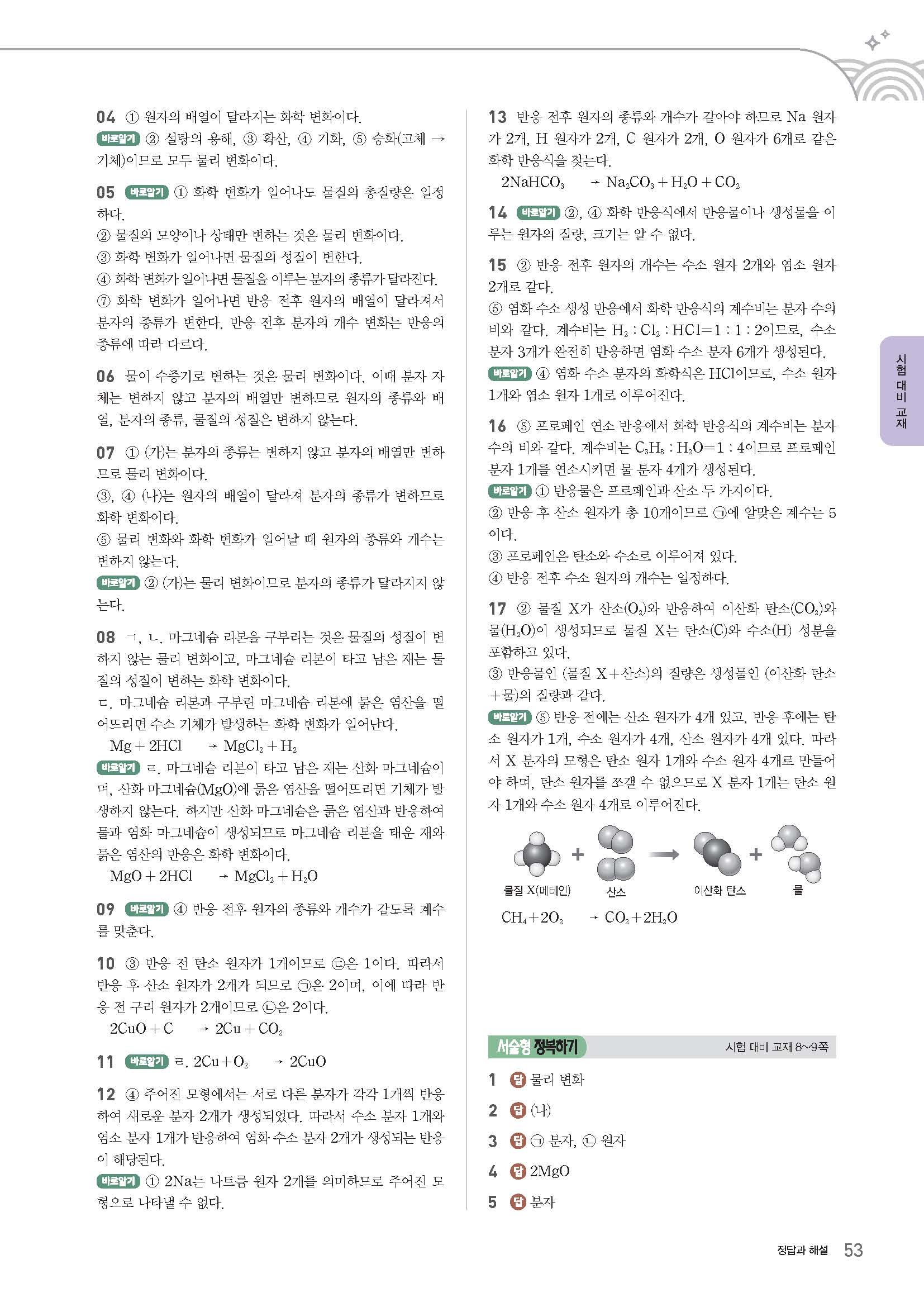 과학문제집 답지