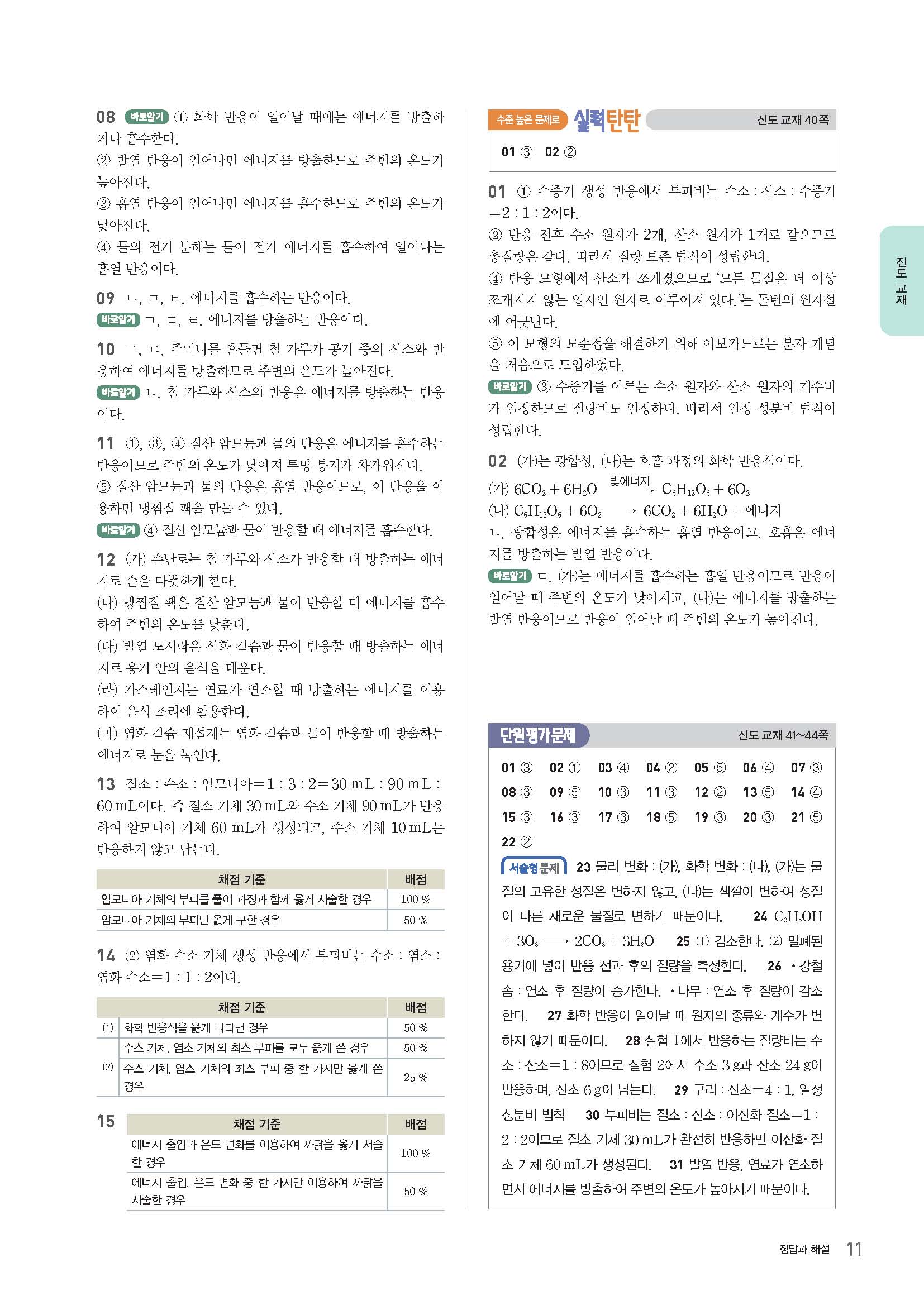 비상 오투과학 중3-1 답지 모바일최적화 사진답지 입니다