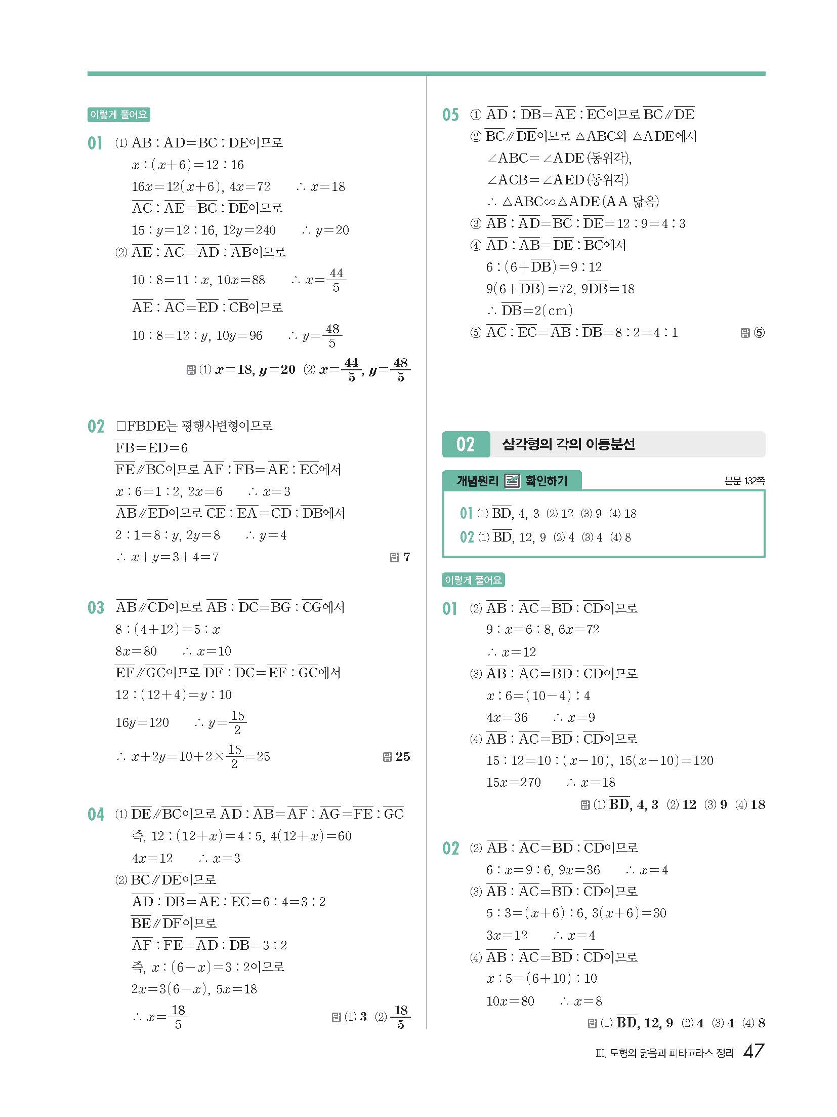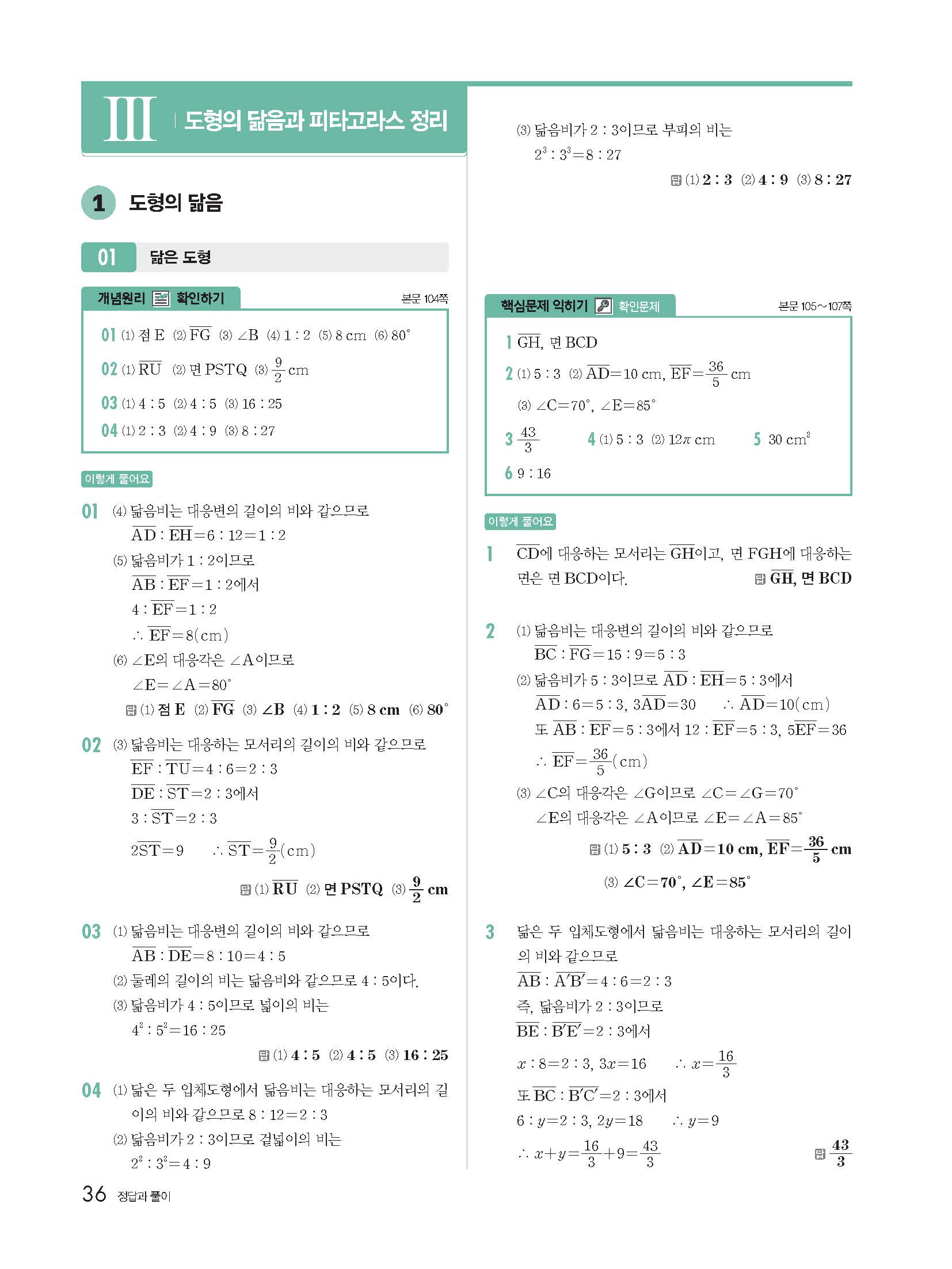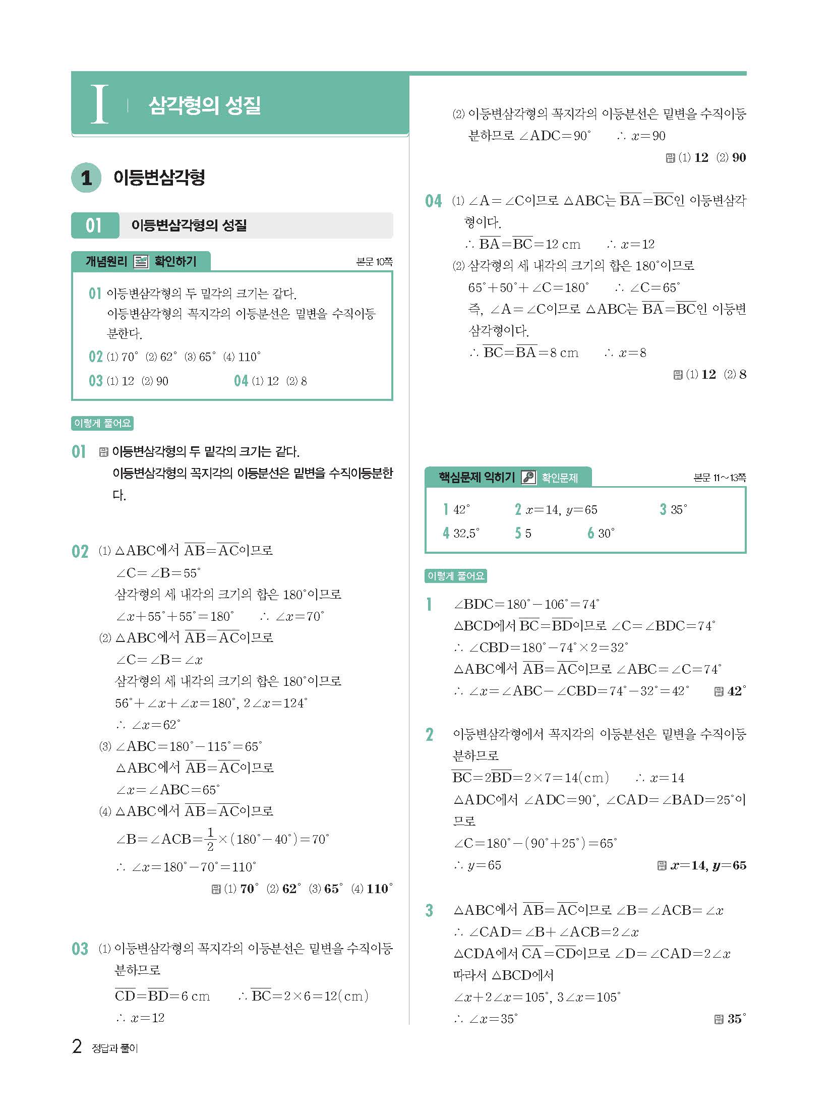 | 천재교육 이준열 중2 수학교과서 답지 | |