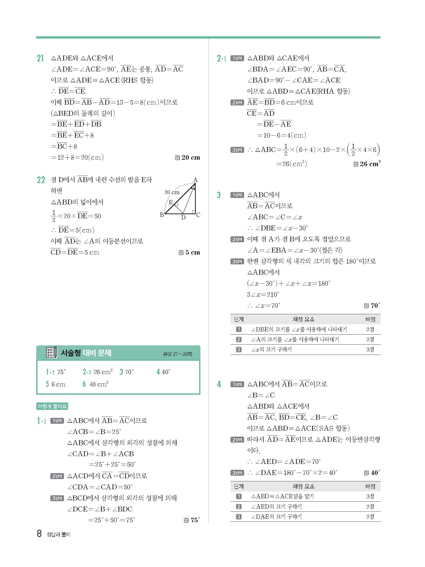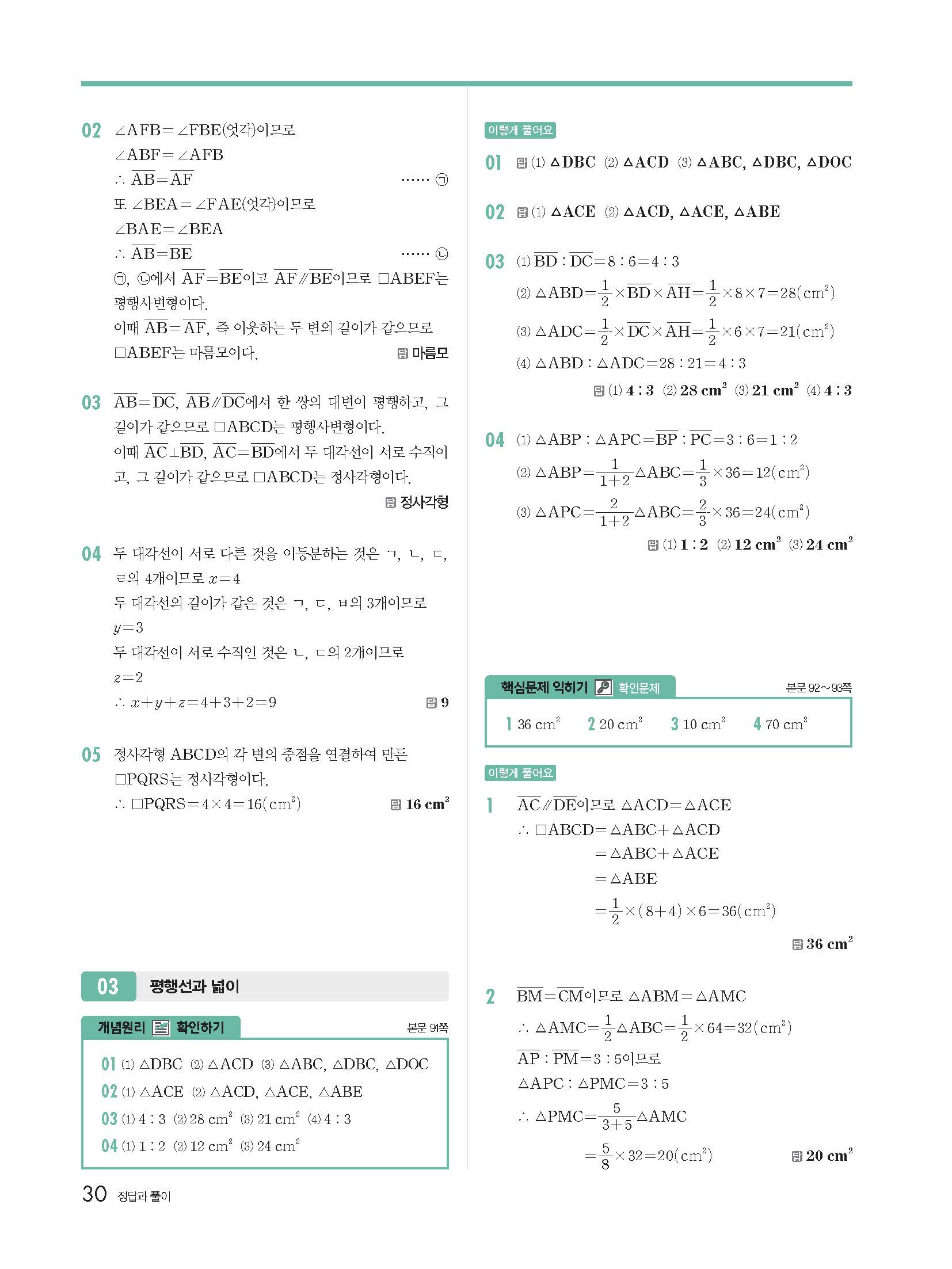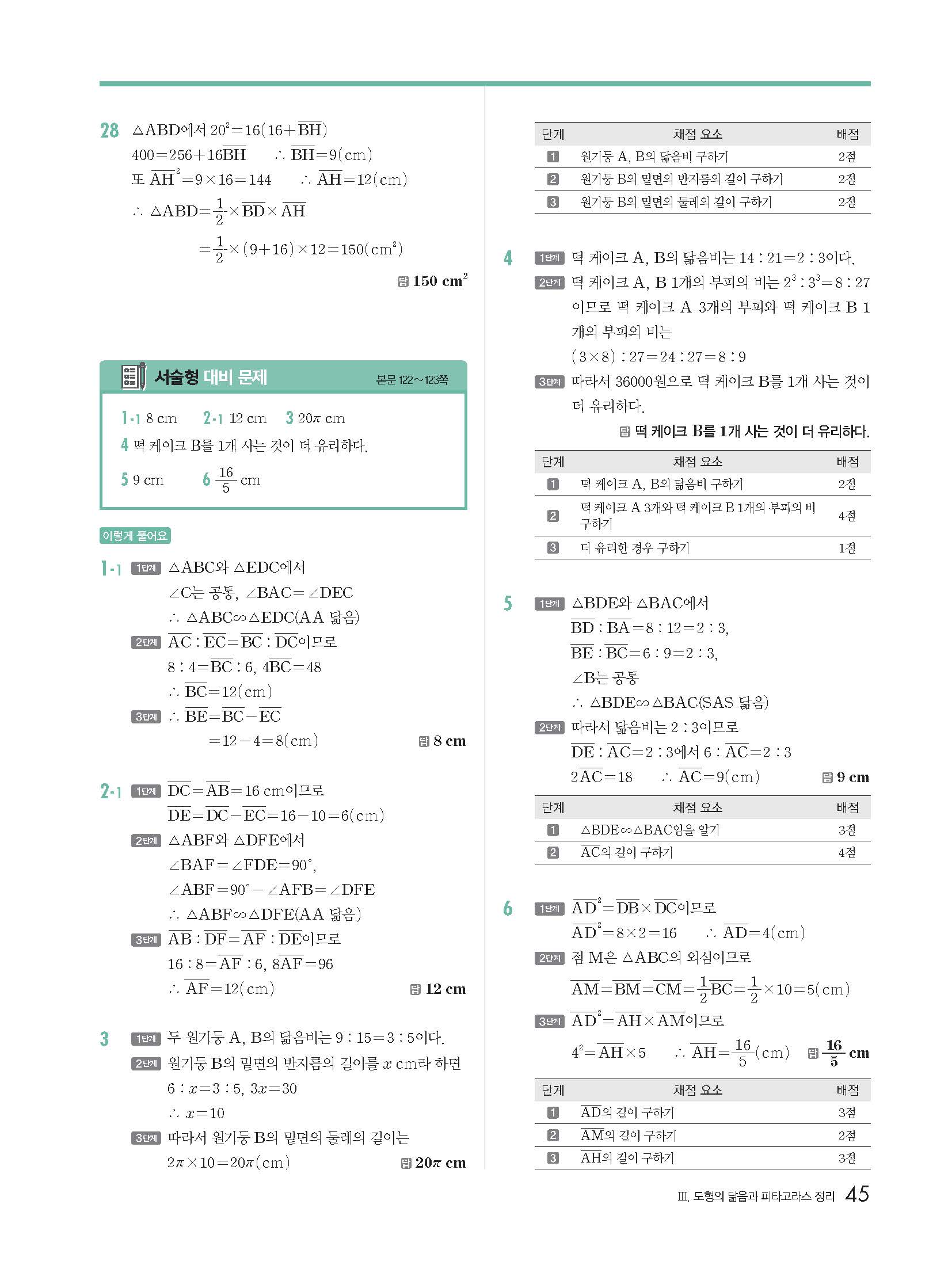 | 천재교육 이준열 중2 수학교과서 답지 | |