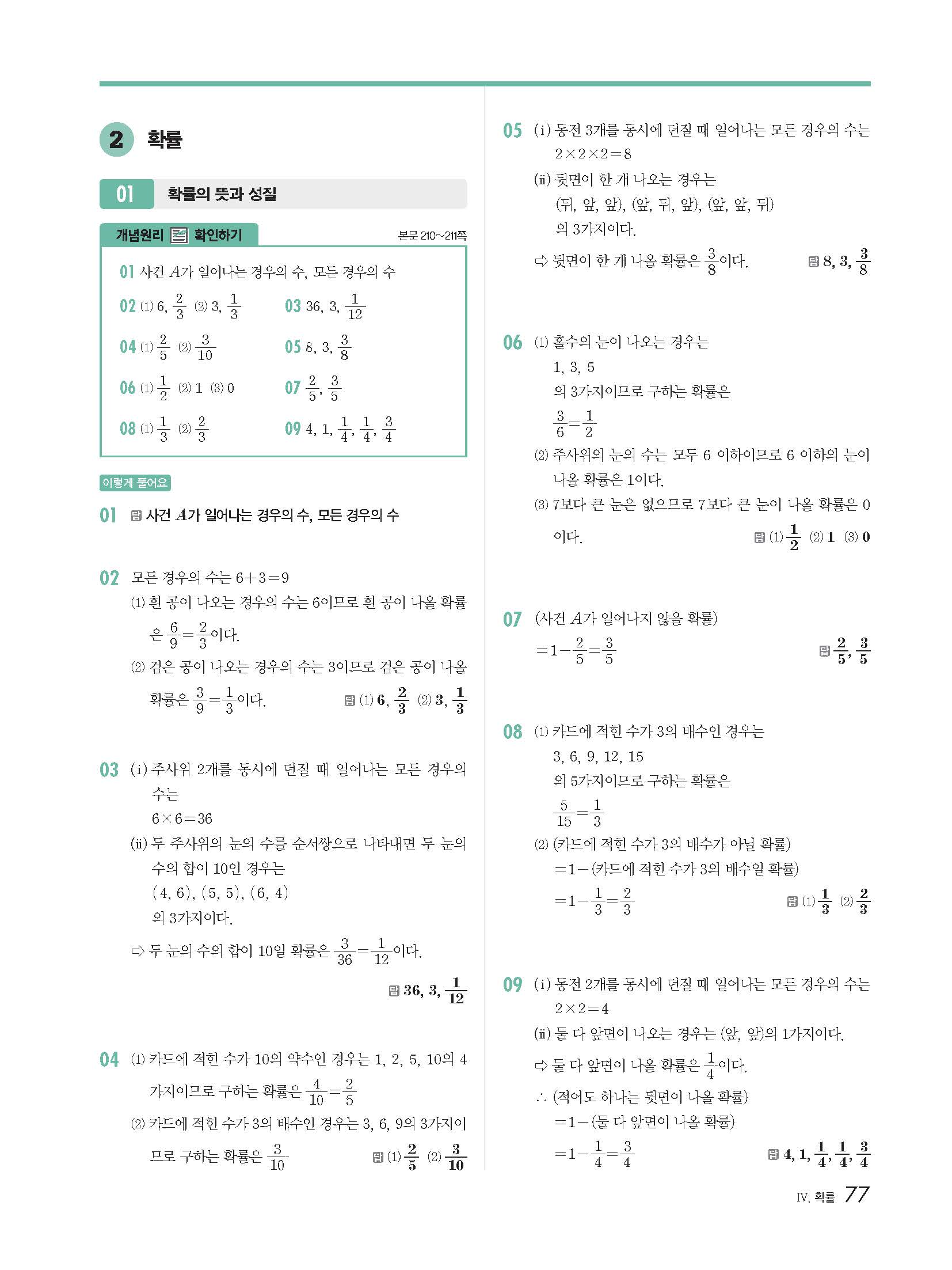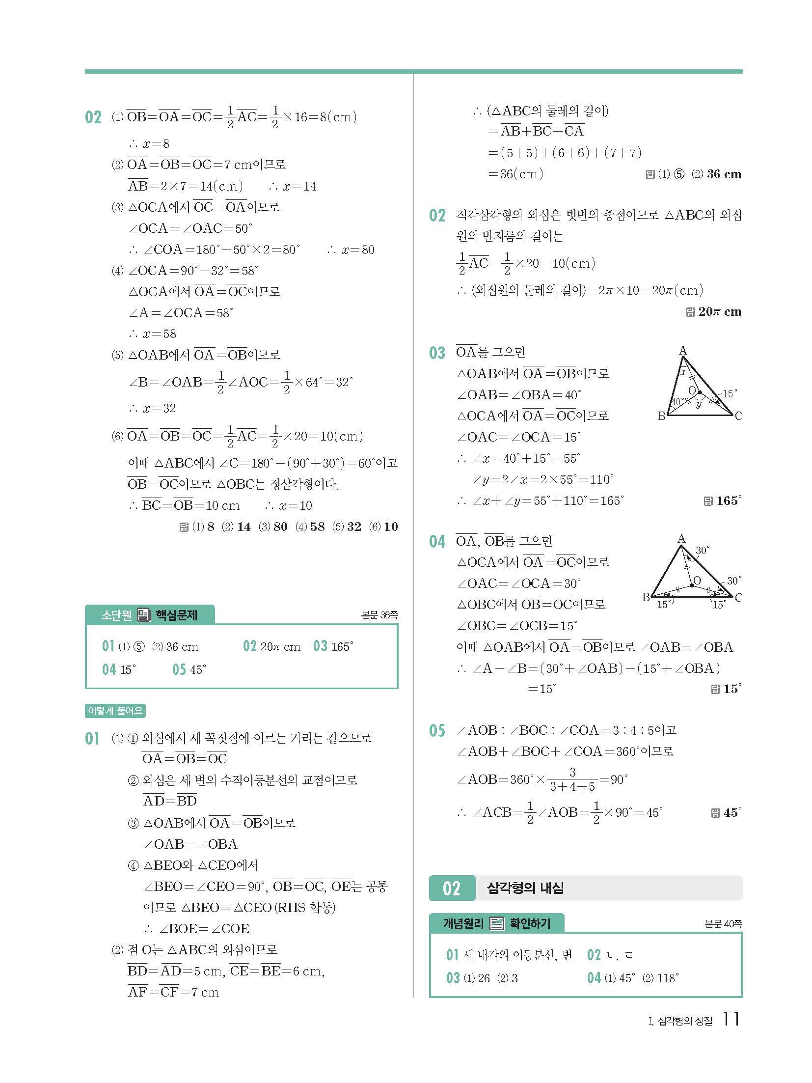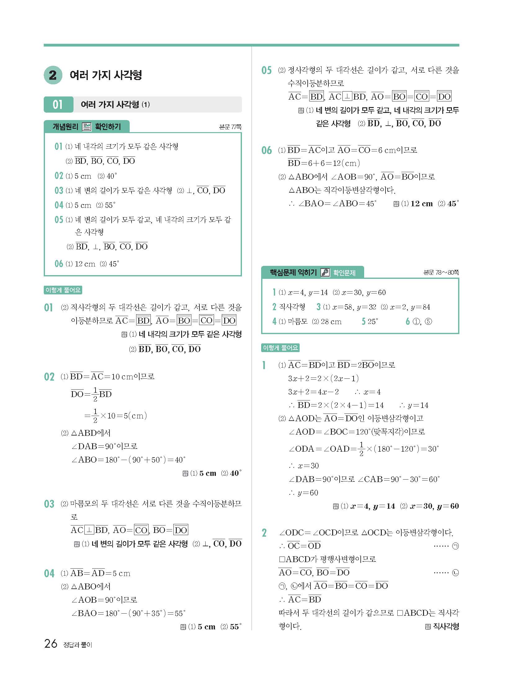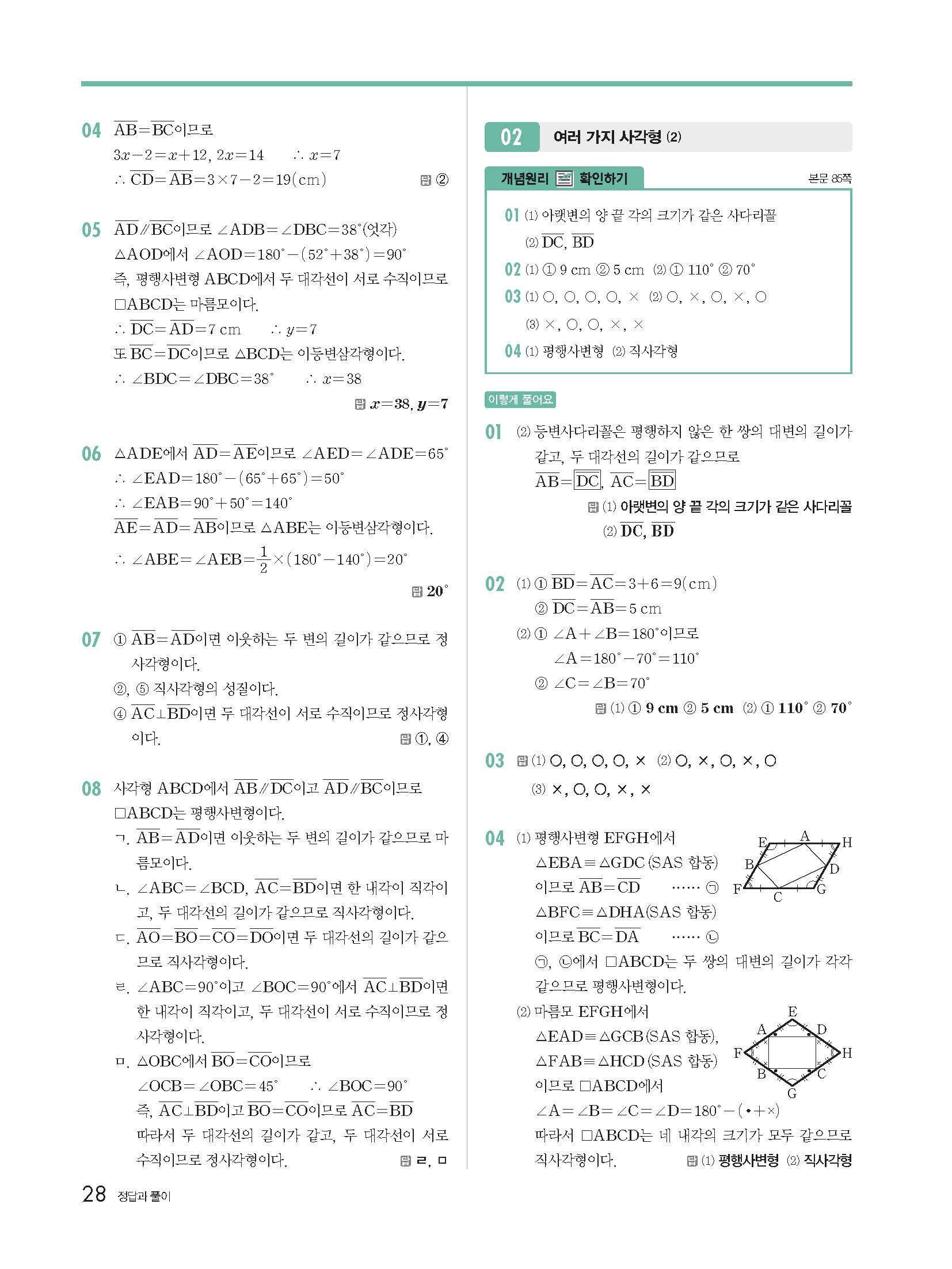 개념원리 중2-2 빠른답지 해설지