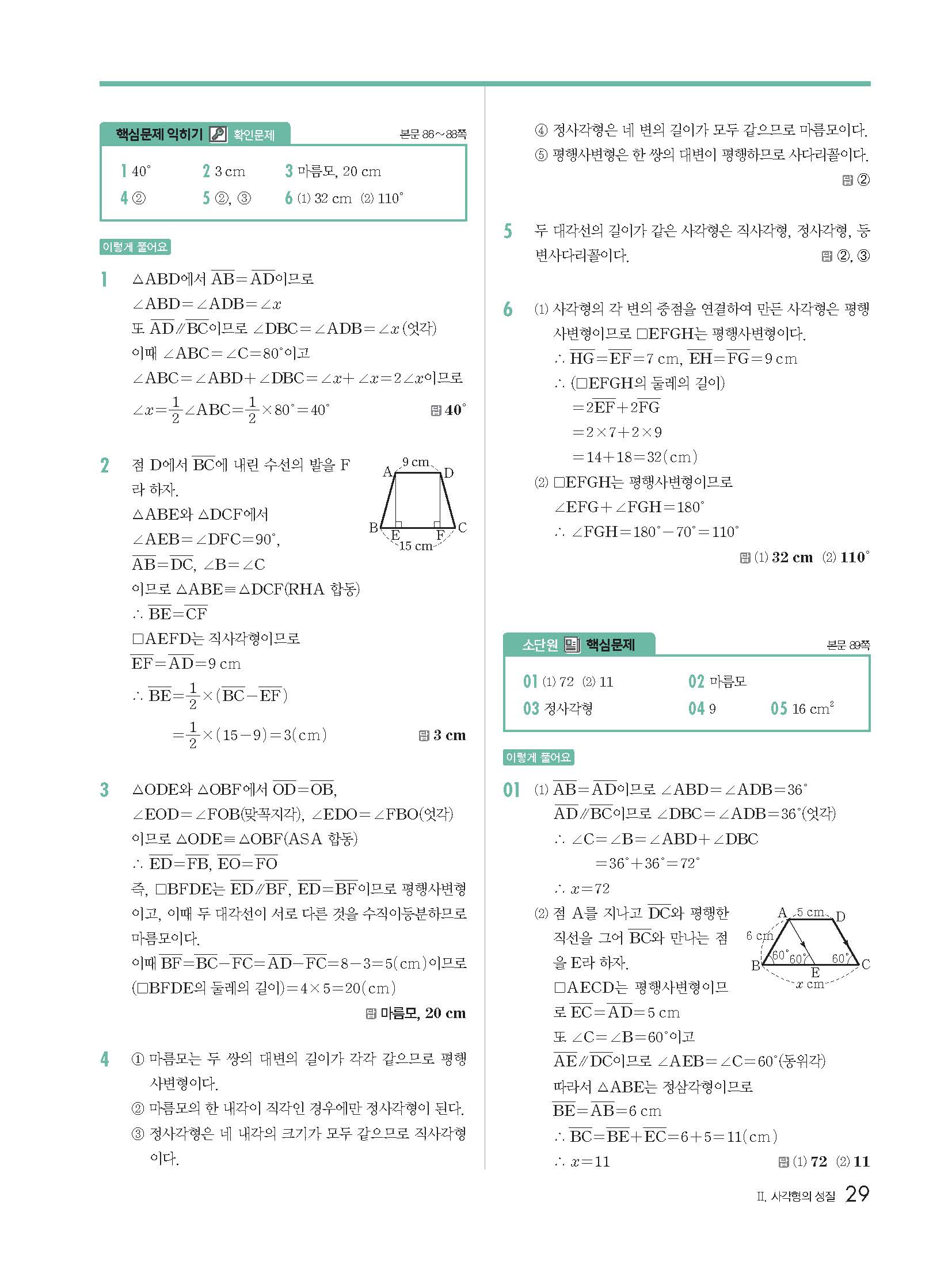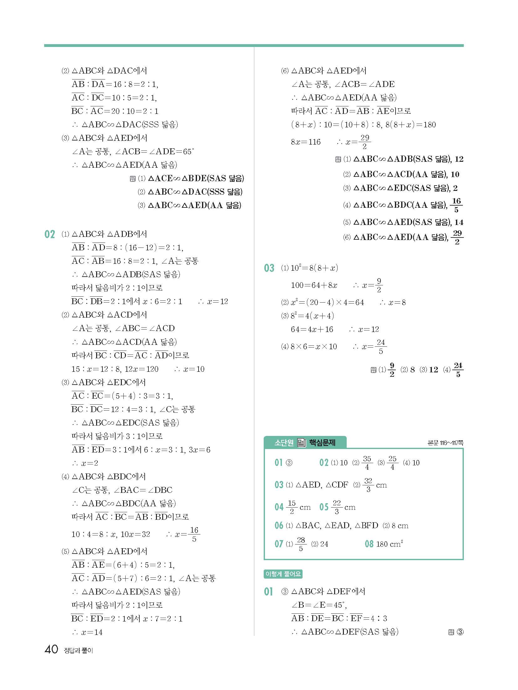 | 교학사 고호경 중2 수학교과서 답지 | |