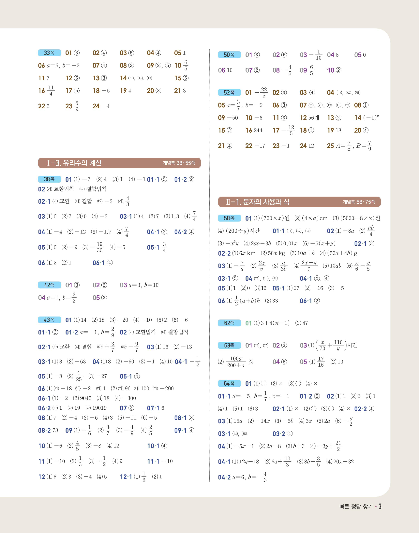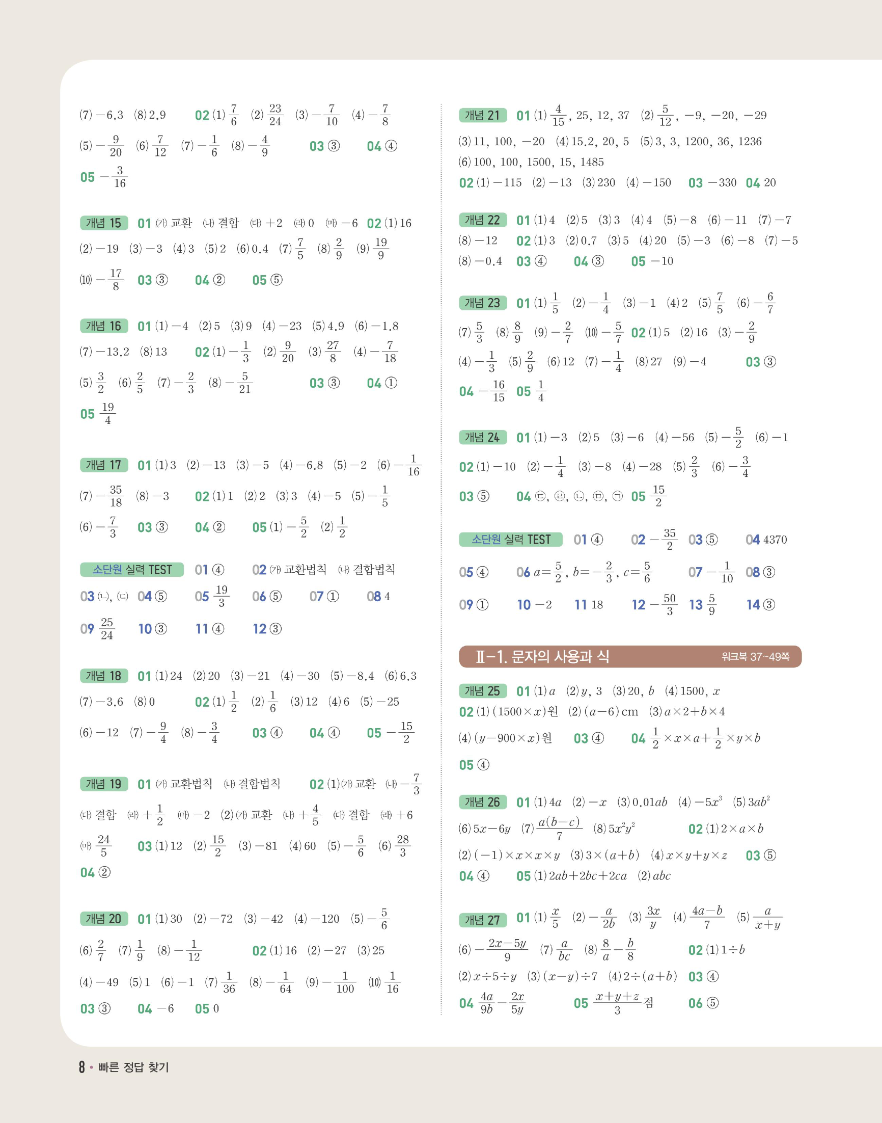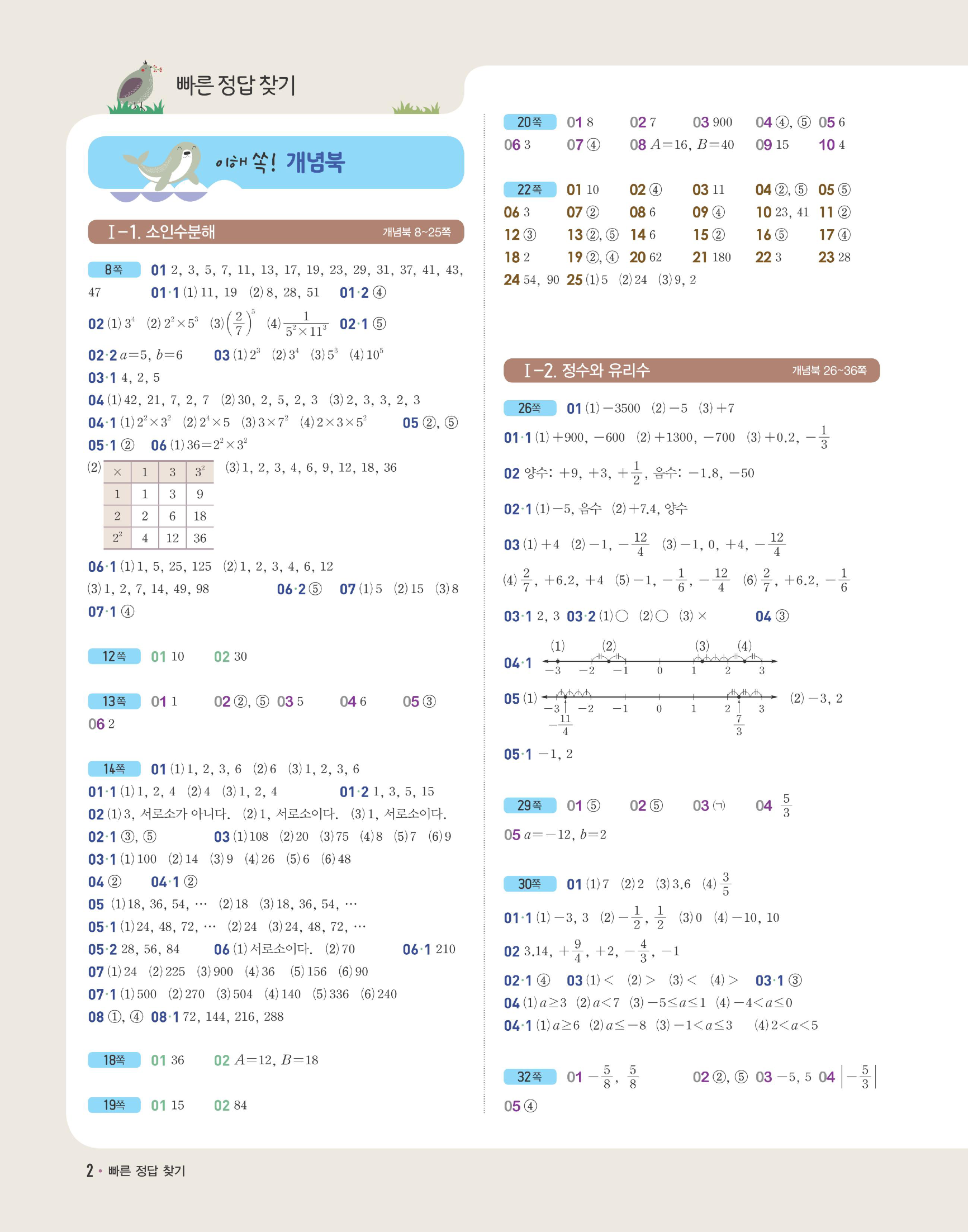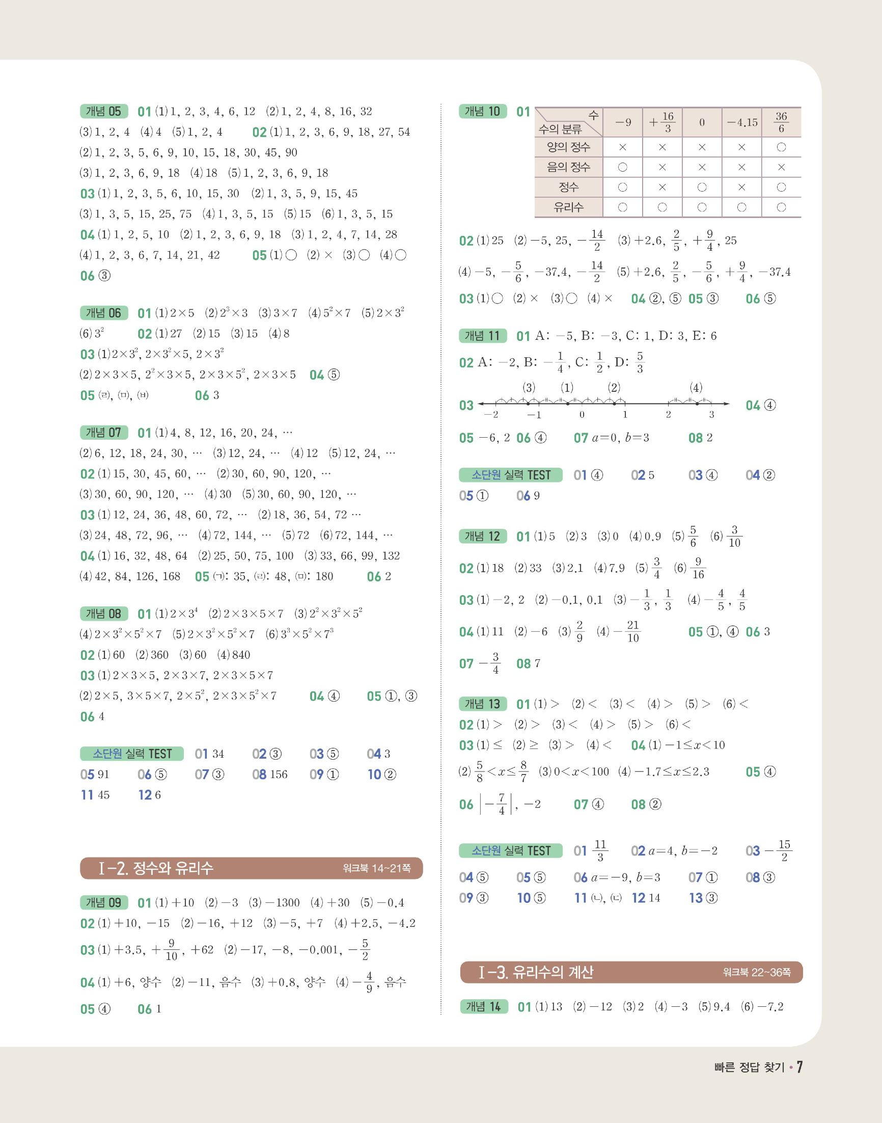 개념쎈 중1-1 빠른답지 바로보는 사진답지 모바일최적화