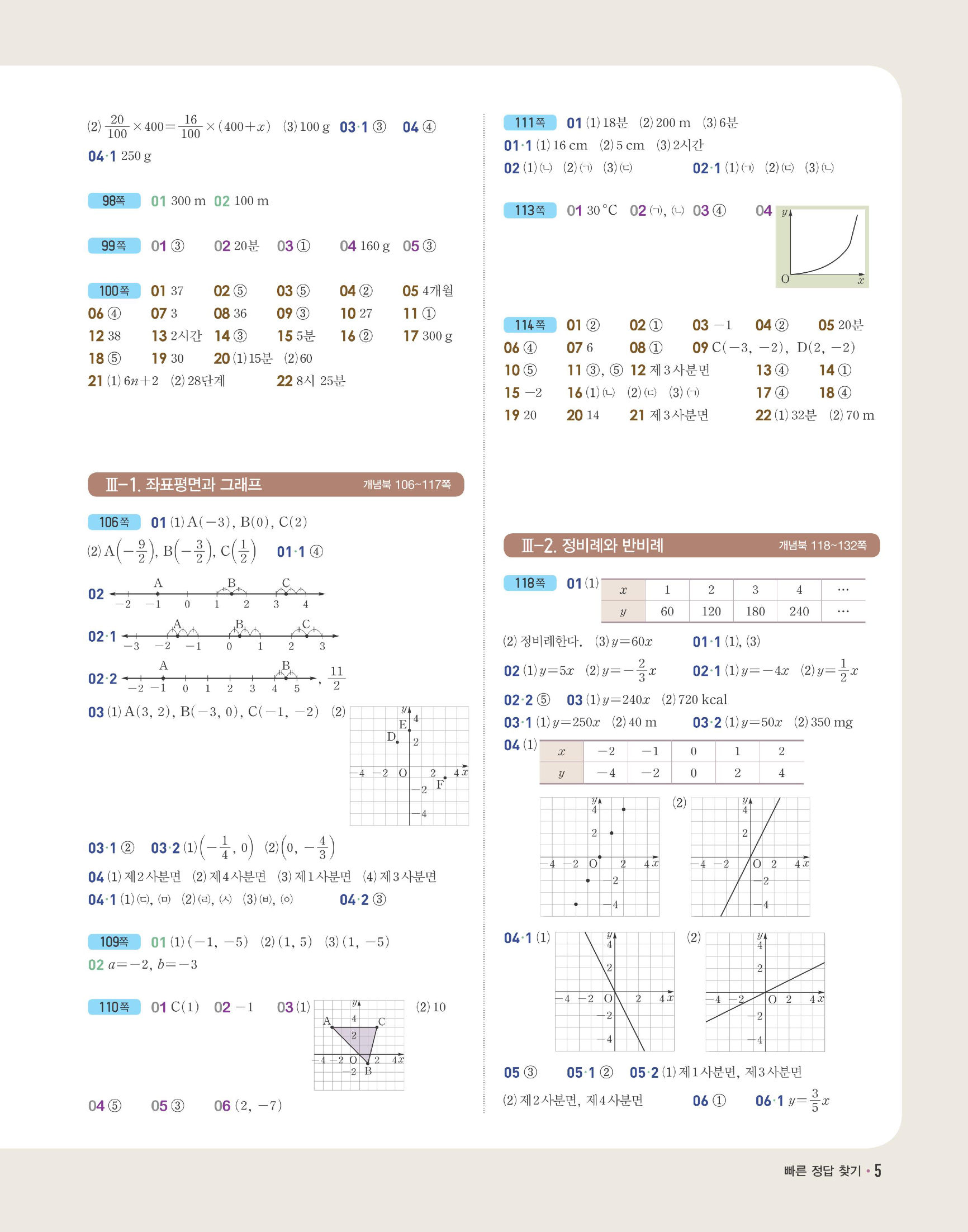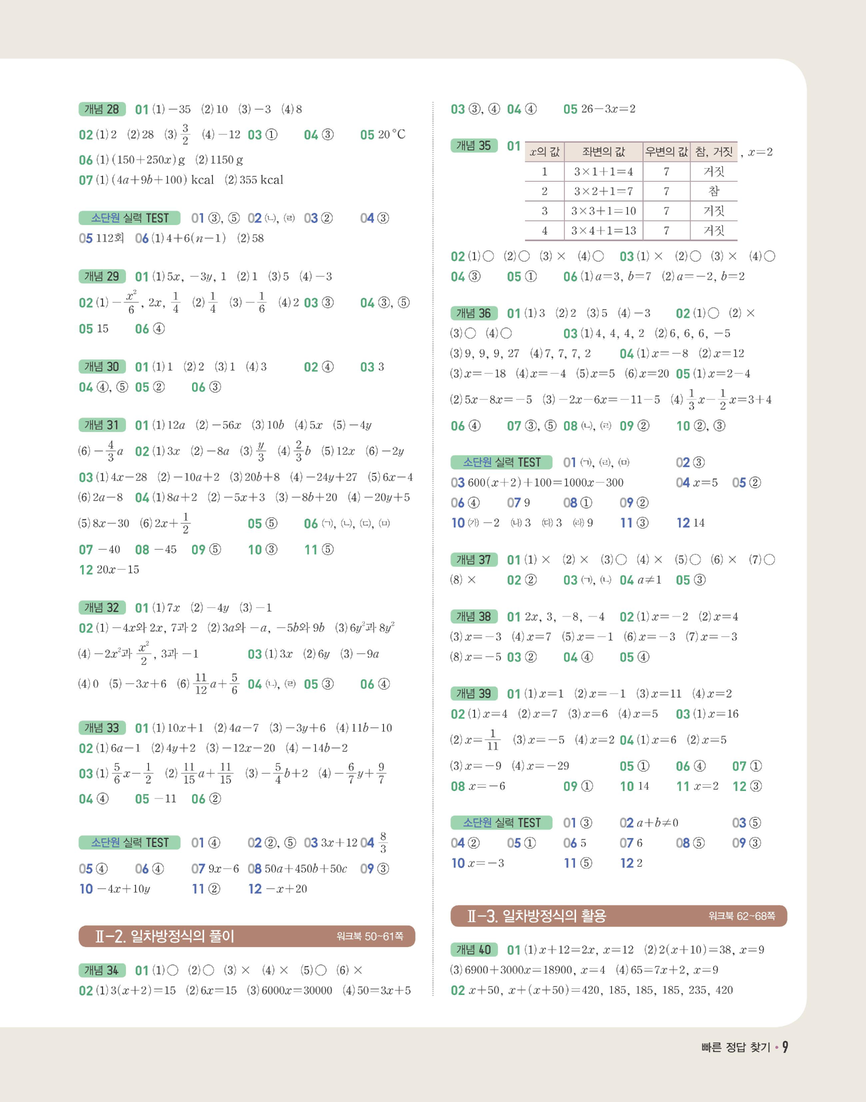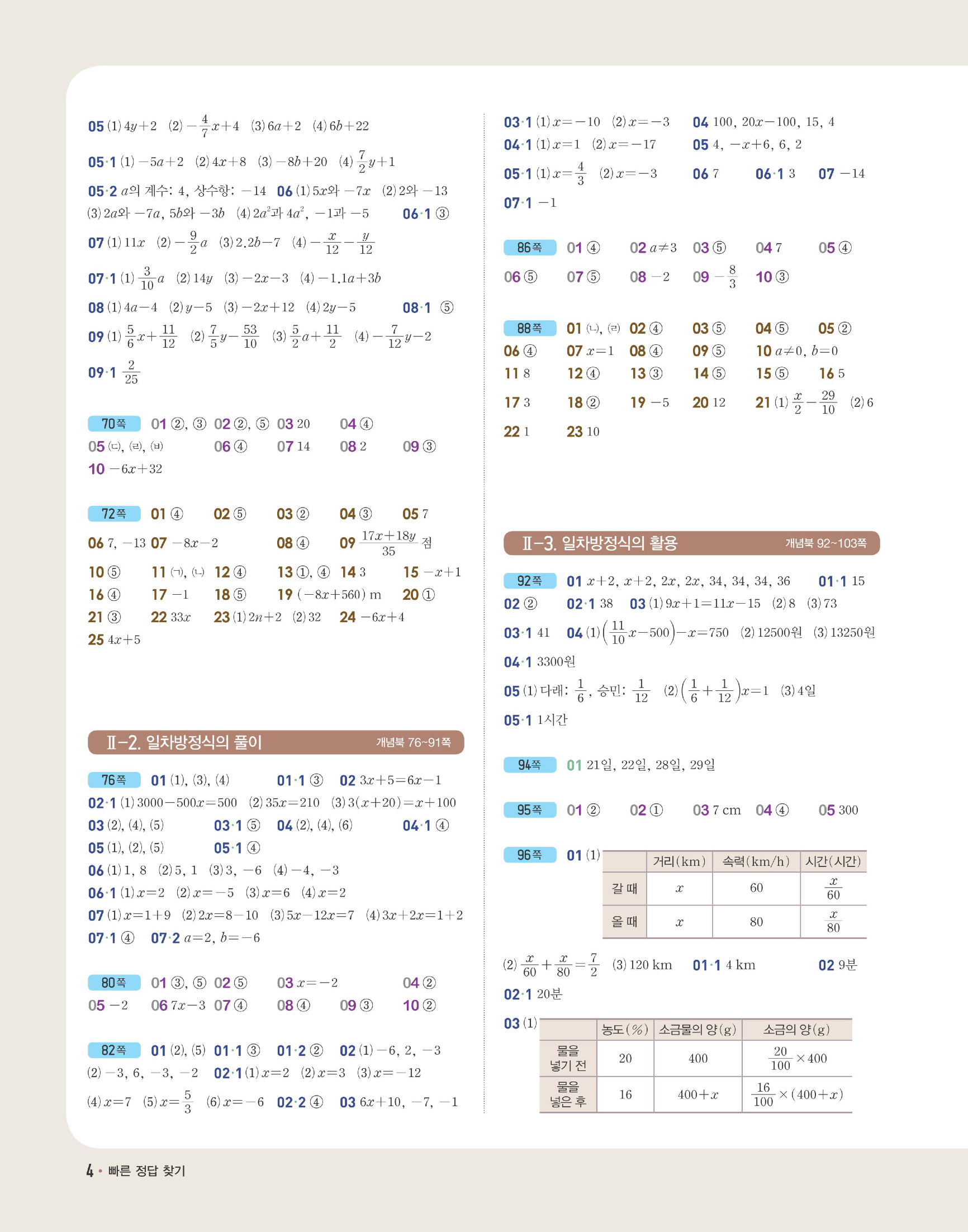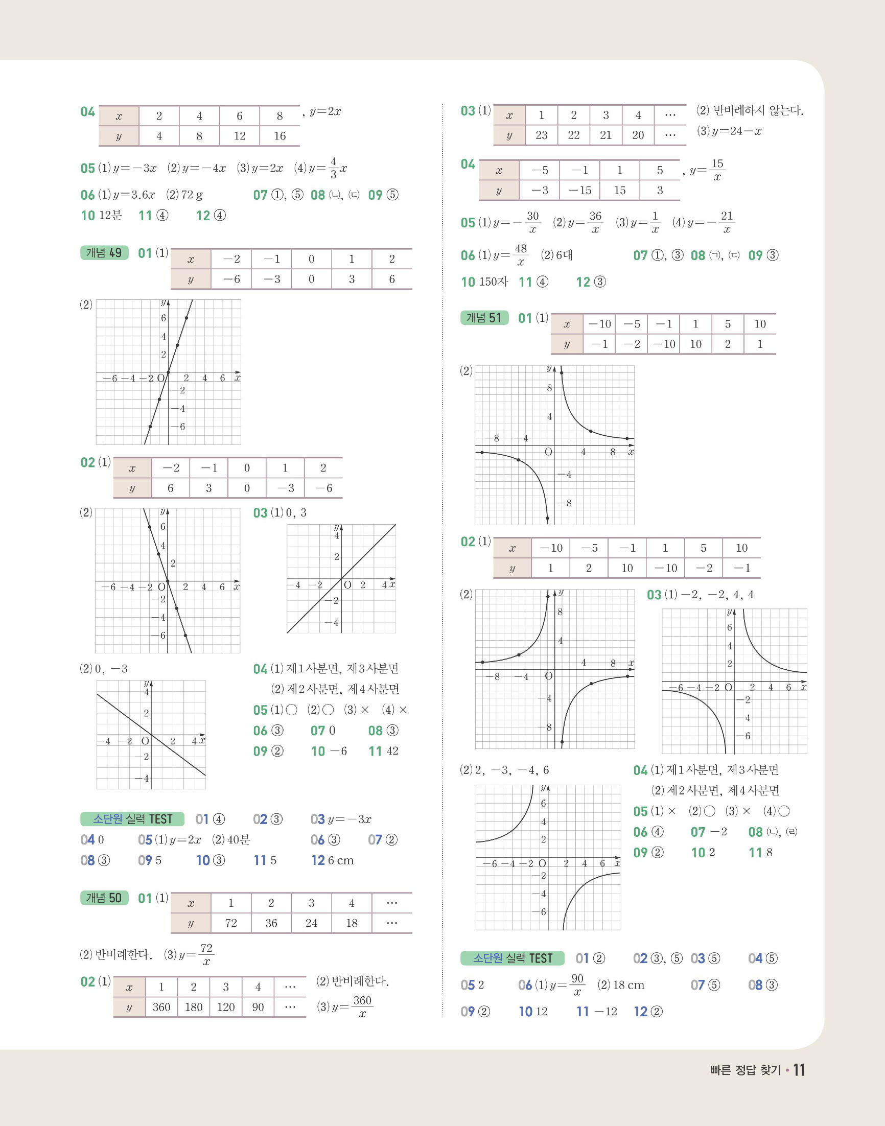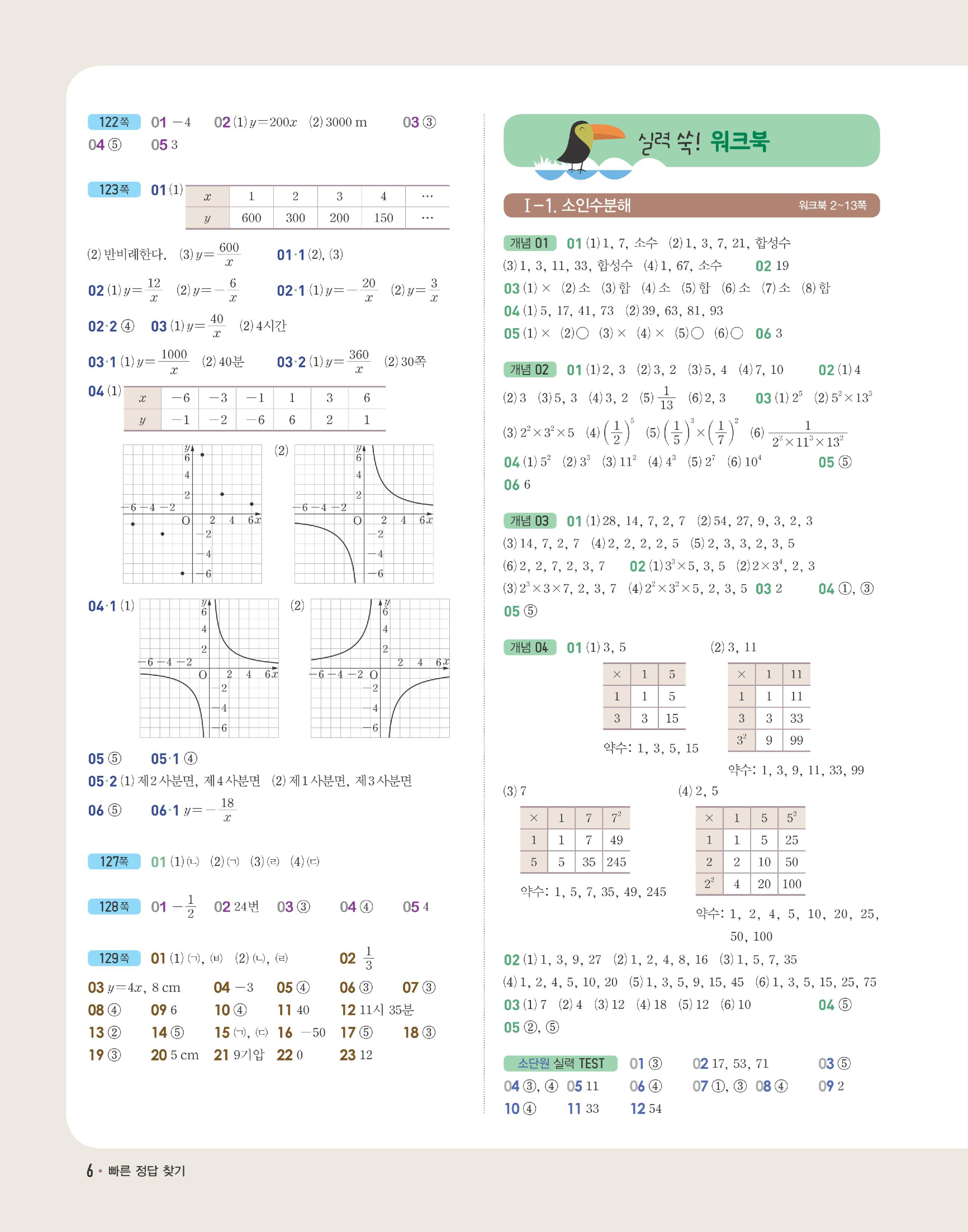 개념쎈 중1-1 빠른답지 바로보는 사진답지 모바일최적화