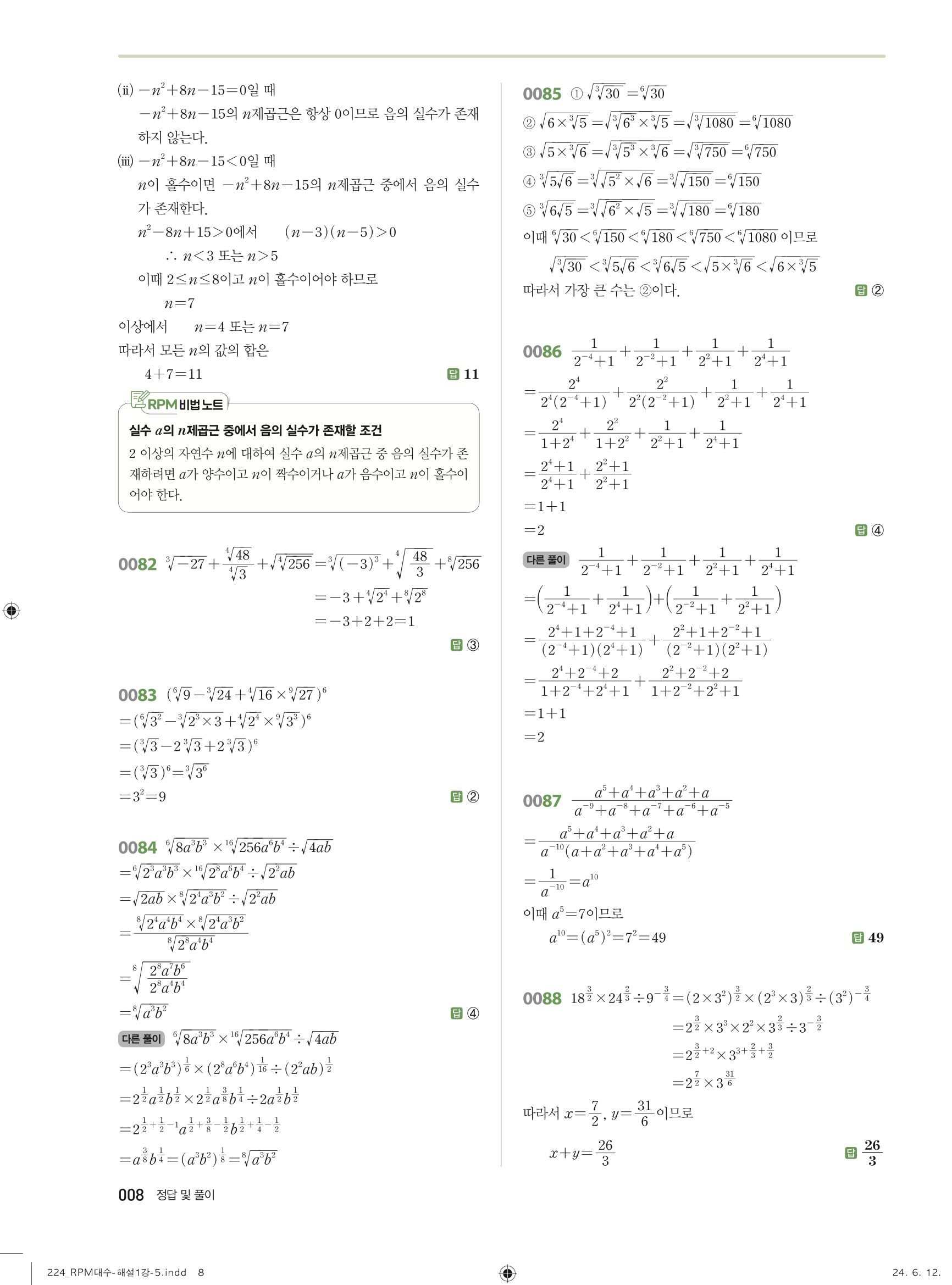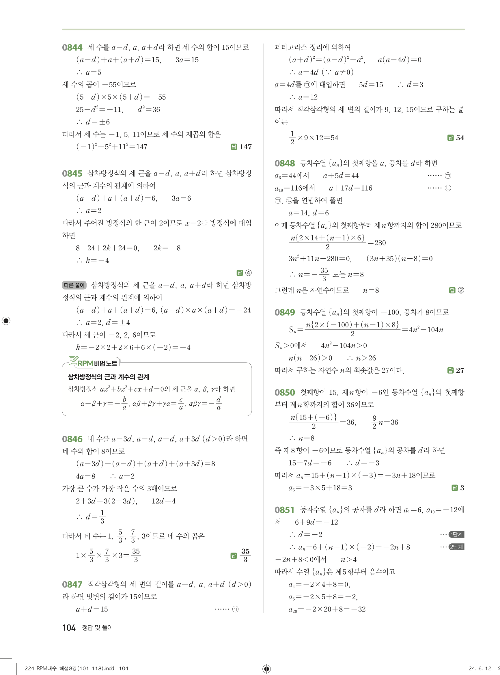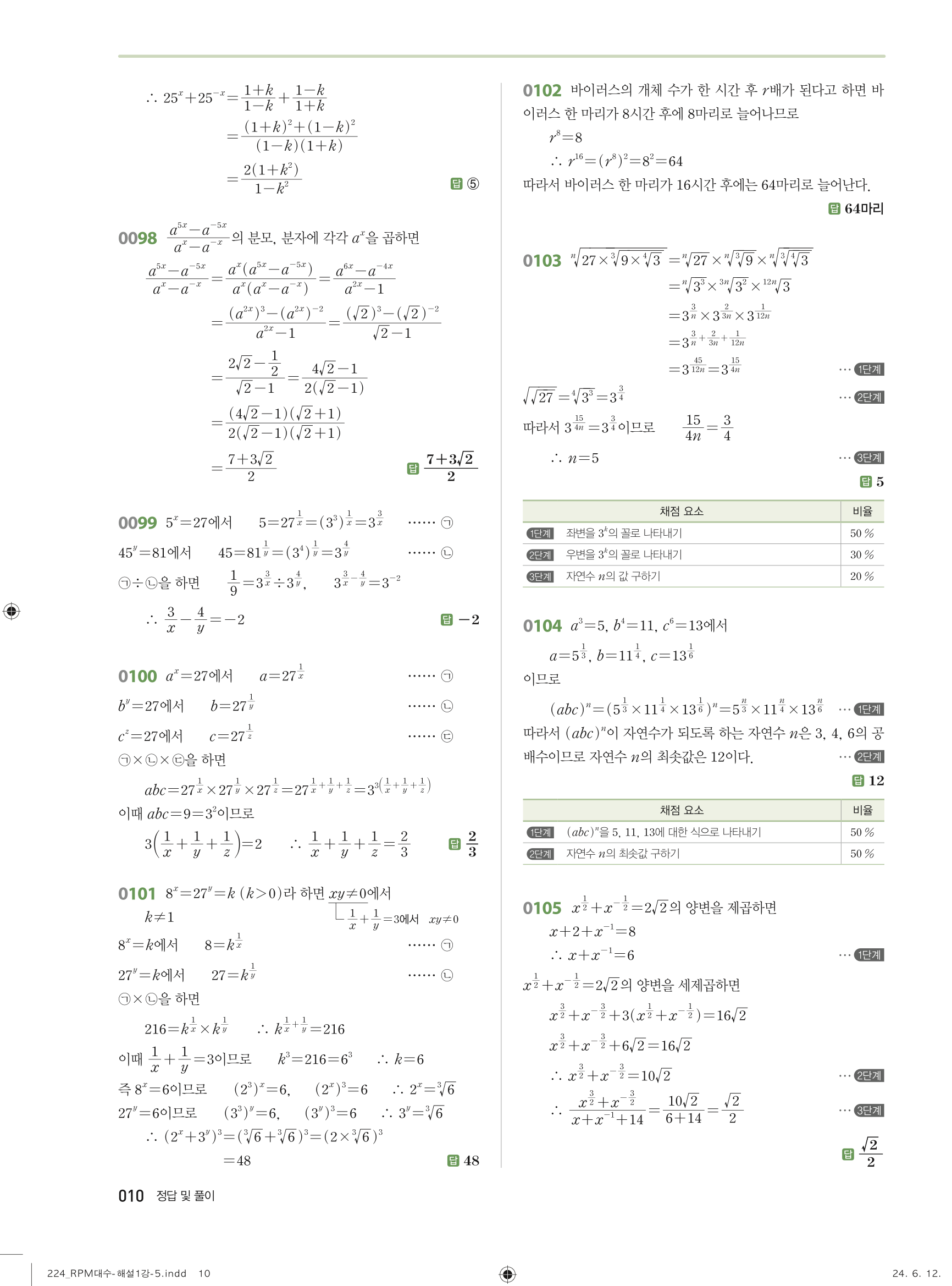📌 2025 최신 개정 RPM 알피엠 고등대수 정답 및 풀이 PDF 다운로드