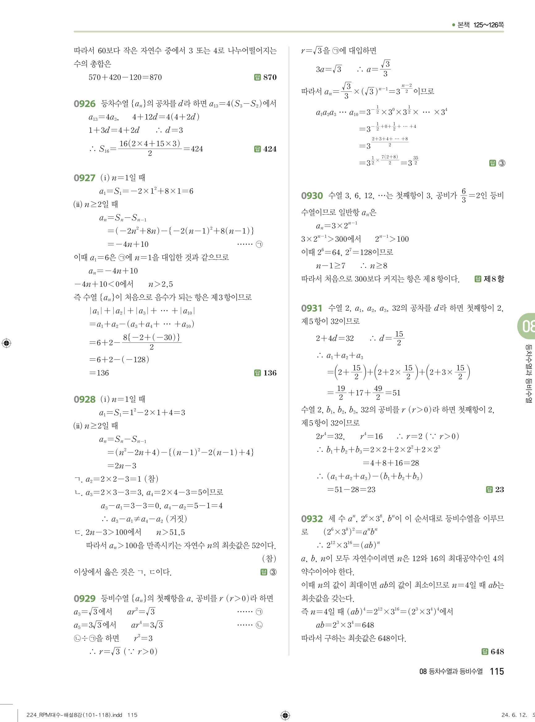 📥 2025 최신 개정 RPM 알피엠 고등대수 쎈 대수 해설 풀이 빠른답지 PDF 다운로드
