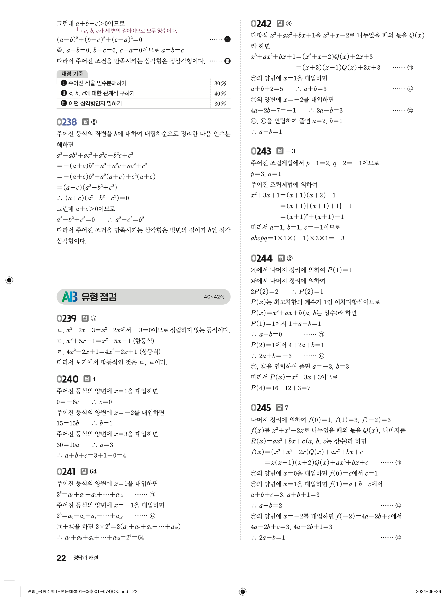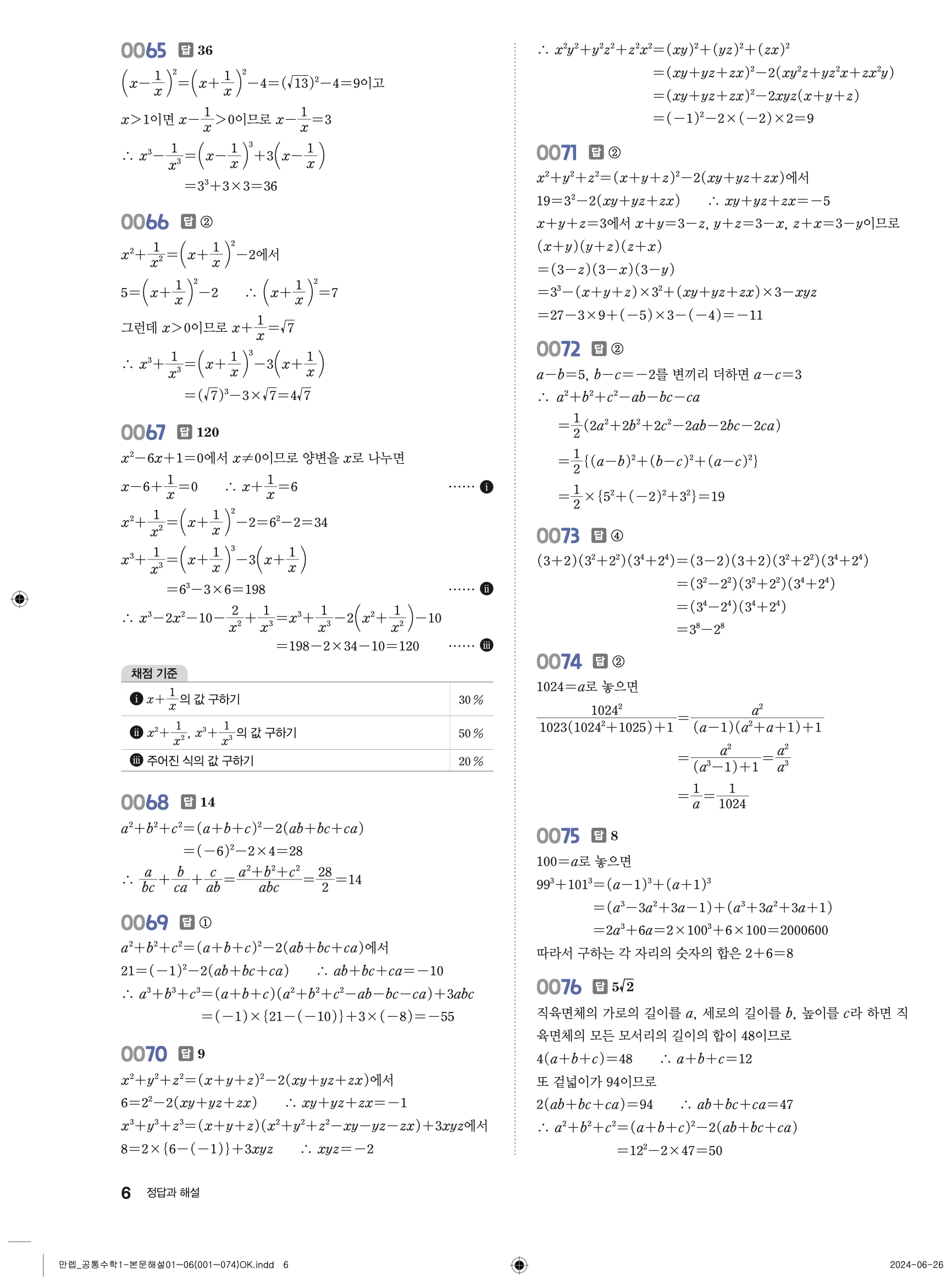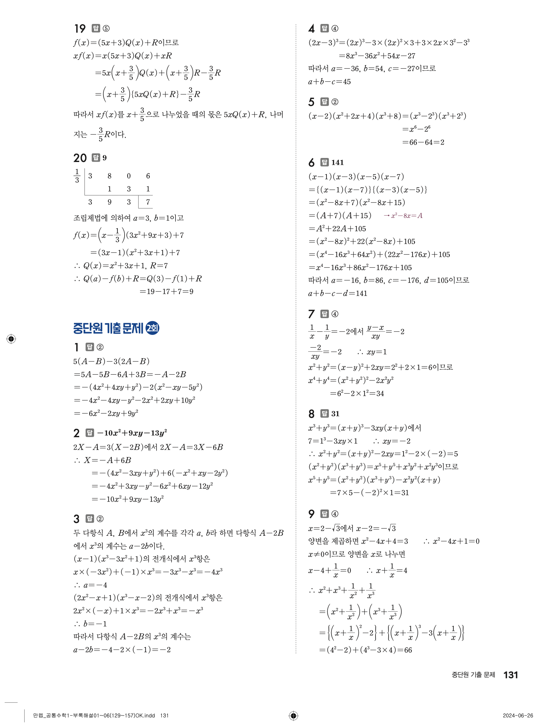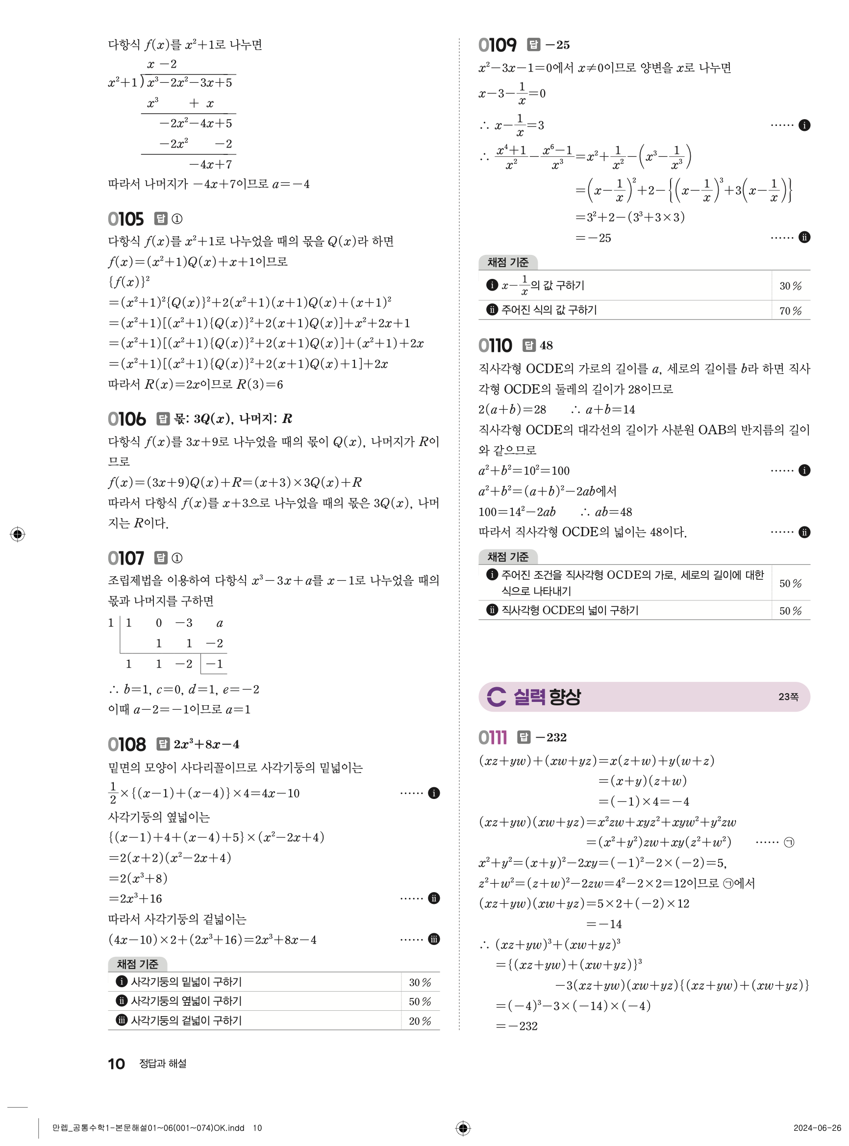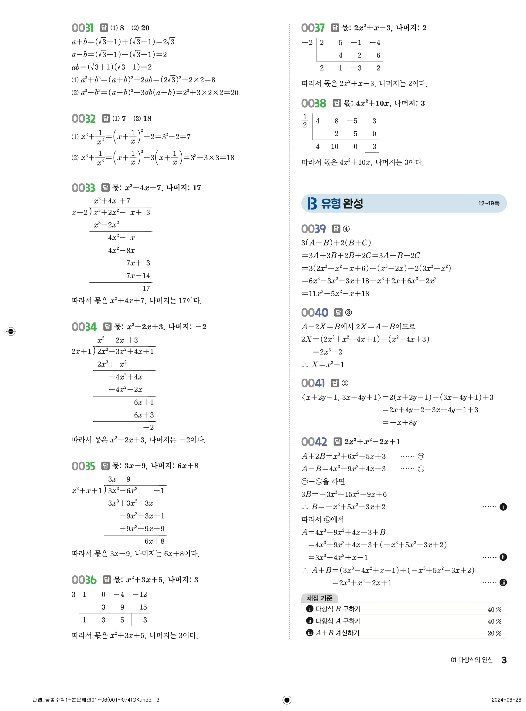 🔗 유형 만렙 공통수학1 정답 해설 PDF