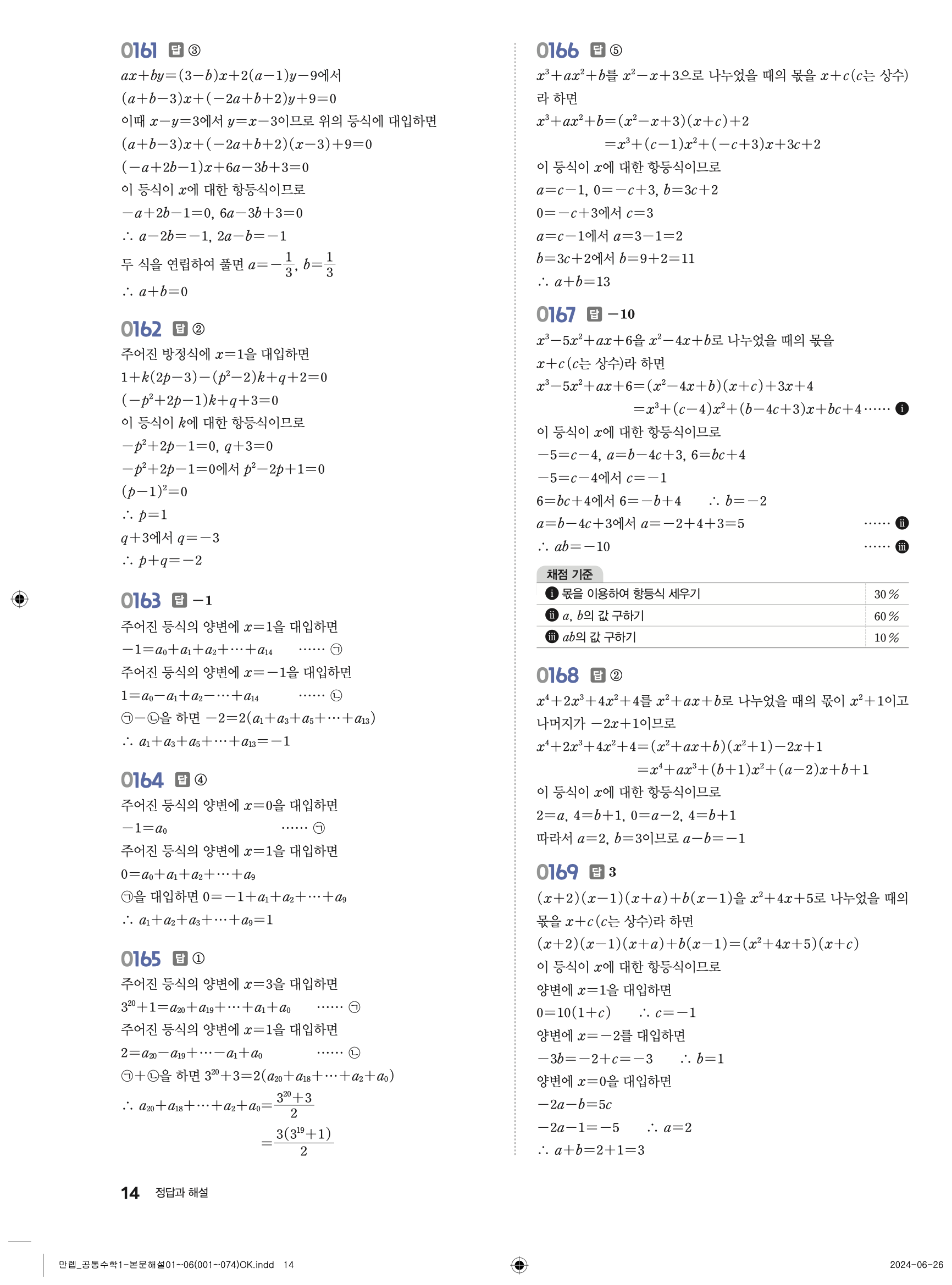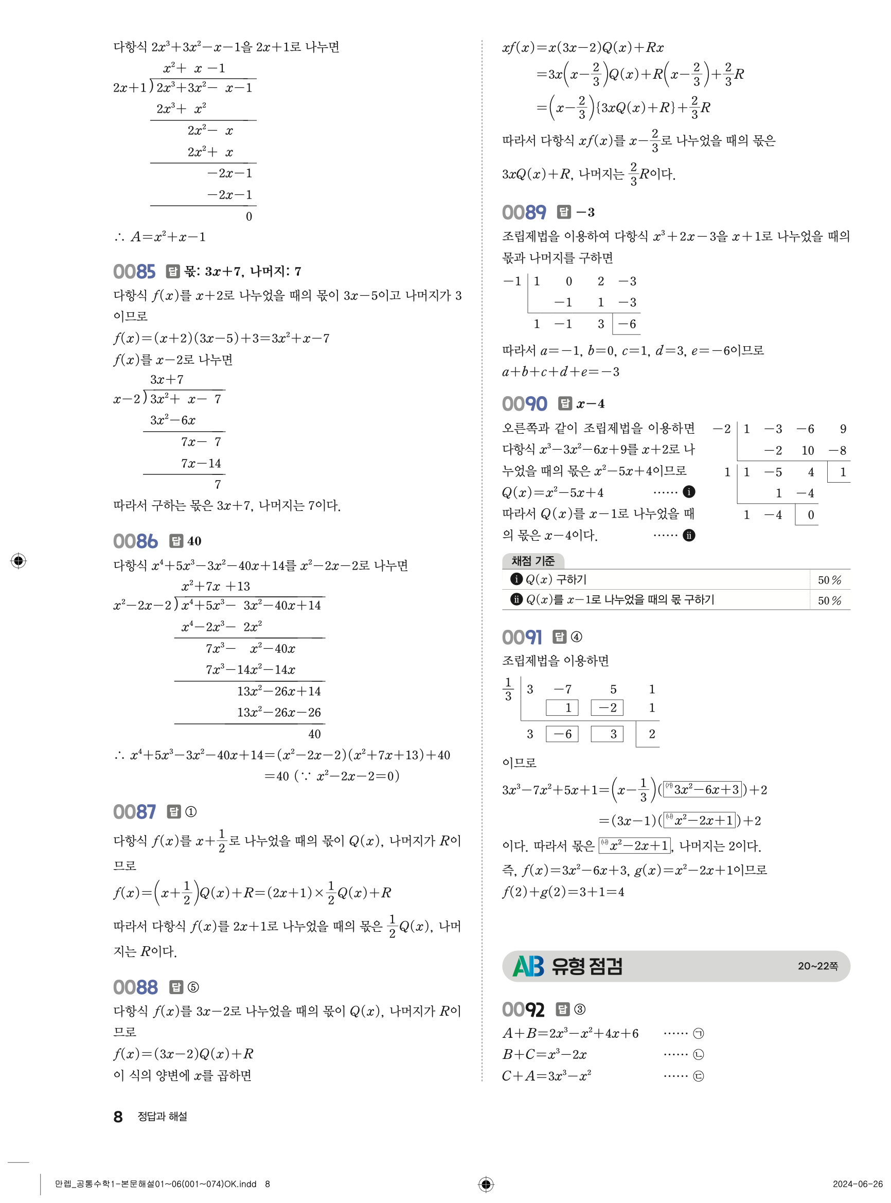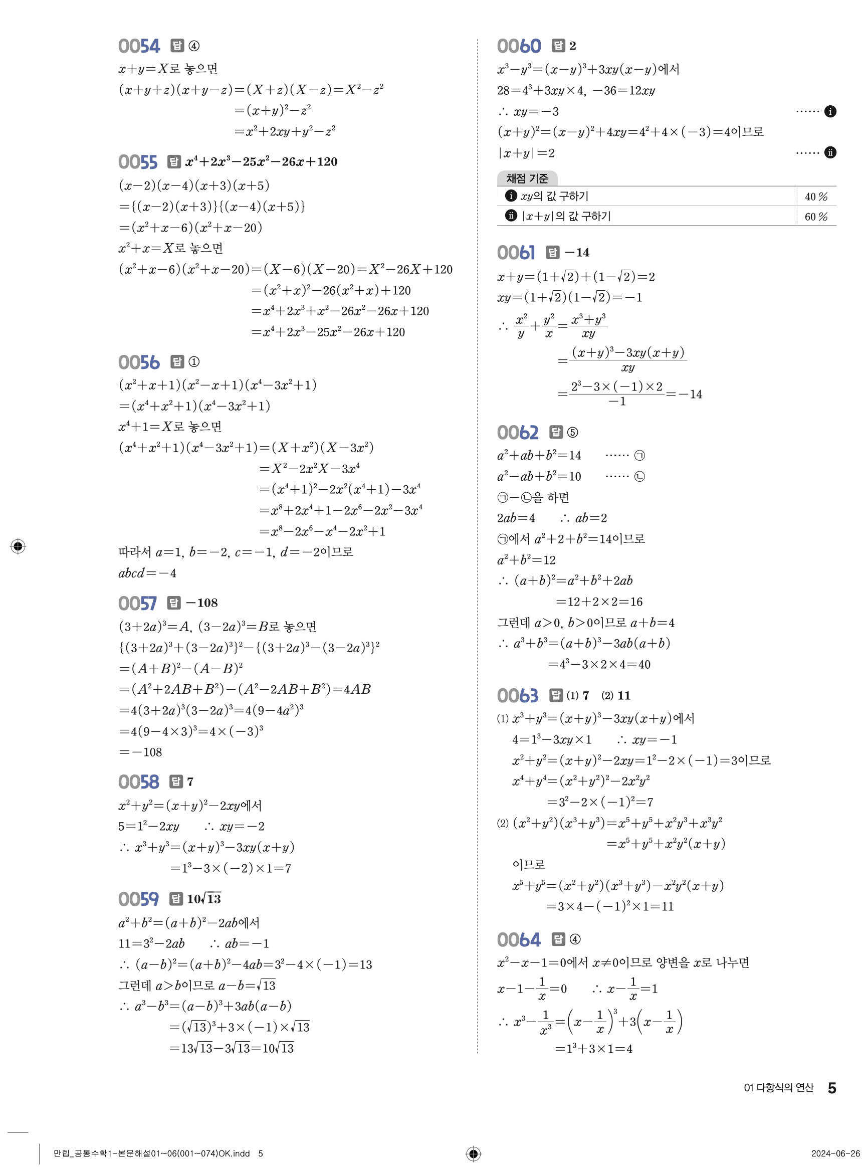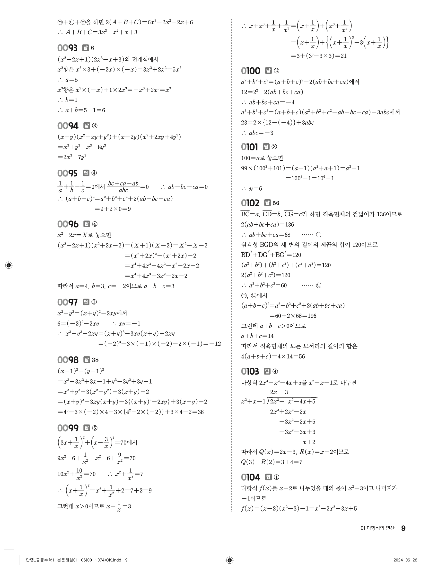 🔗 유형 만렙 공통수학1 정답 해설 PDF