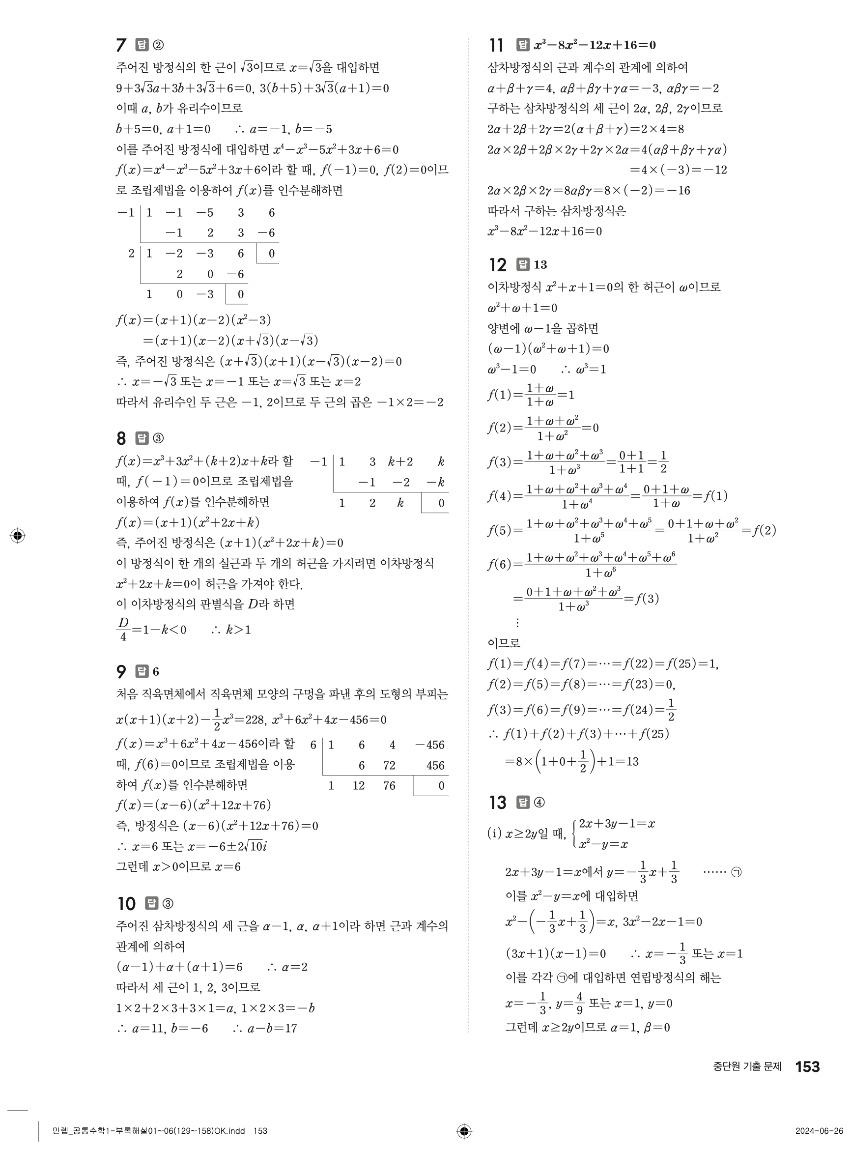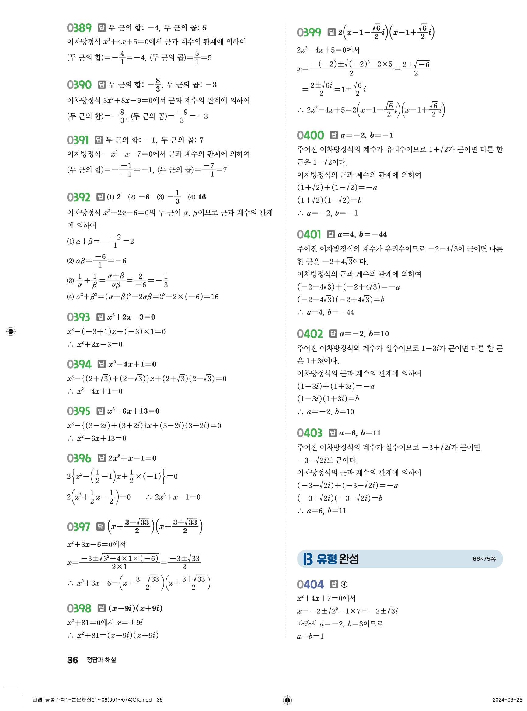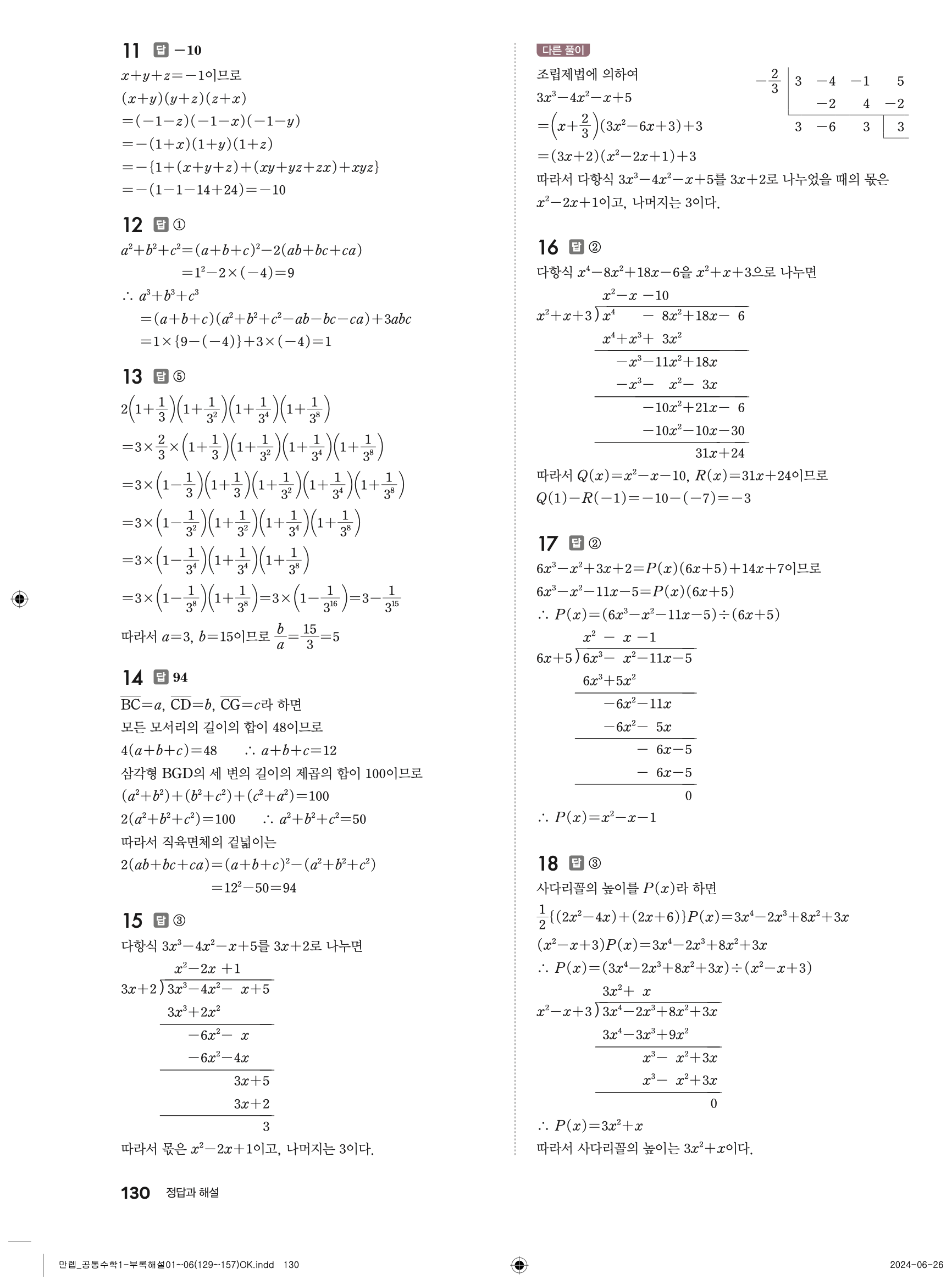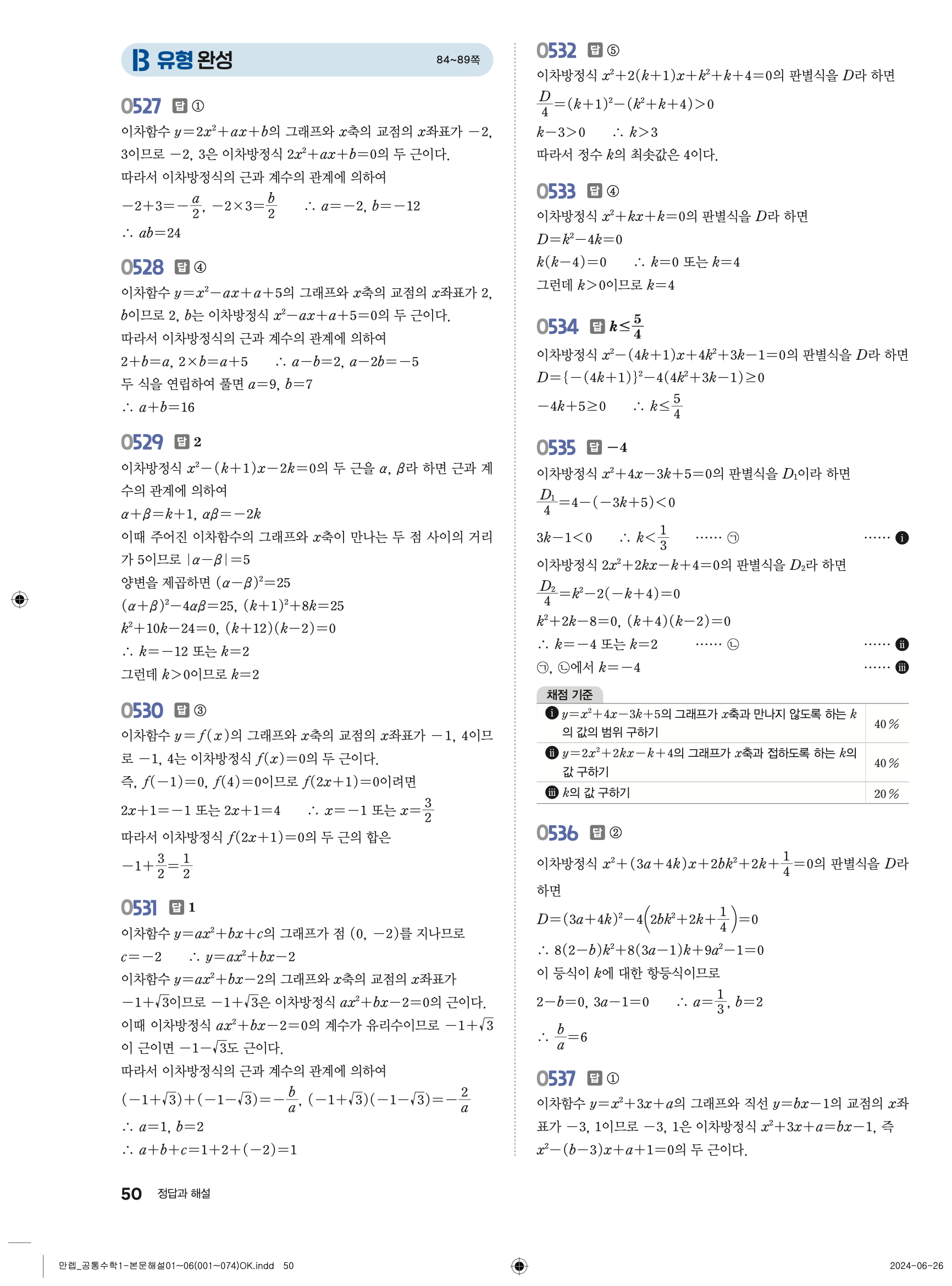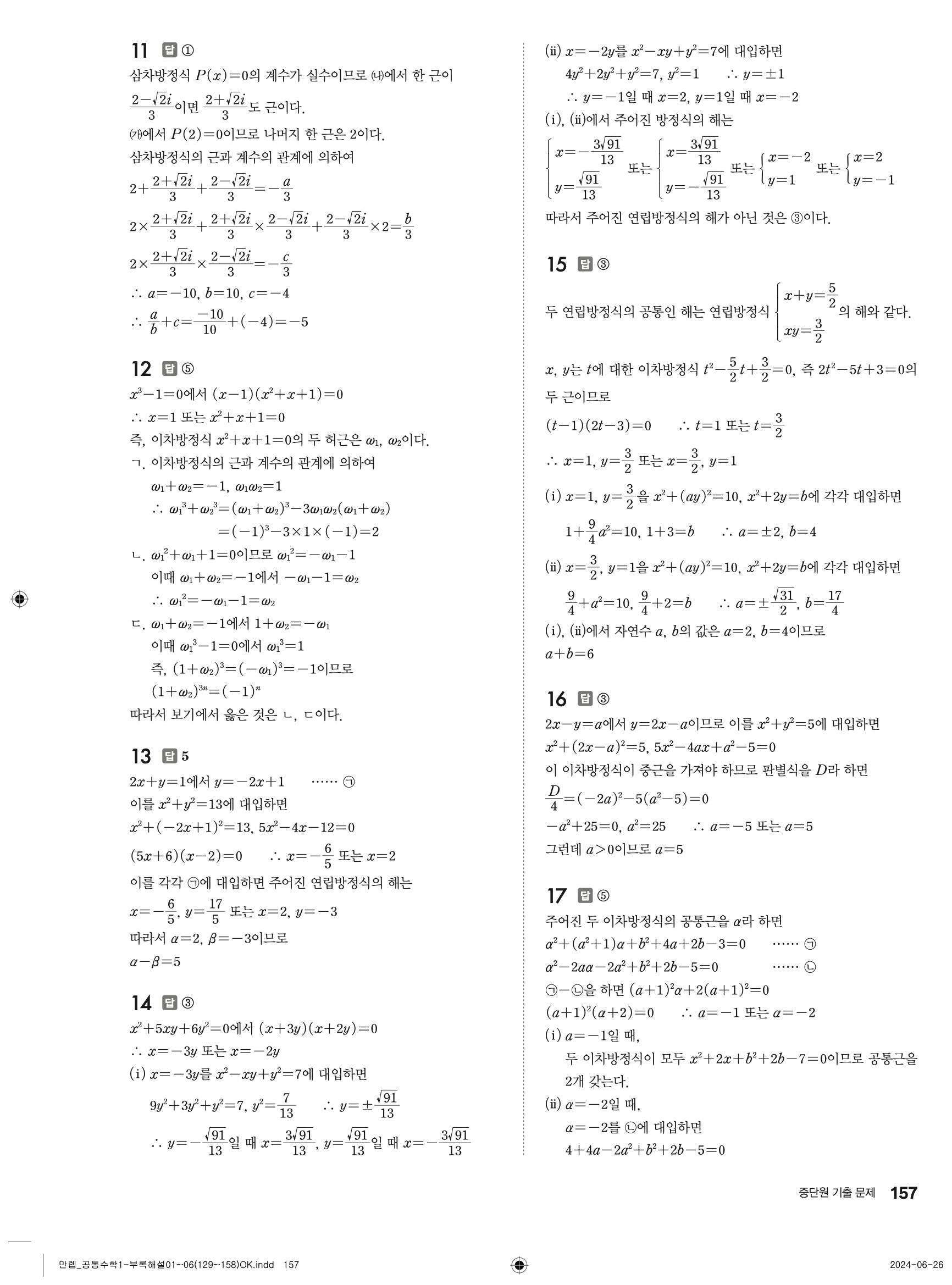 🔗 유형 만렙 공통수학1 정답 해설 PDF
