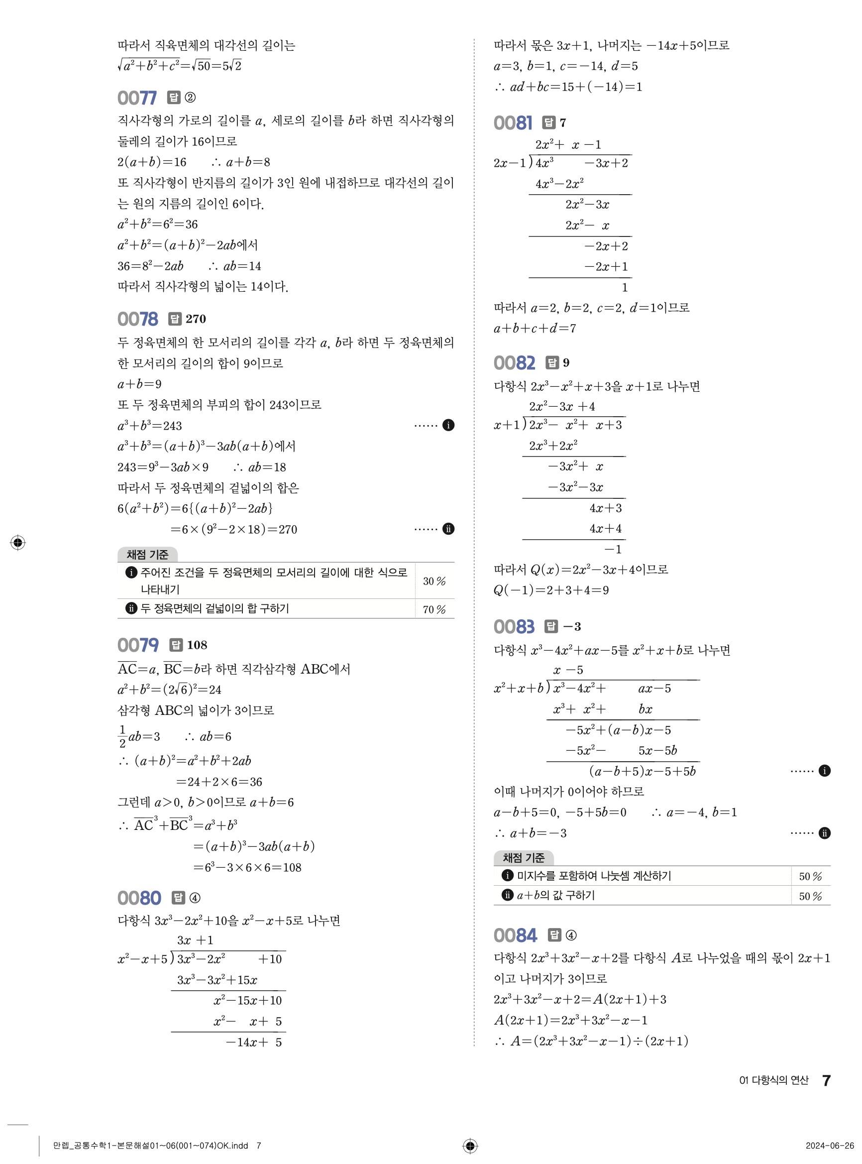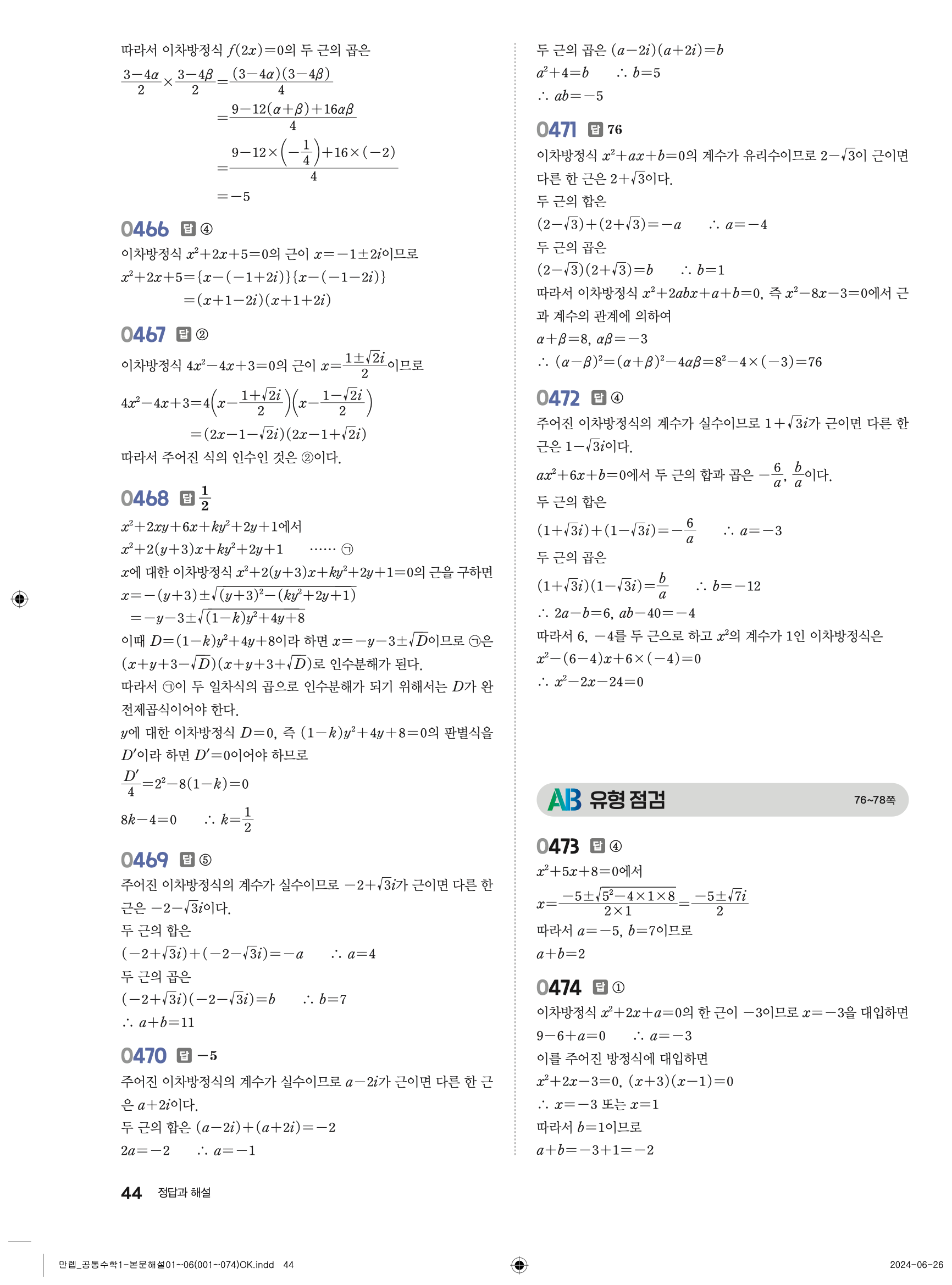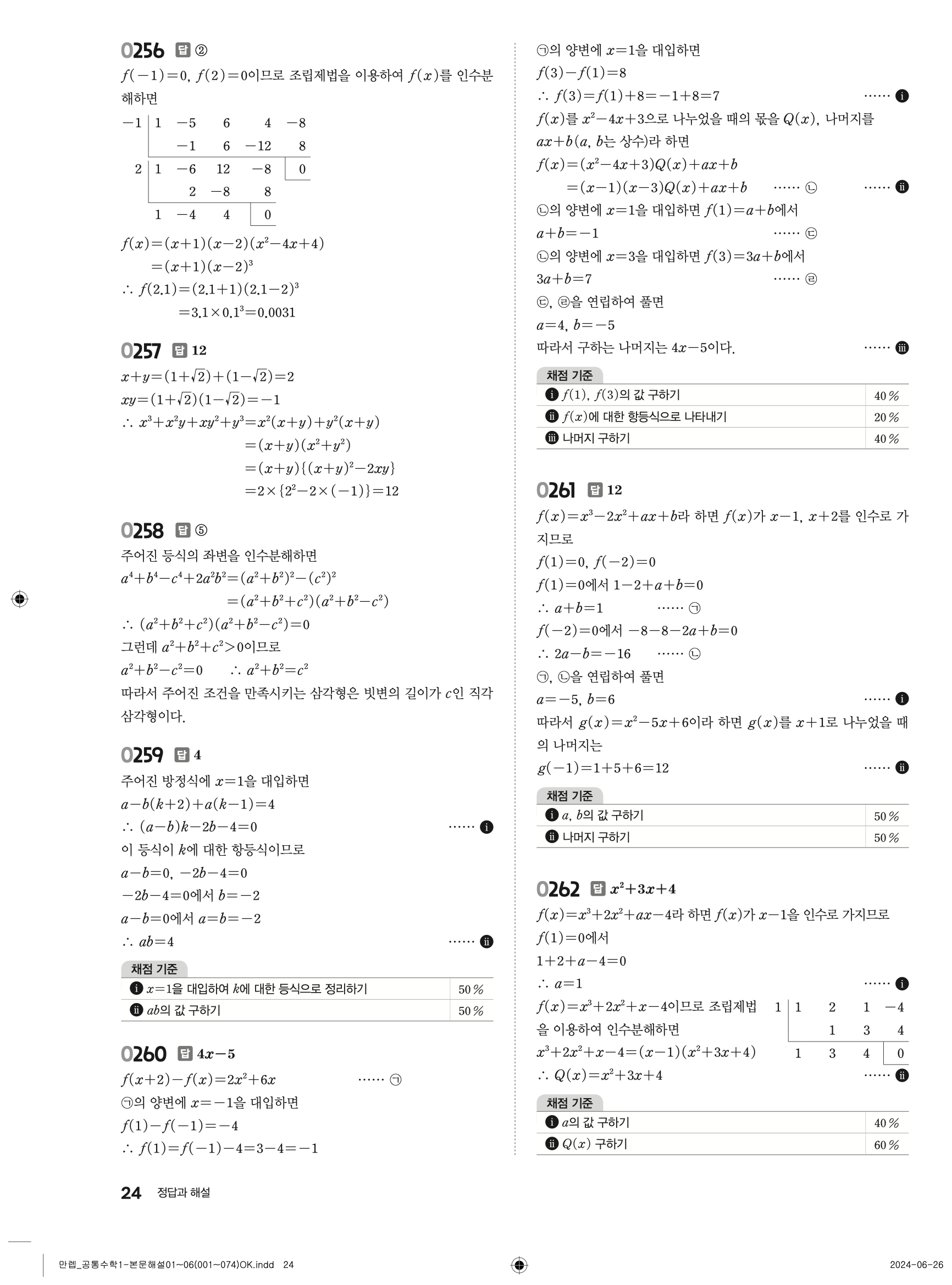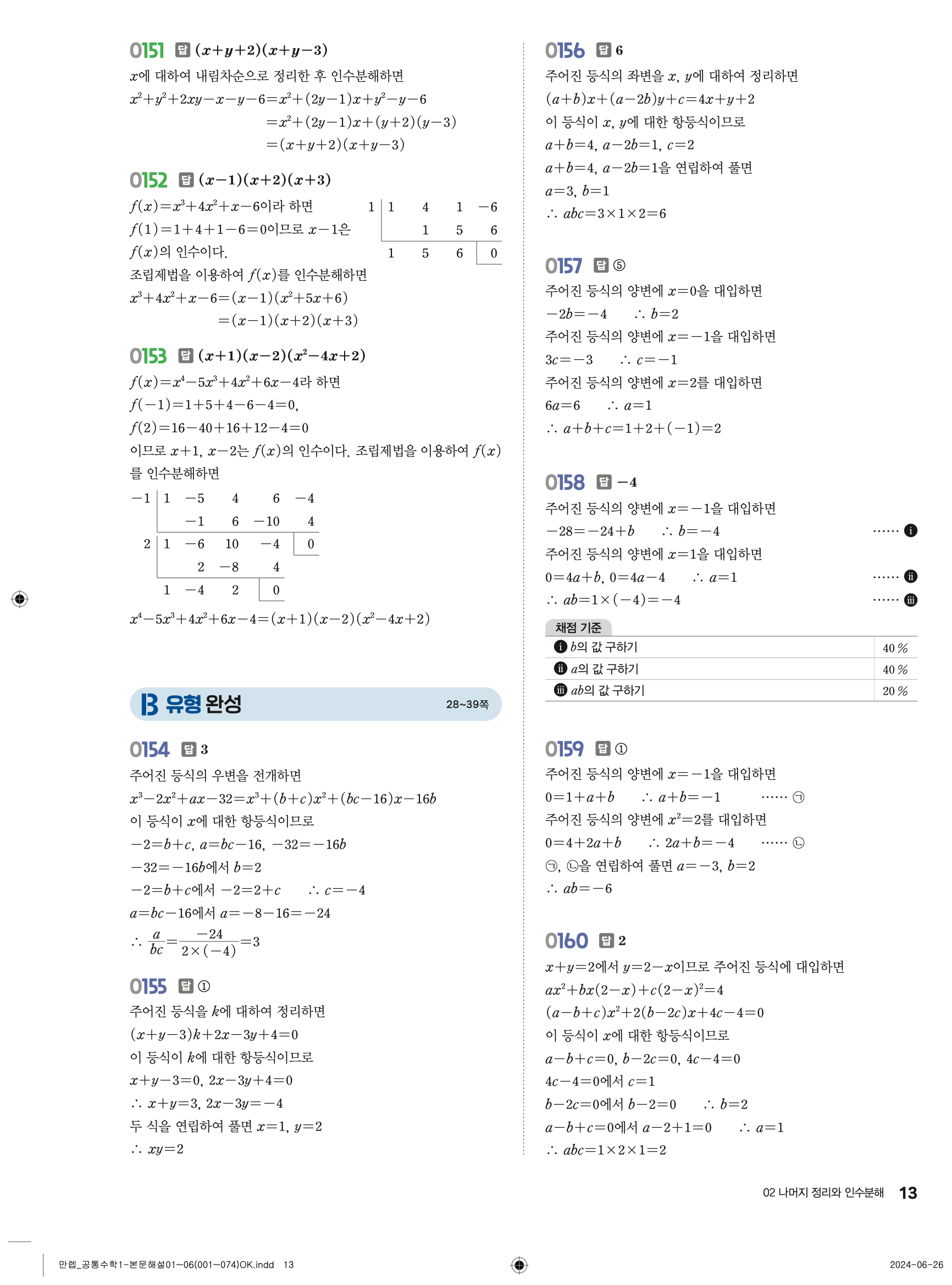 🔗 유형 만렙 공통수학1 정답 해설 PDF