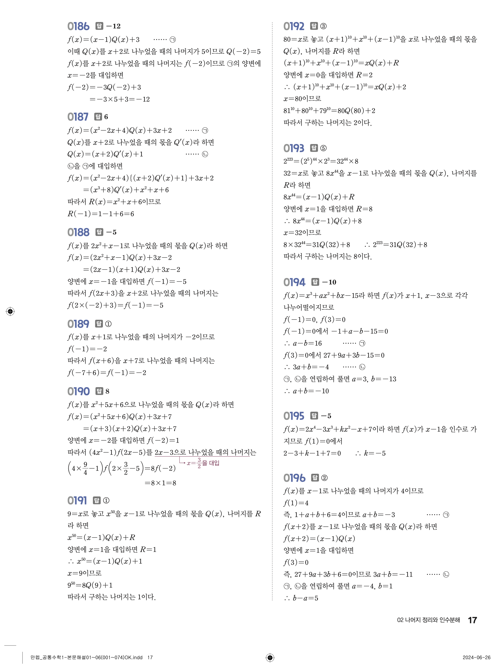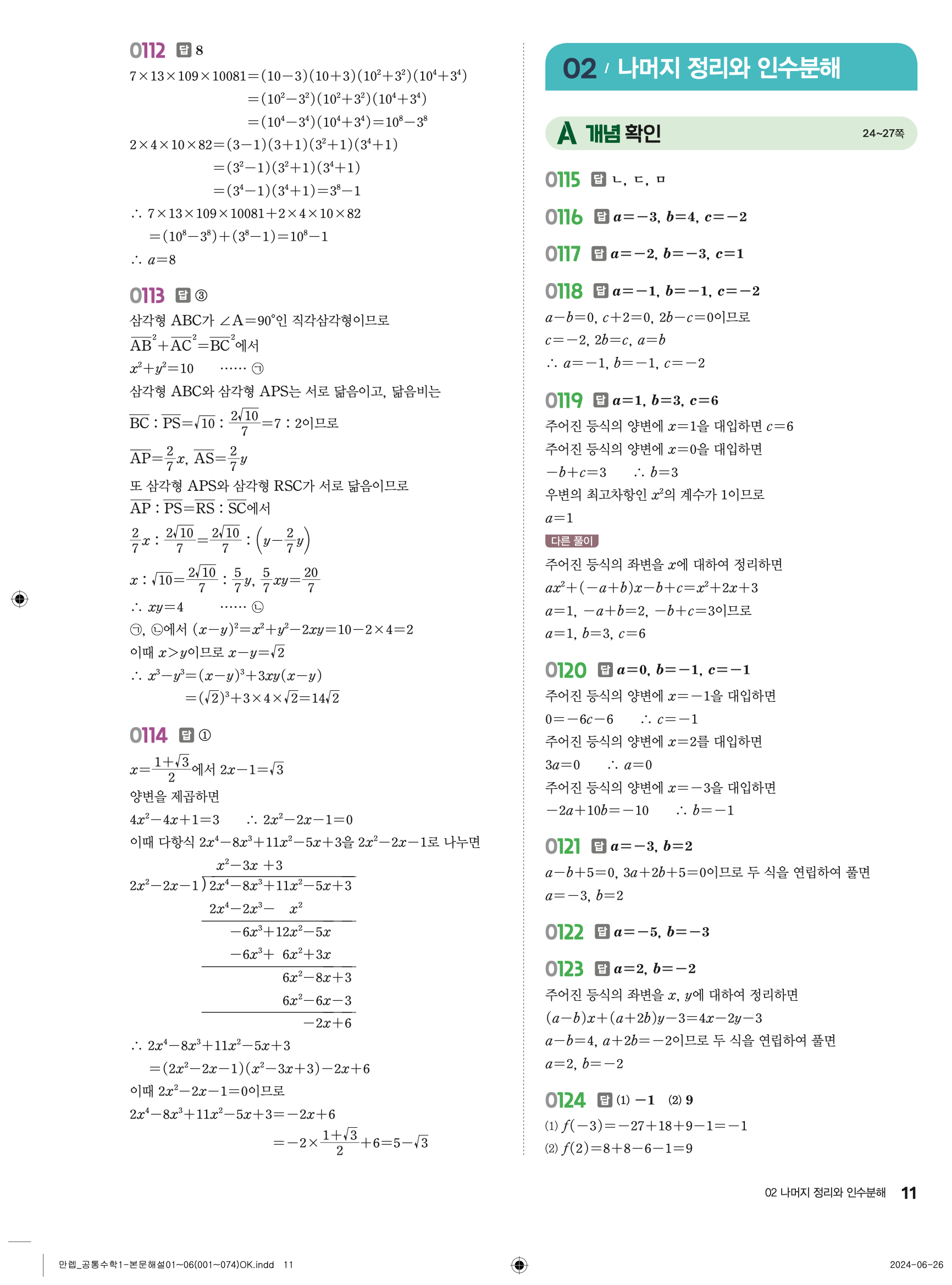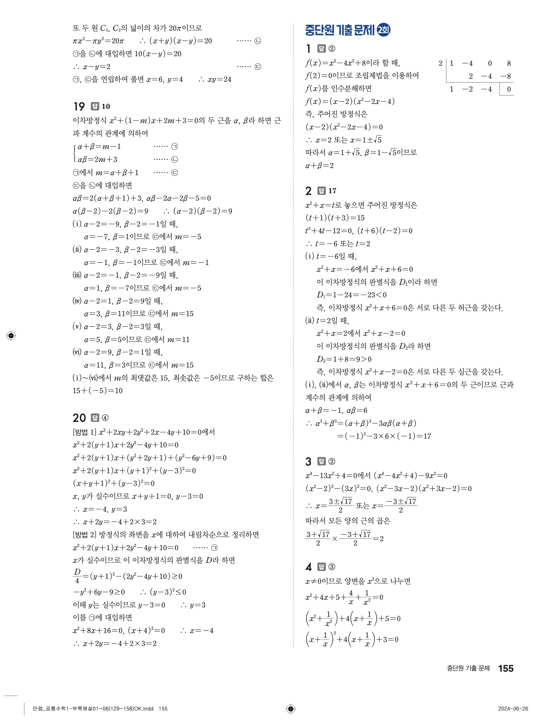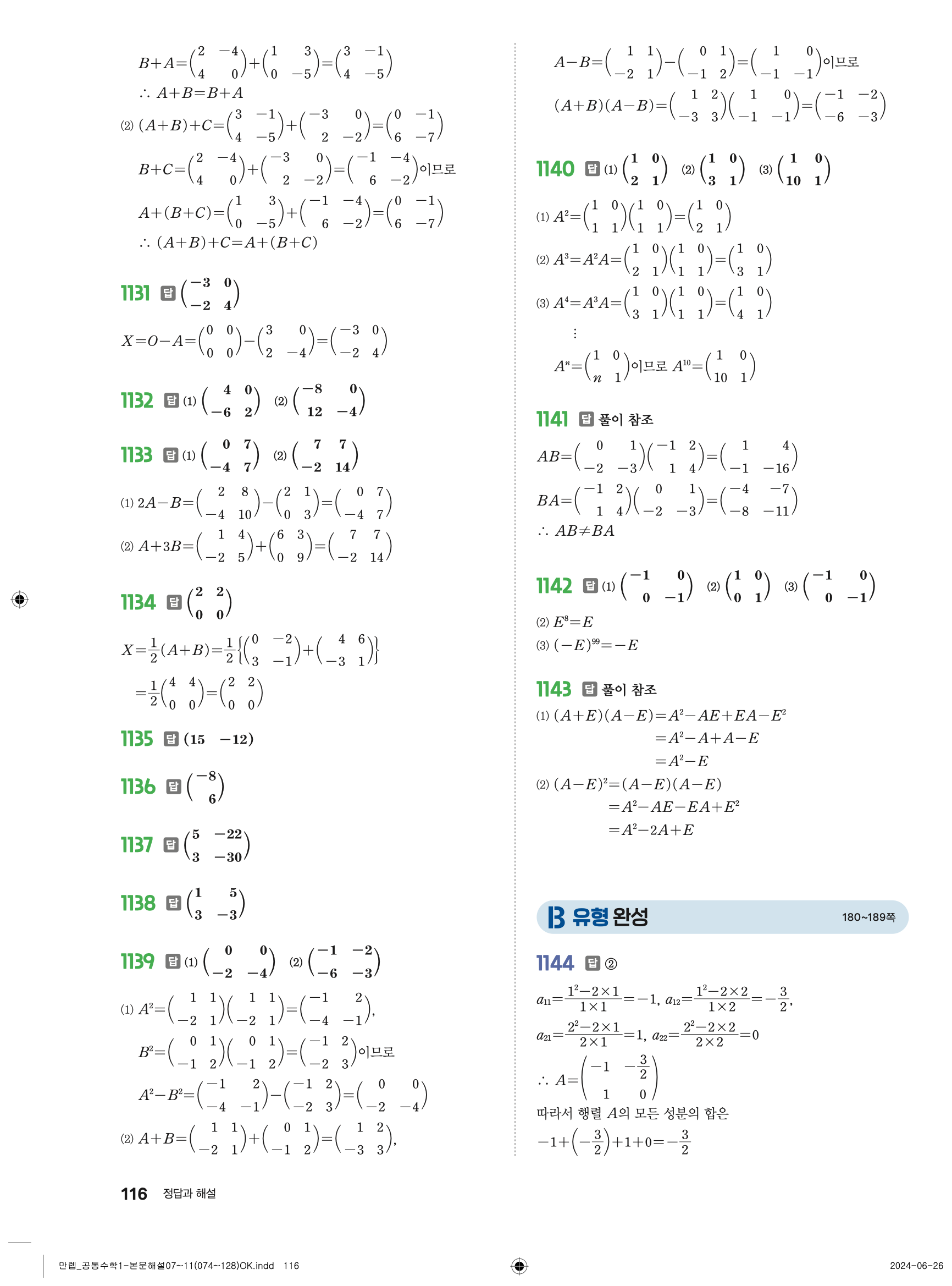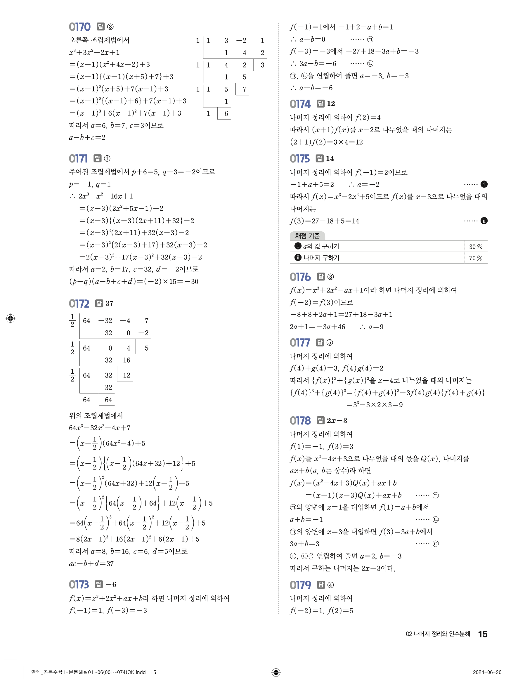 🔗 유형 만렙 공통수학1 정답 해설 PDF
