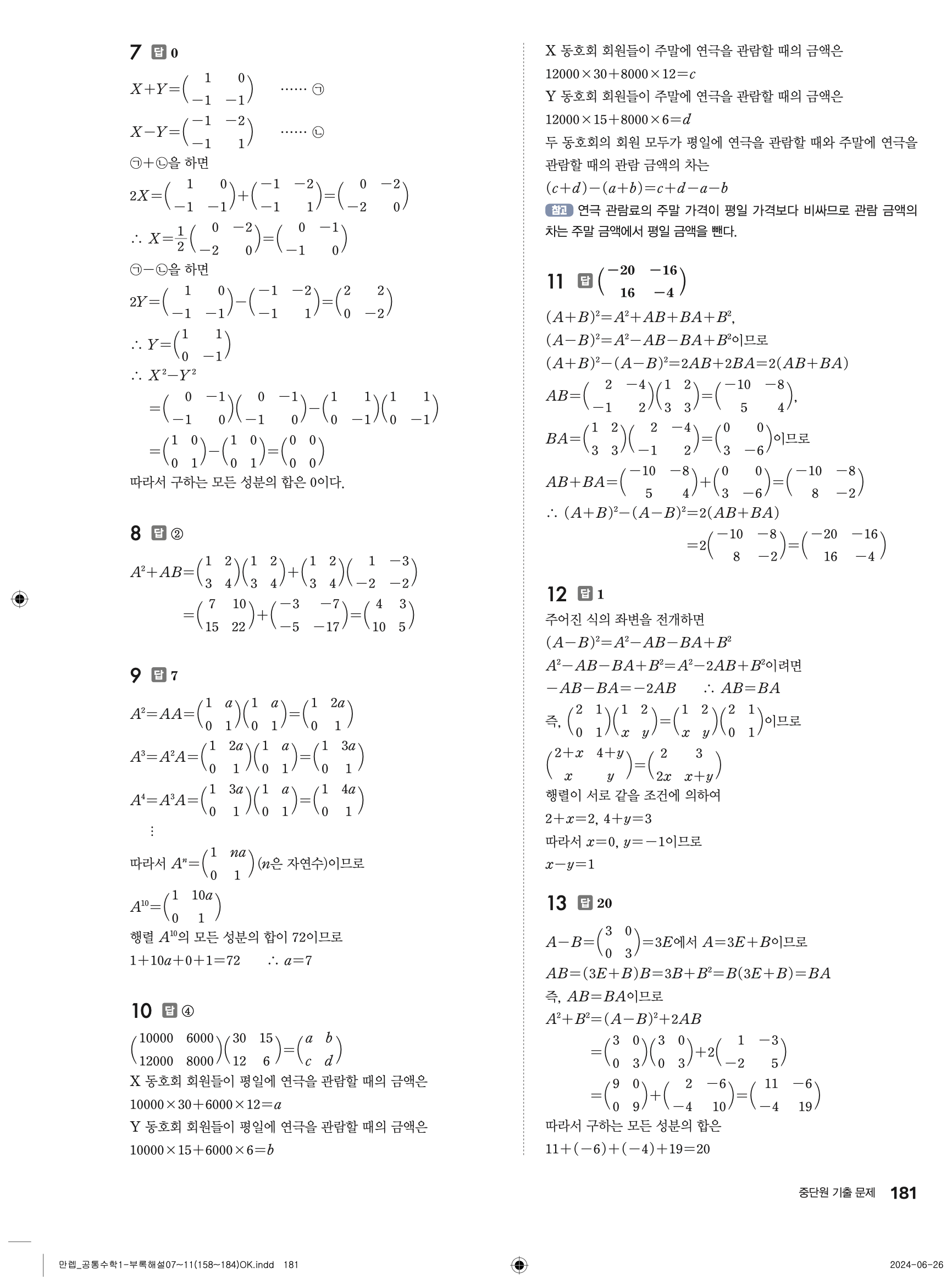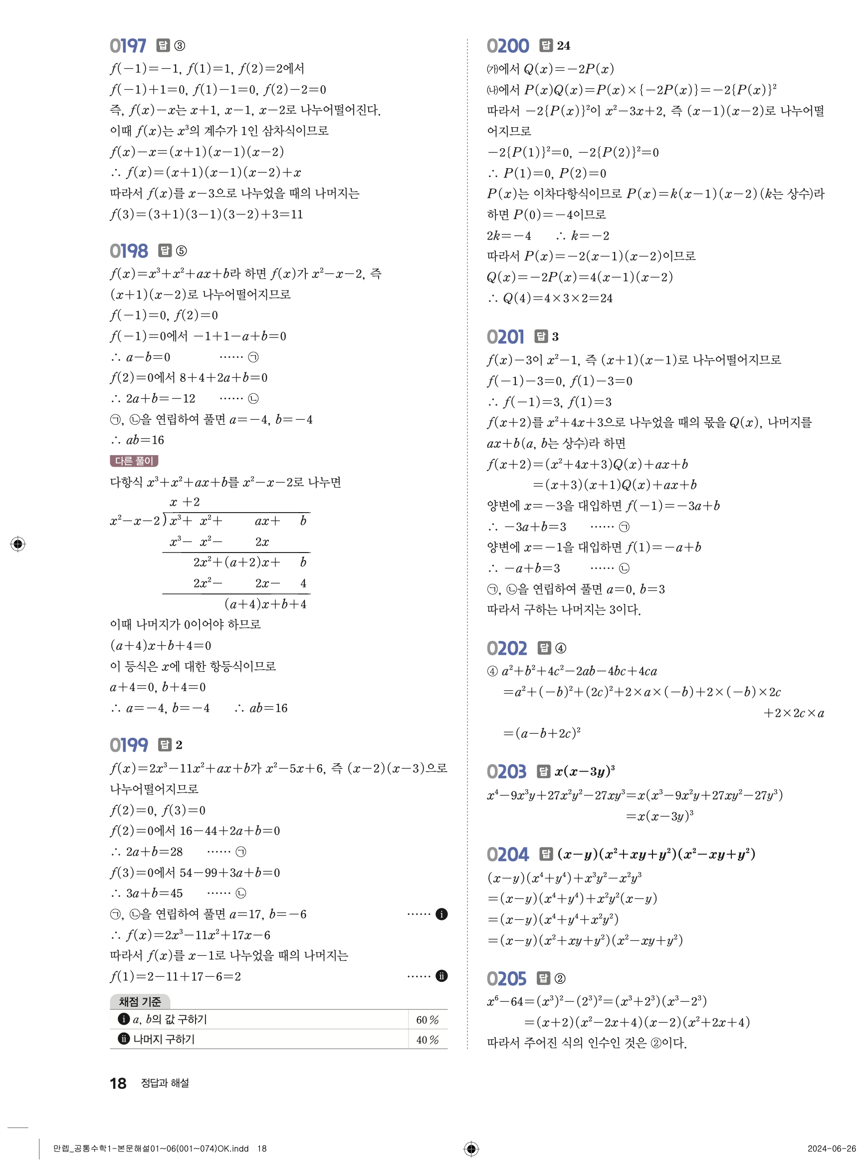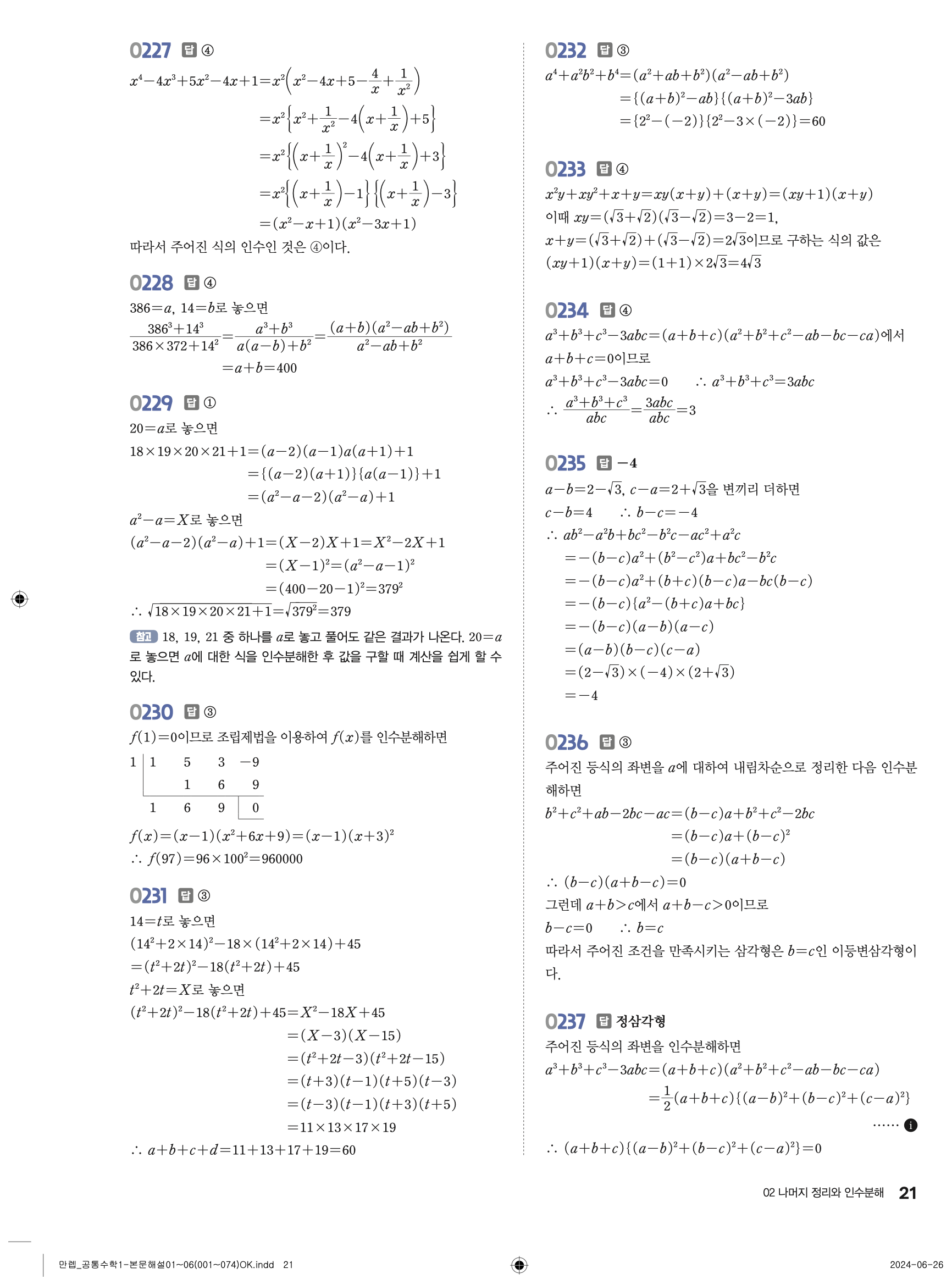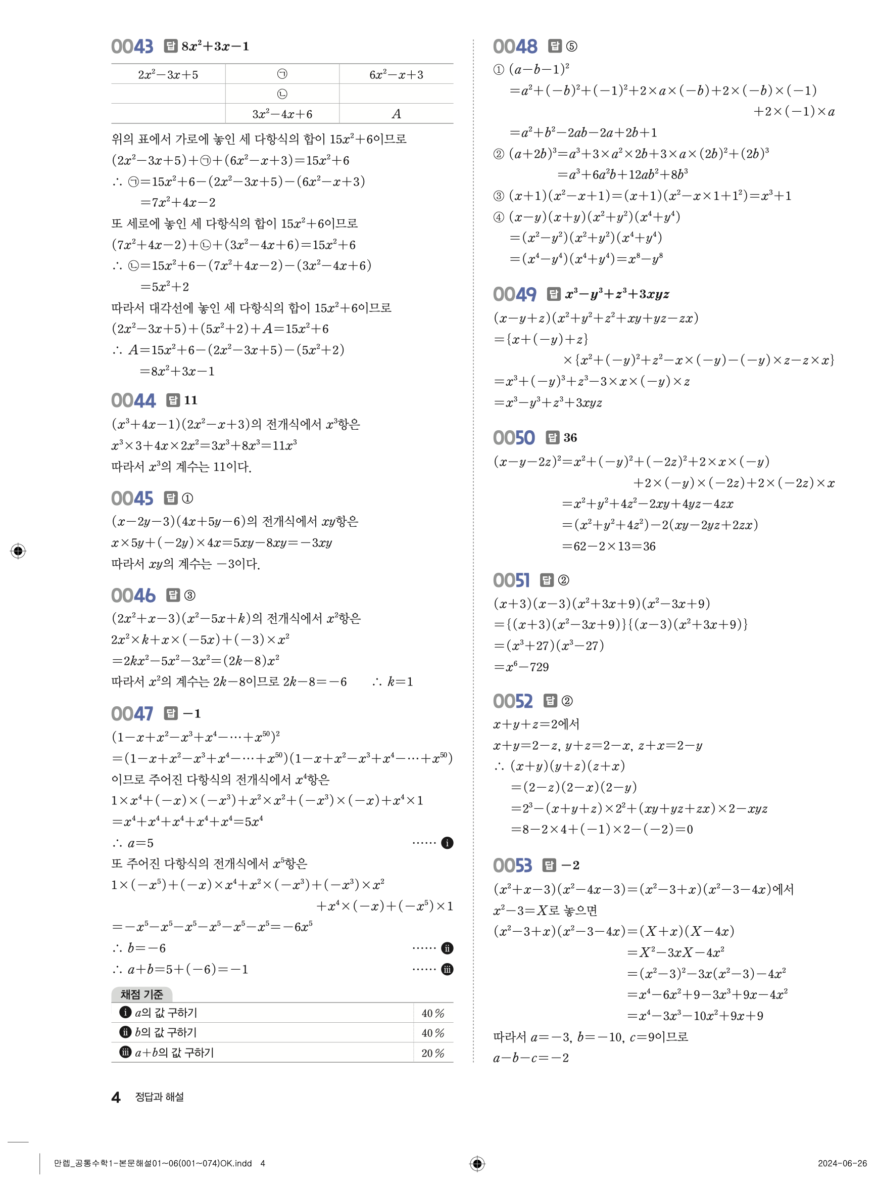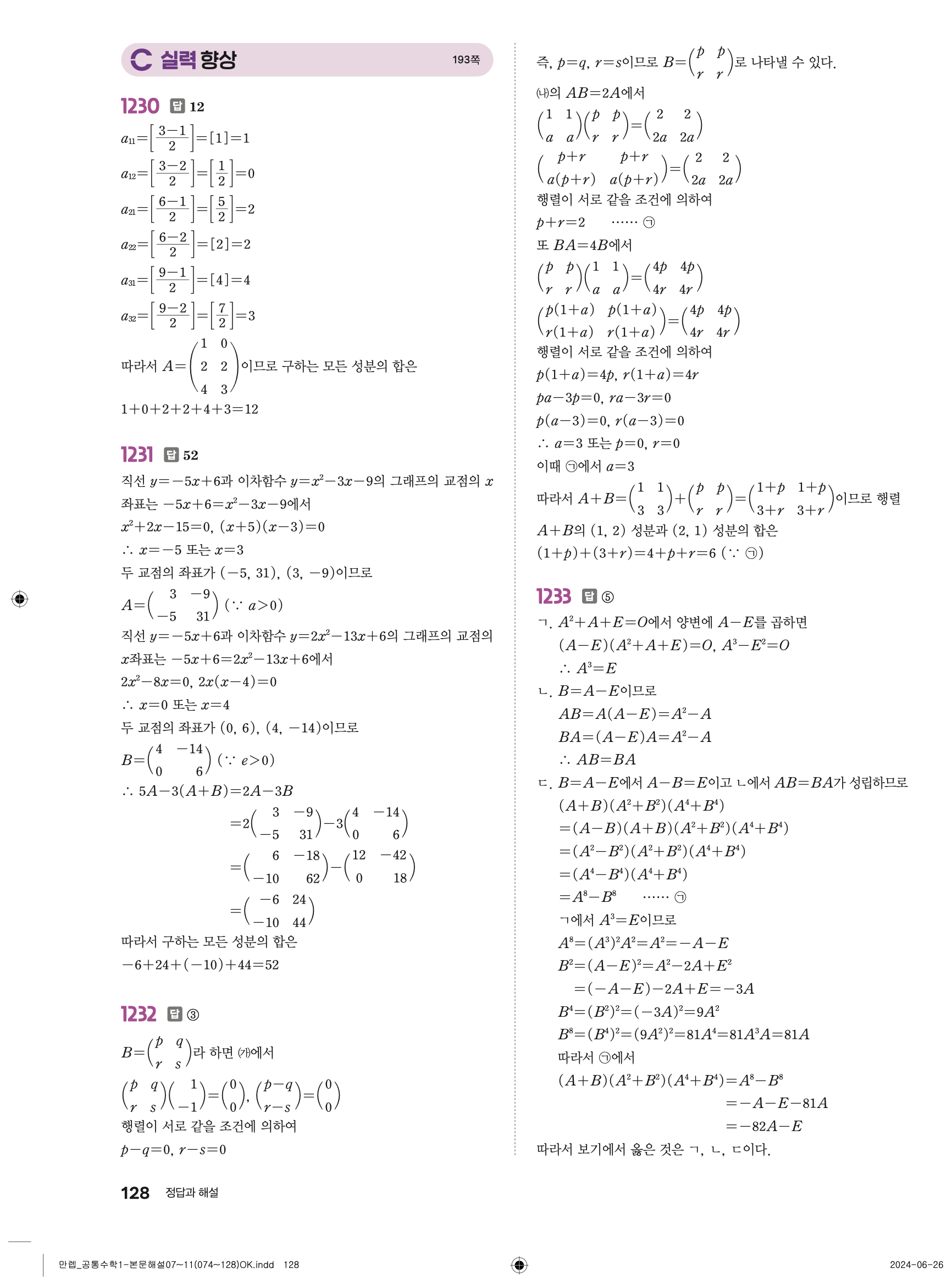 🔗 유형 만렙 공통수학1 정답 해설 PDF
