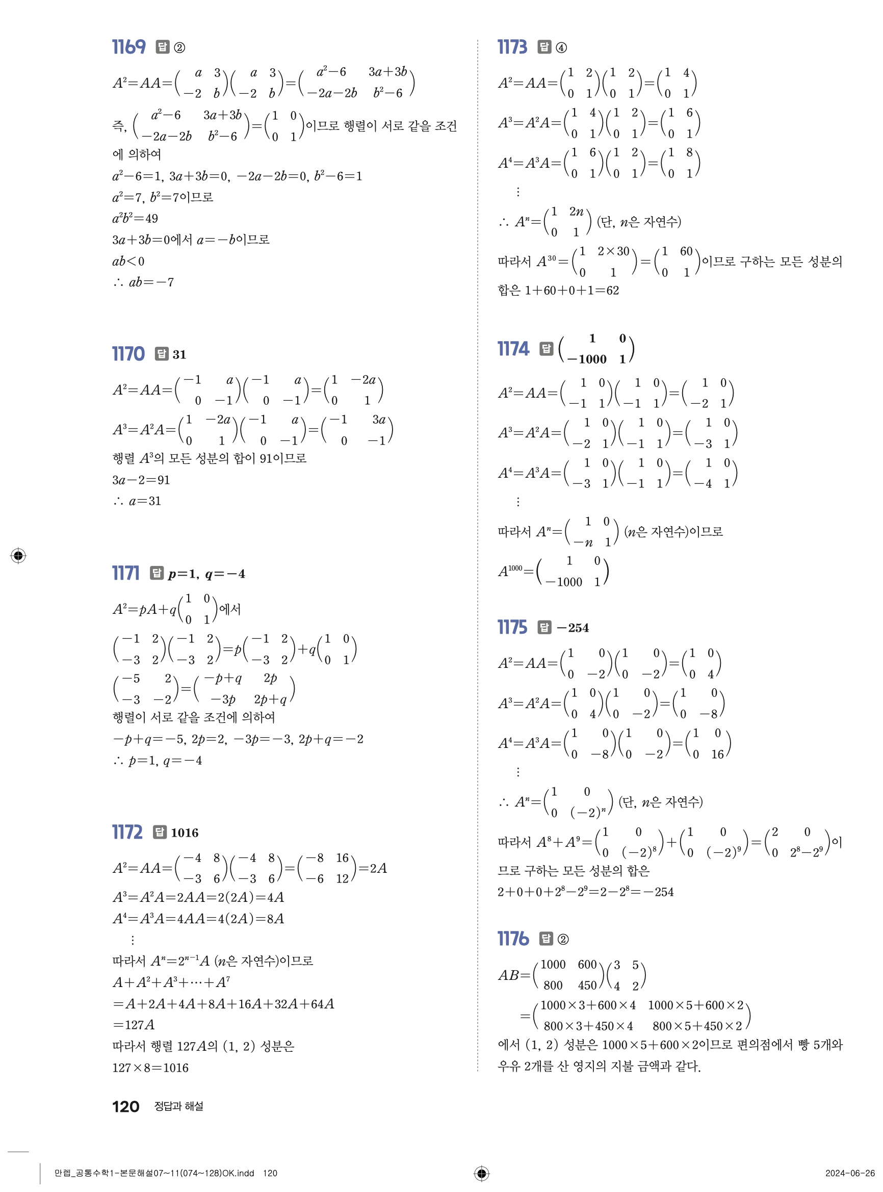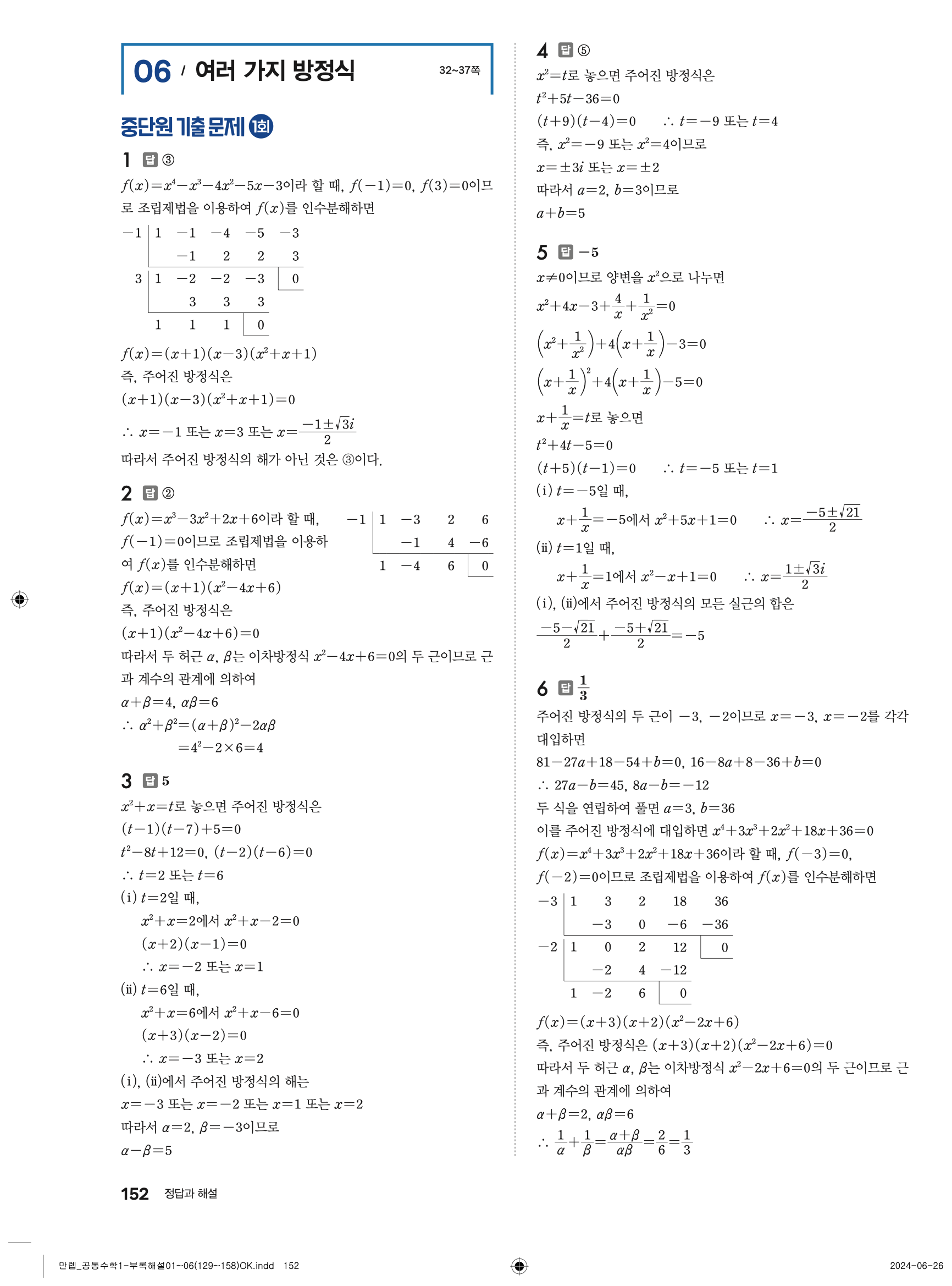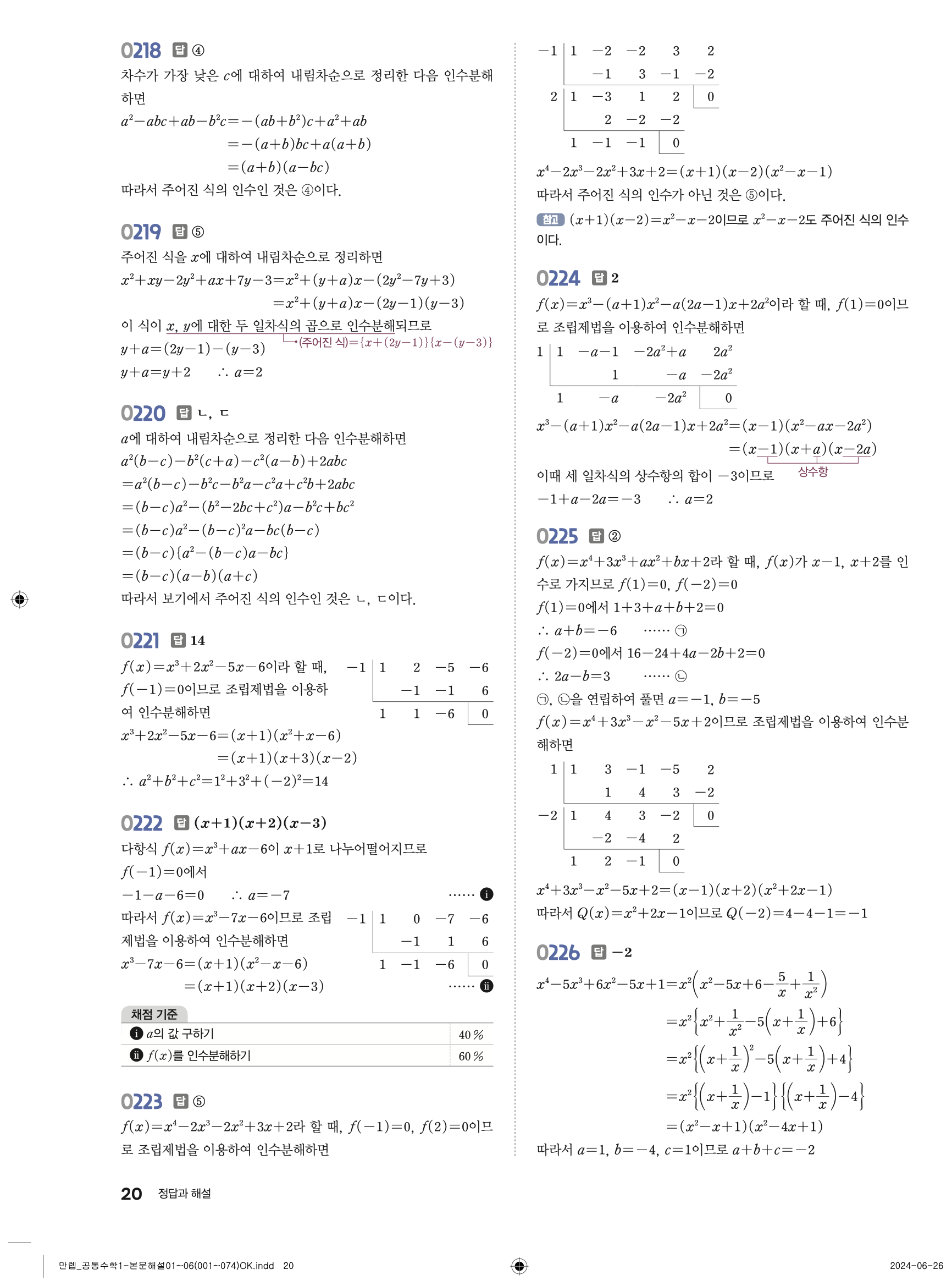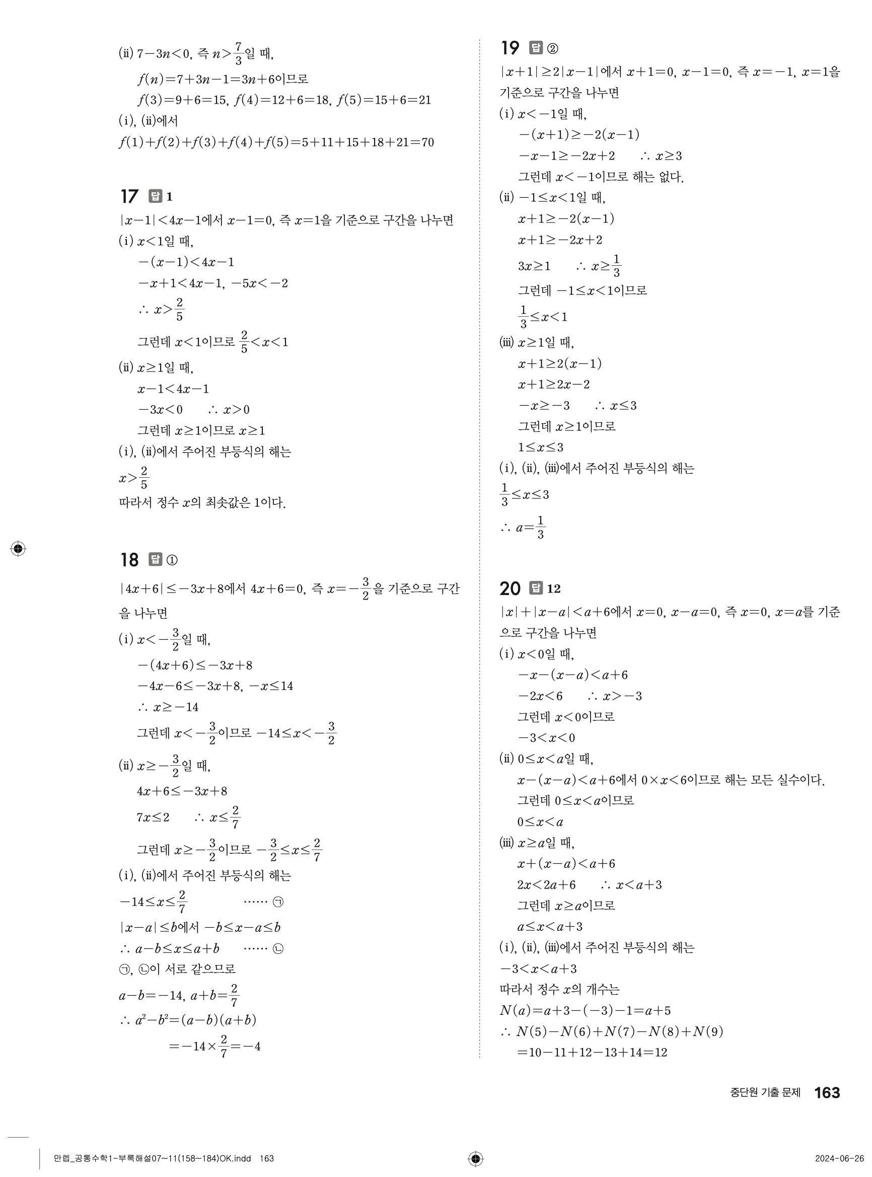 🔗 유형 만렙 공통수학1 정답 해설 PDF