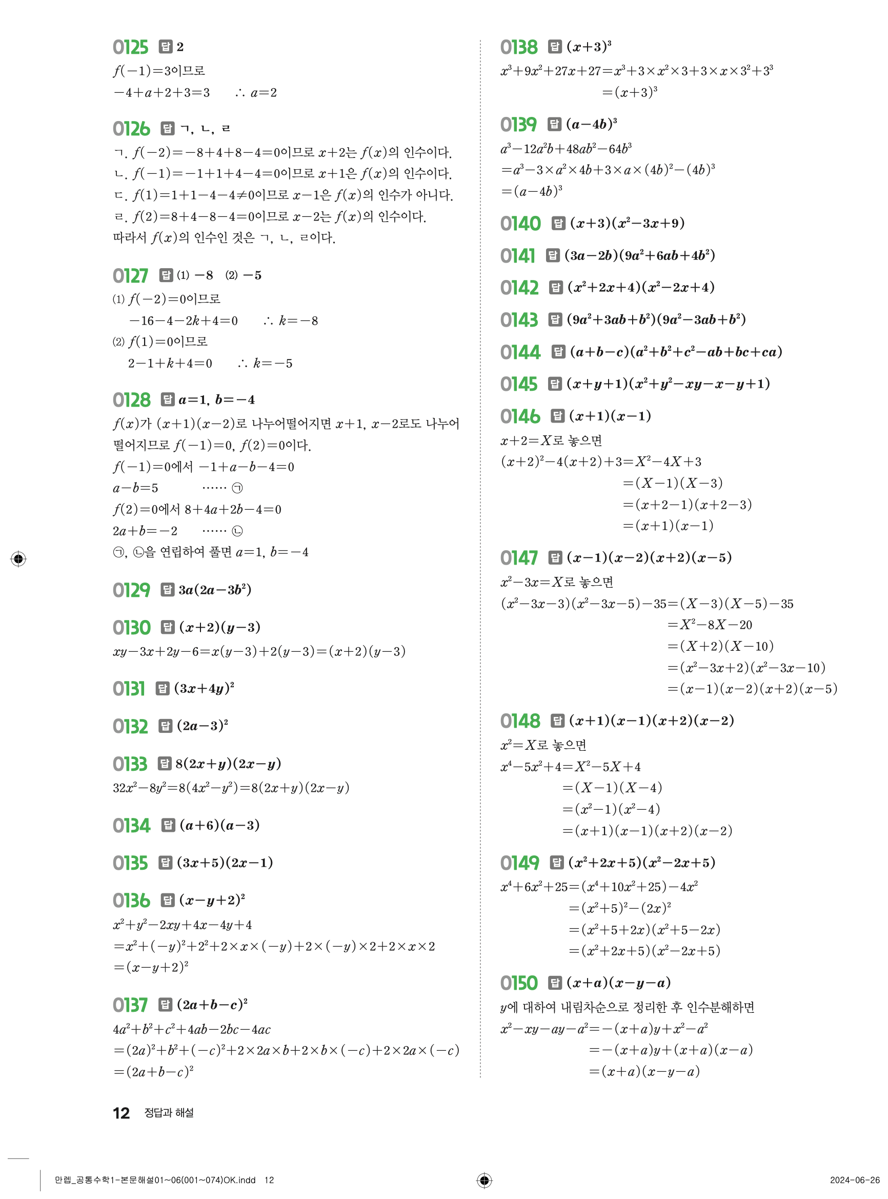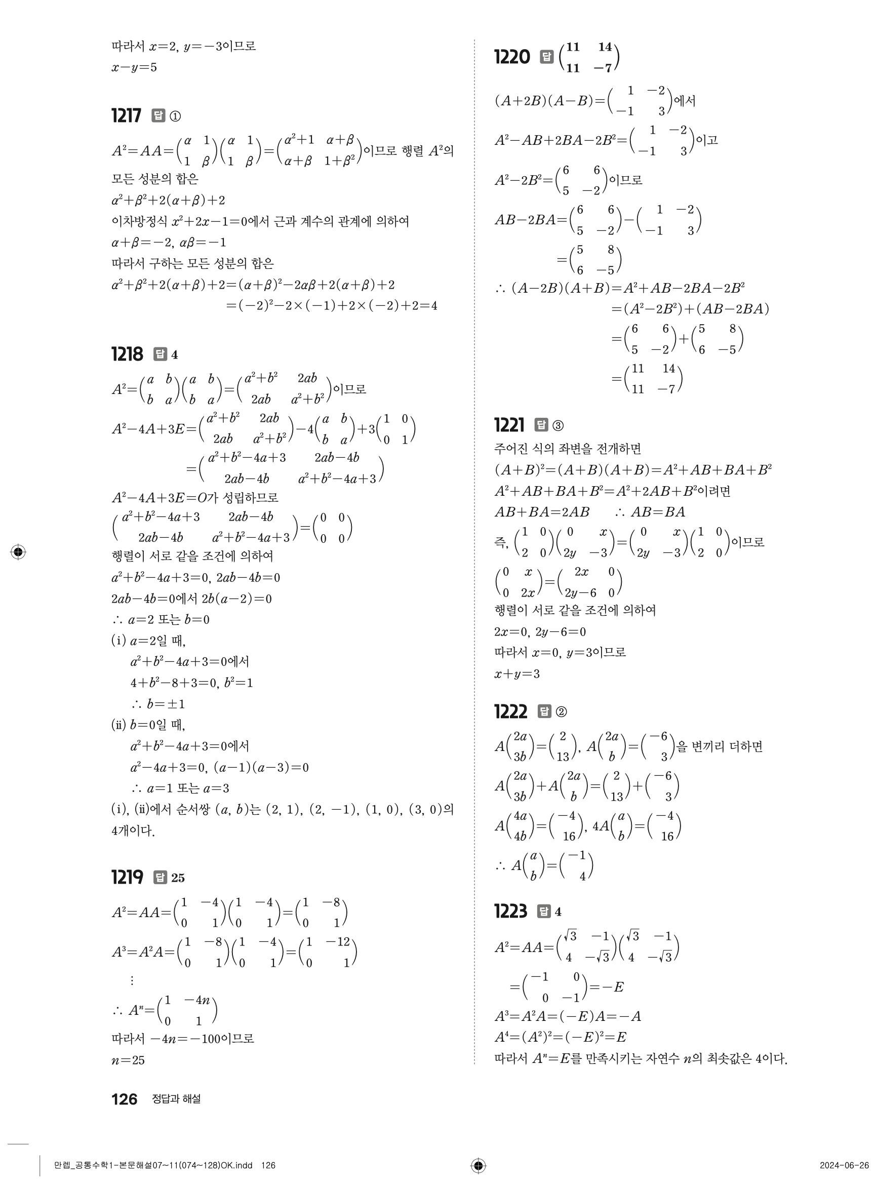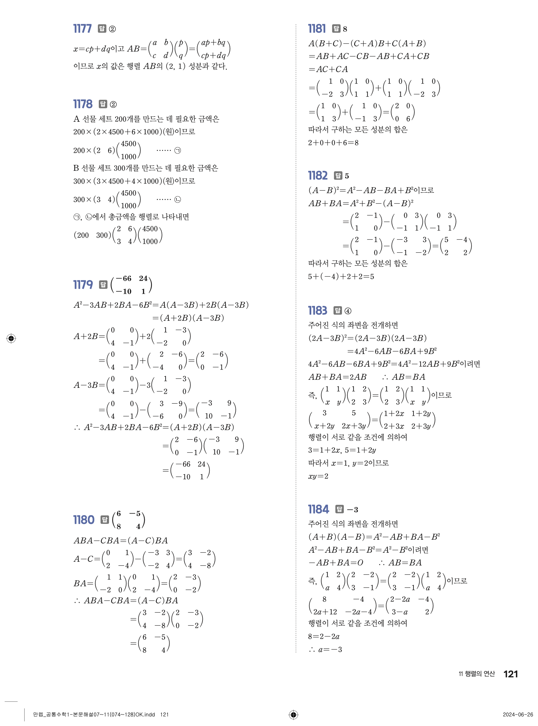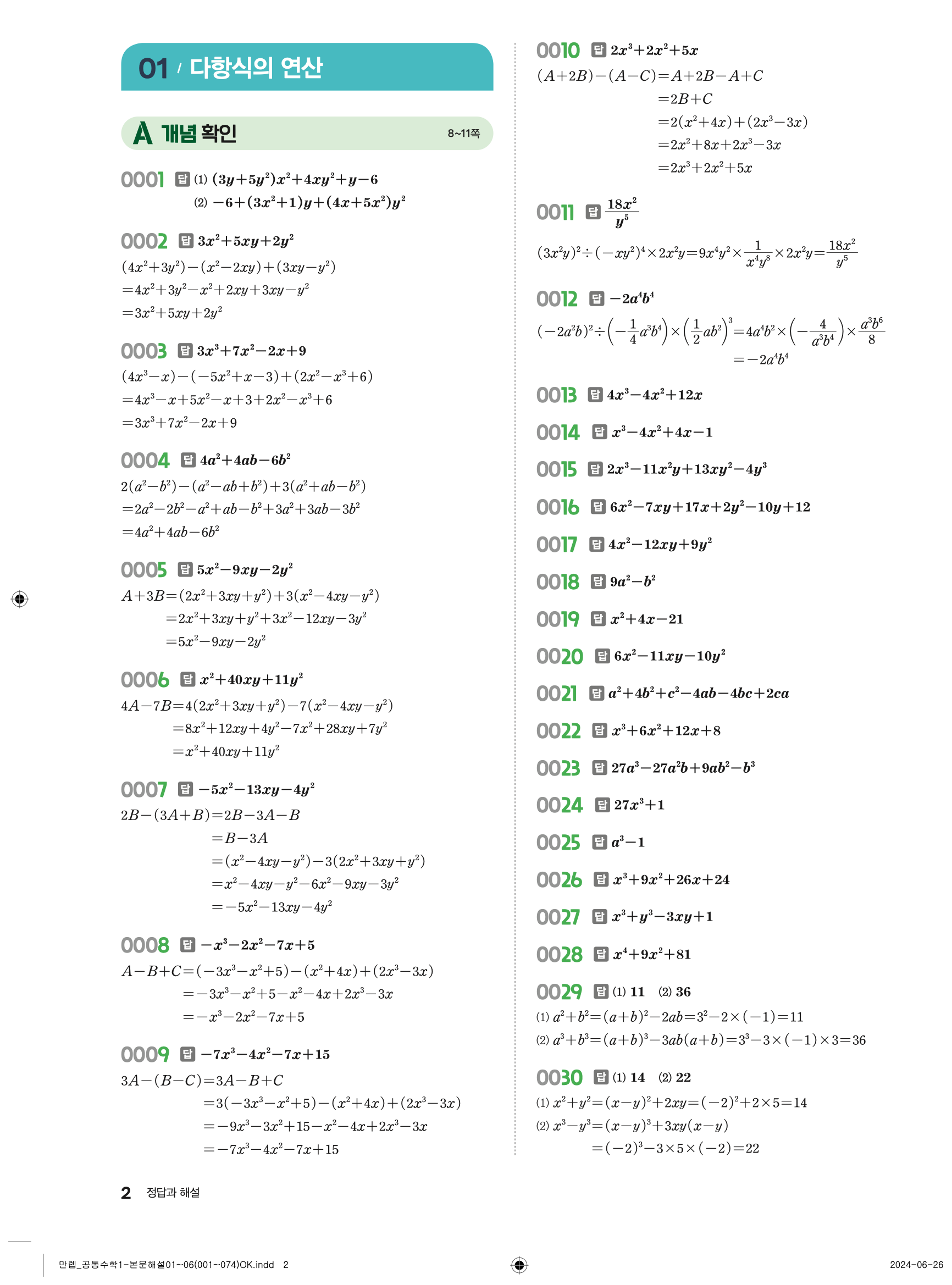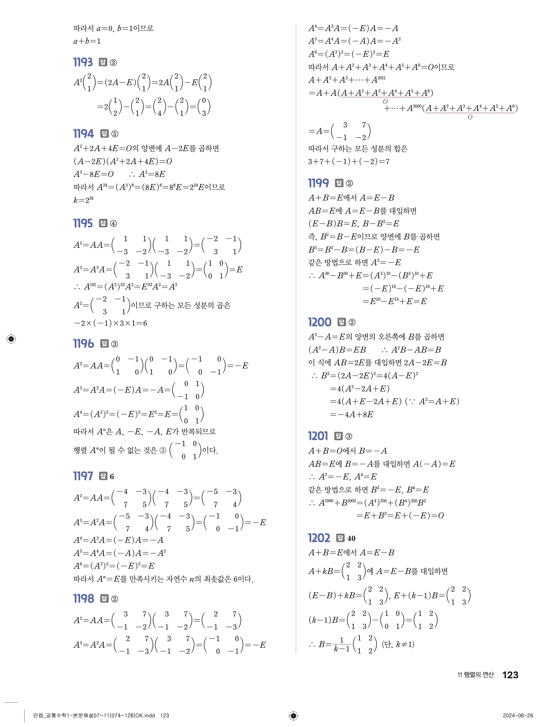 🔗 유형 만렙 공통수학1 정답 해설 PDF