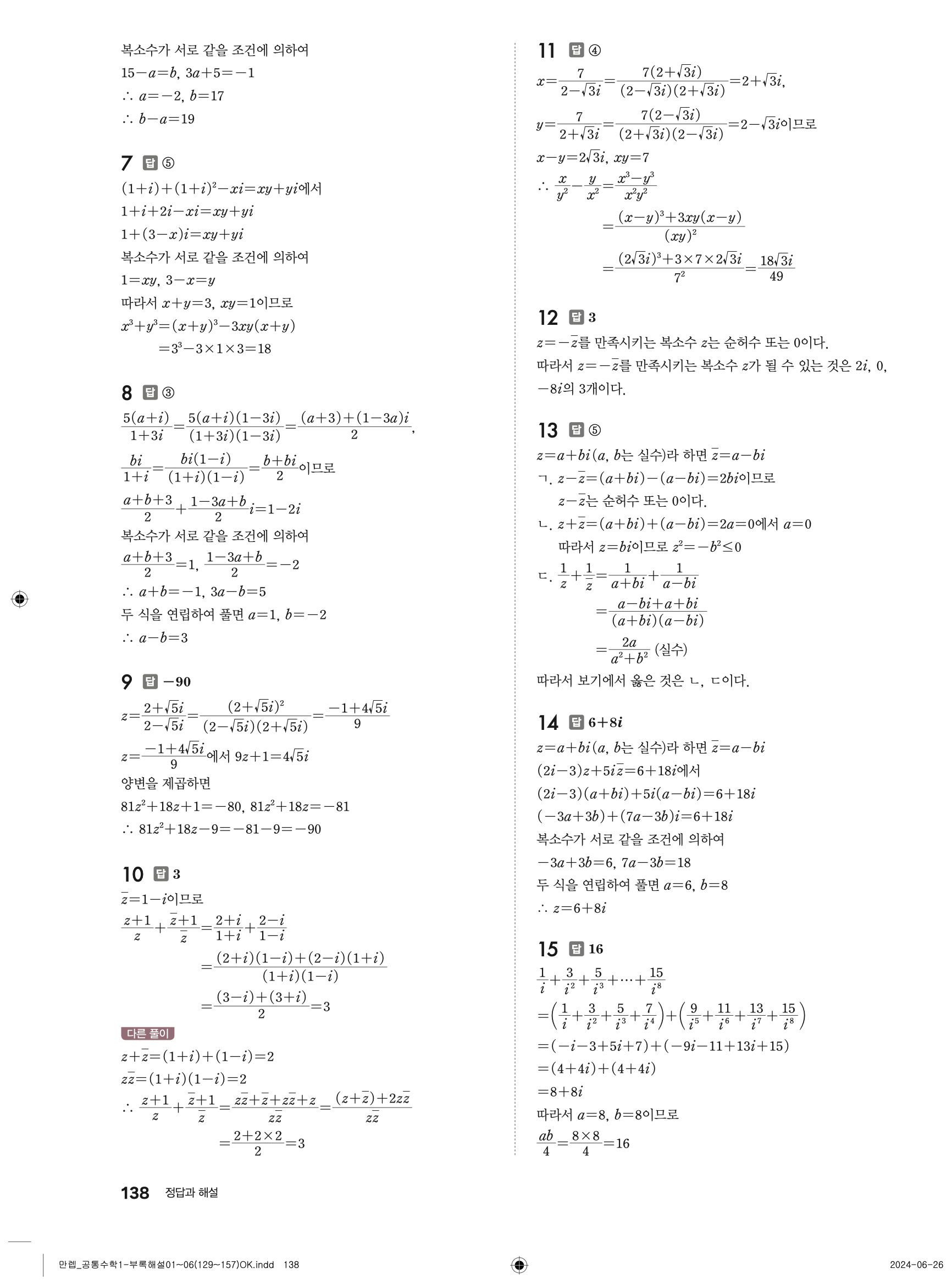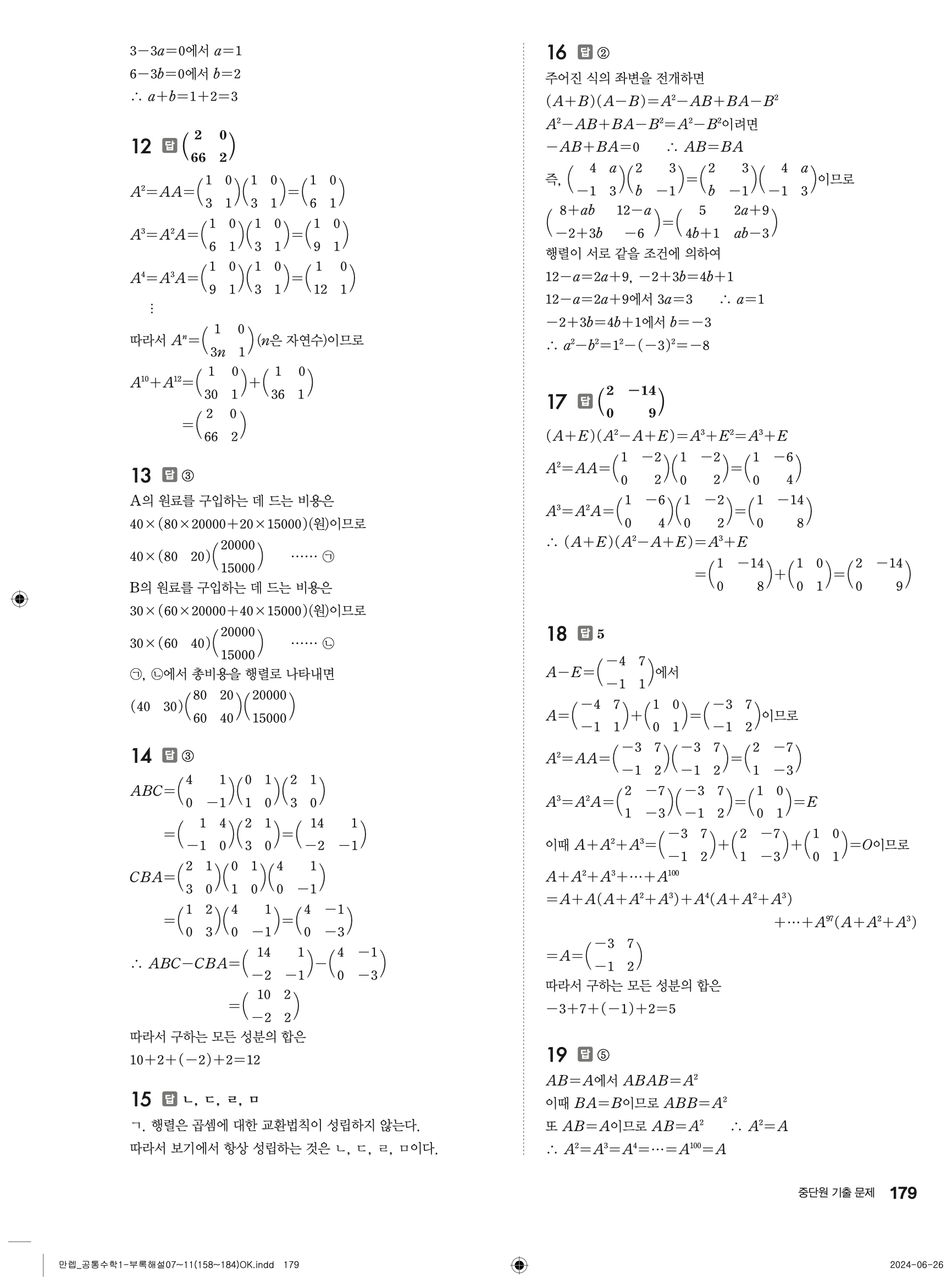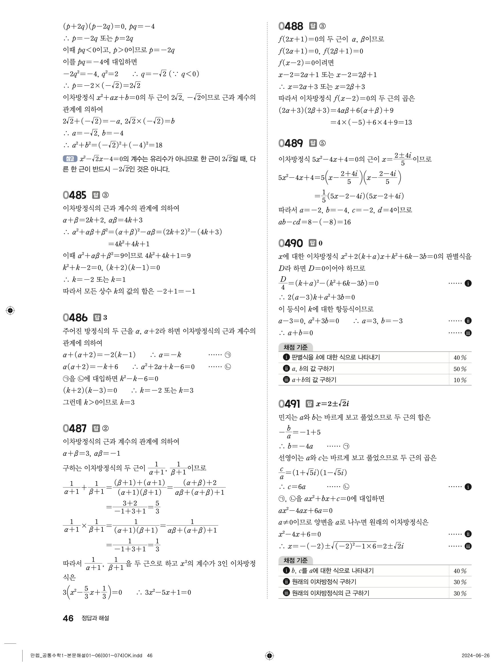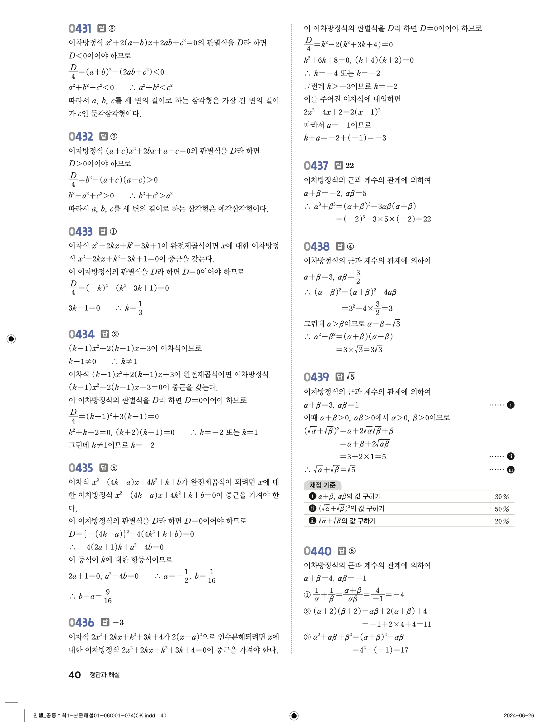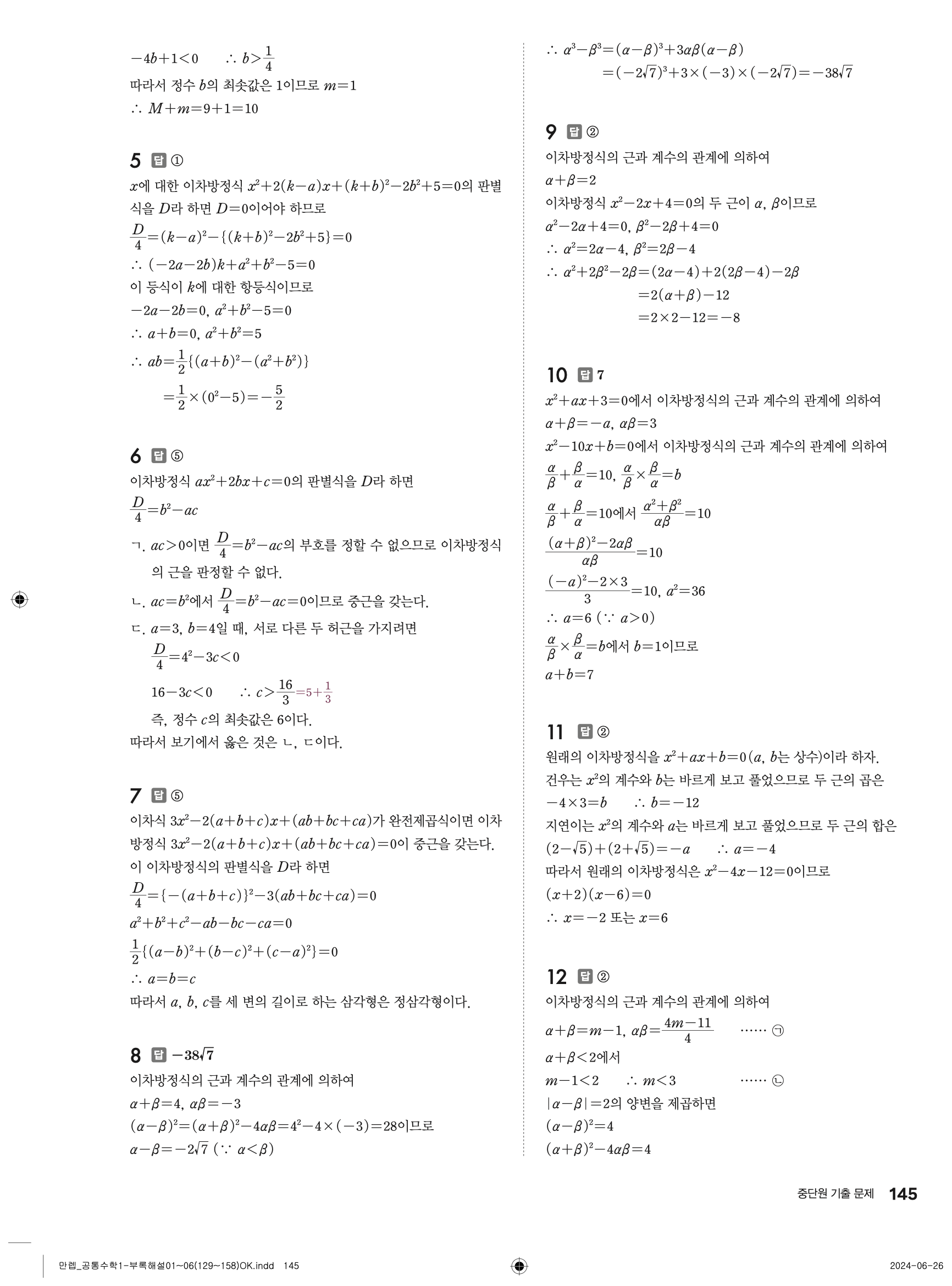 📌 유형 만렙 공통수학1 빠른답지 다운로드