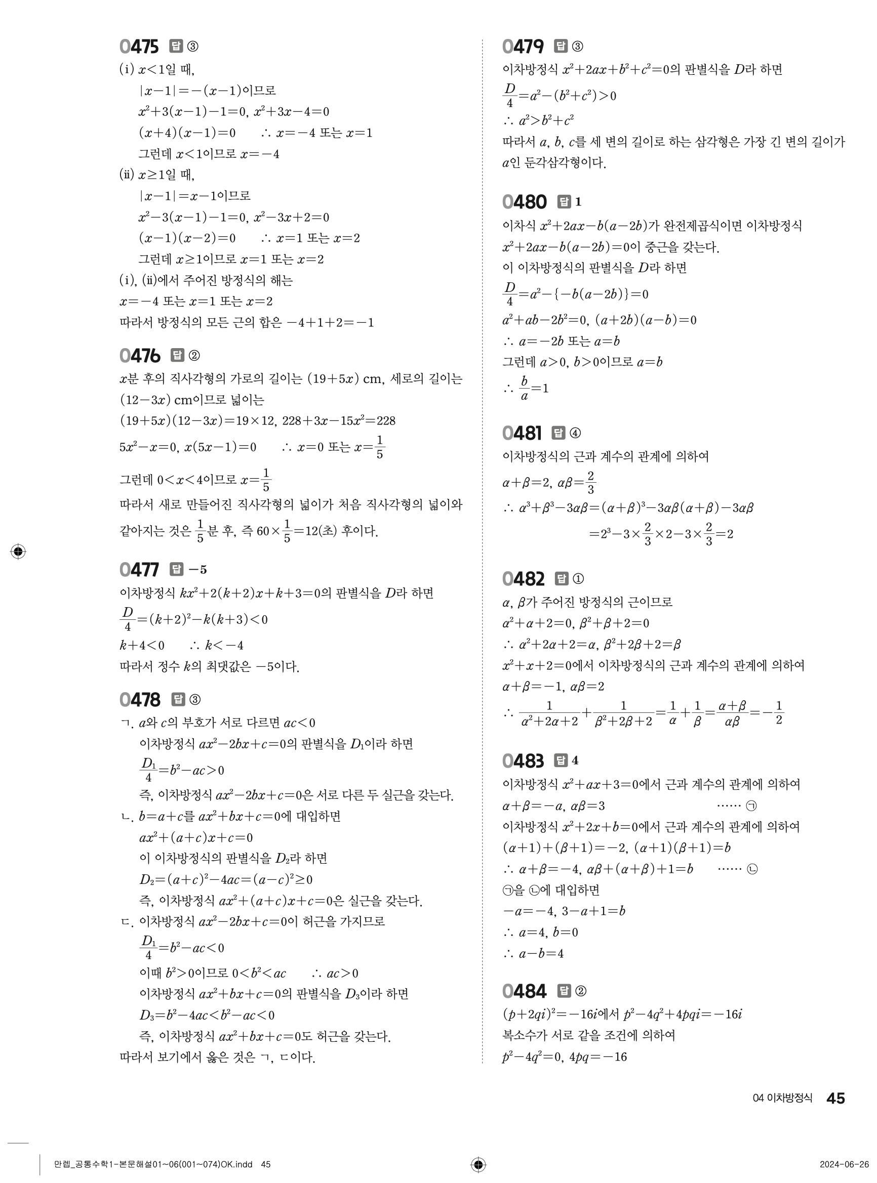 📢 2025 최신개정 유형 만렙 고등 공통수학1 공수1 답지 해설 빠른답지 바로보는 사진답지