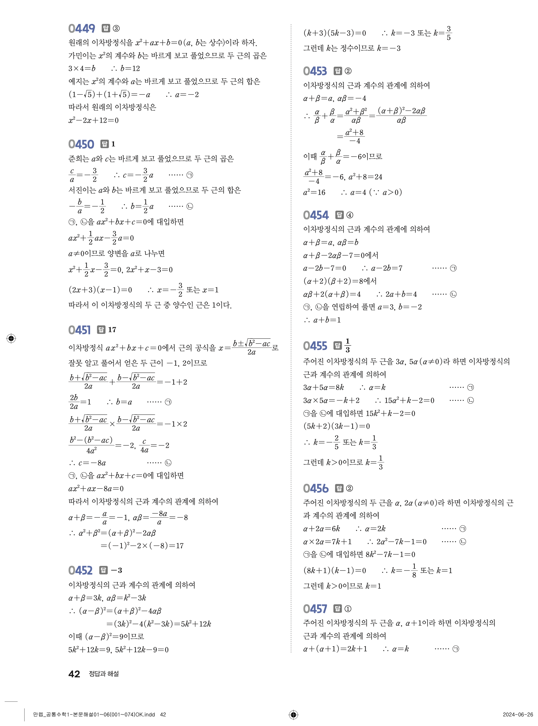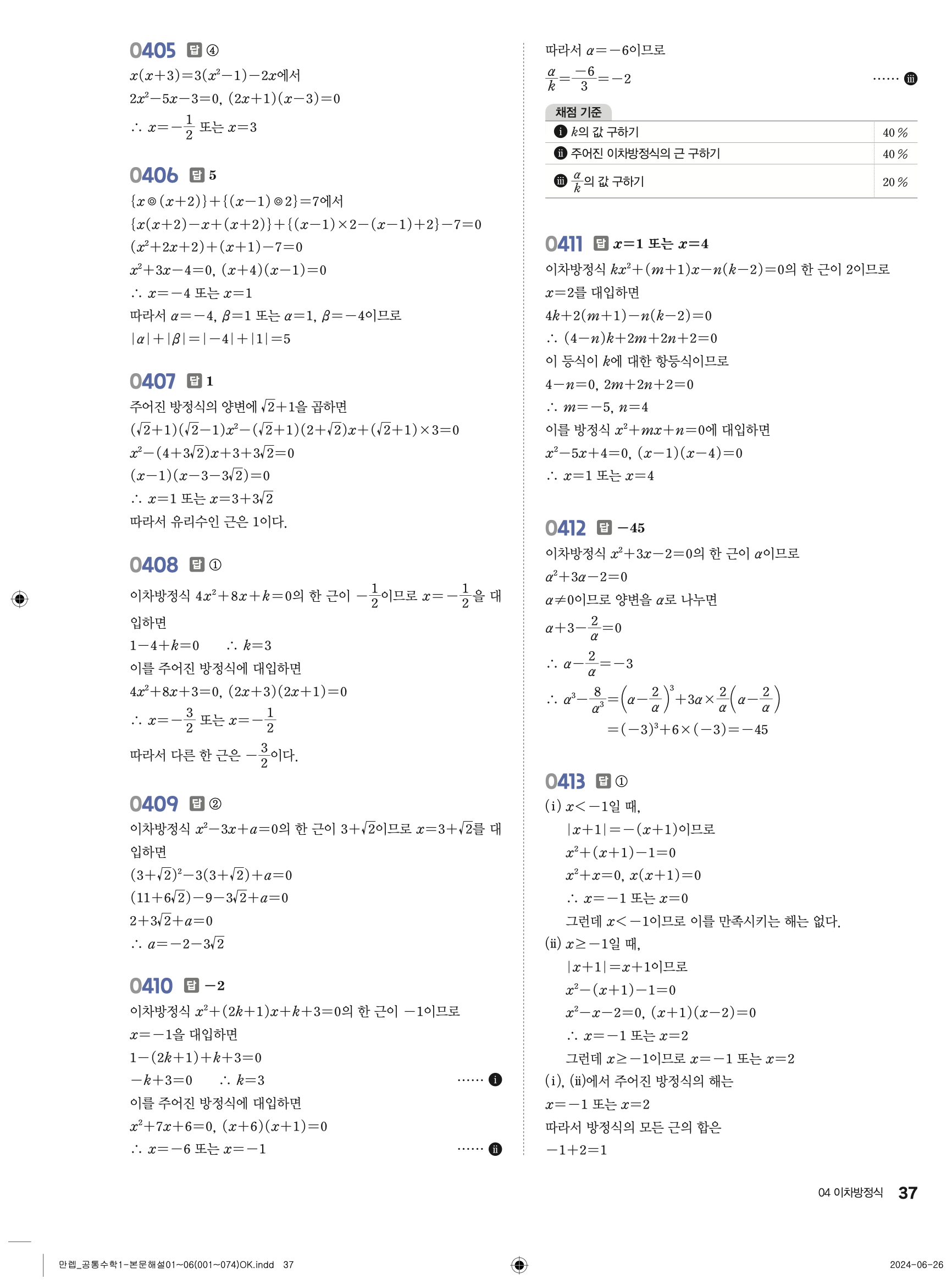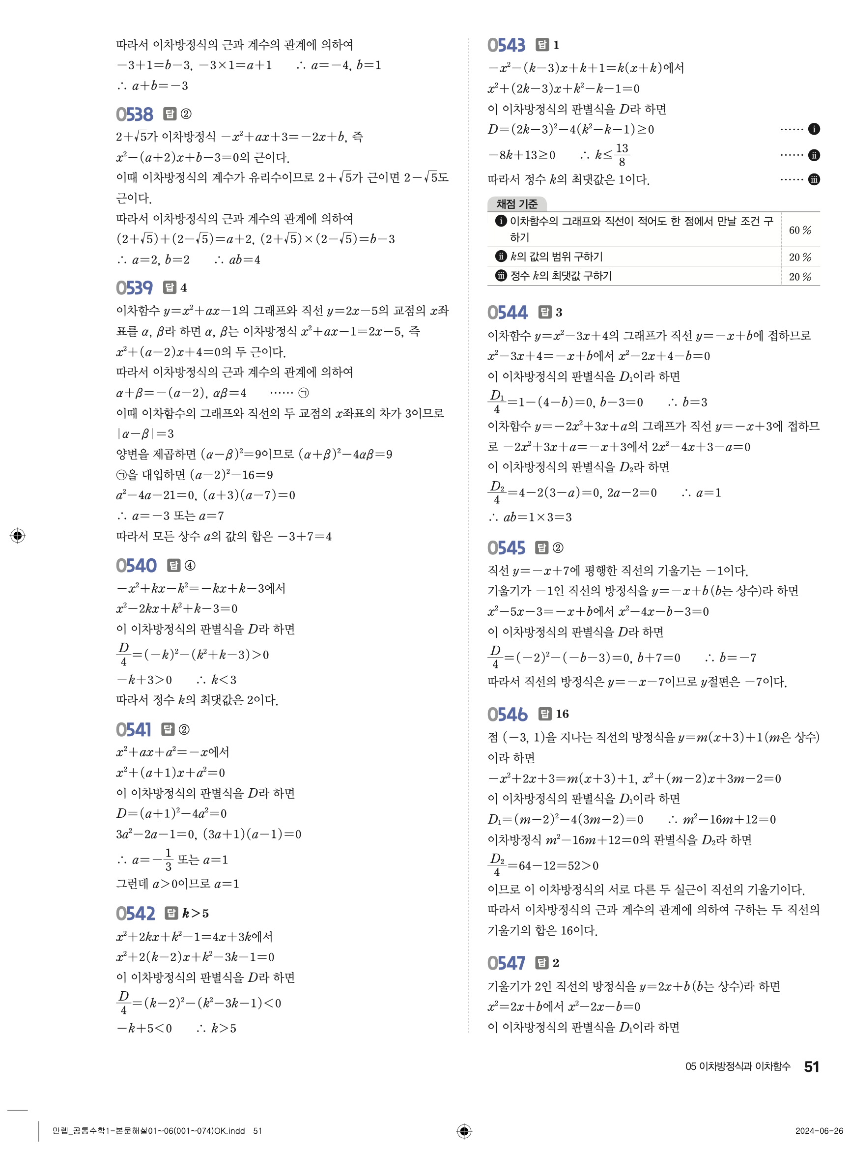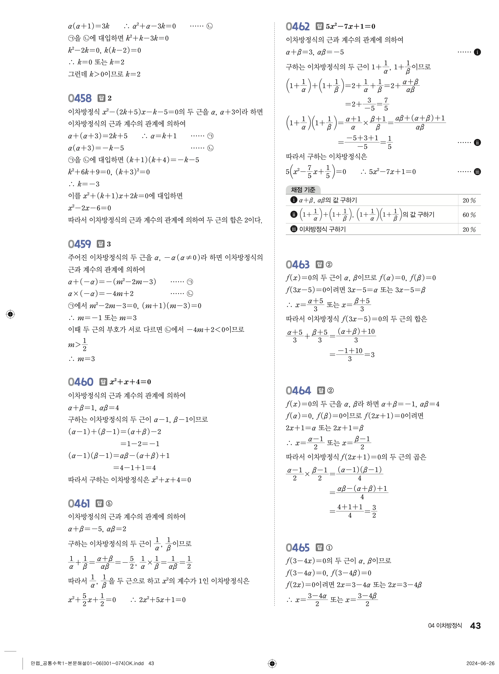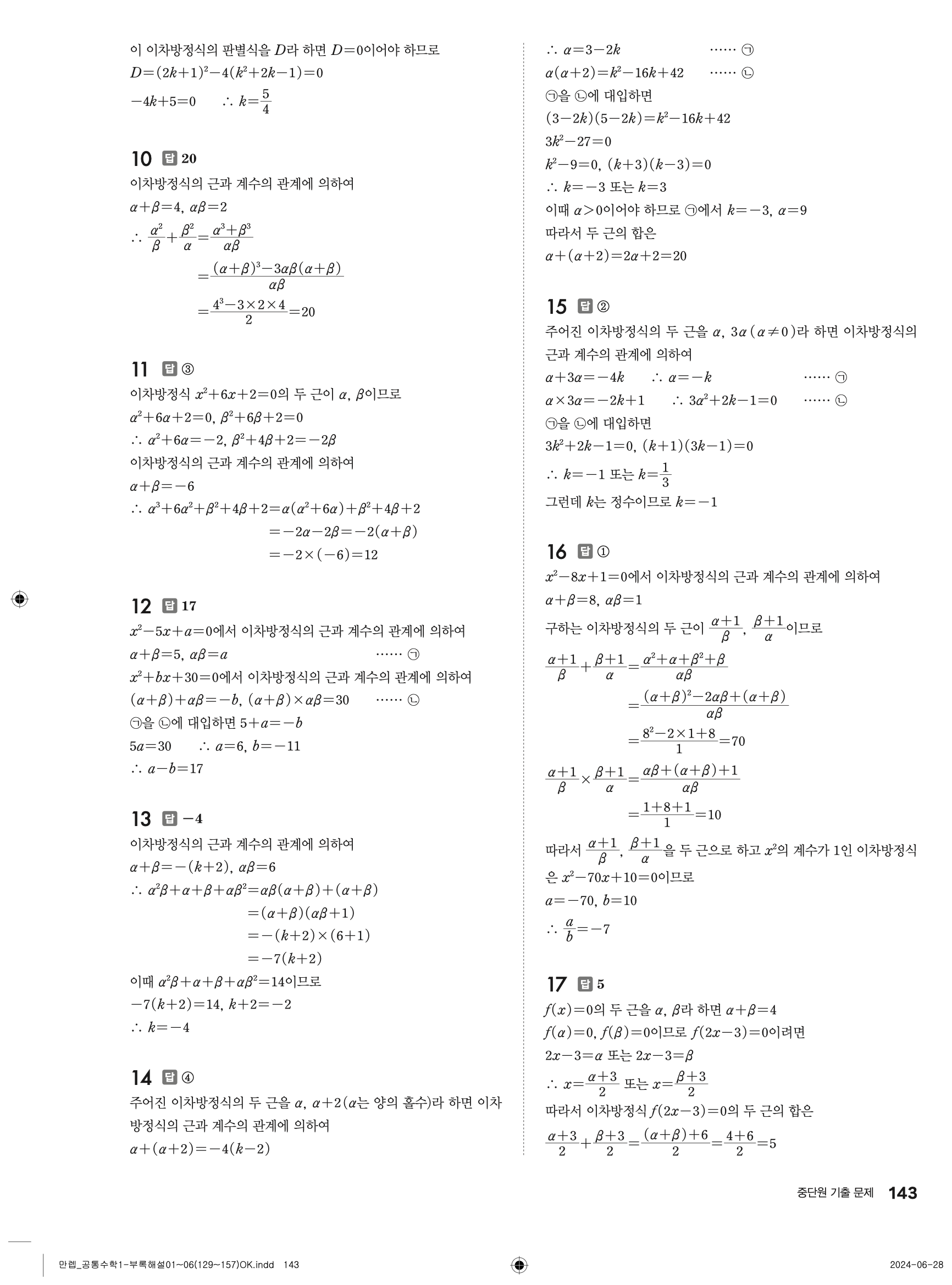🔗 유형 만렙 공통수학1 빠른답지 PDF