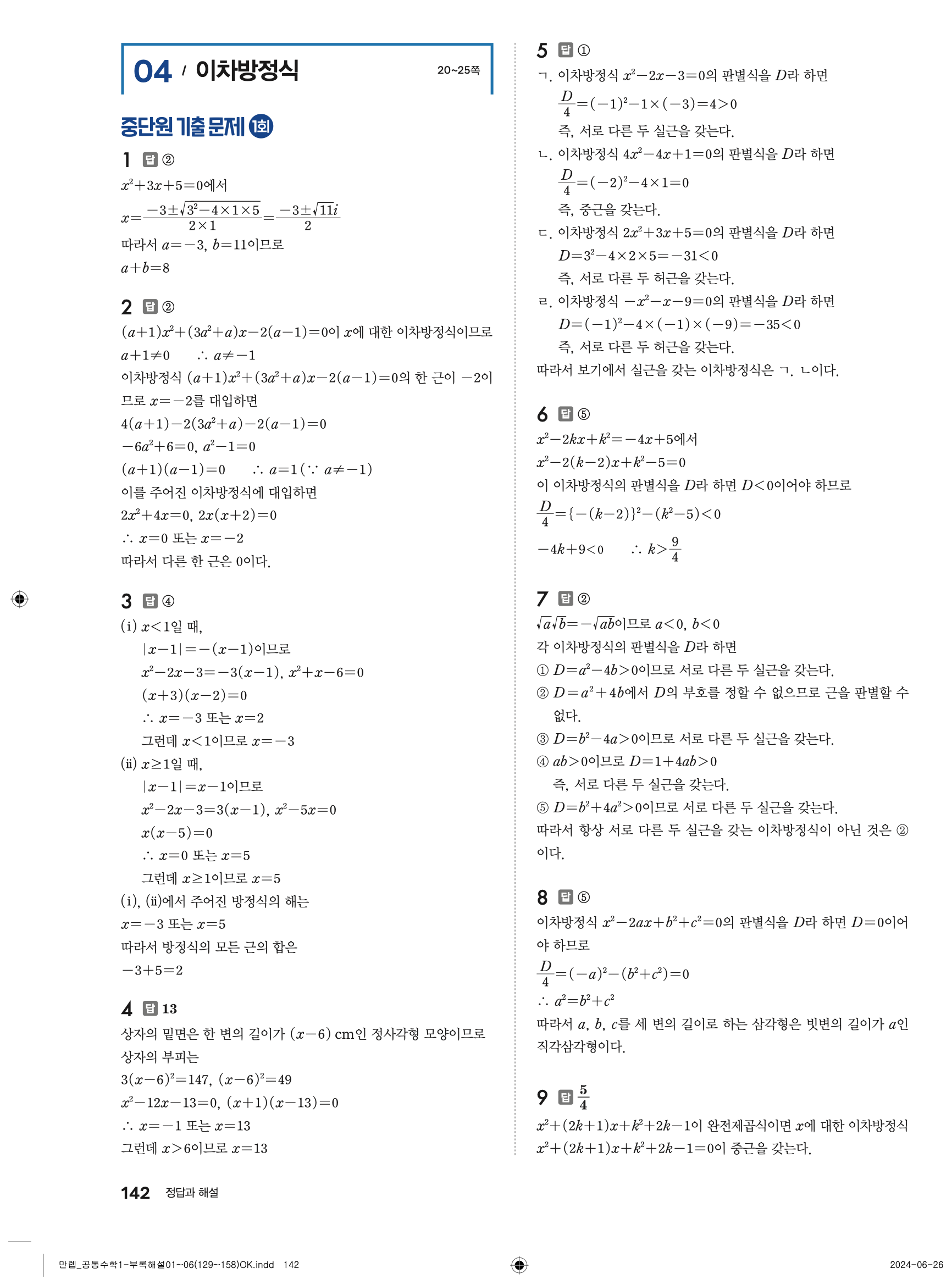 📌 정답 확인 및 오답 분석 → 빠른답지를 활용하여 정답을 체크하고, 오답을 분석하세요.