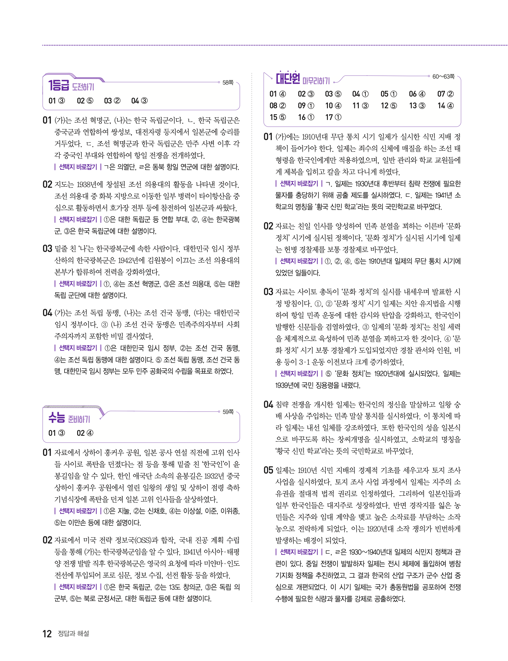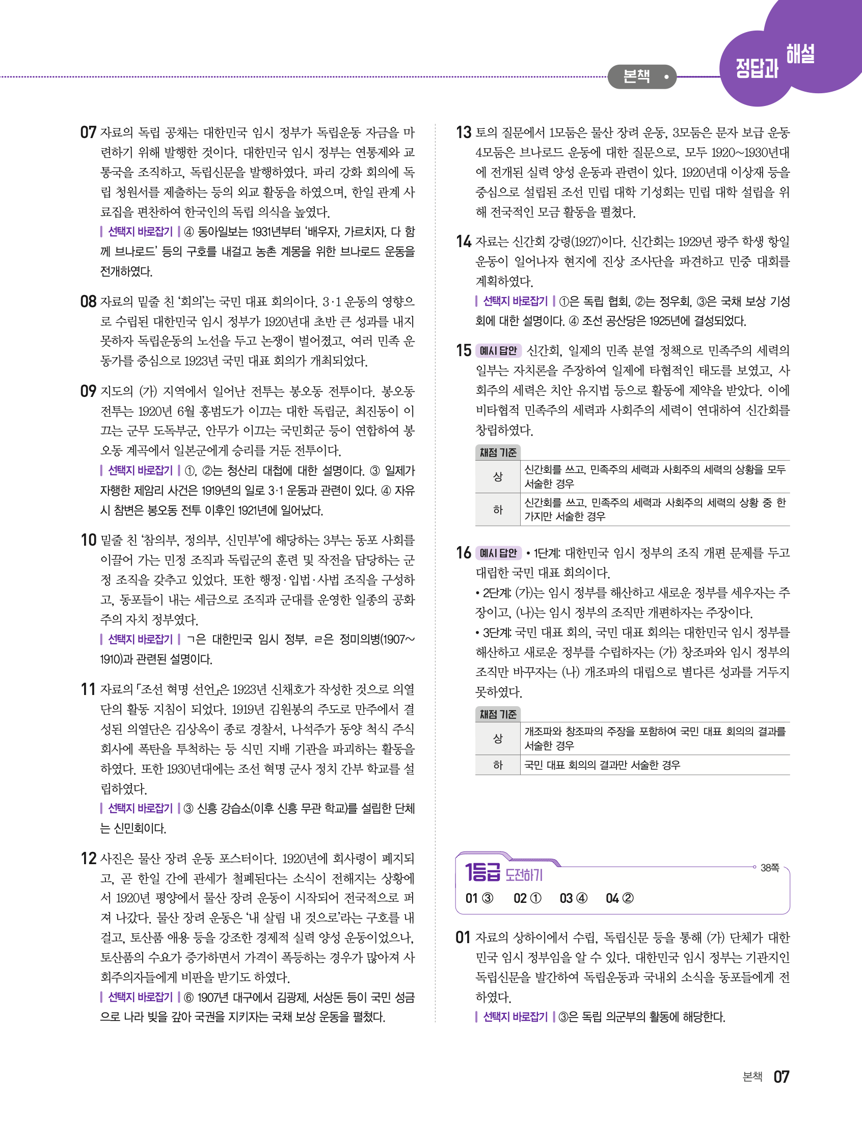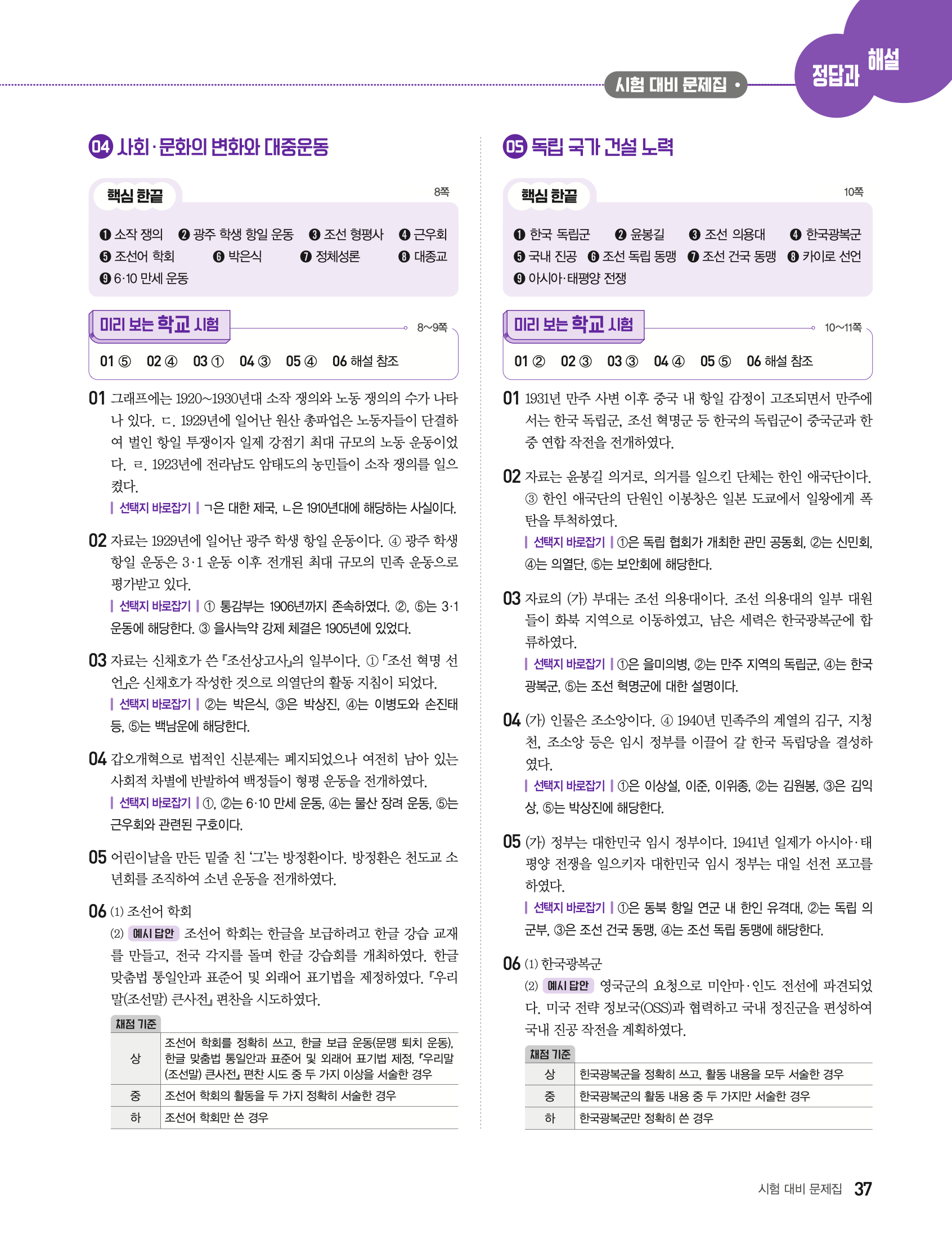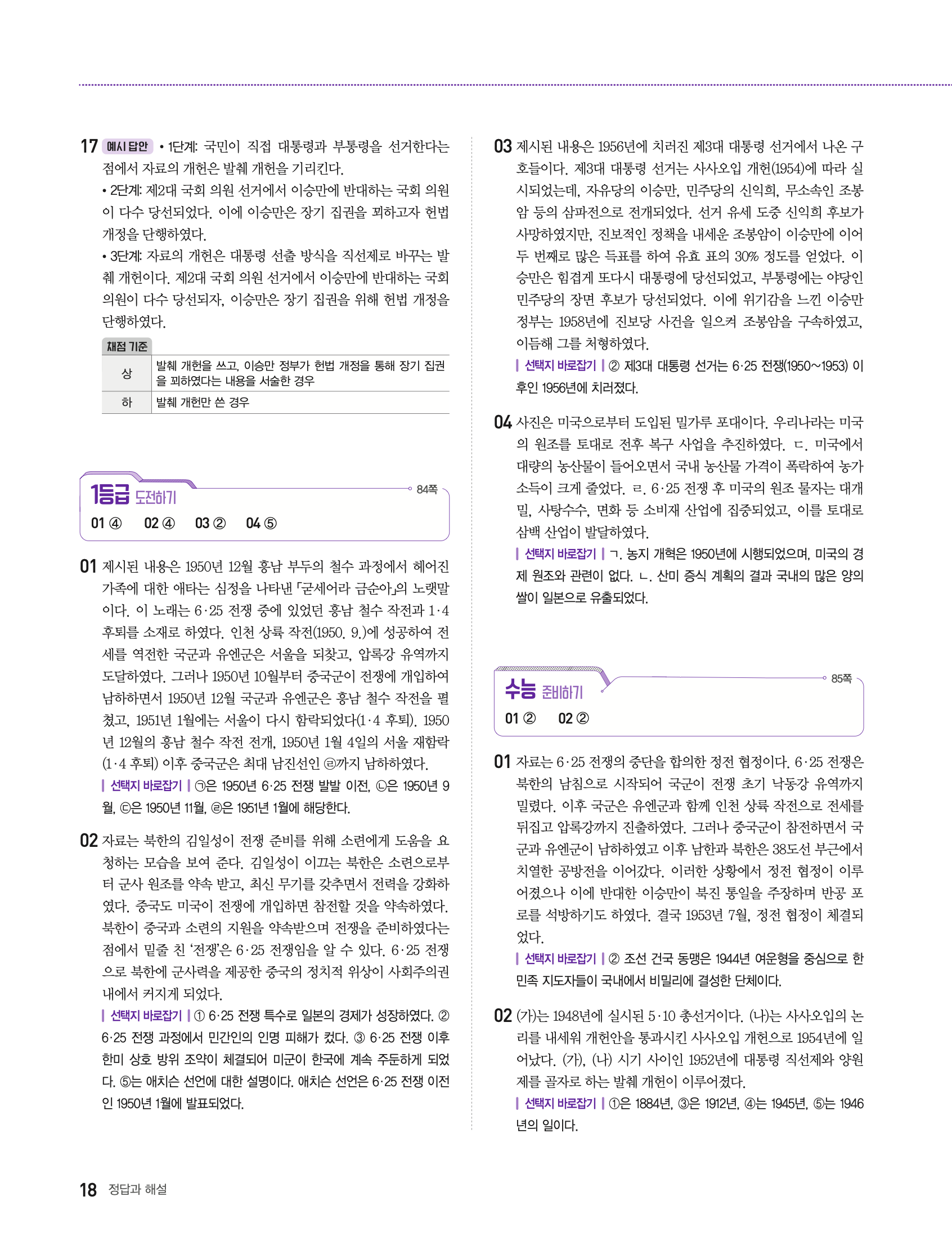 📌 한끝 한국사2 정답 및 해설 다운로드