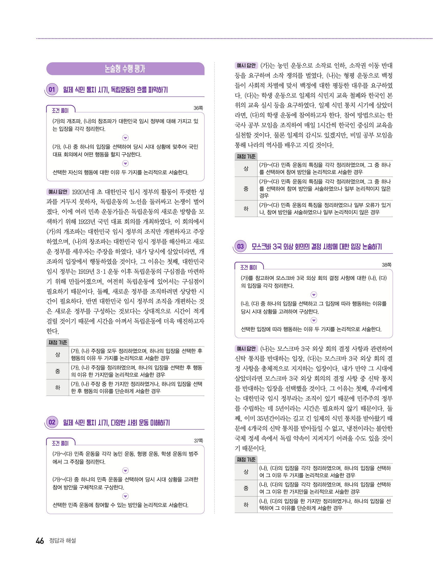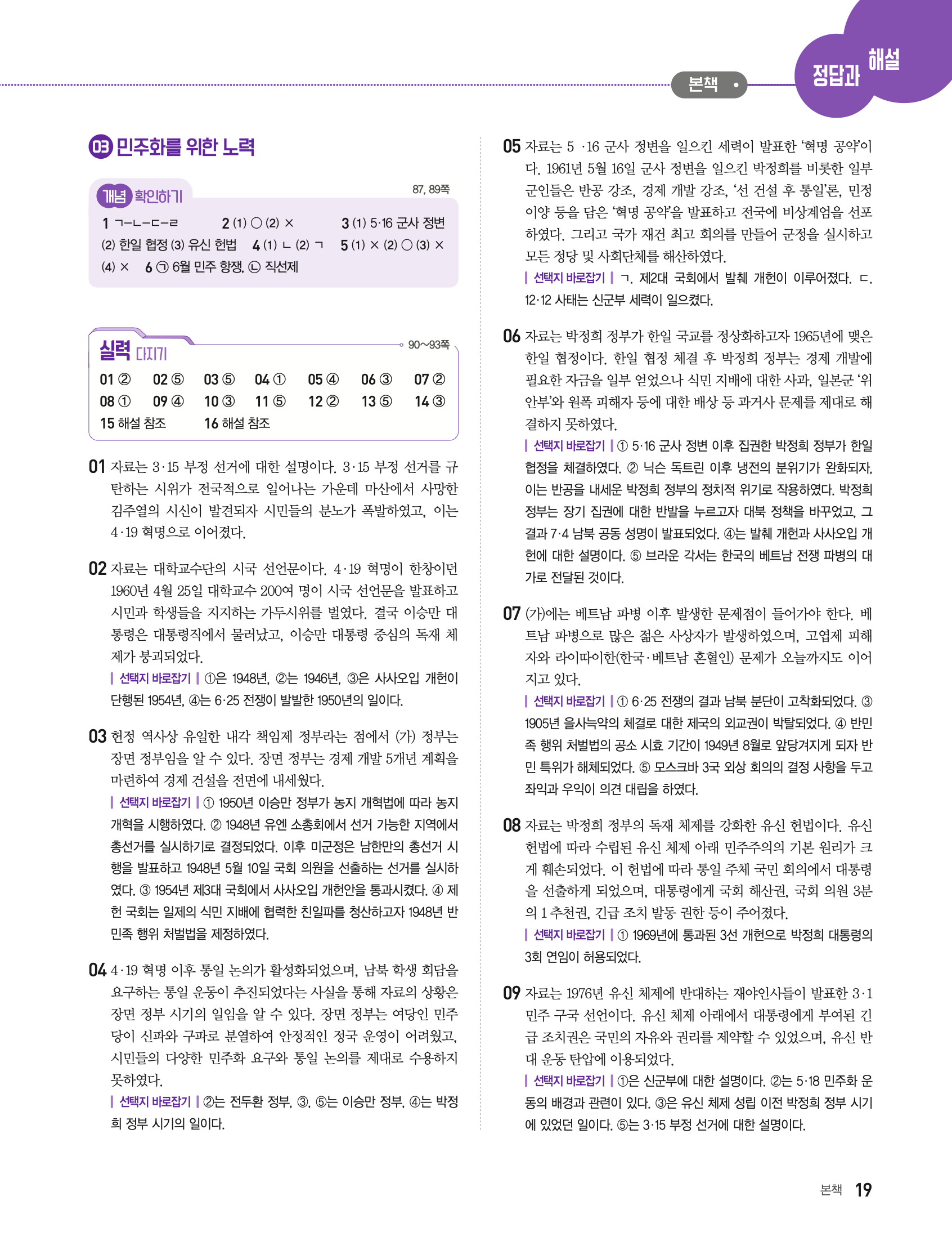 🔗 한끝 고등 통합 한국사2 답지 바로보기