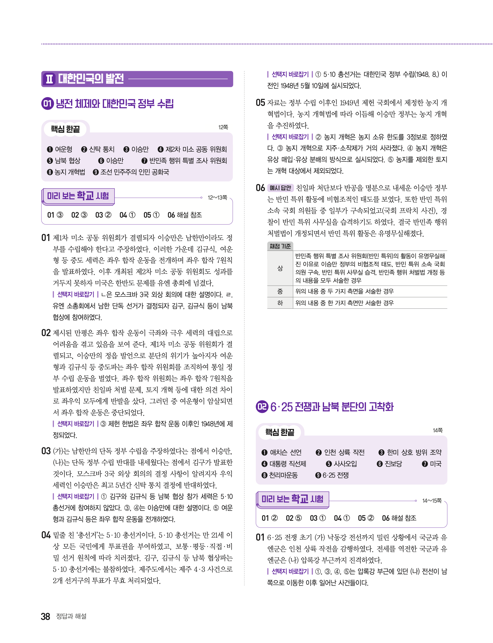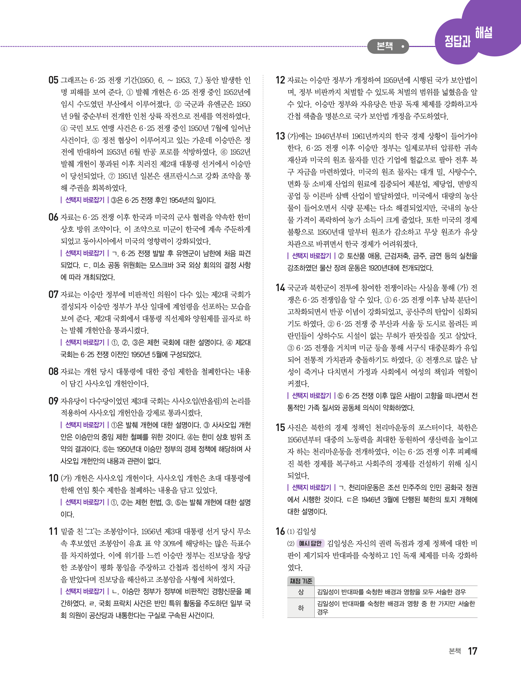 📥 2025 최신개정 한끝 고등 통합 한국사2 빠른답지 바로보는 사진답지 다운로드