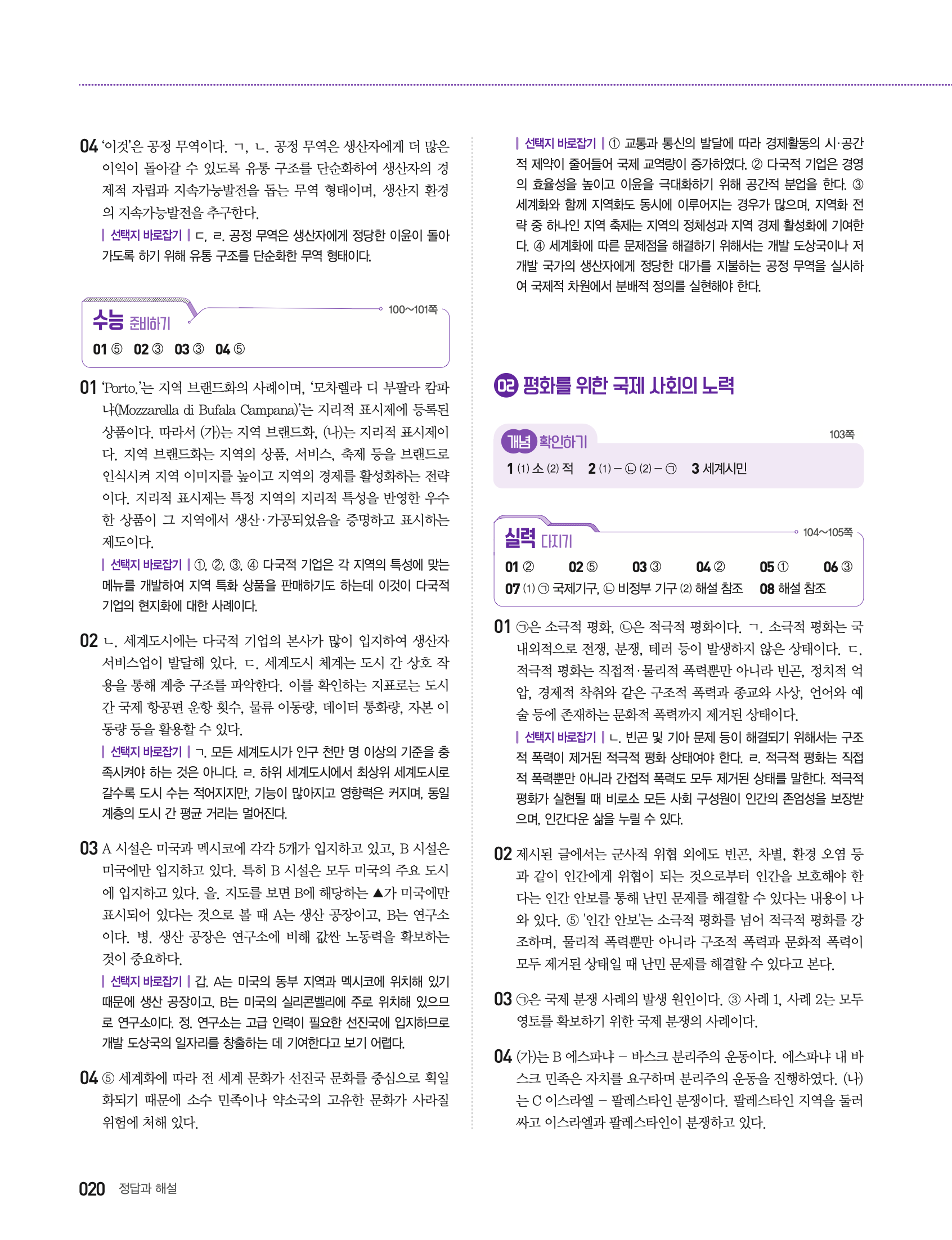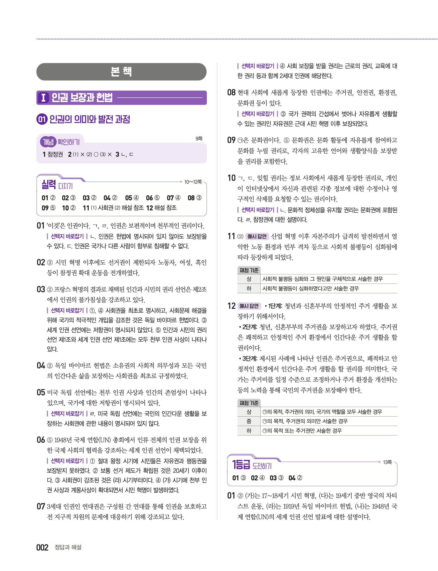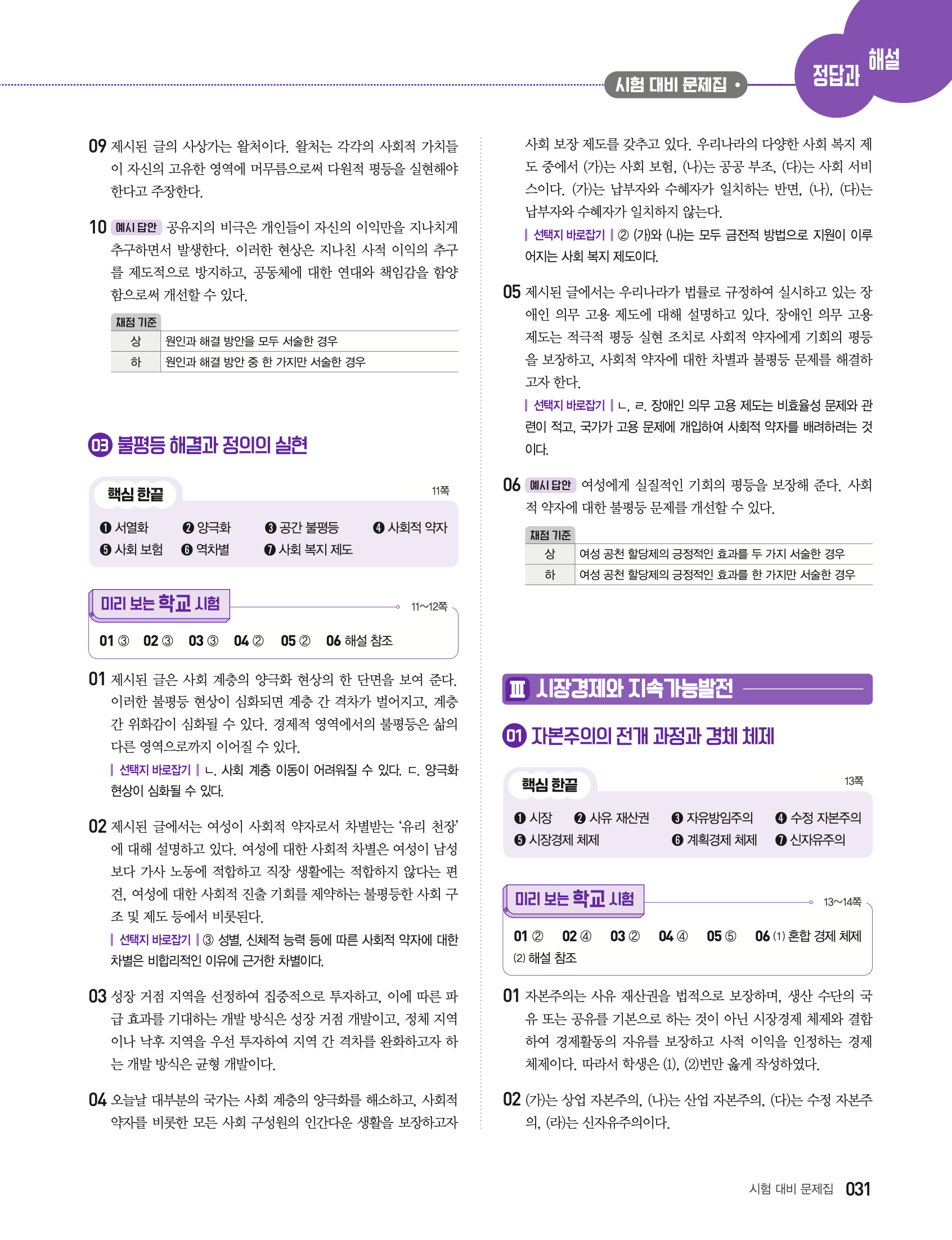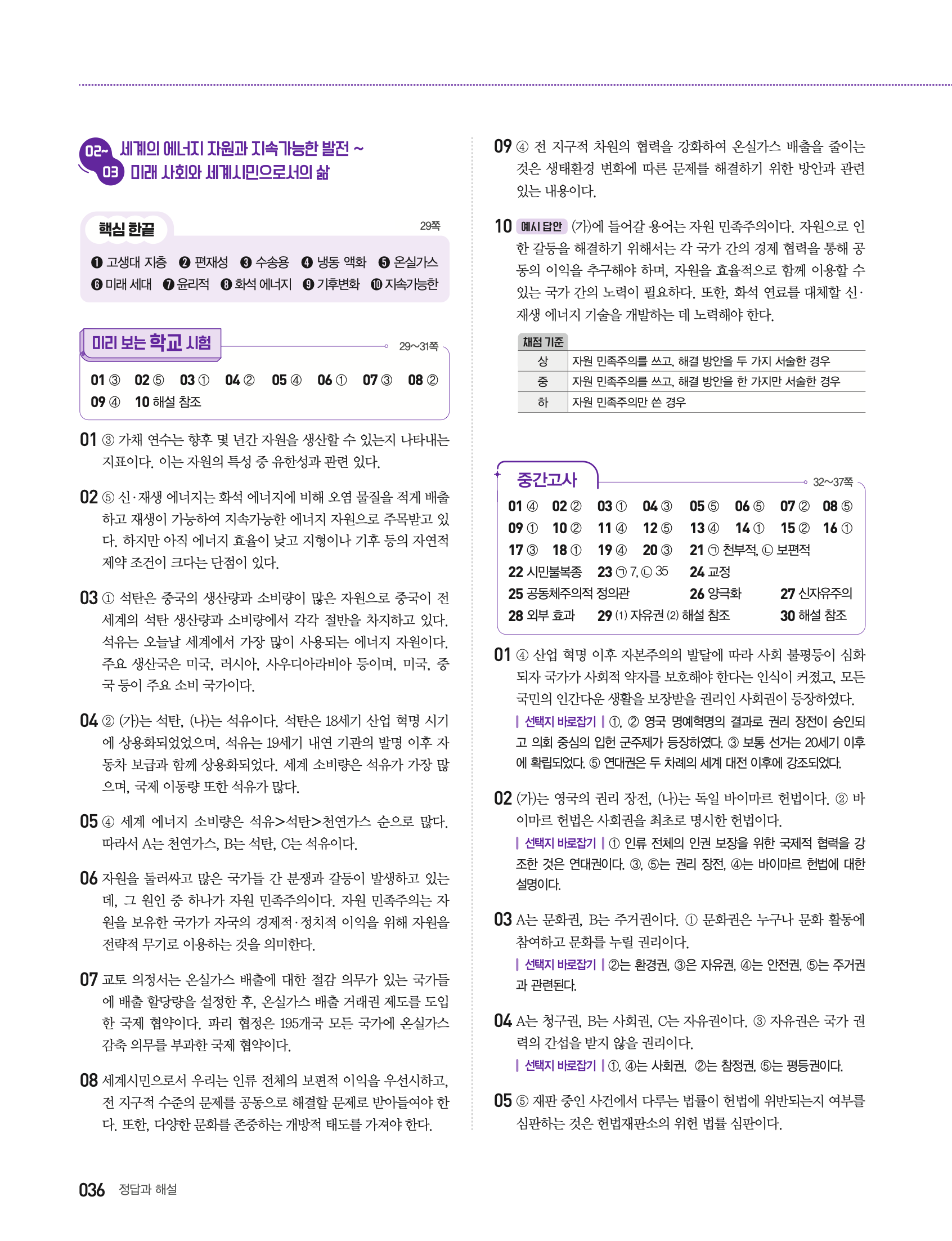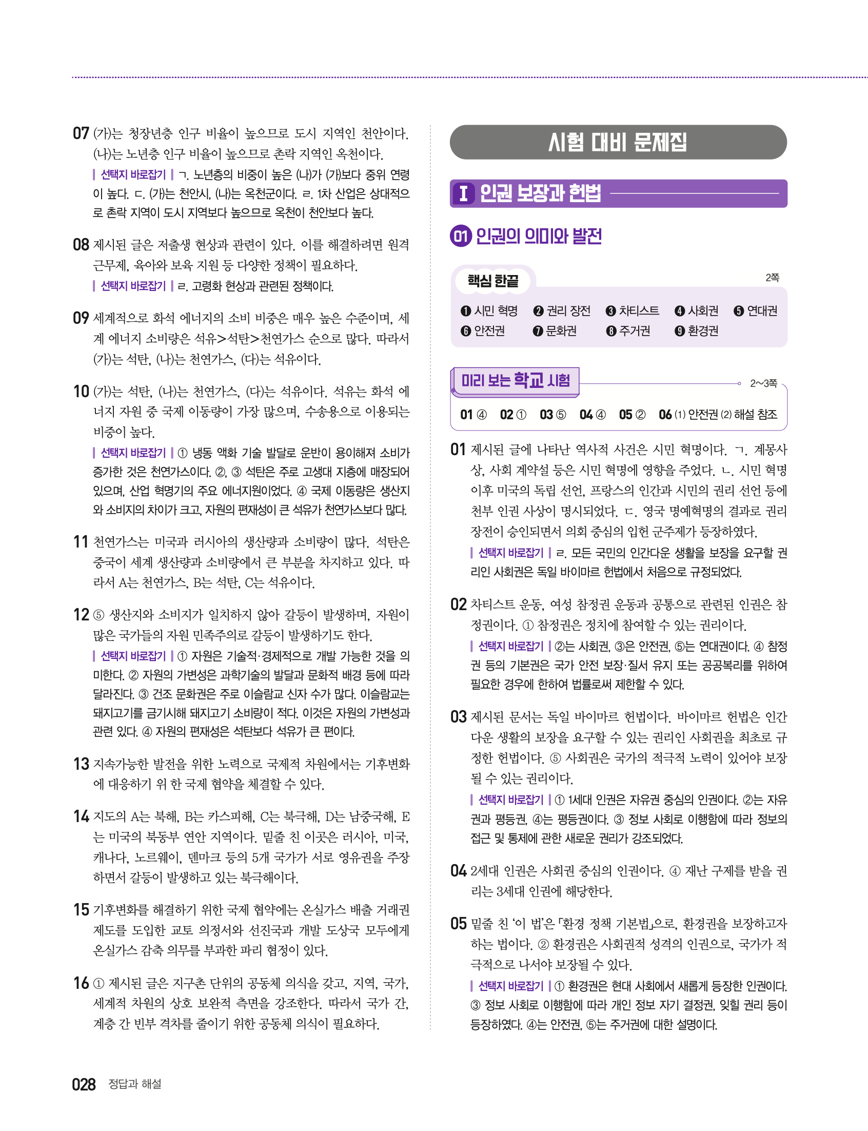 📌 한끝 고등 통합사회2 정답 및 해설 다운로드