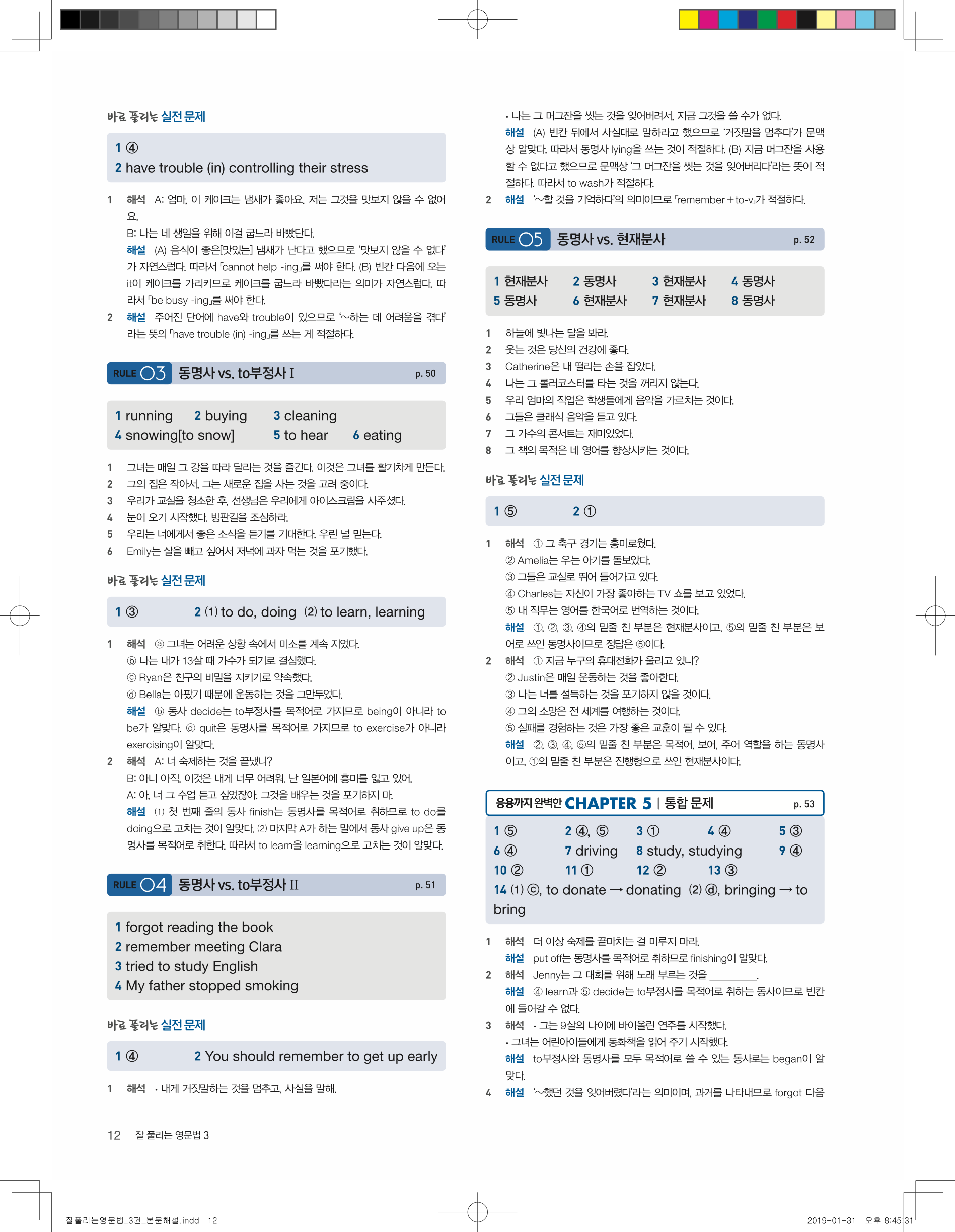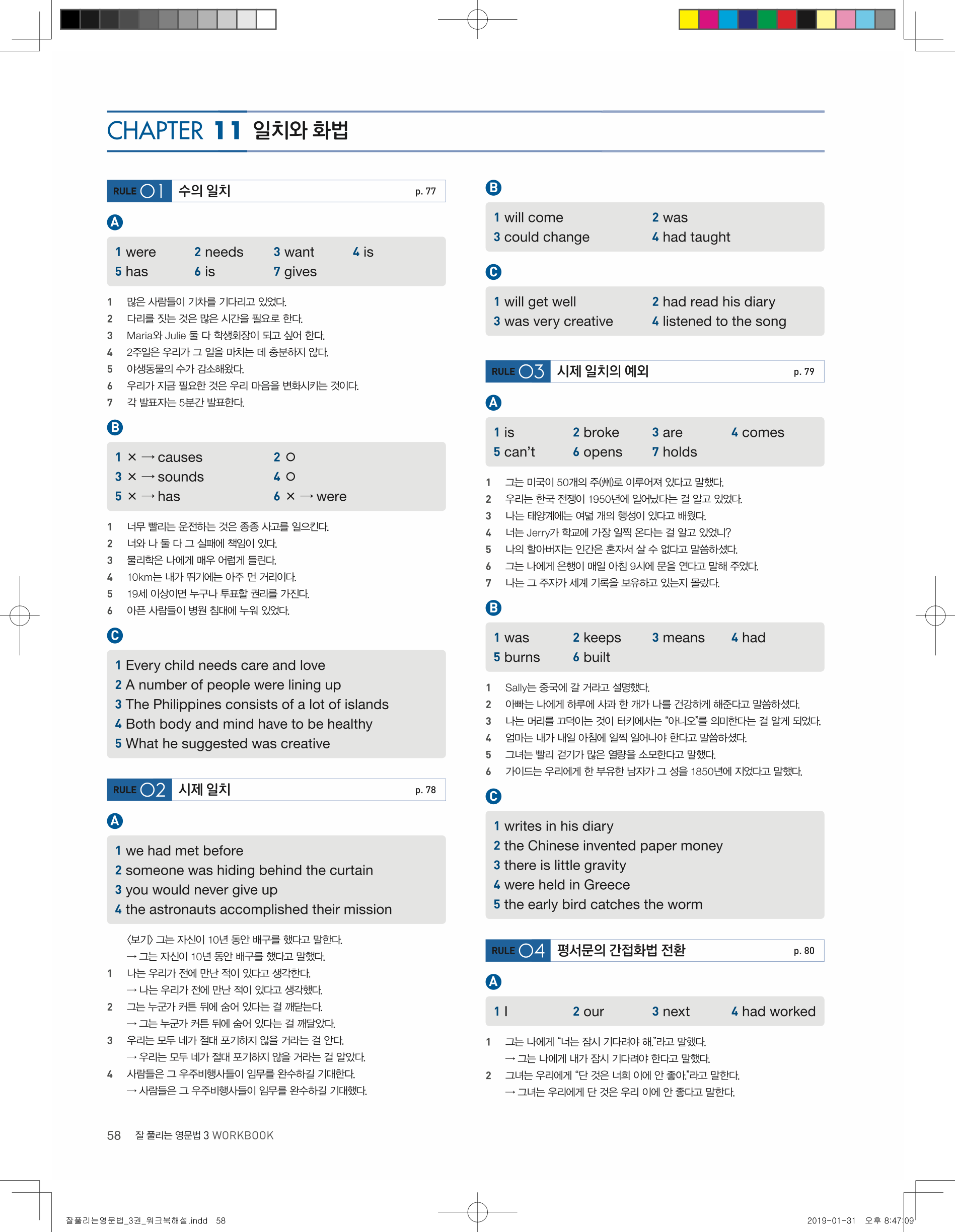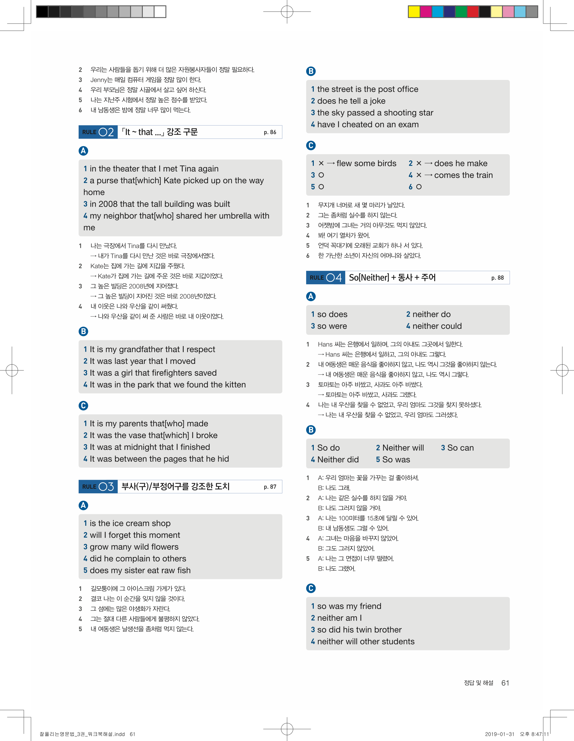 📢 쎄듀 잘풀리는영문법 3 답지 해설 풀이 빠른답지 PDF 다운로드